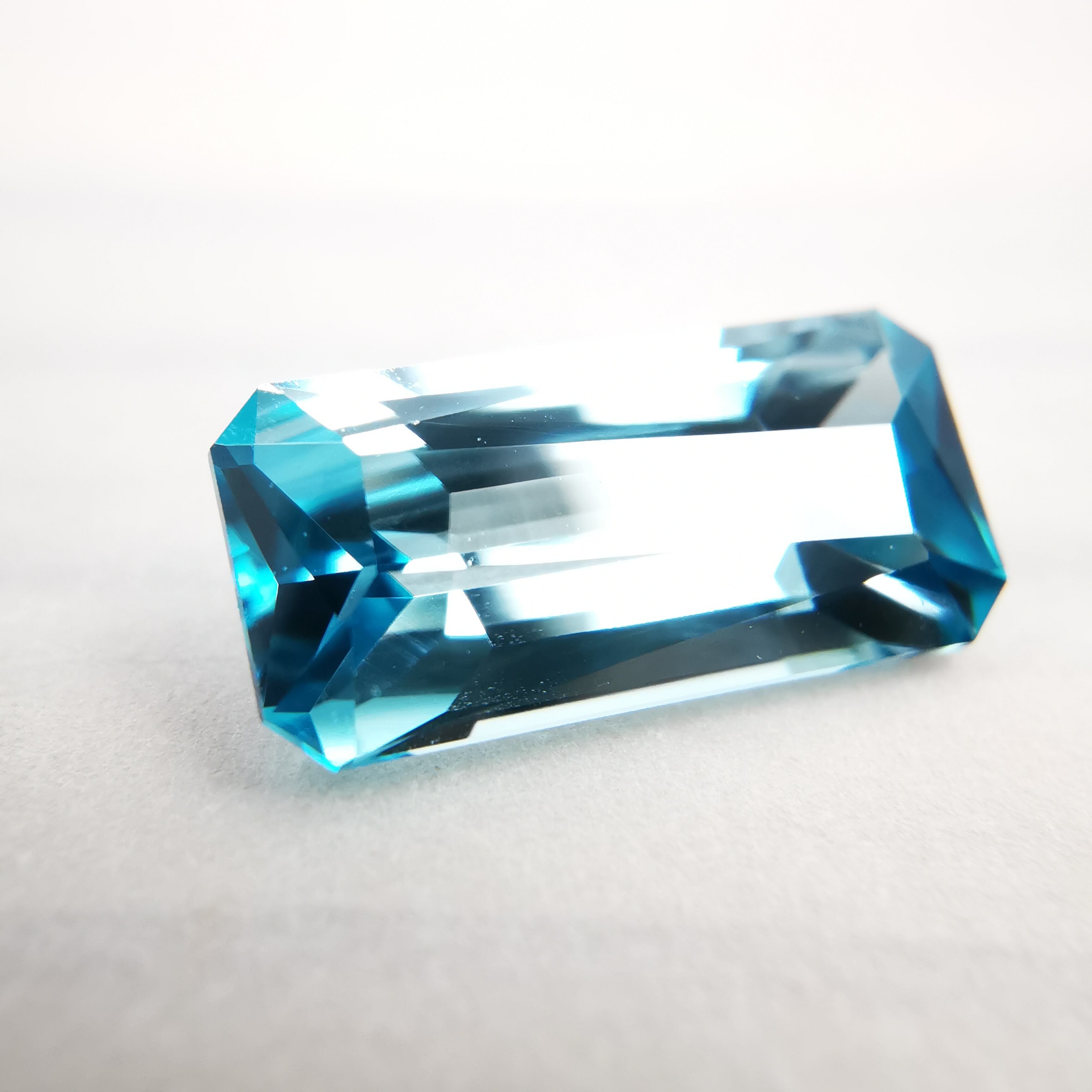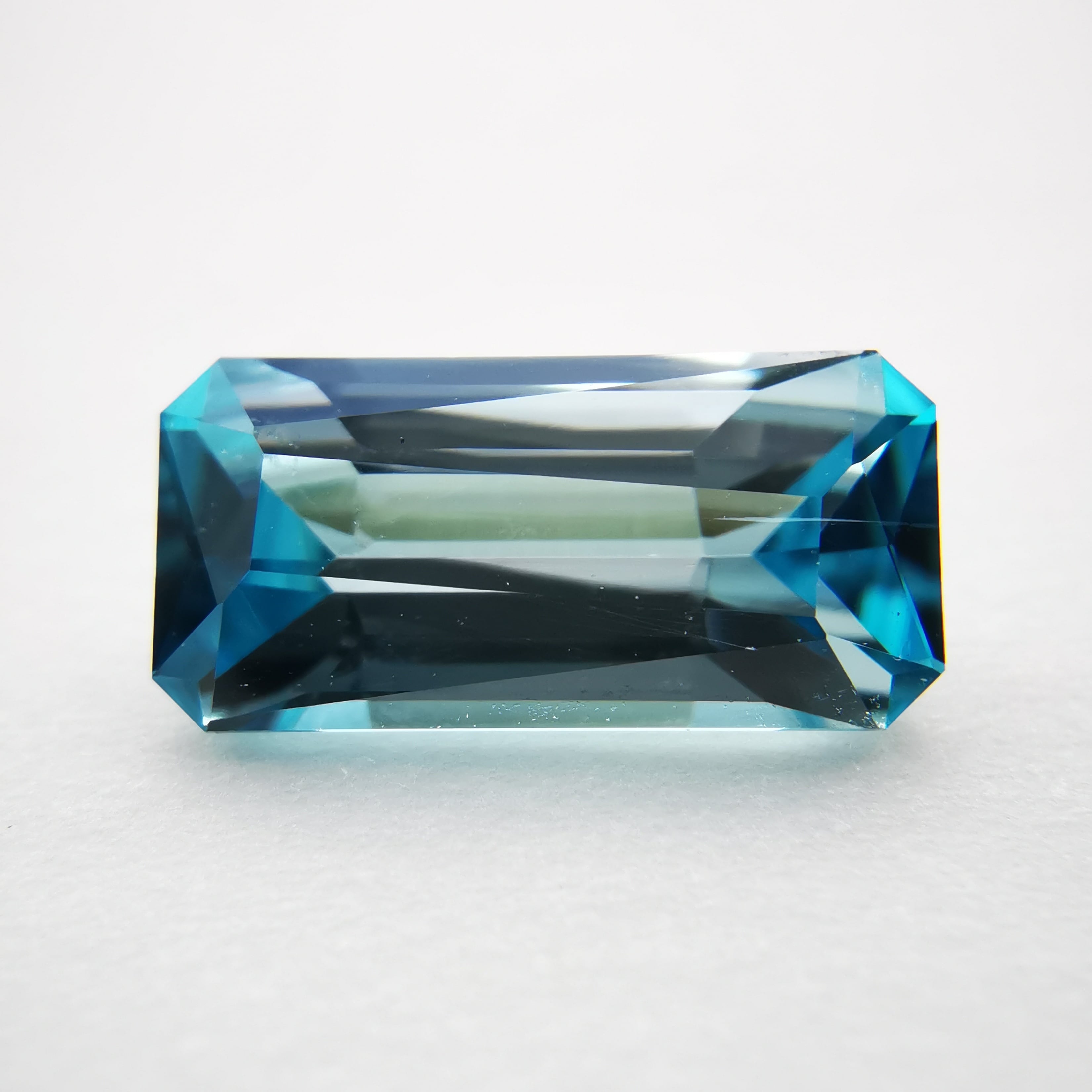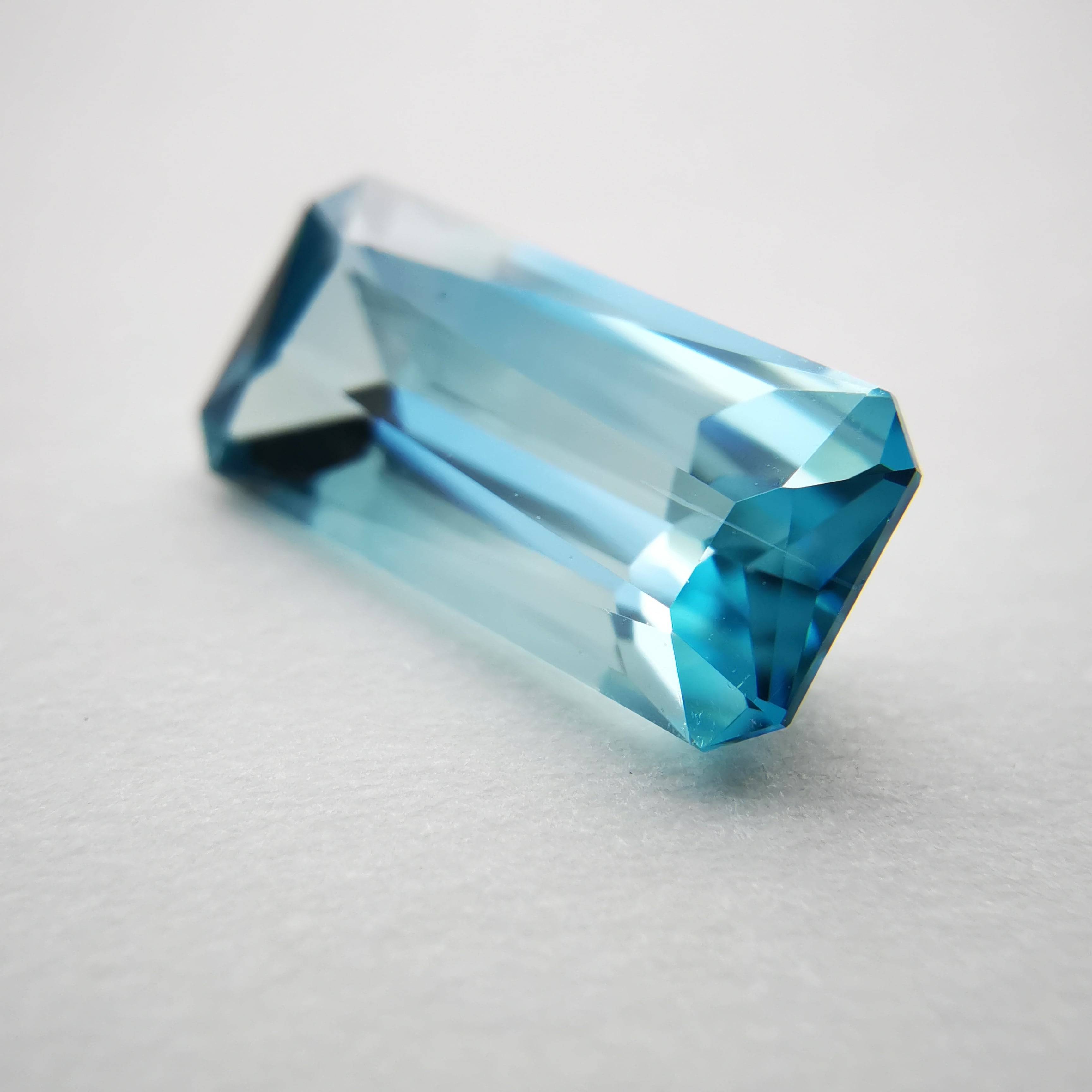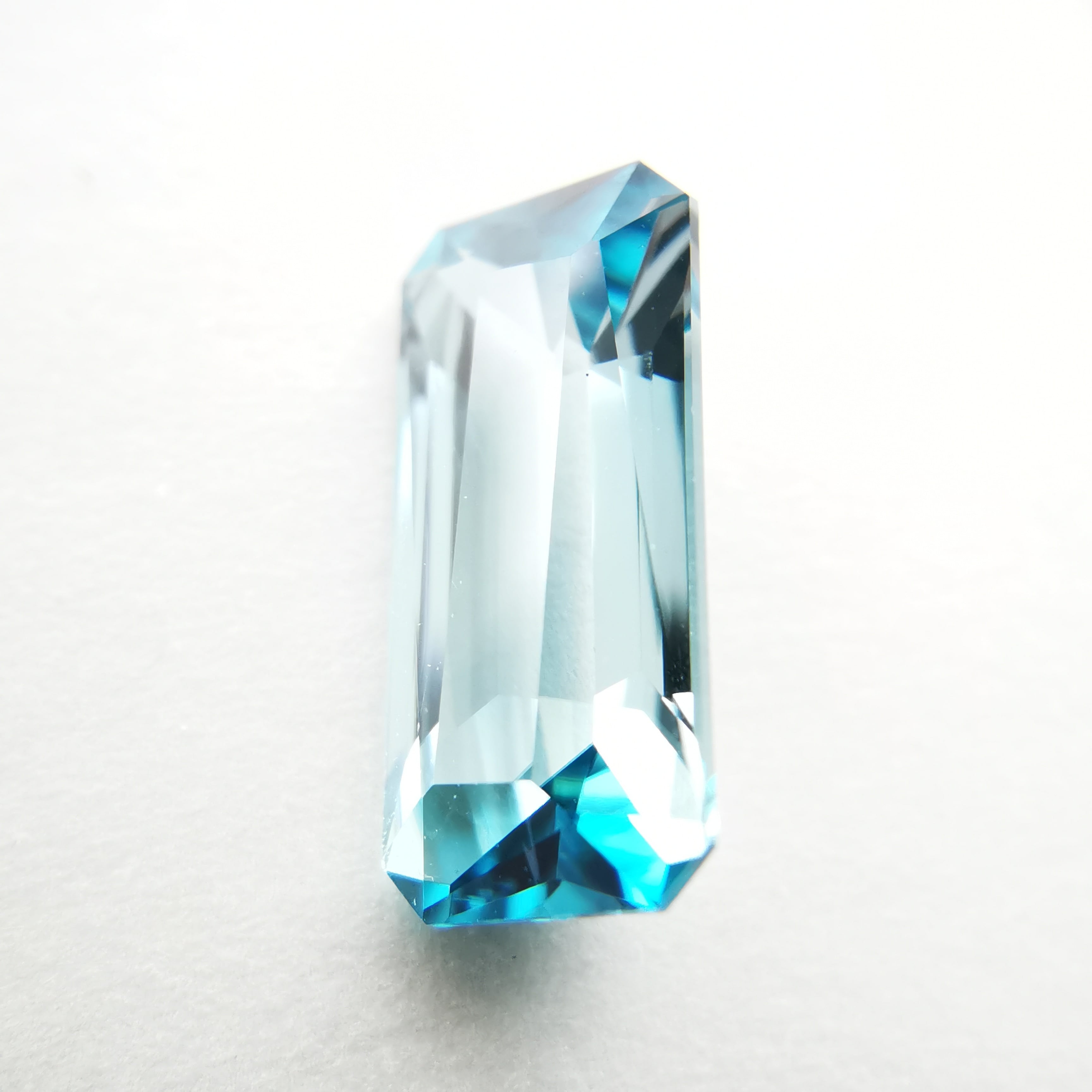 中心部はクリアで淡い空色、両端にターコイズブルーの色溜りがあるジルコンです。
