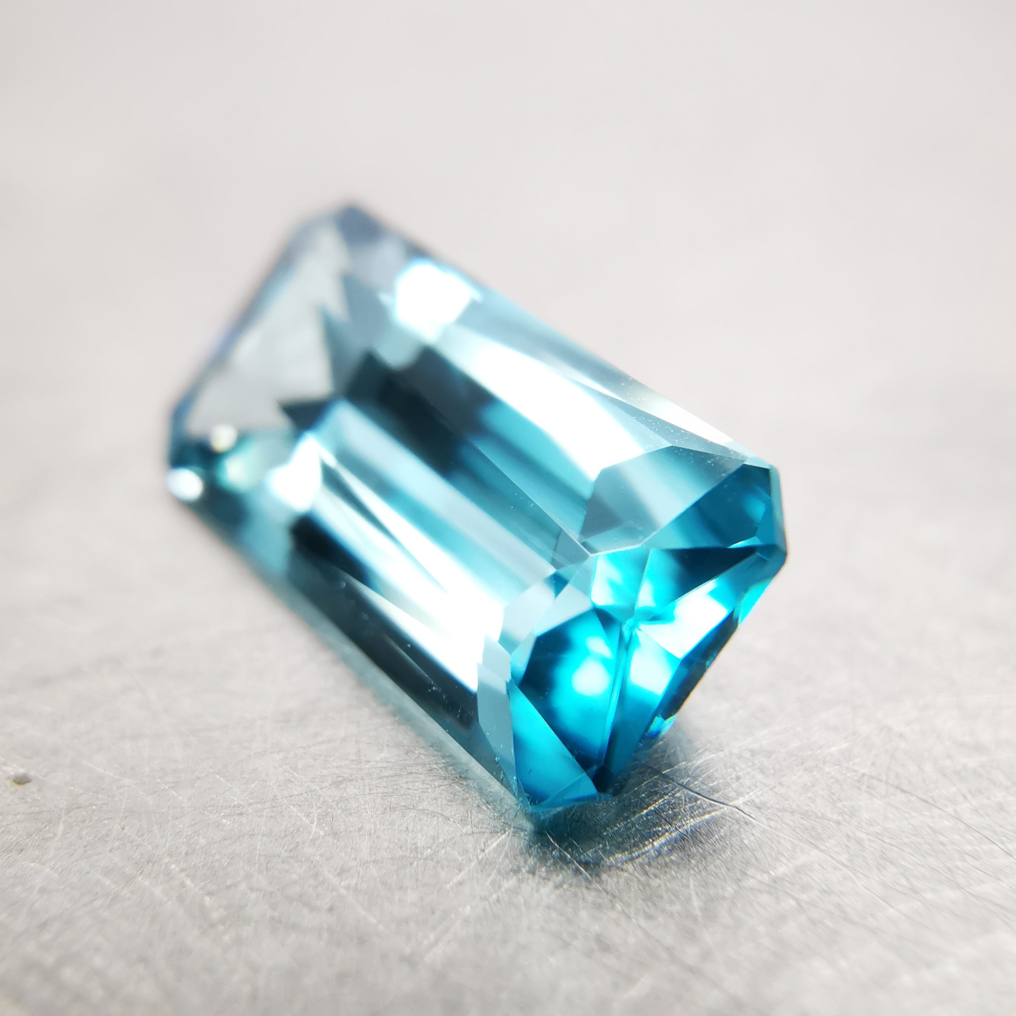 カットを売りにしている当店では、ファセット面にピントを合わせて撮影するようにしているのですが、クリアで輝きが強いこちらのジルコンはピント合わせに苦労しました。