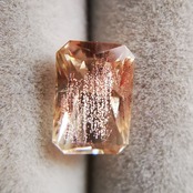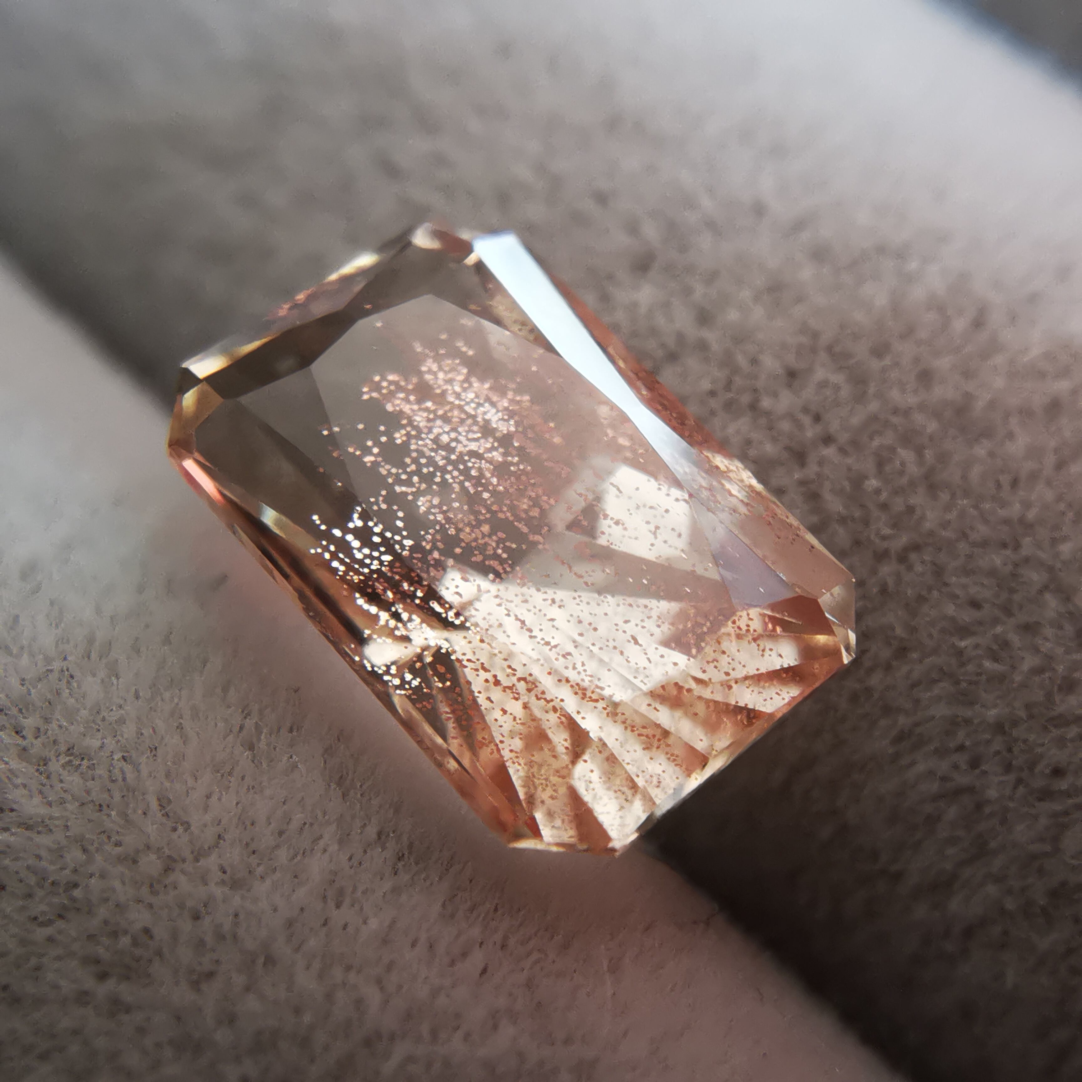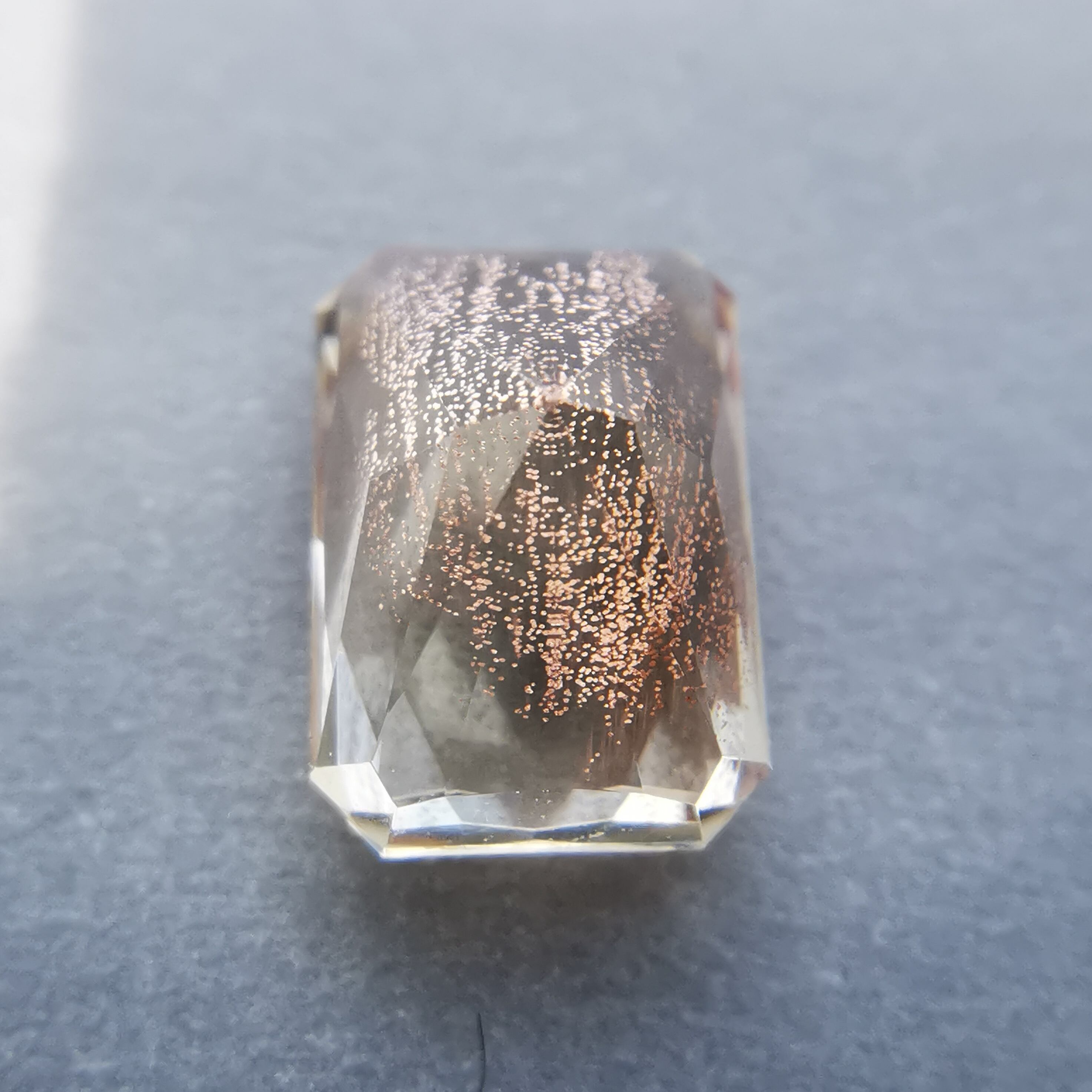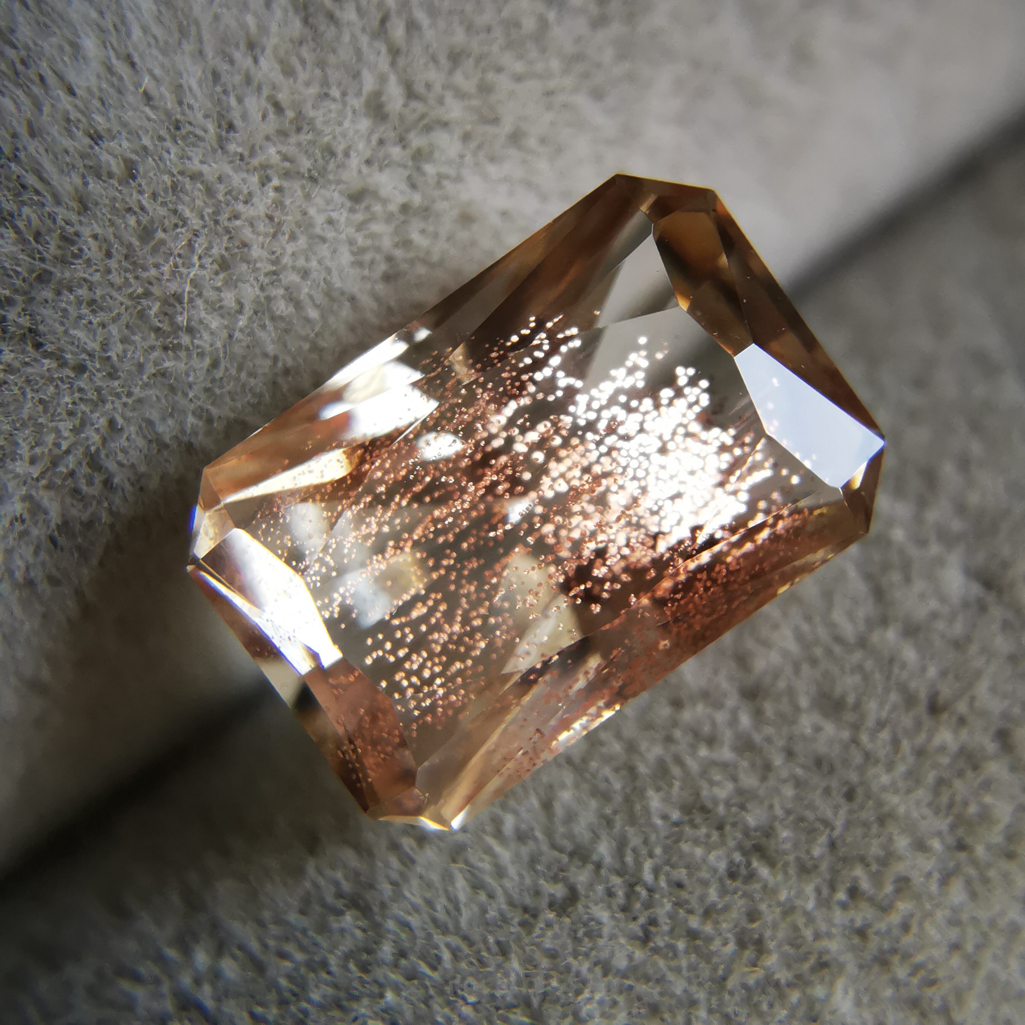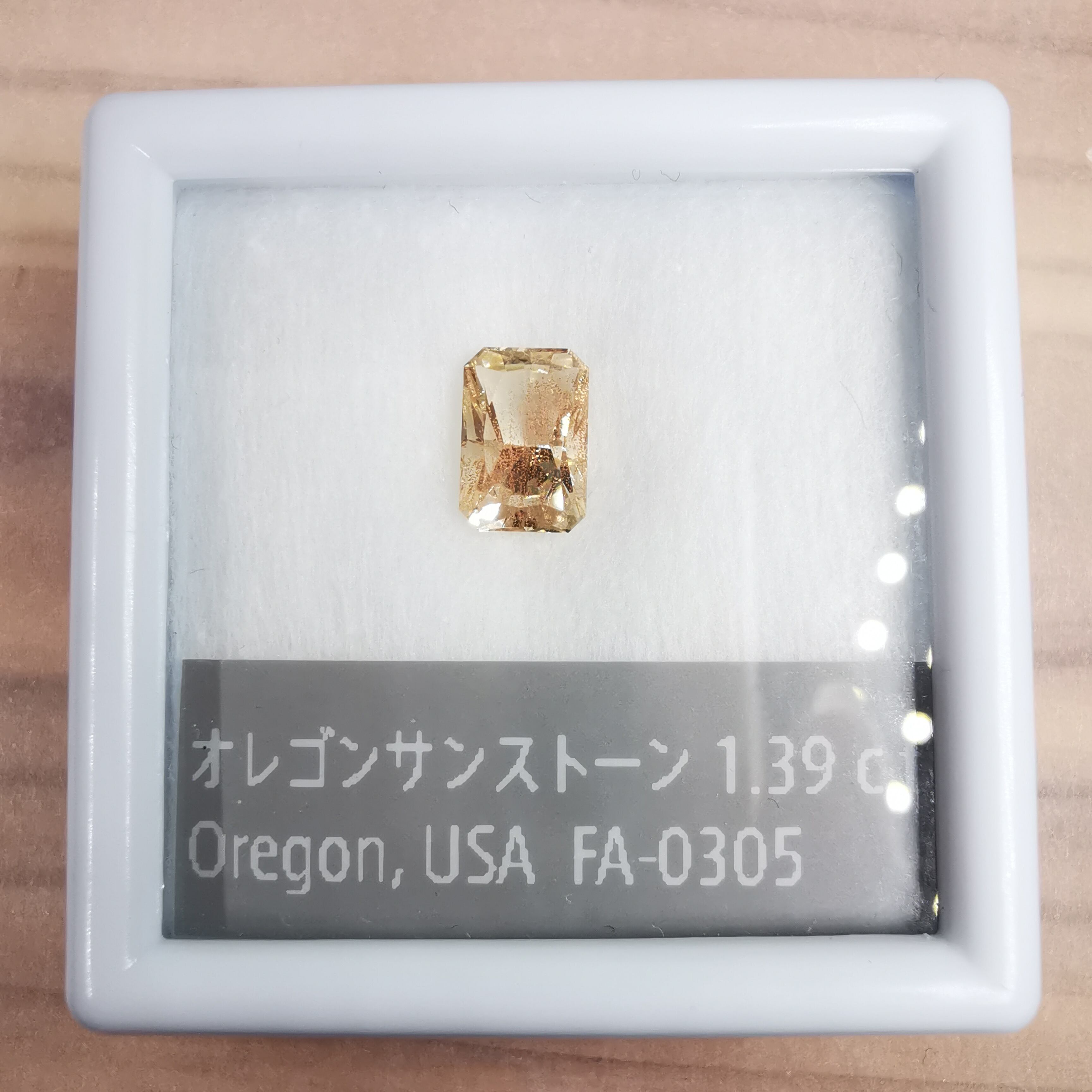 淡いゴールドカラーの石に、流れ落ちるような大粒の銅シラーがたっぷり入ったオレゴンサンストーンです。