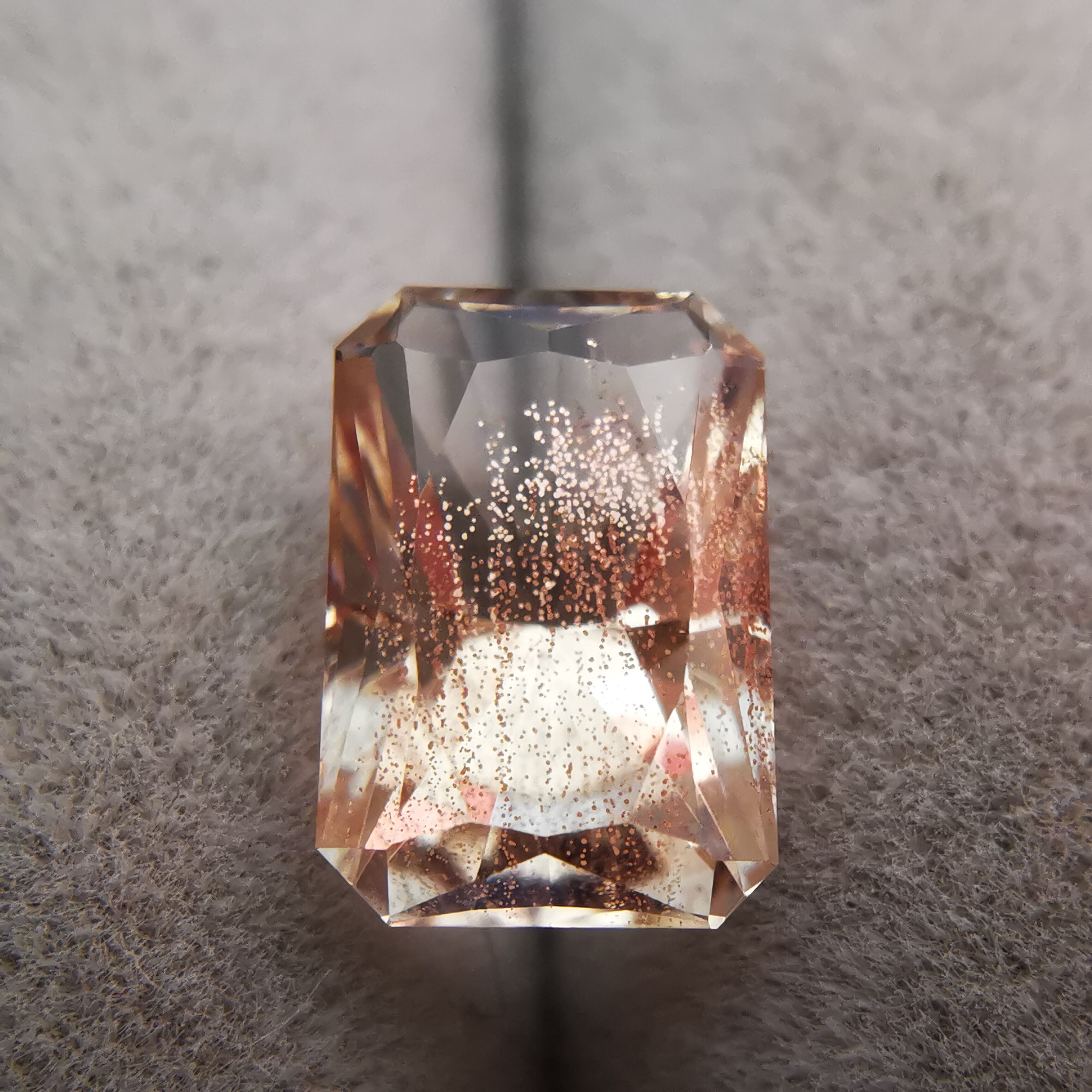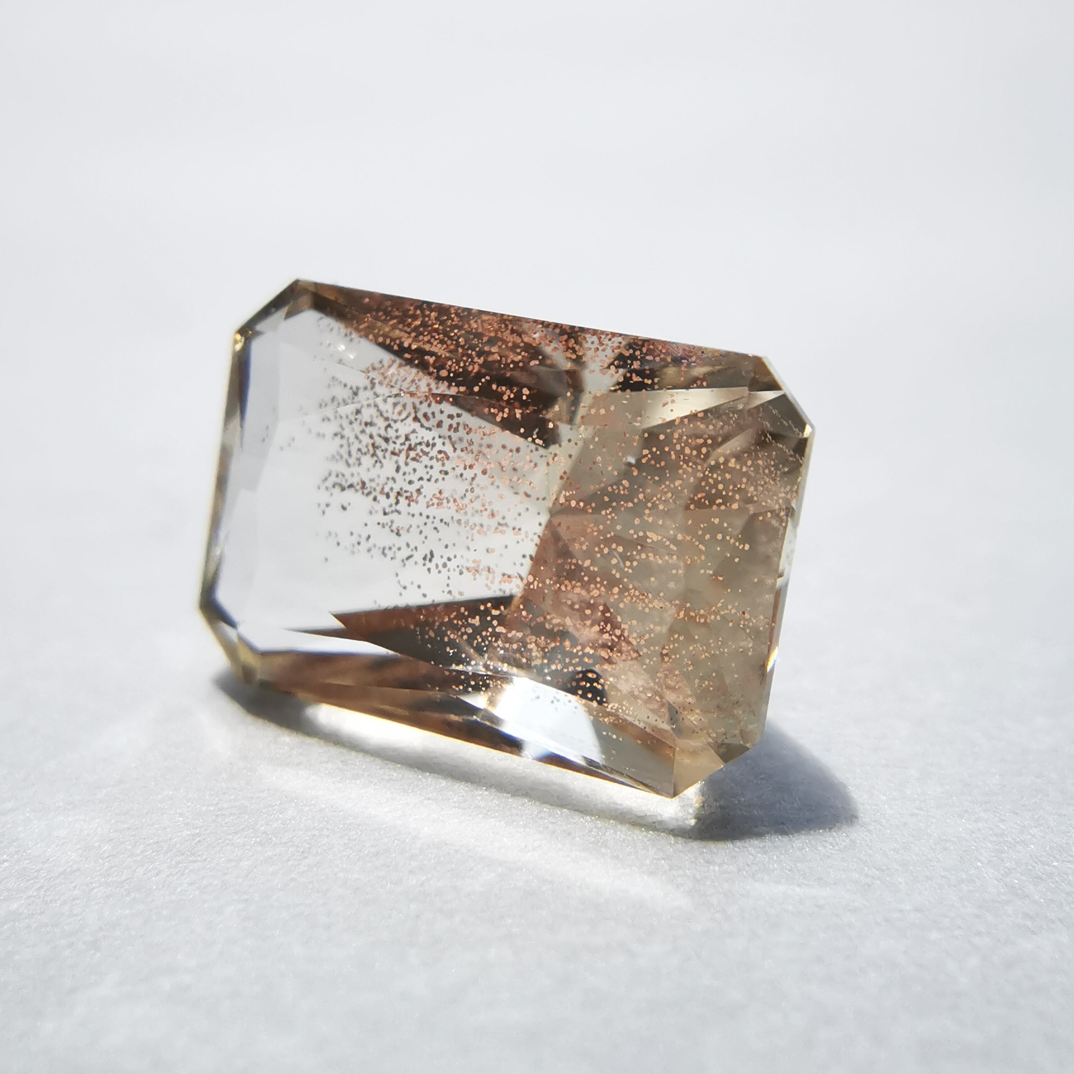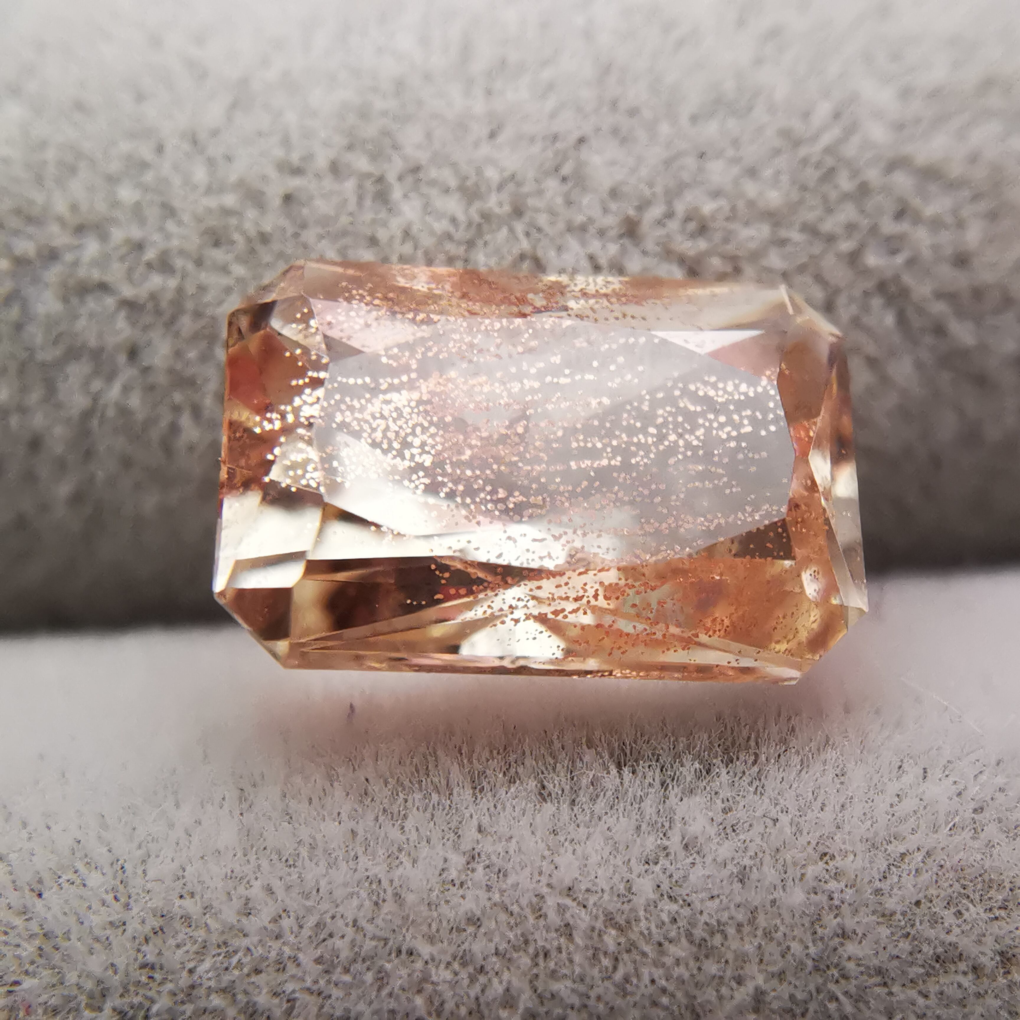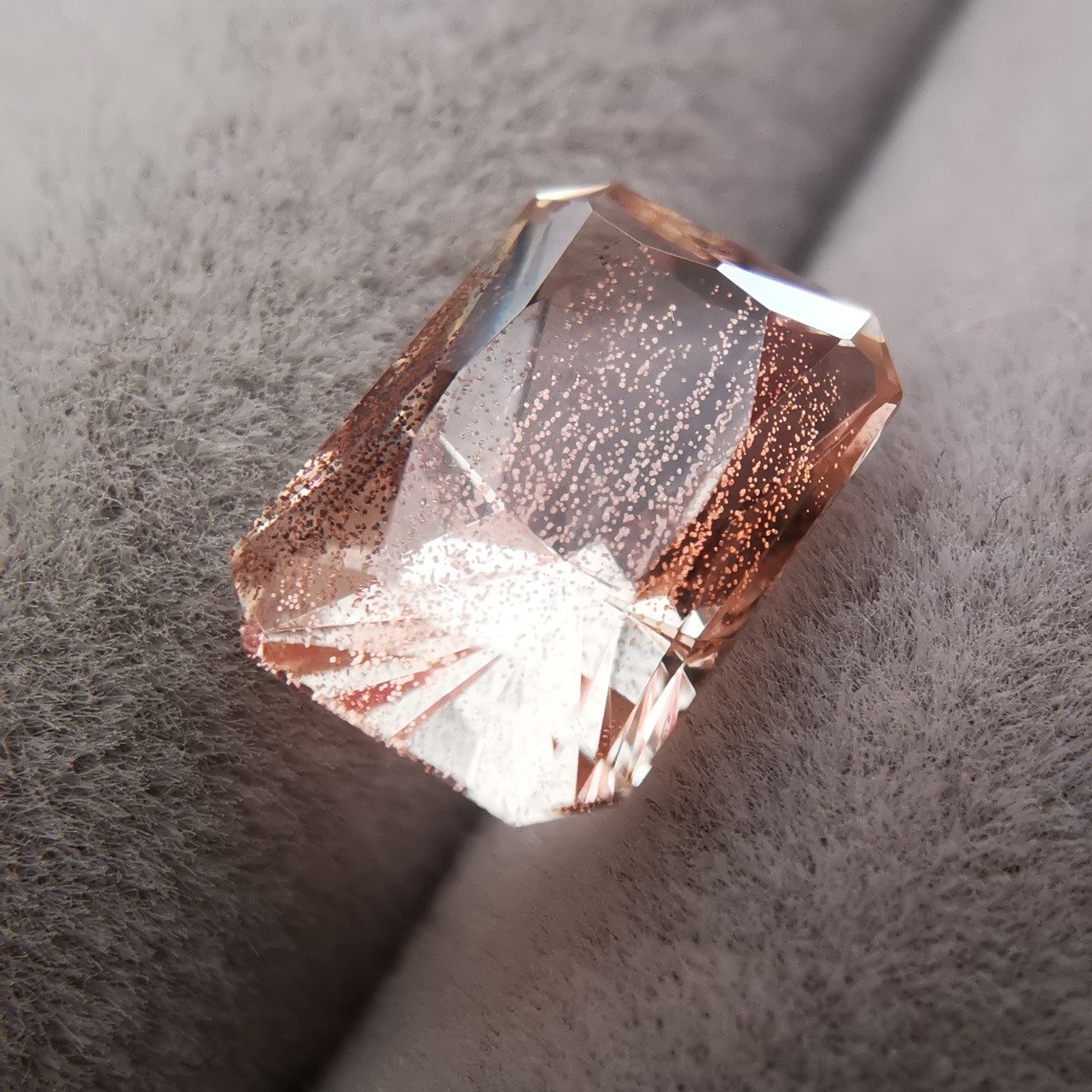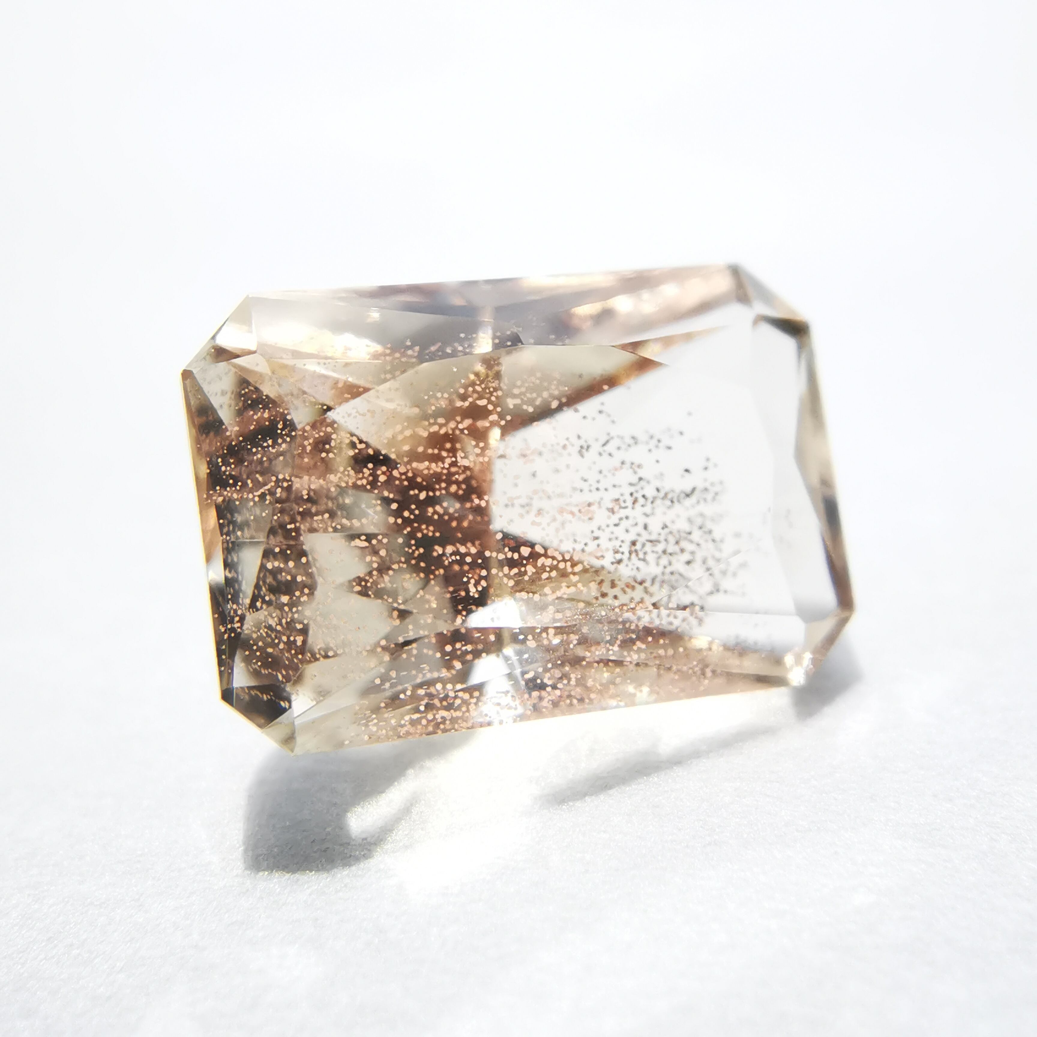 淡いゴールドカラーの石に、流れ落ちるような大粒の銅シラーがたっぷり入ったオレゴンサンストーンです。
