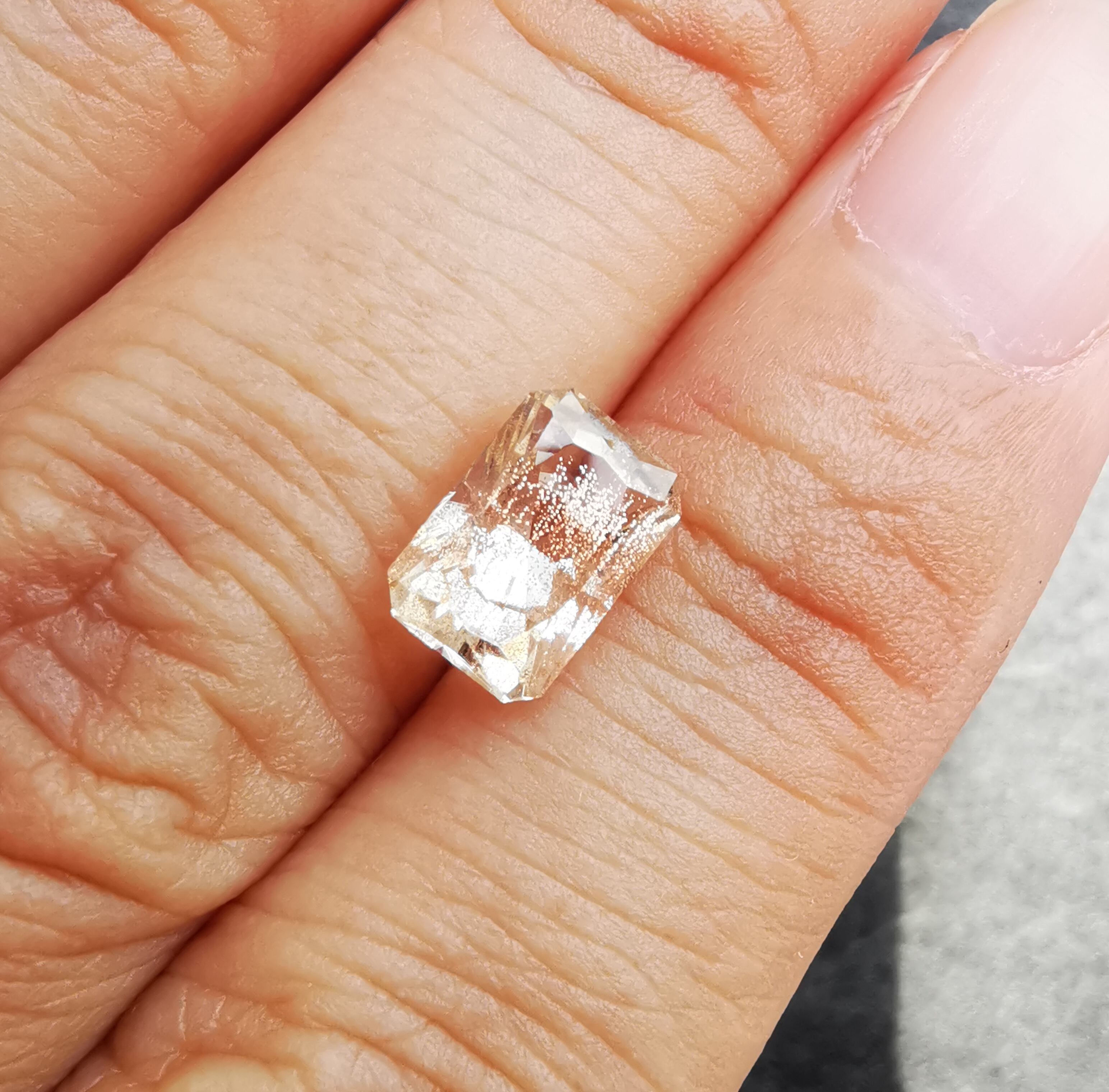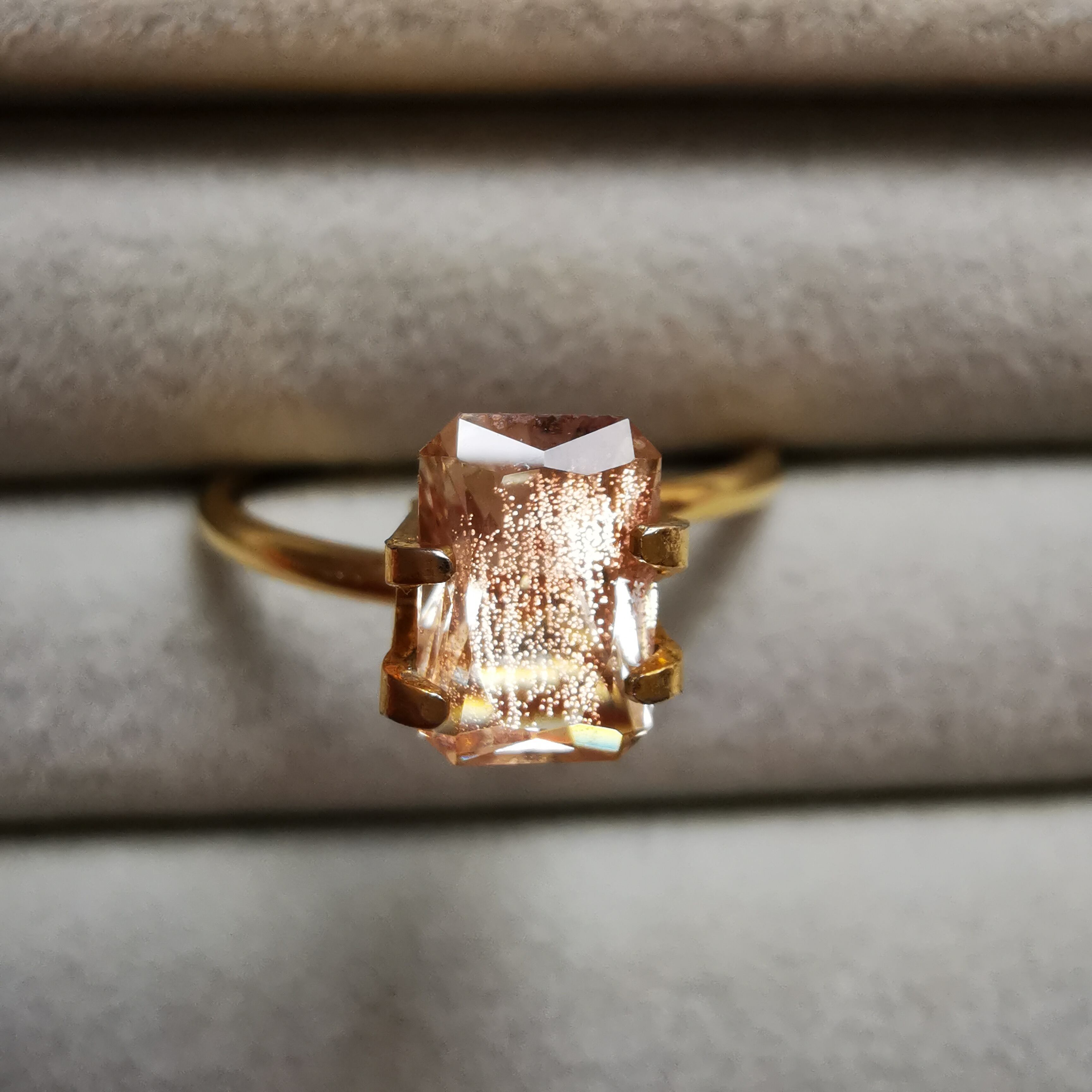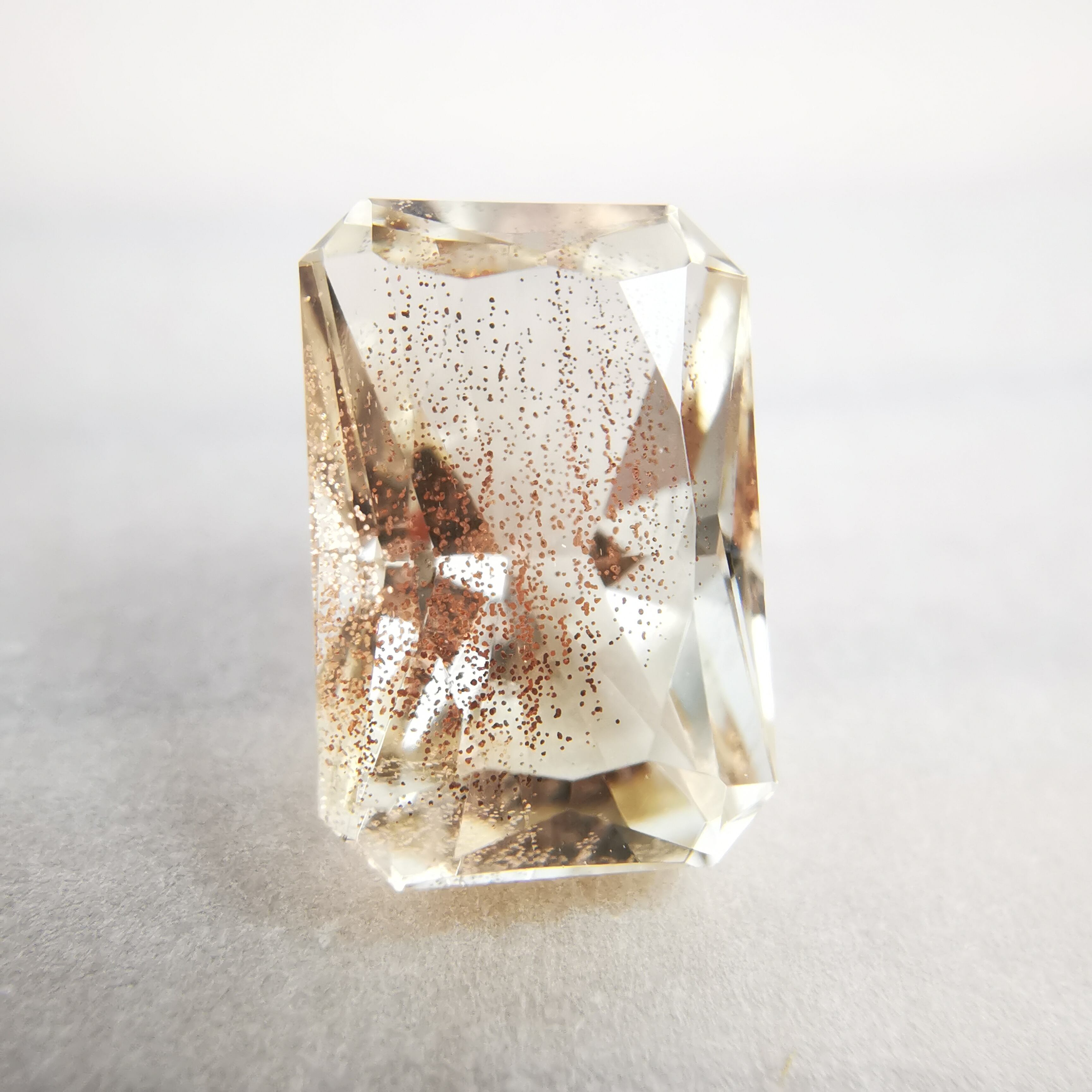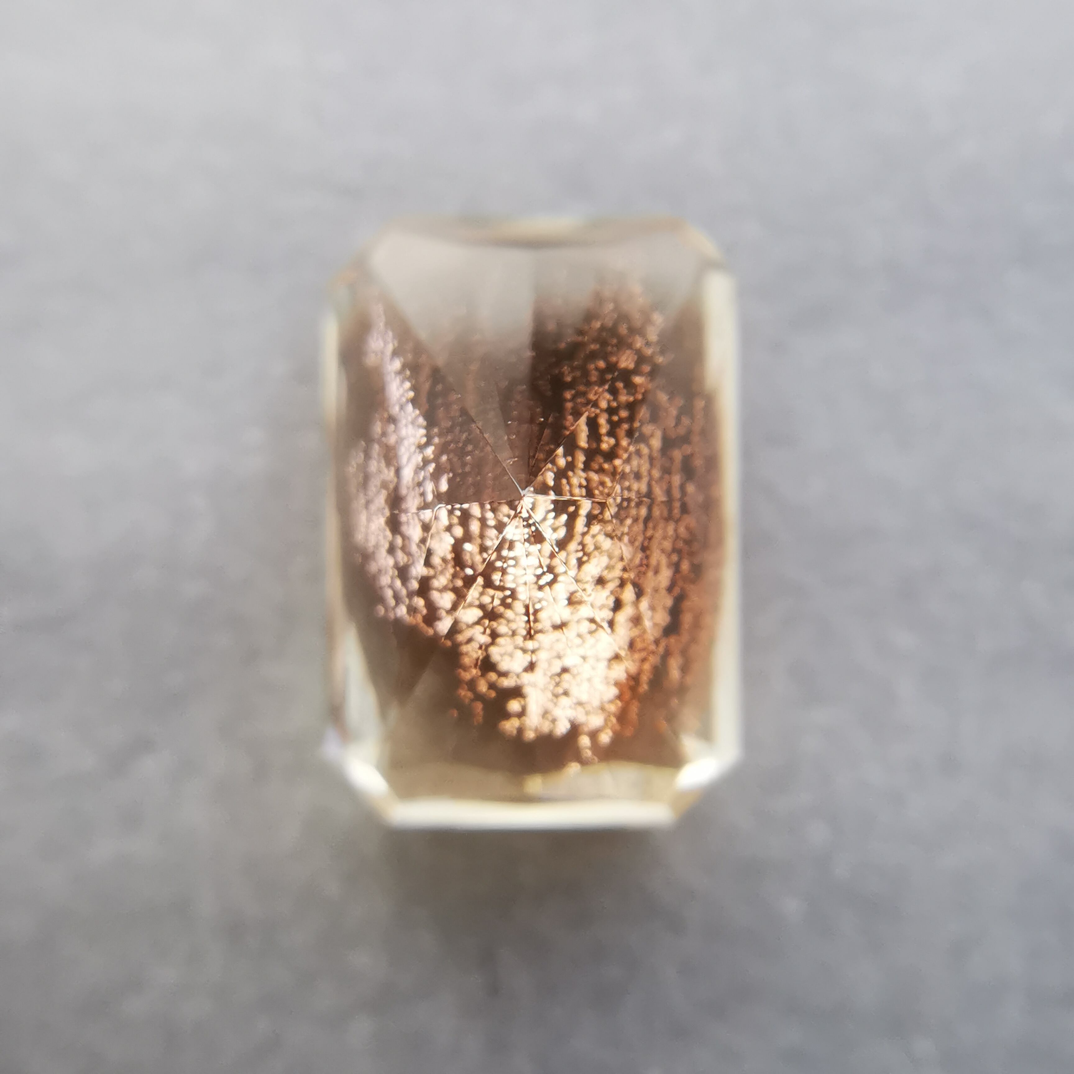 淡いゴールドカラーの石に、流れ落ちるような大粒の銅シラーがたっぷり入ったオレゴンサンストーンです。