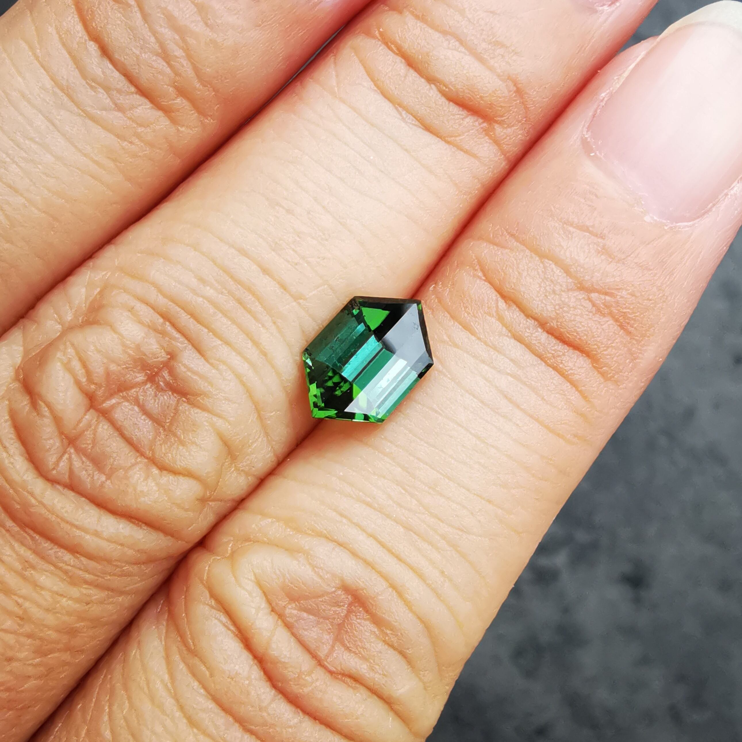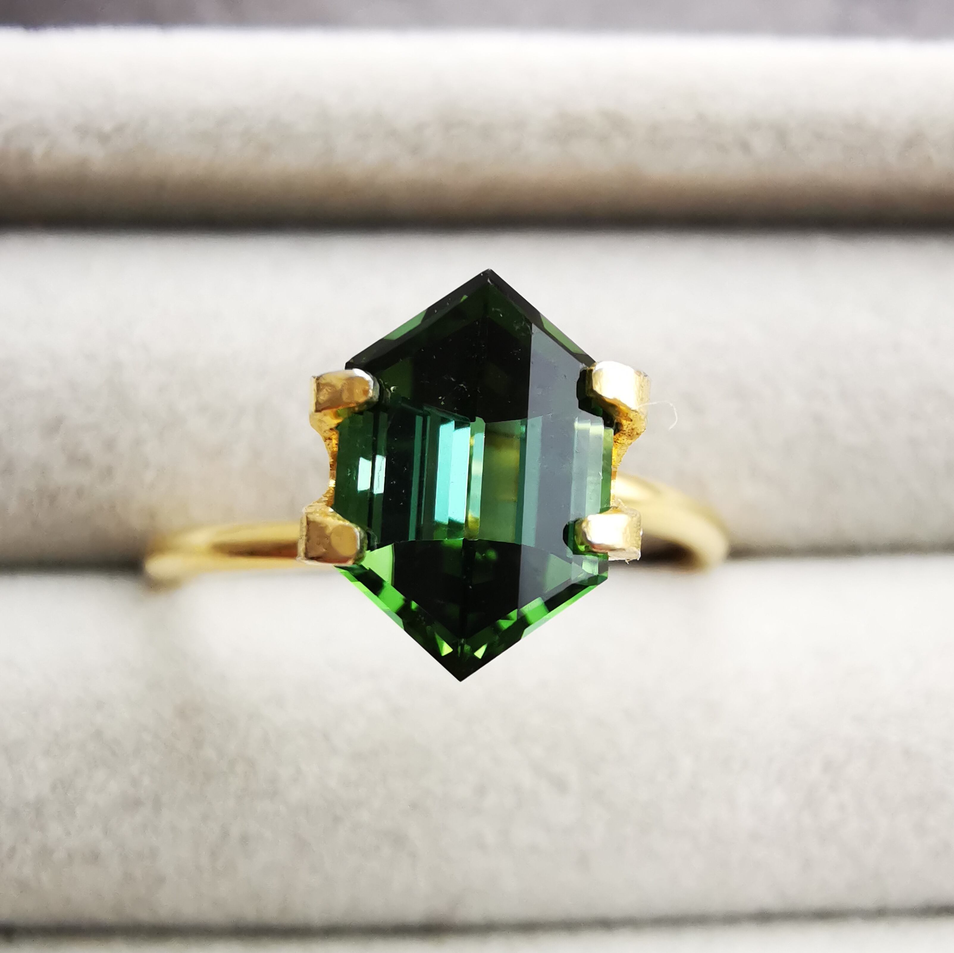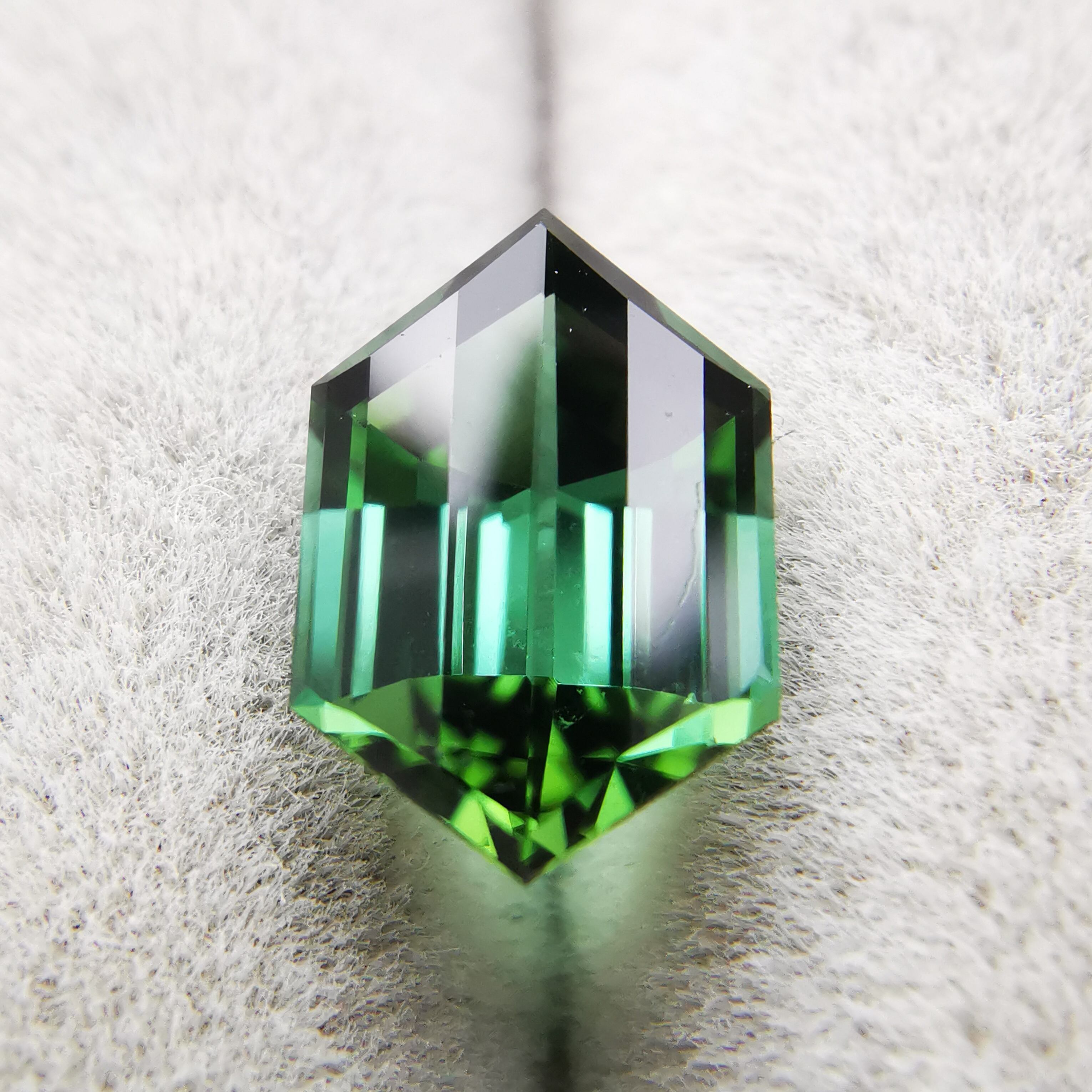 ルースケースの中では暗く見えましたが、取り出して光に当てた途端、グリーンのグラデーションが輝くトルマリンです。