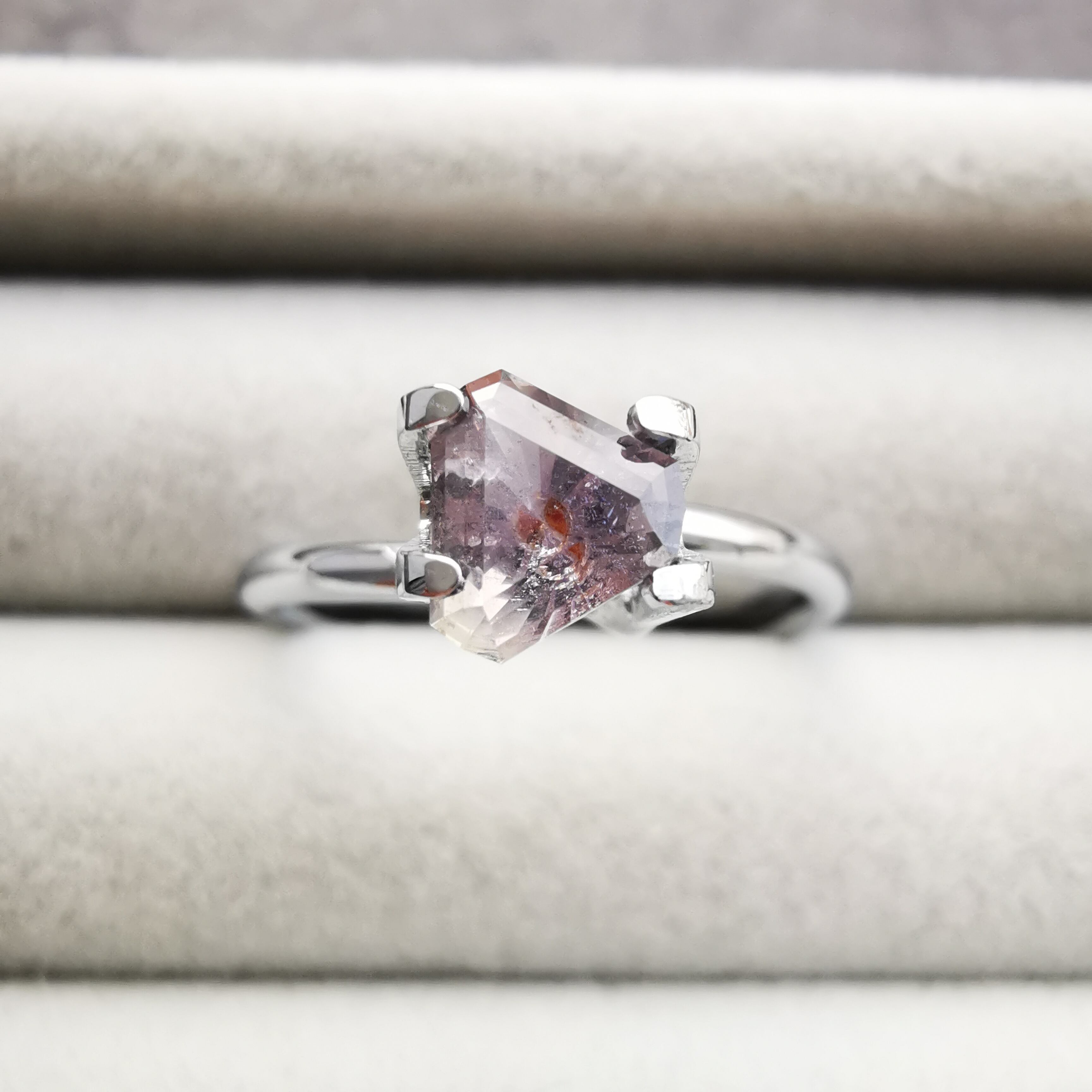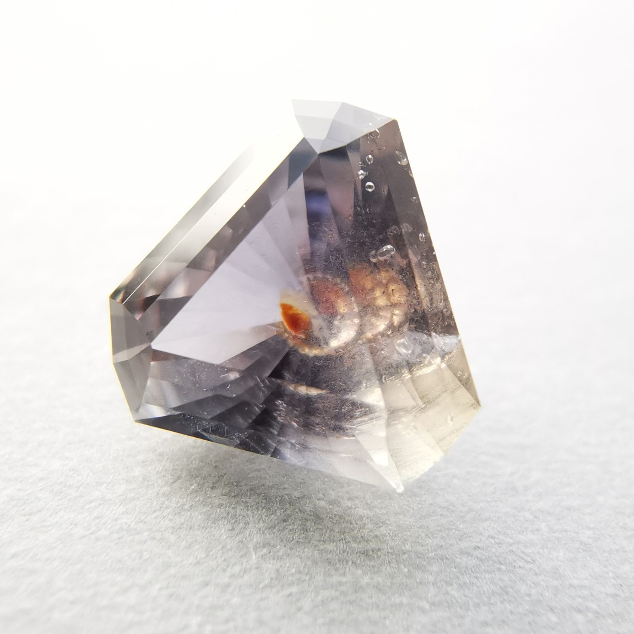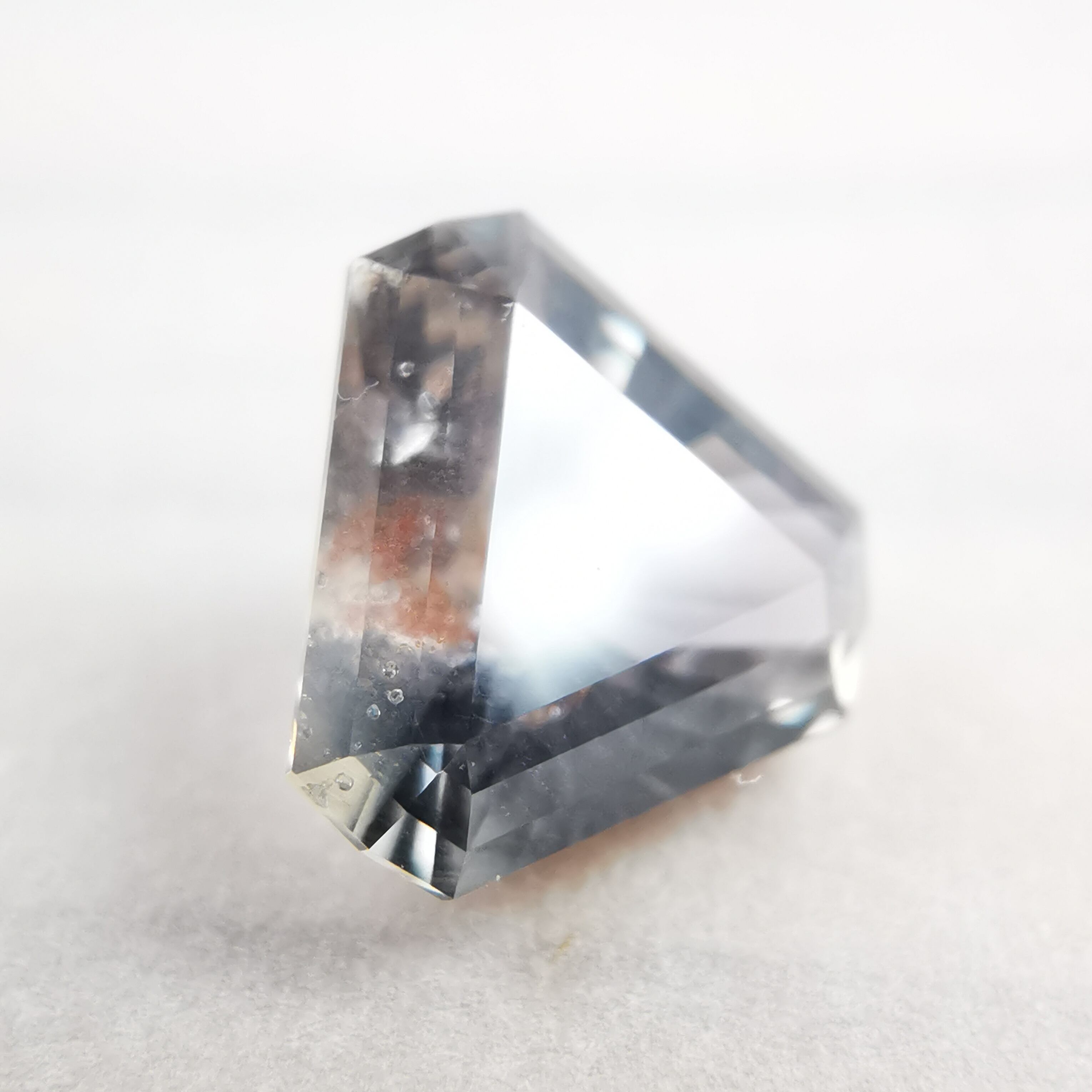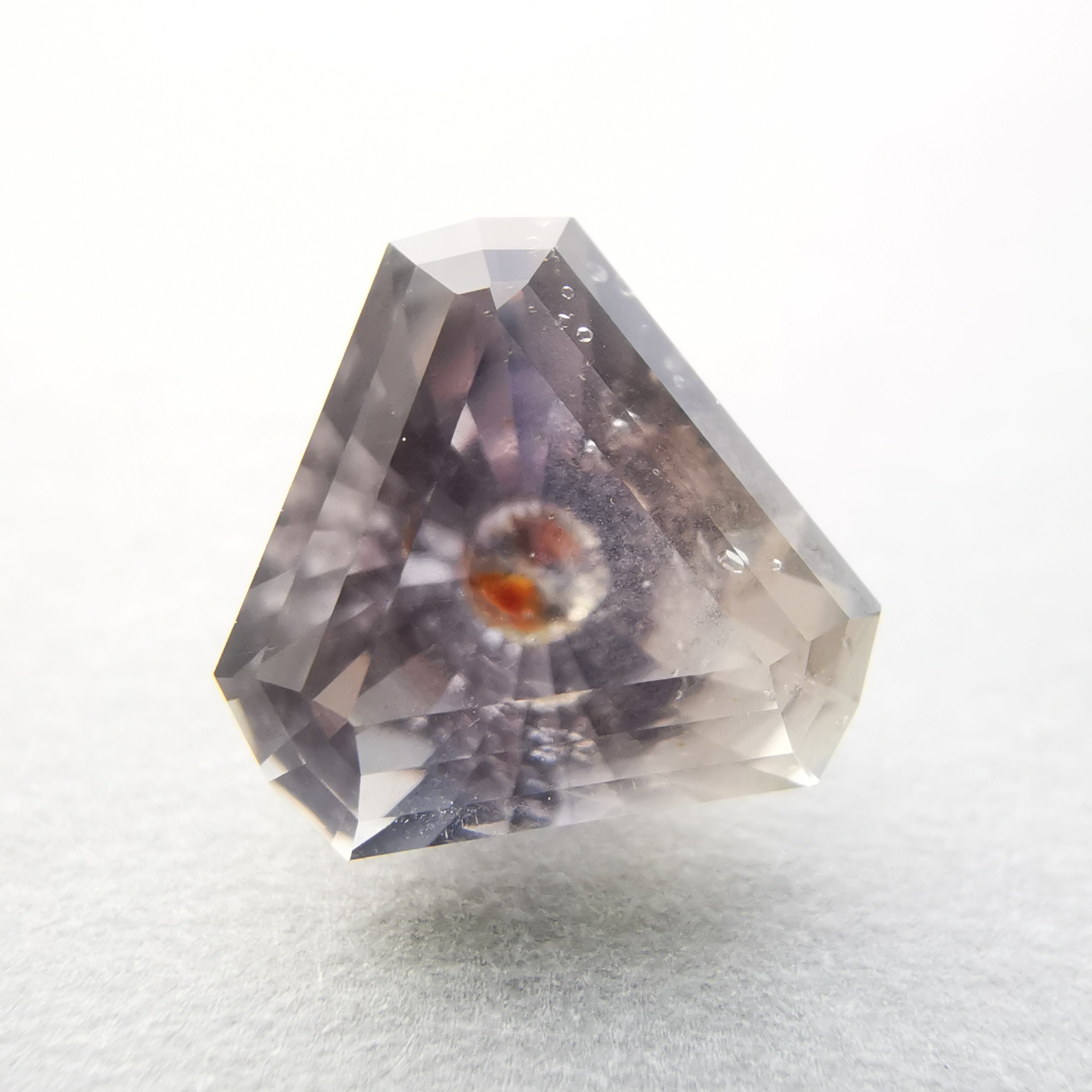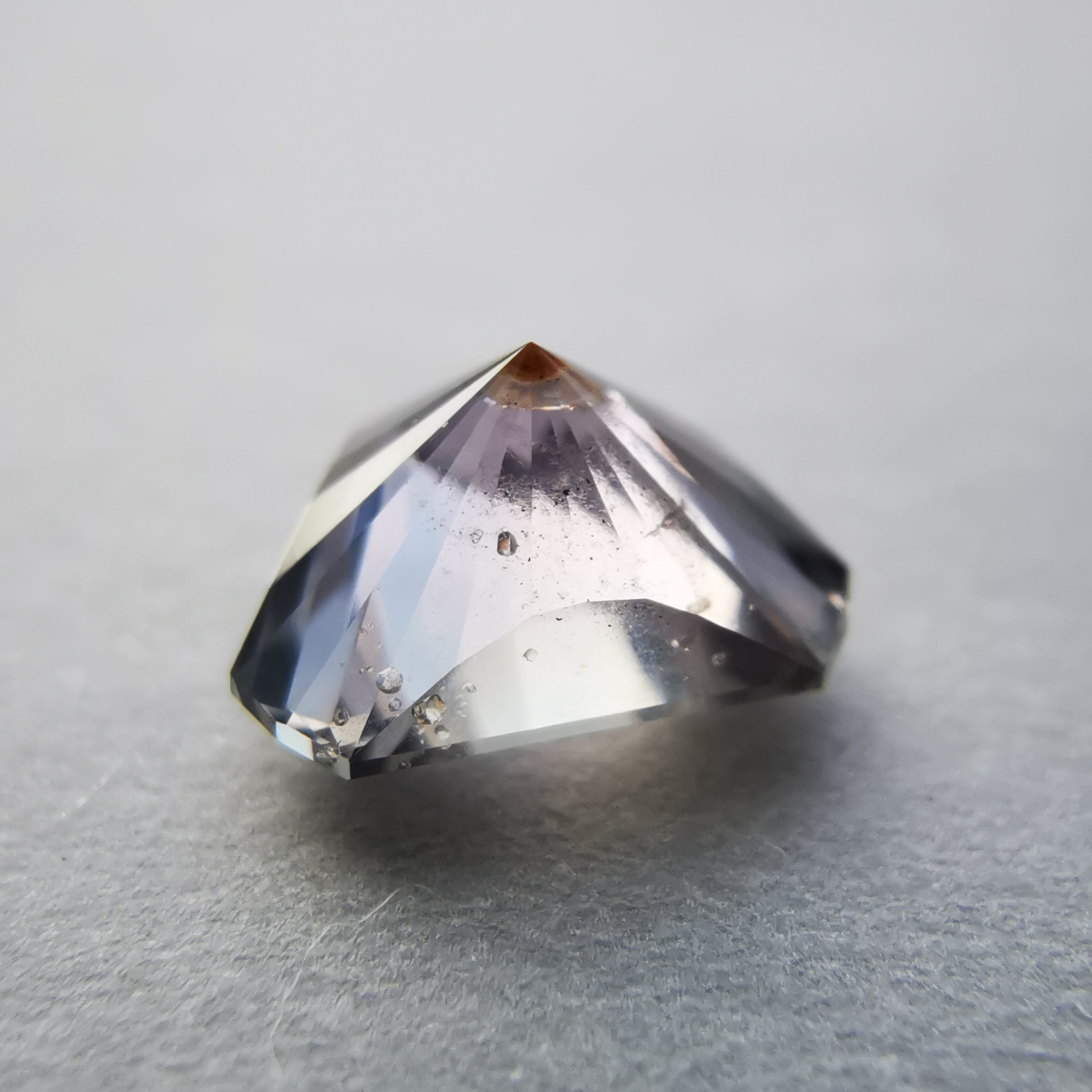 ごくわずかにピンクがかった淡いグレーのサファイアです。