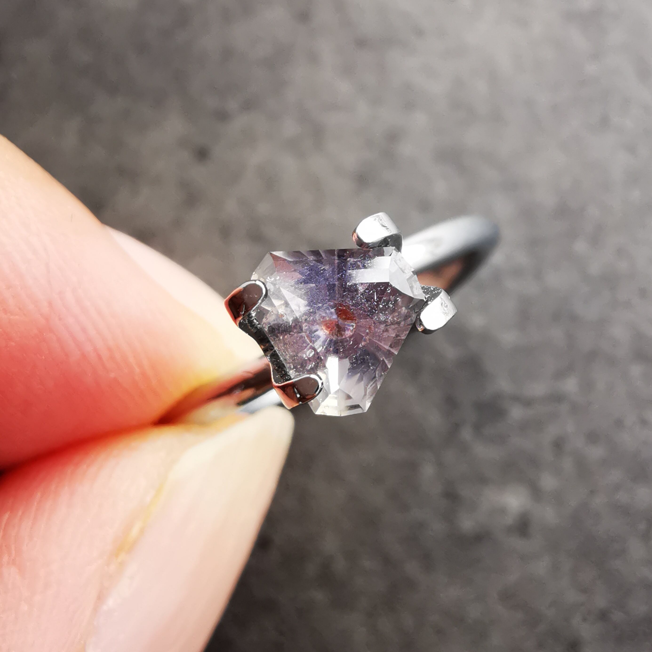 インクルージョンを上手く利用したカットで、覗き込むと、吸い込まれて異世界へ堕ちてしまいそうな、個性的な一石になりました。