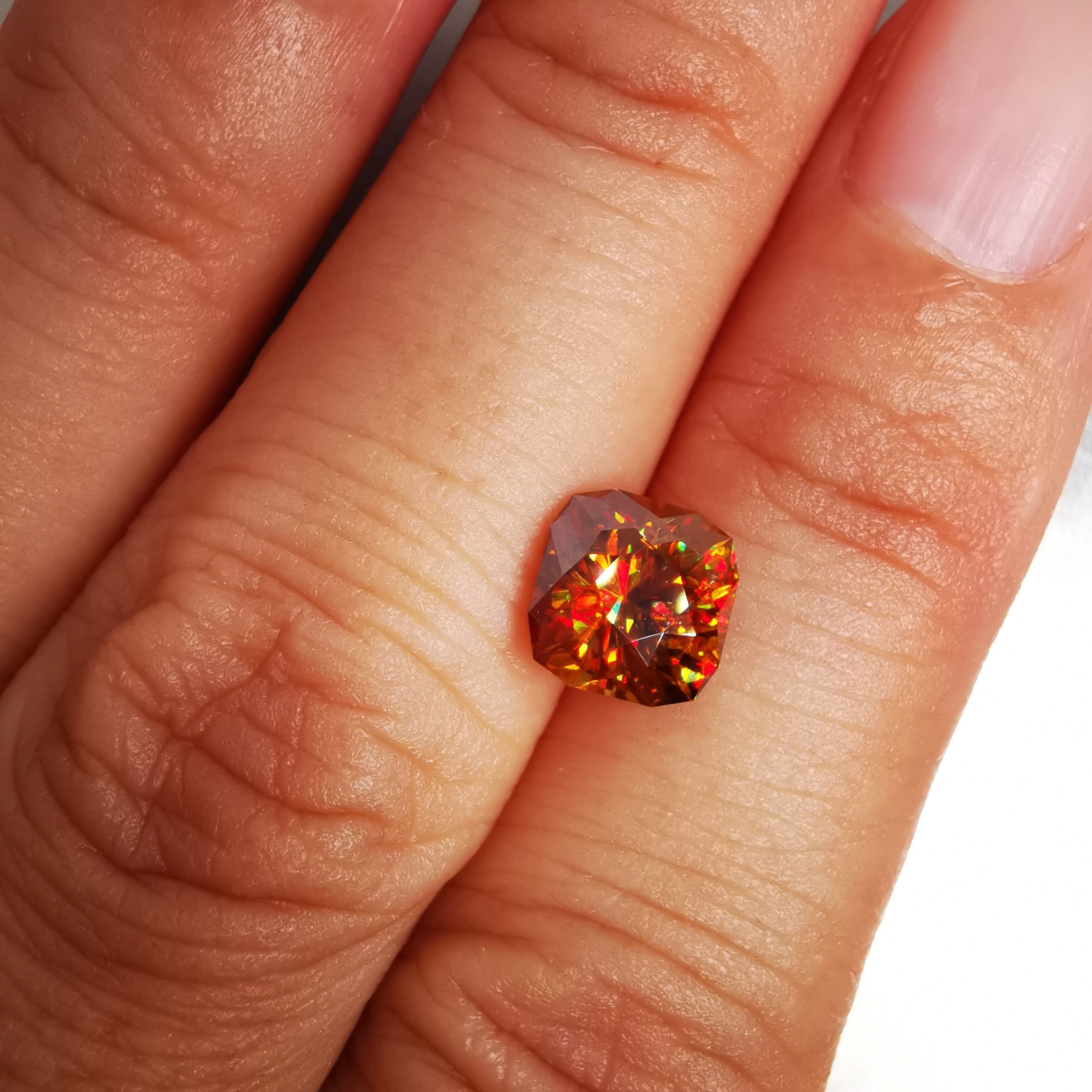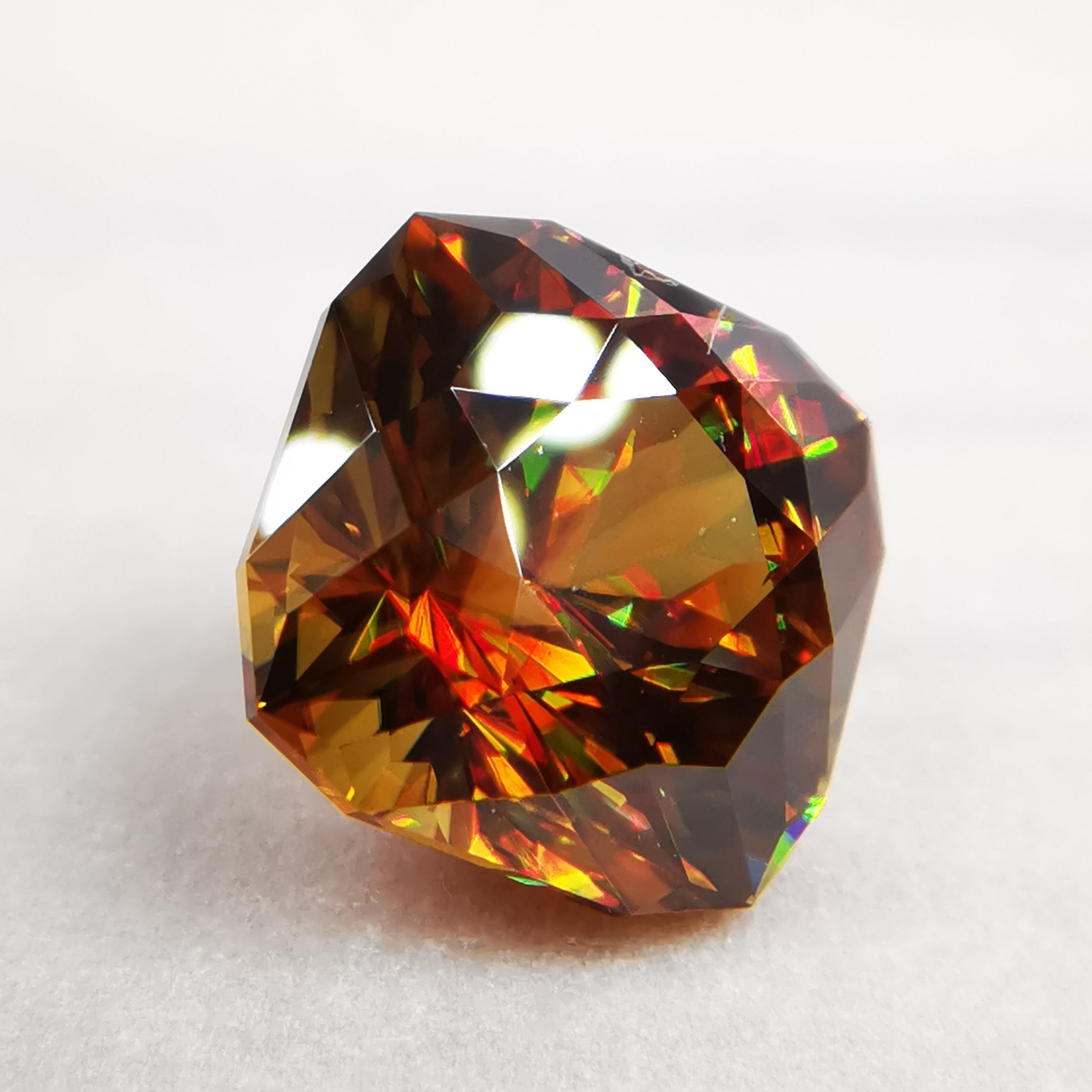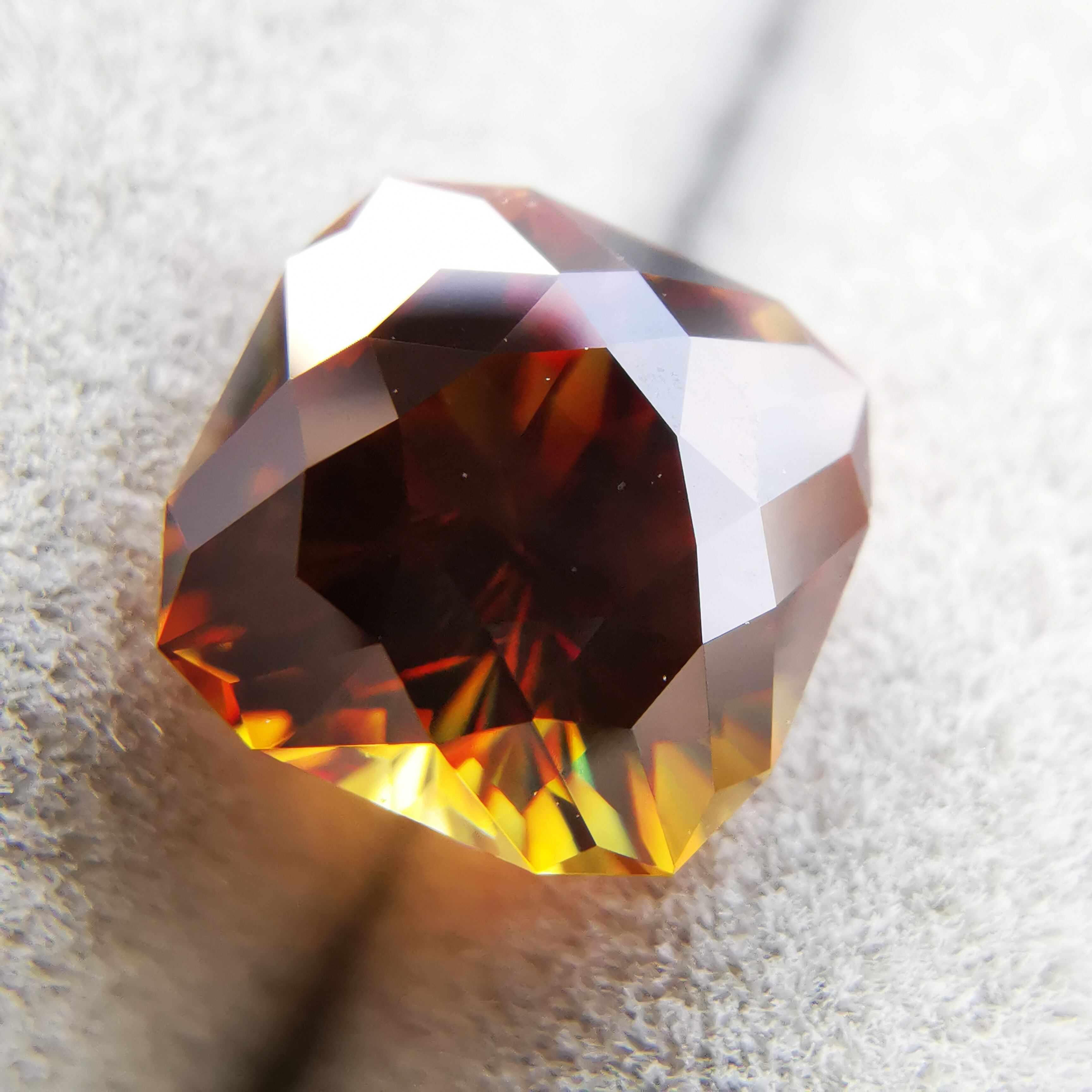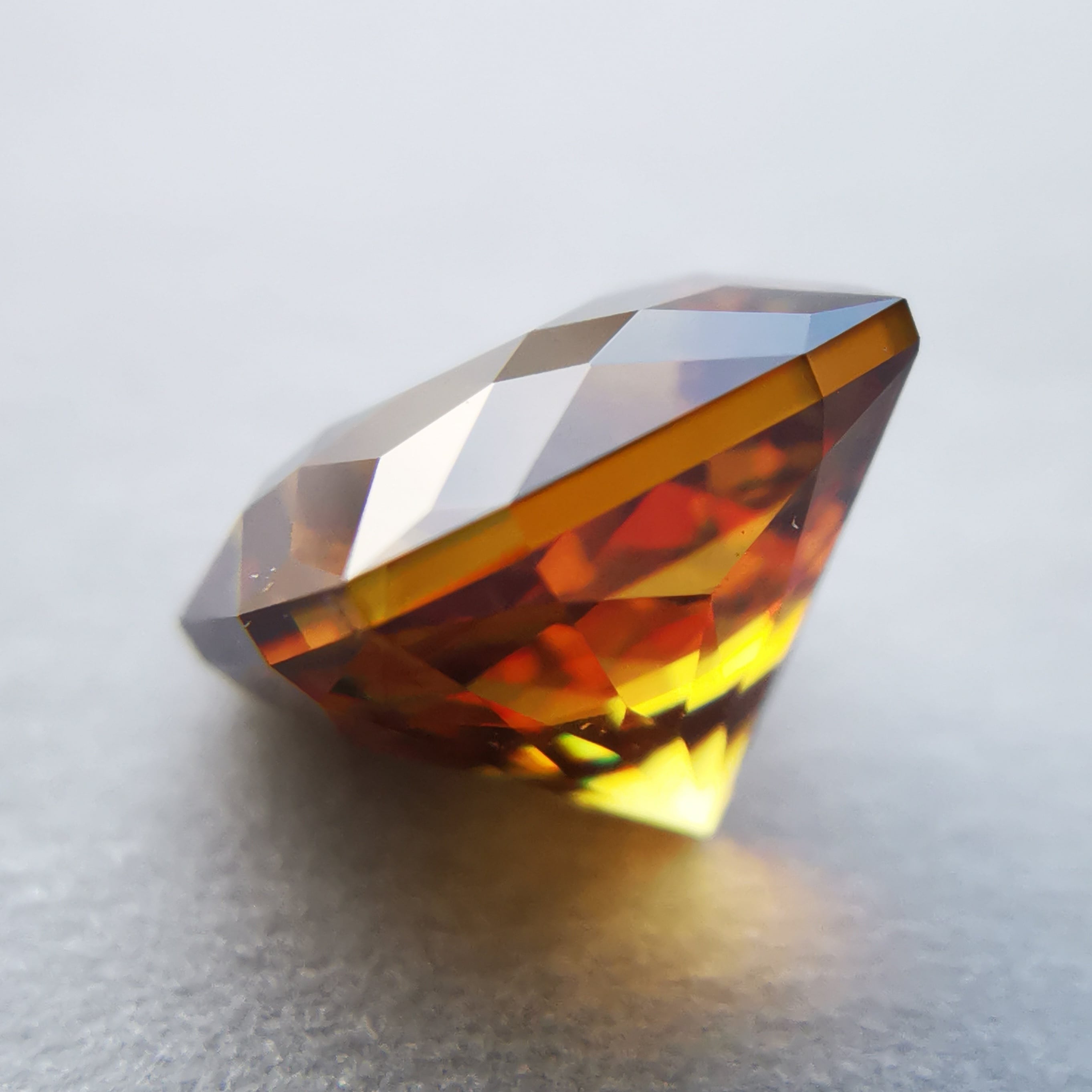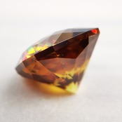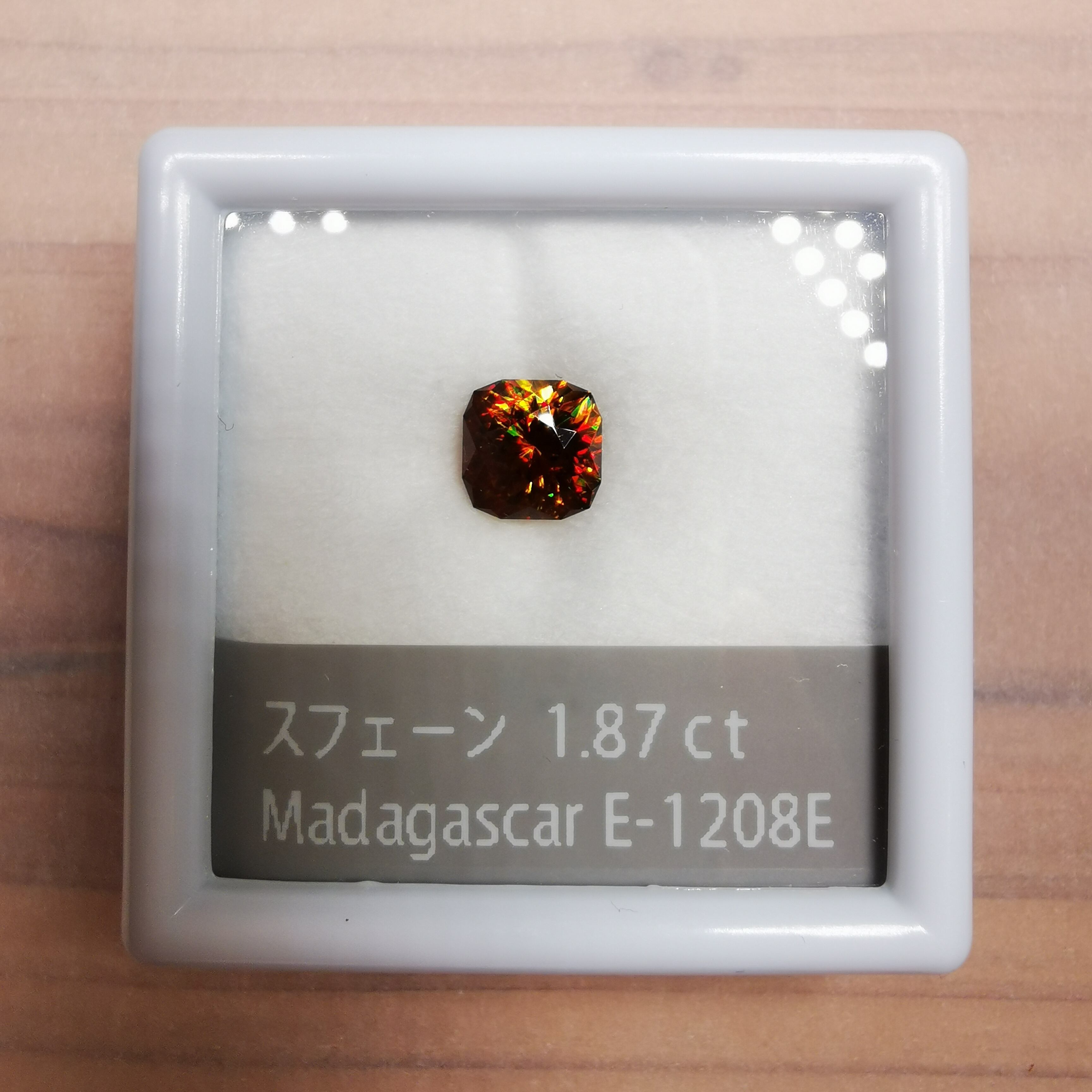 暗めのオレンジブラウンのスフェーンですが、あまりにもファイアが激しいので、照明の下では地の色が何色なのか、分かりにくいほどです。