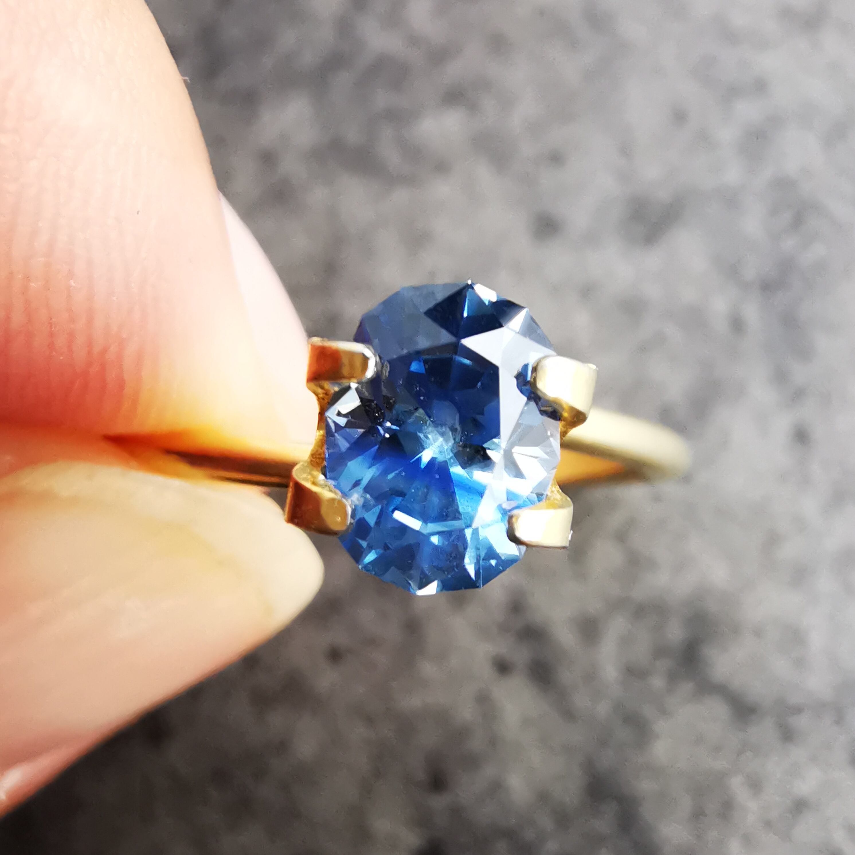 落ち着いた印象の一石ですが、指に乗せるとカラーバンドがしっかりと主張し、青が鮮やかになり華やかさが増します。