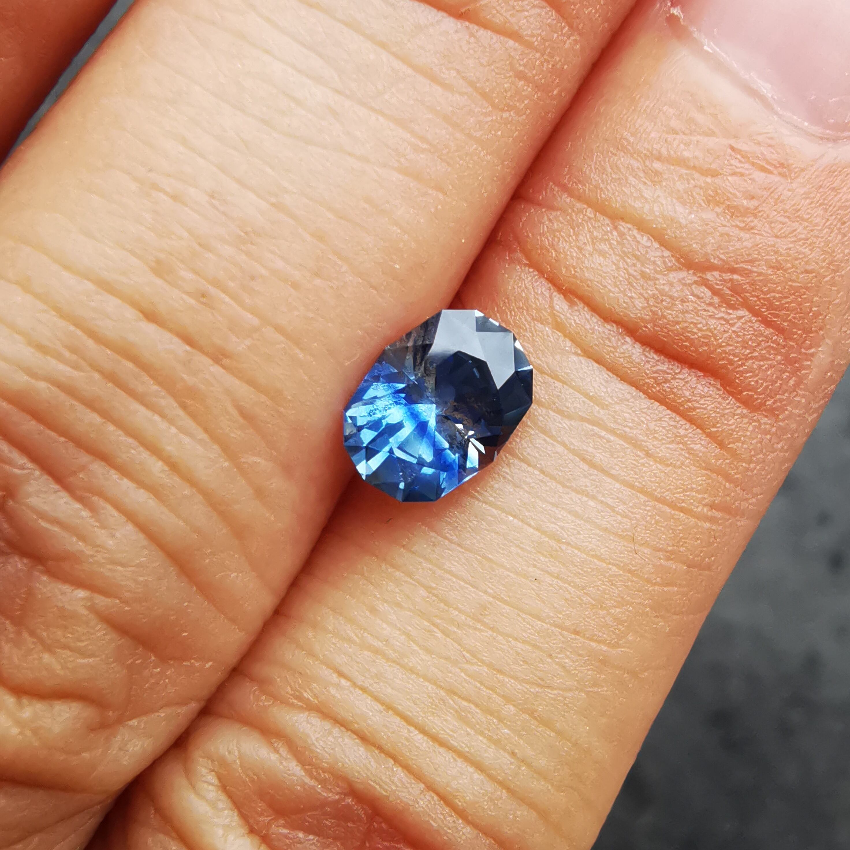 インディゴブルーのカラーバンドが数本入るクールな印象のサファイアです。