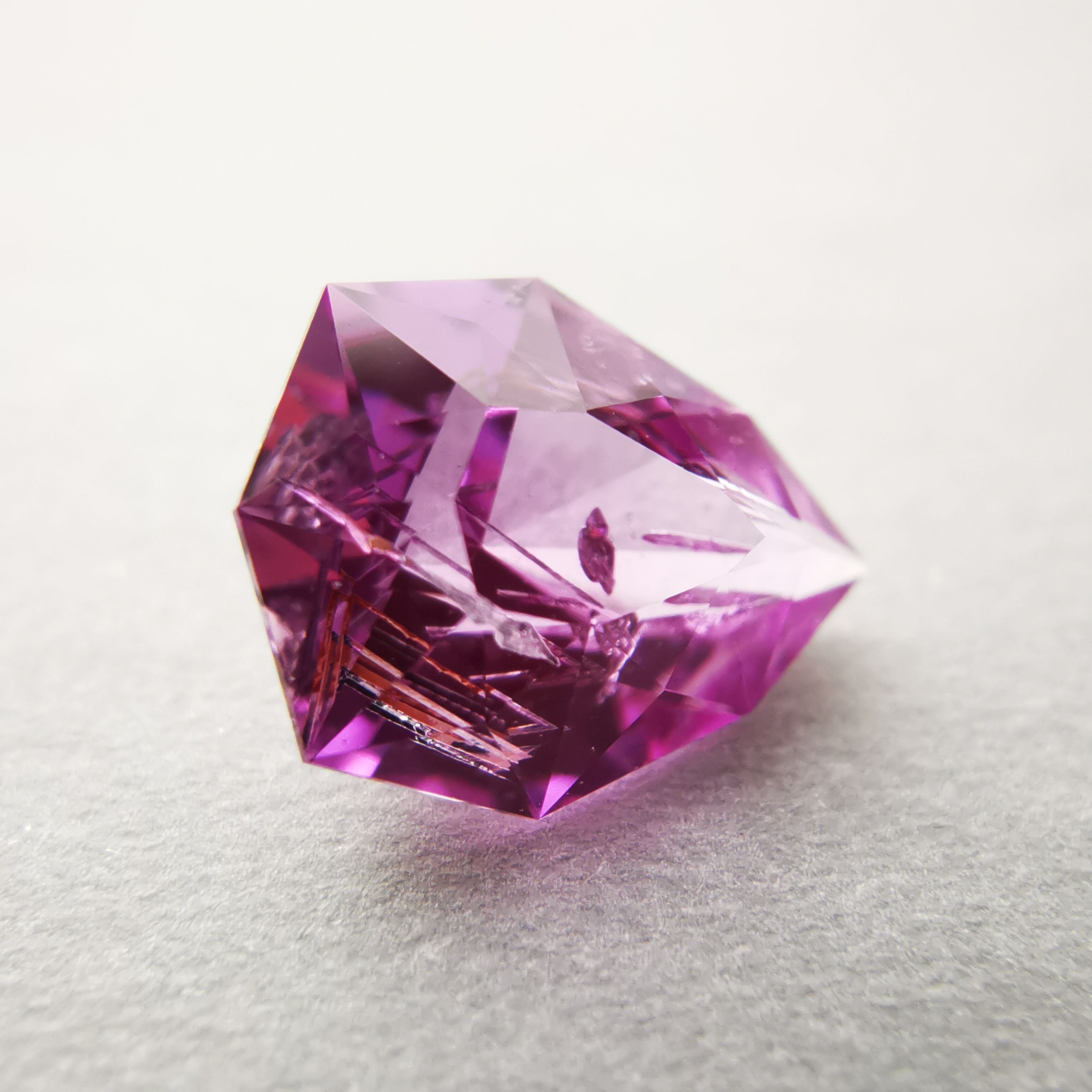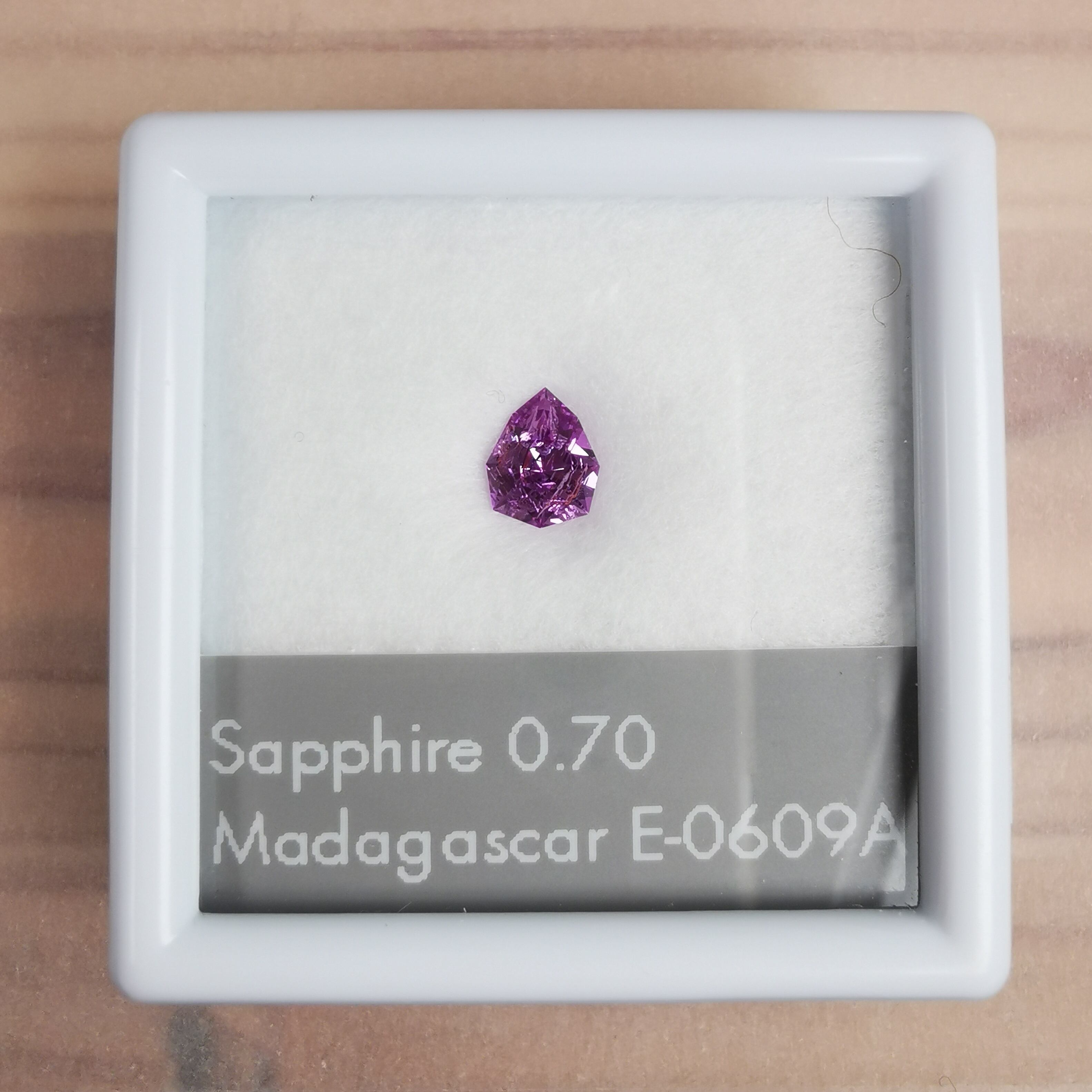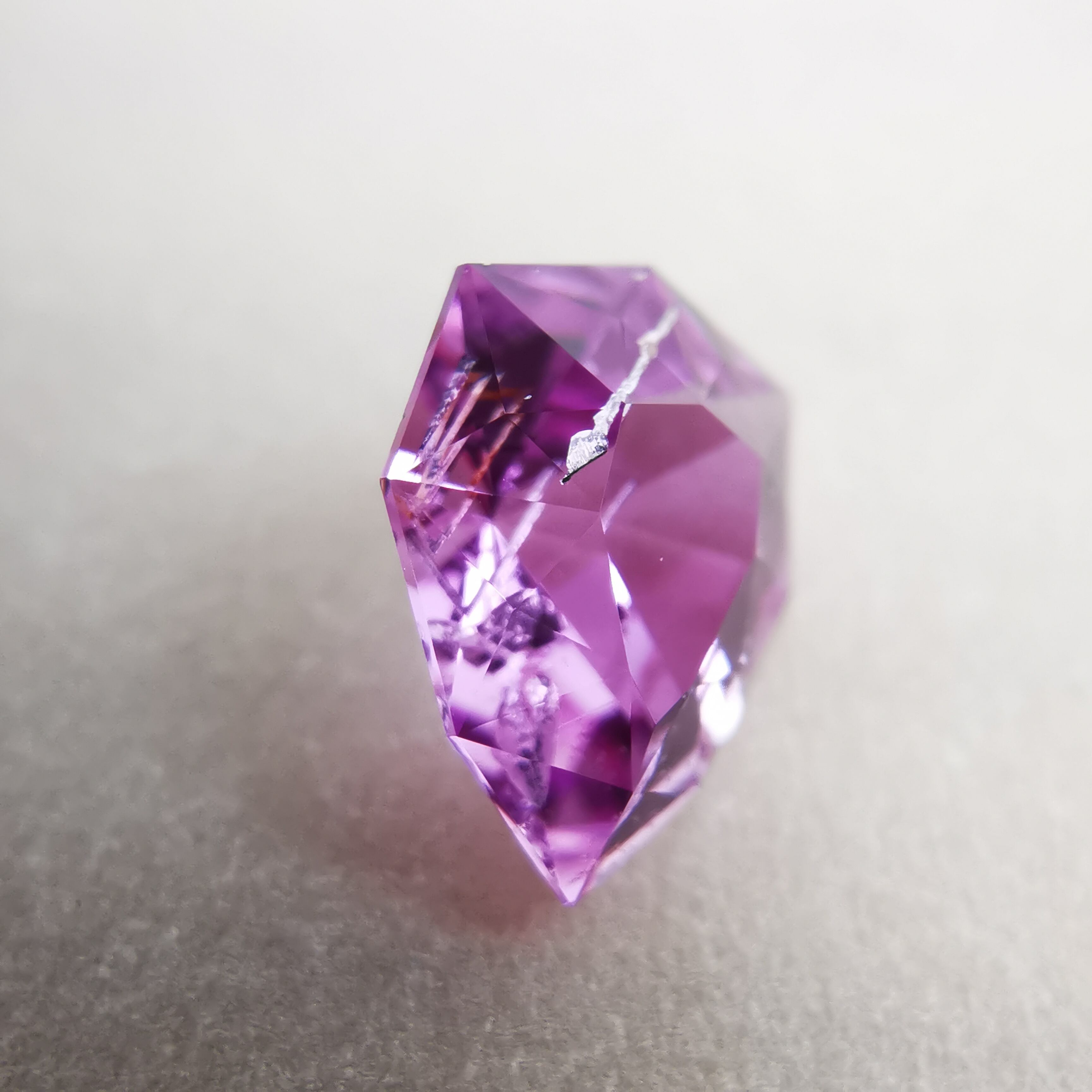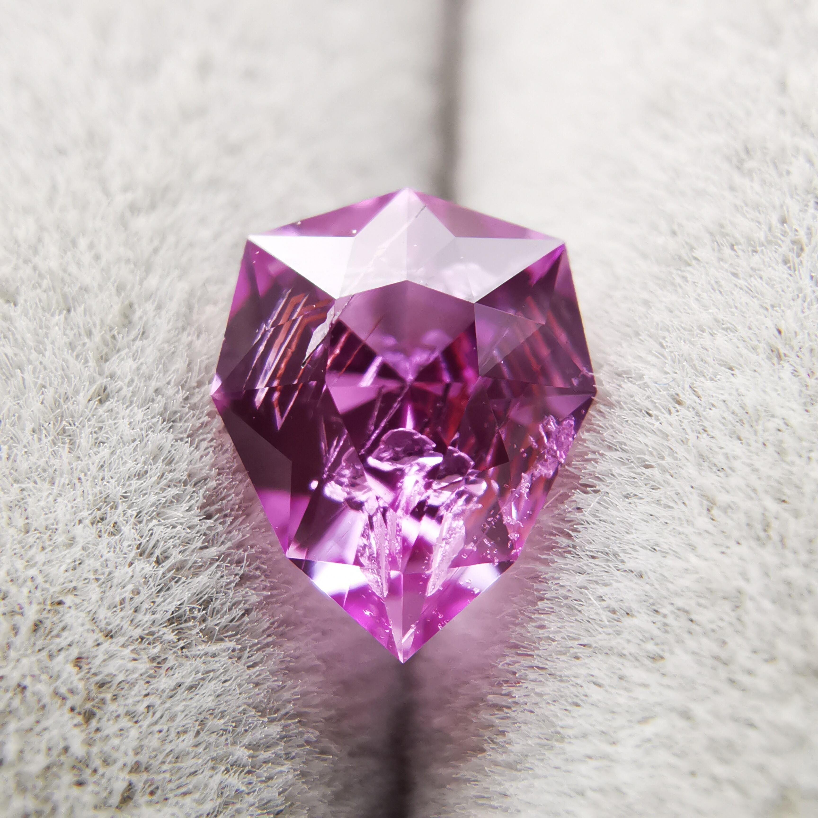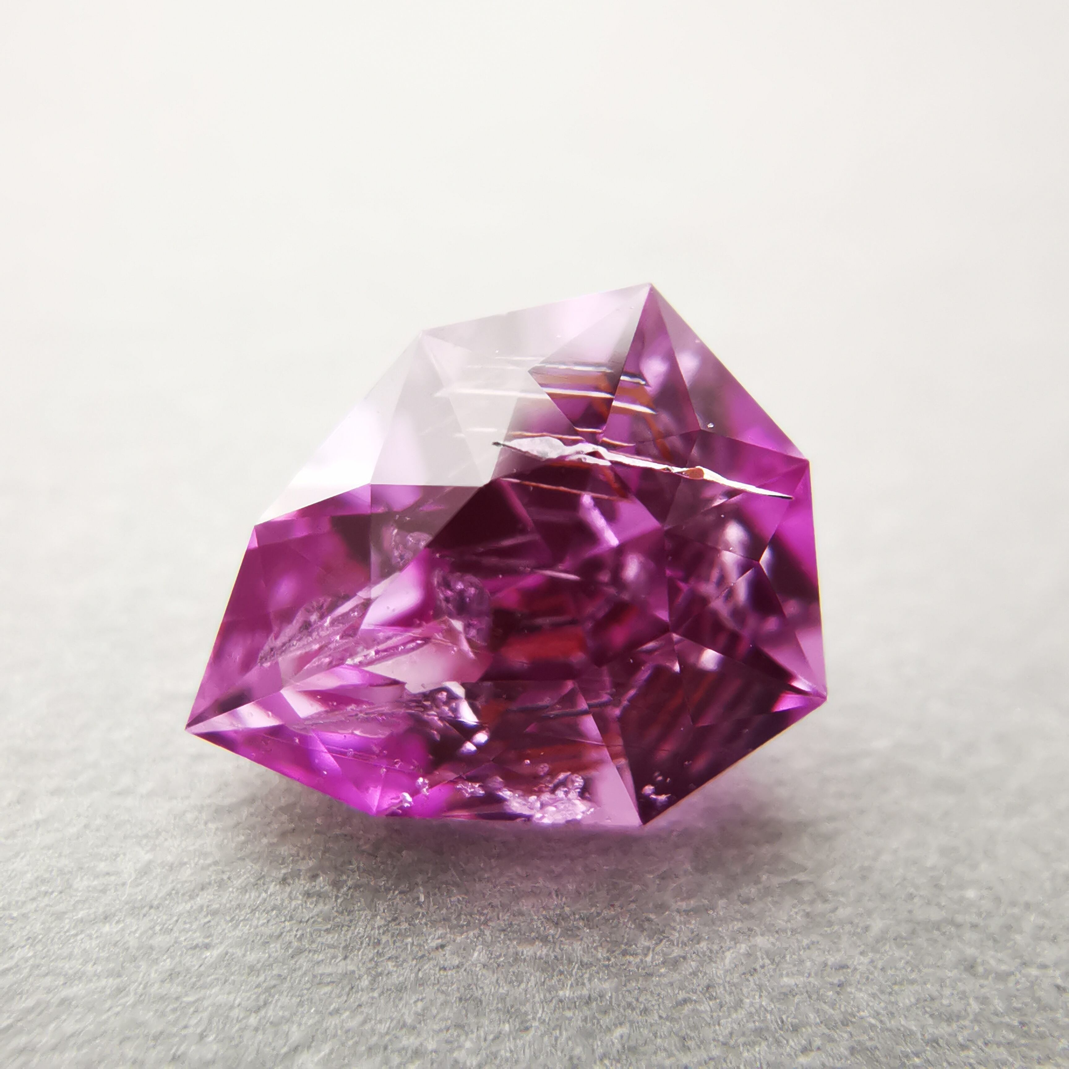 鮮やかなパープルピンク、暗さを感じない明るく輝くサファイアです。