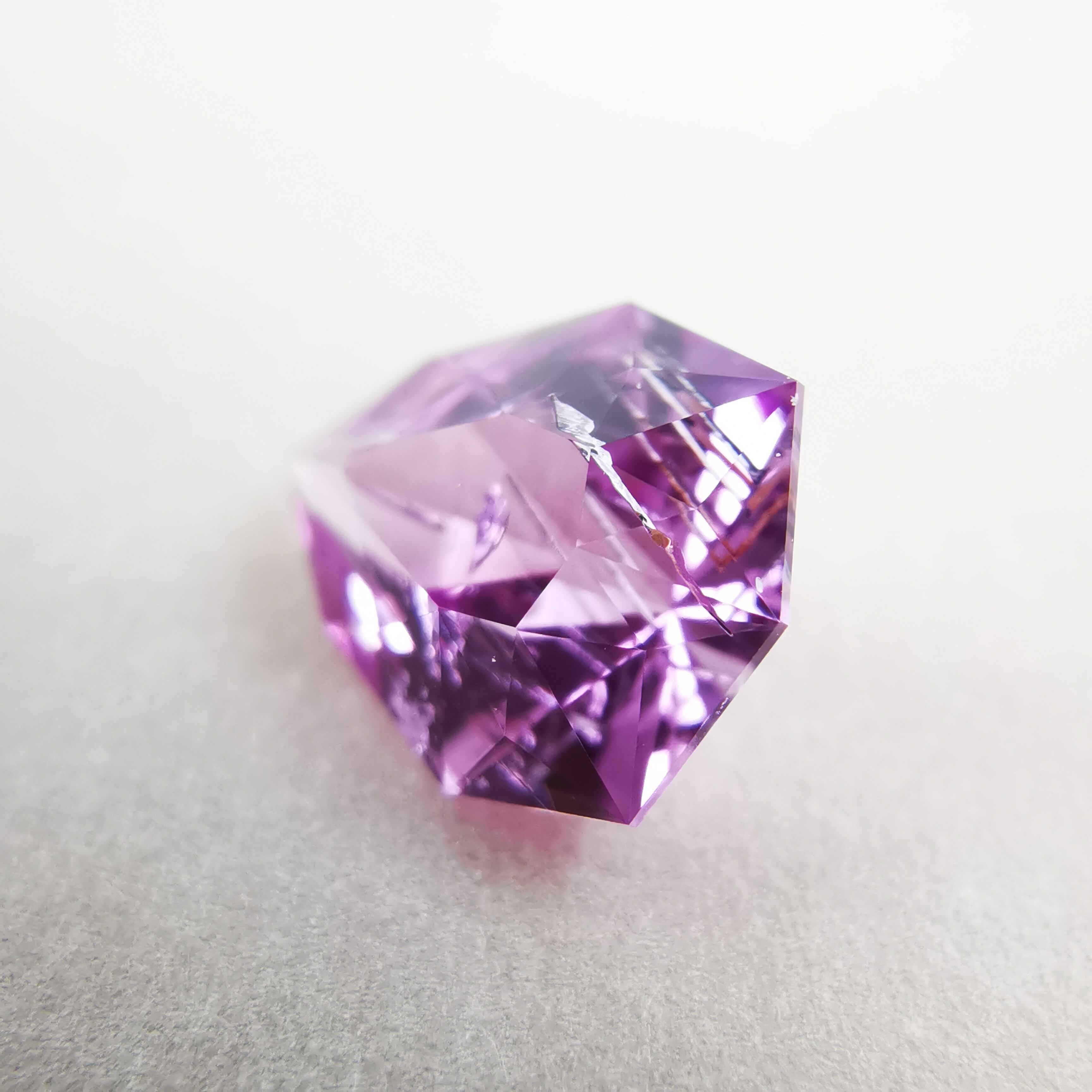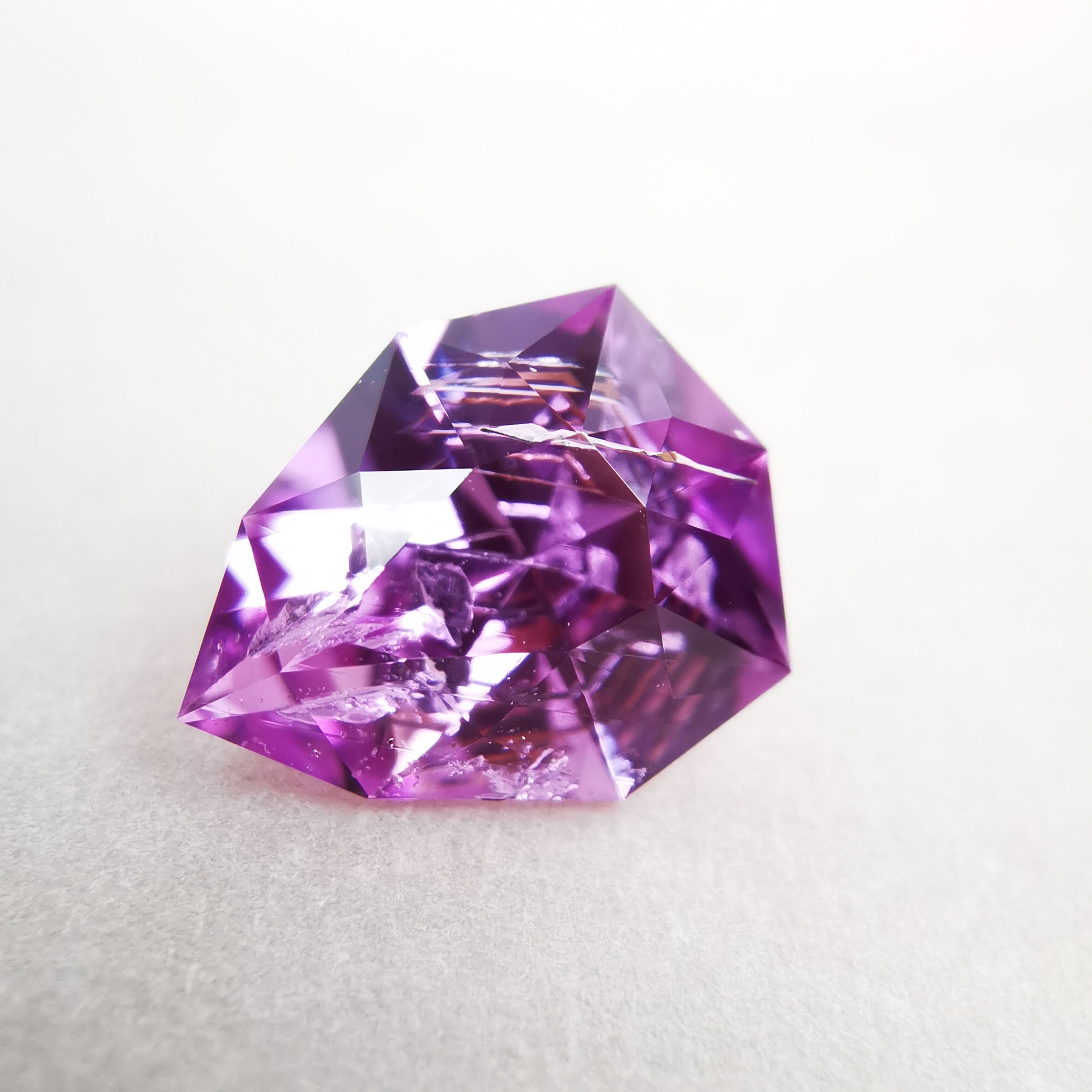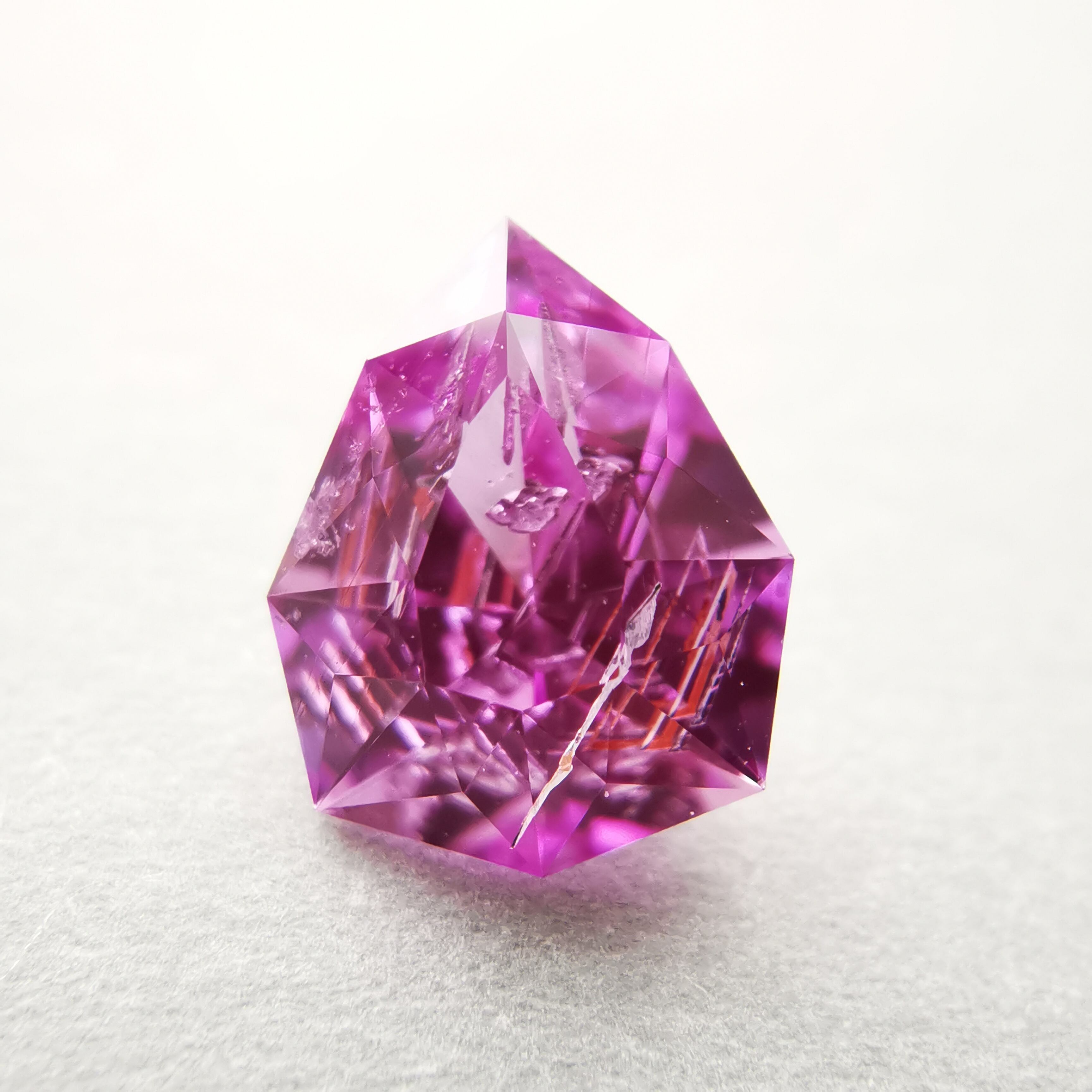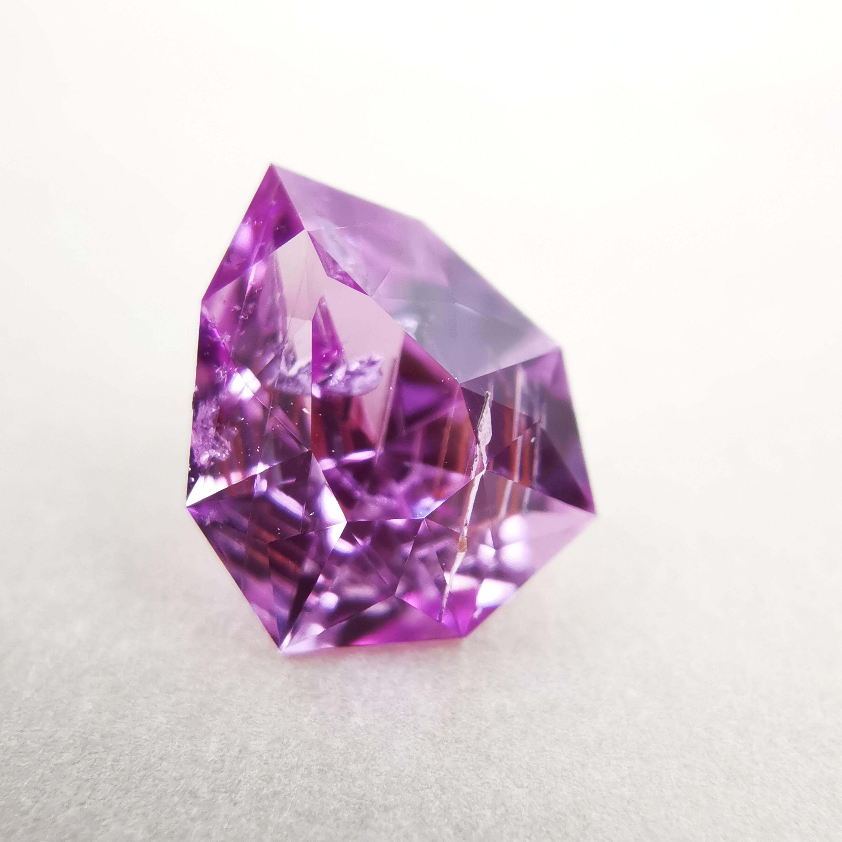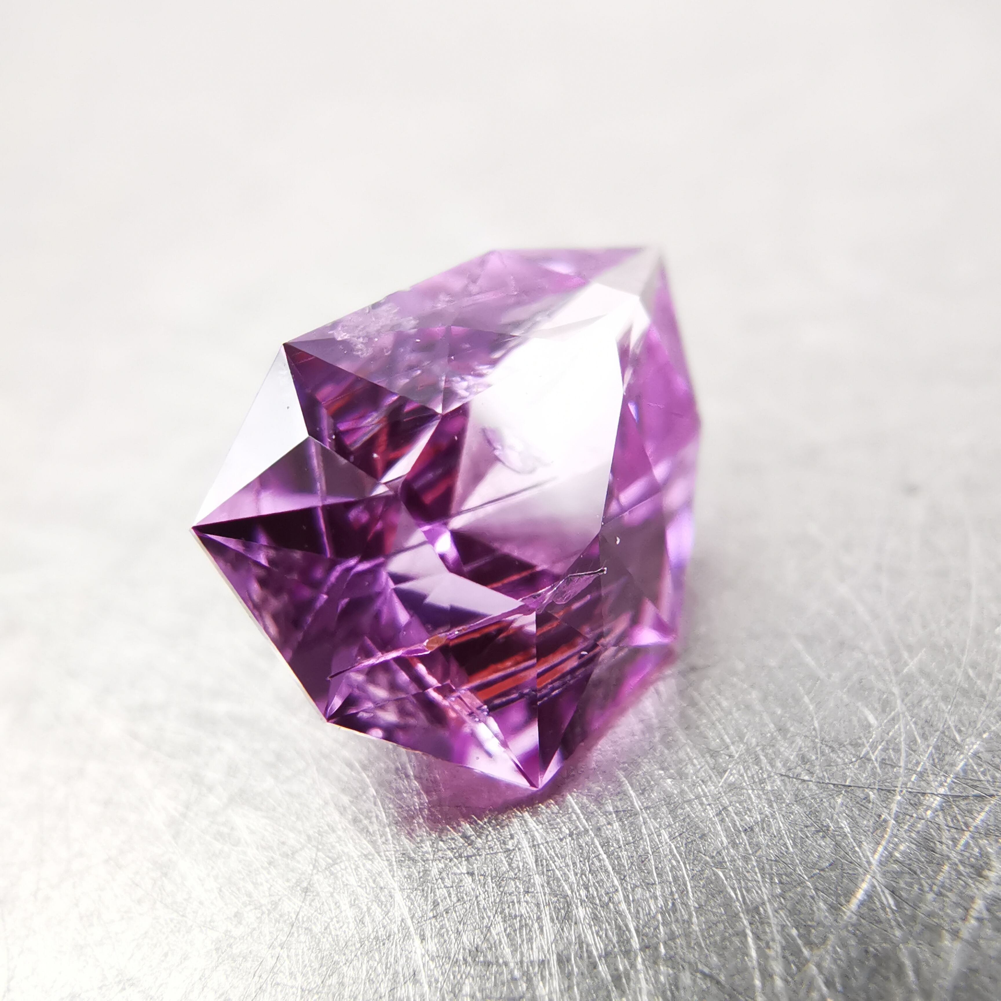 鮮やかなパープルピンク、暗さを感じない明るく輝くサファイアです。
