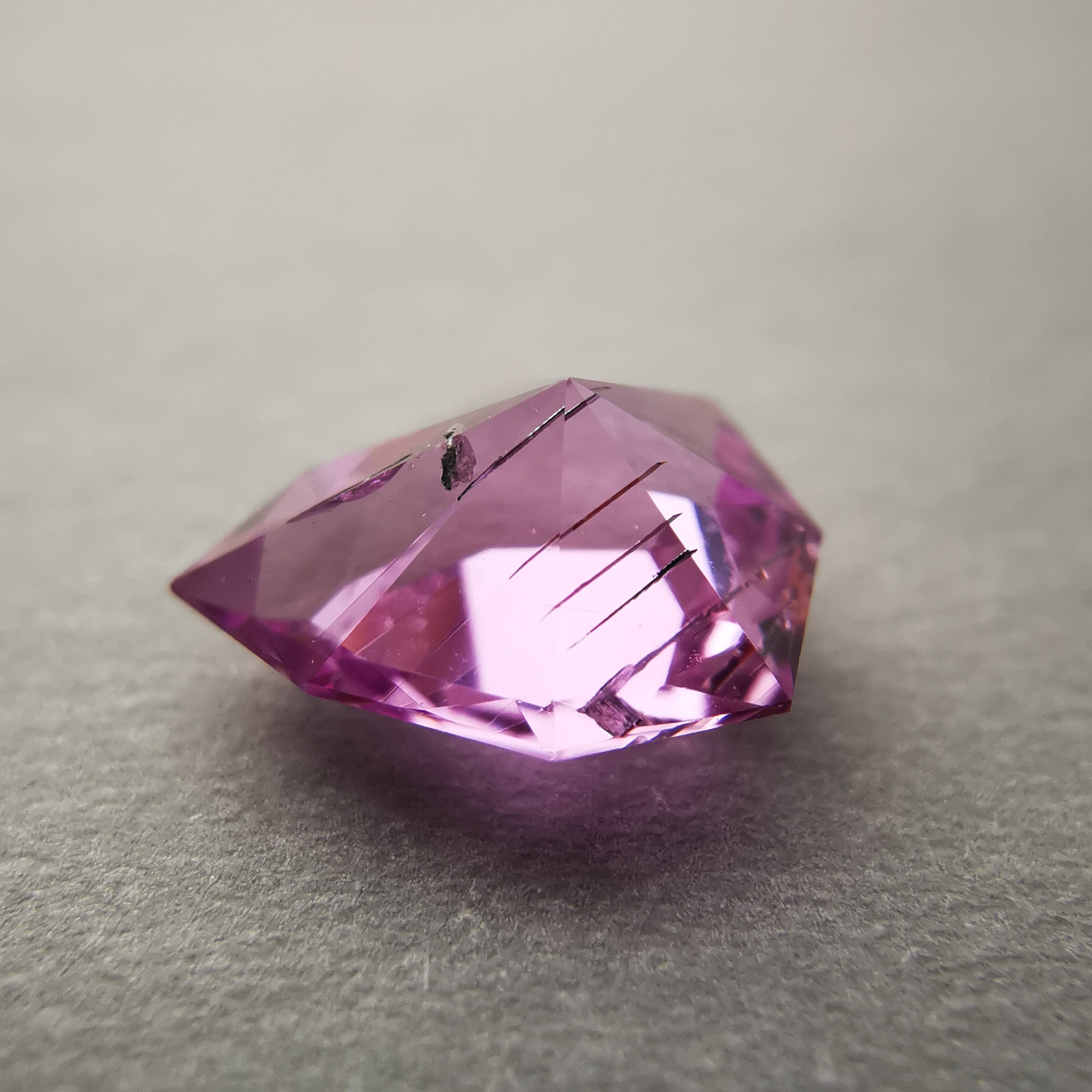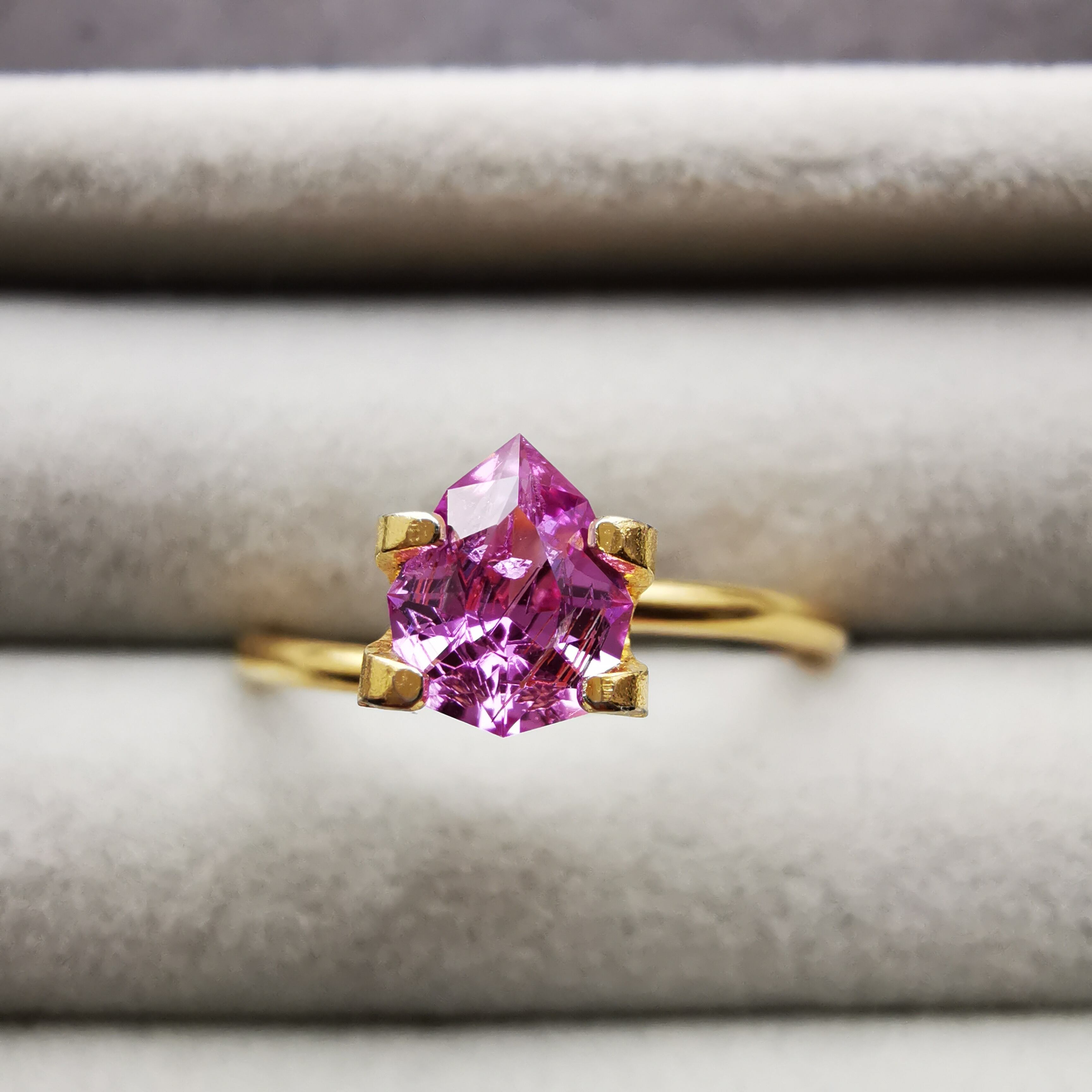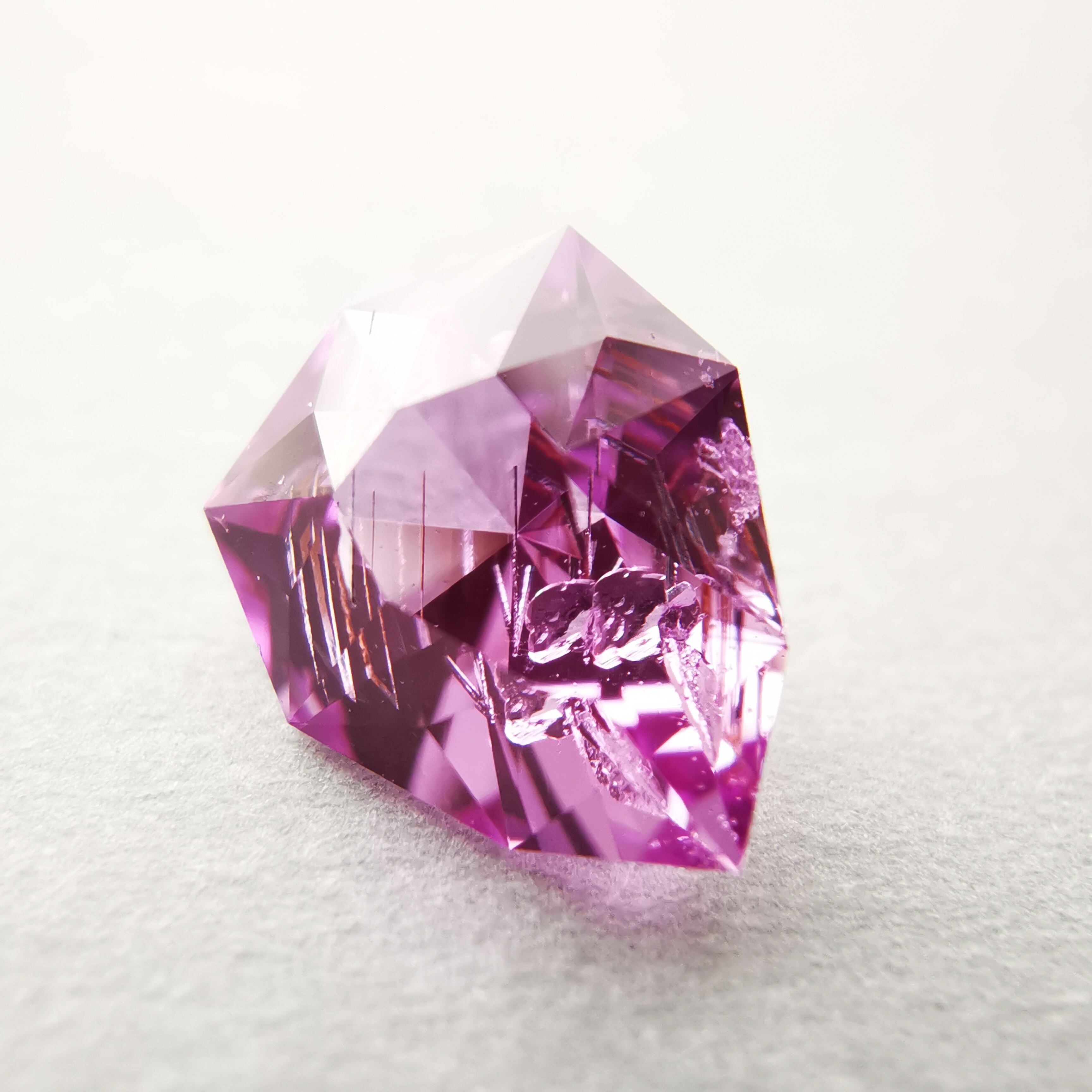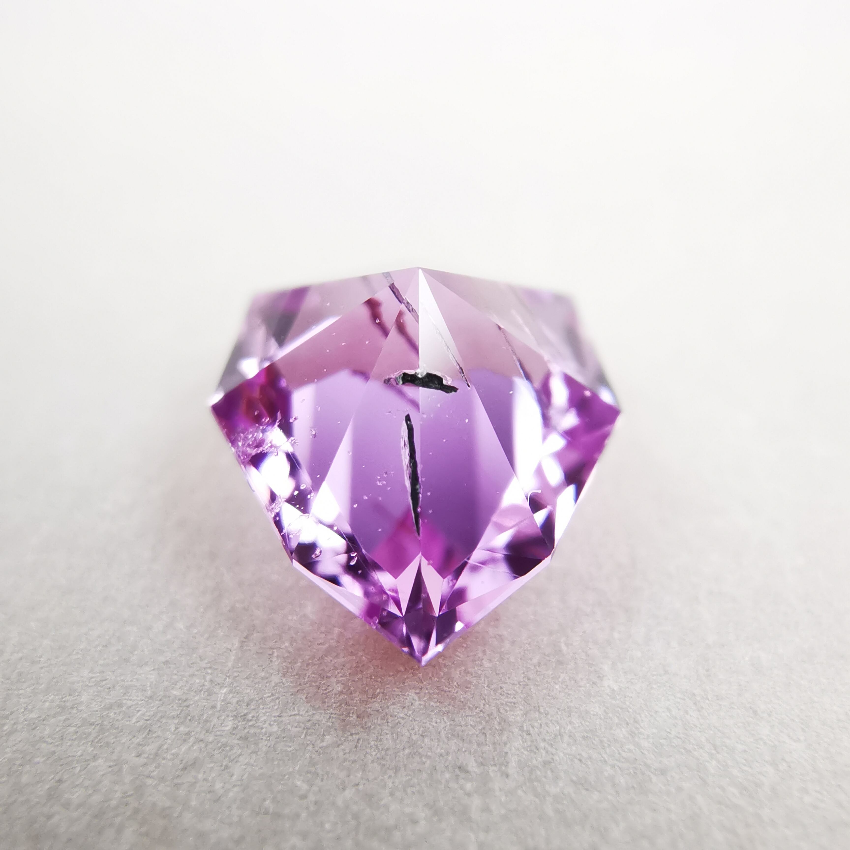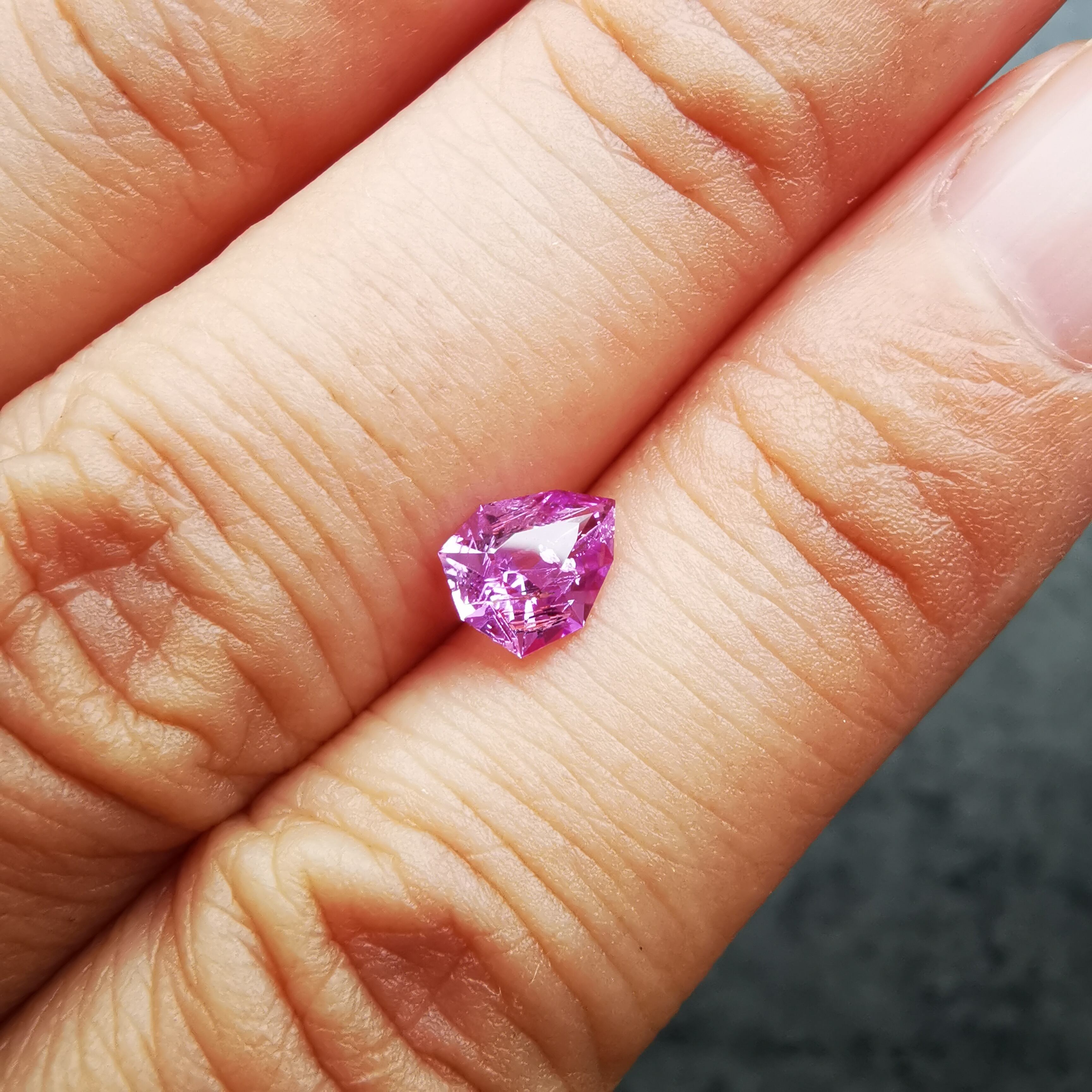 鮮やかなパープルピンク、暗さを感じない明るく輝くサファイアです。