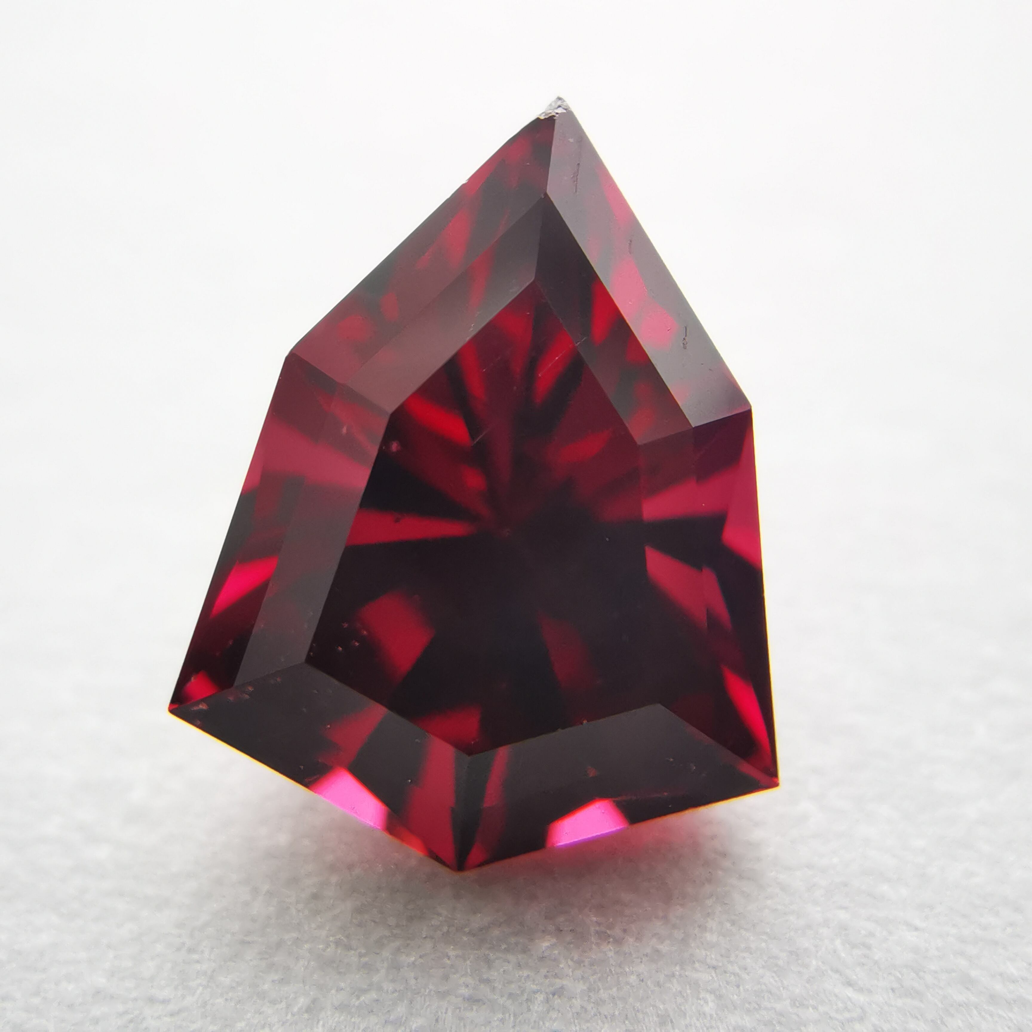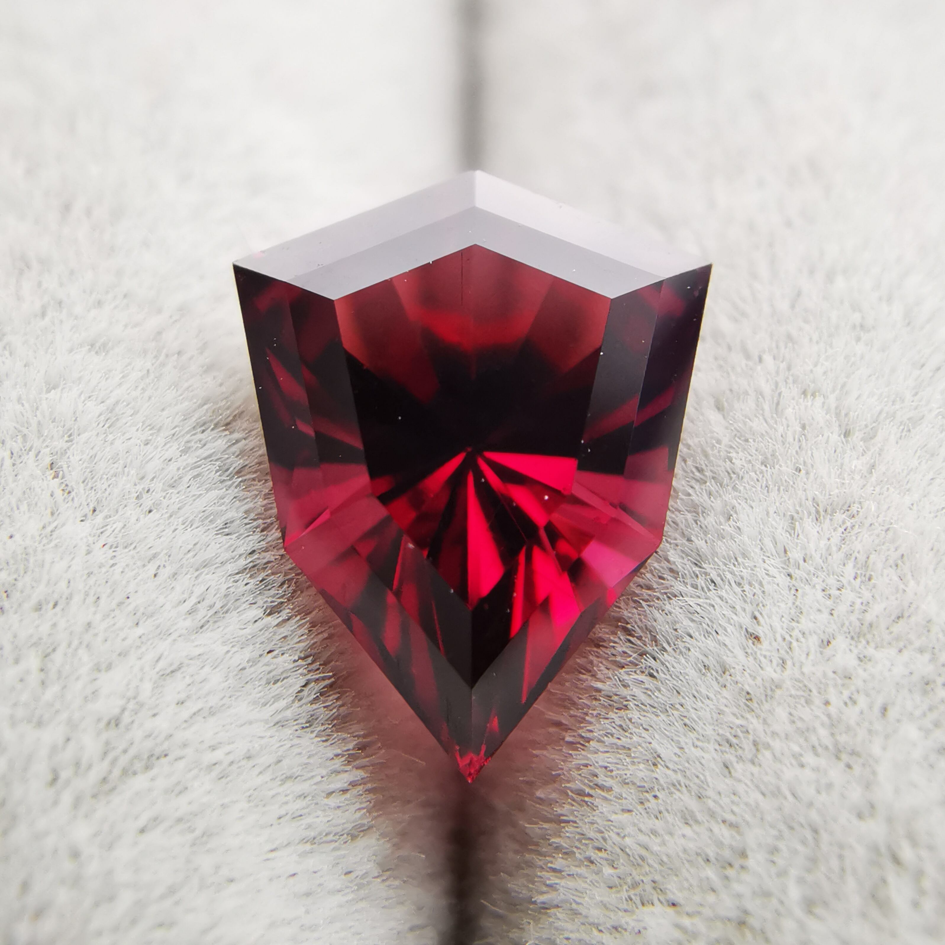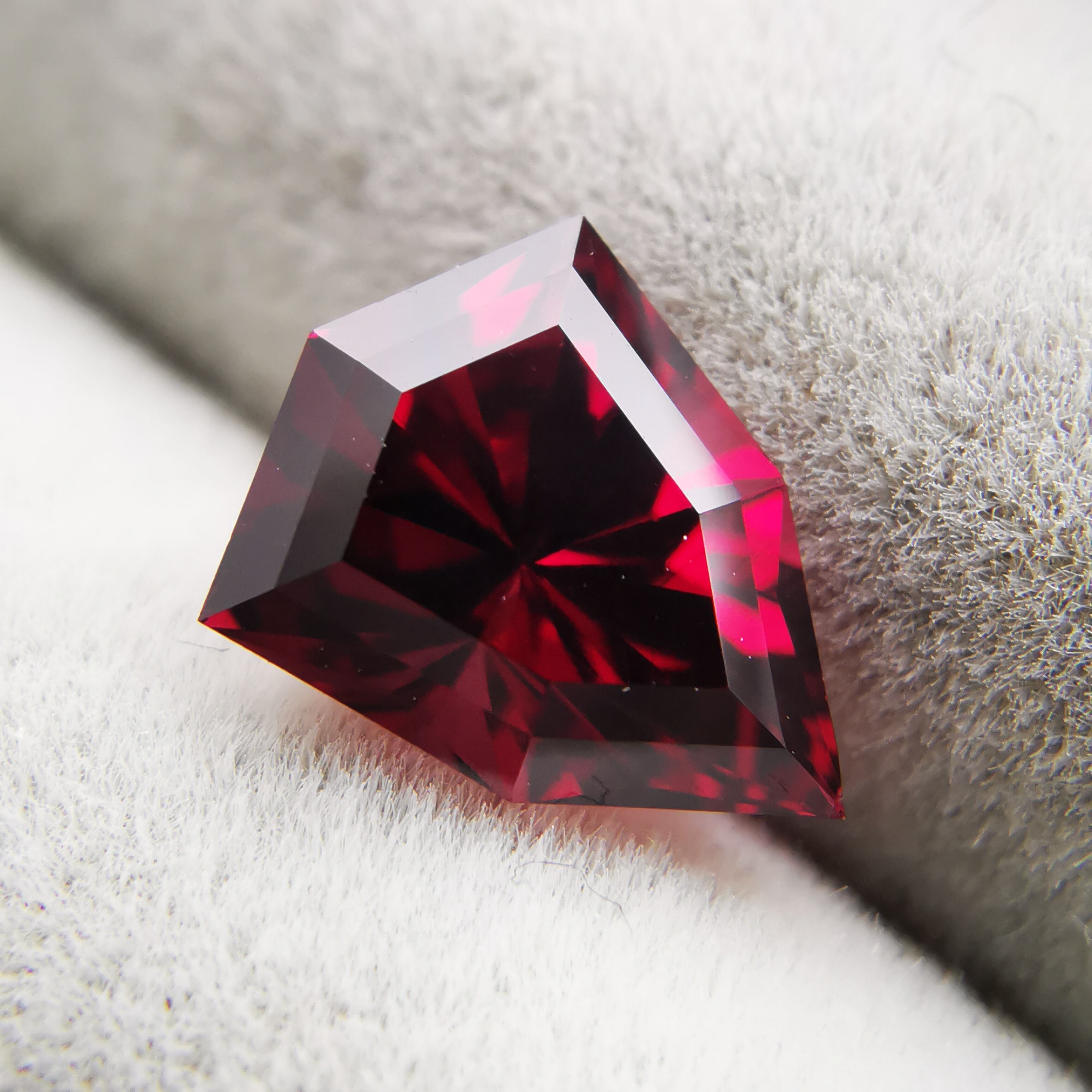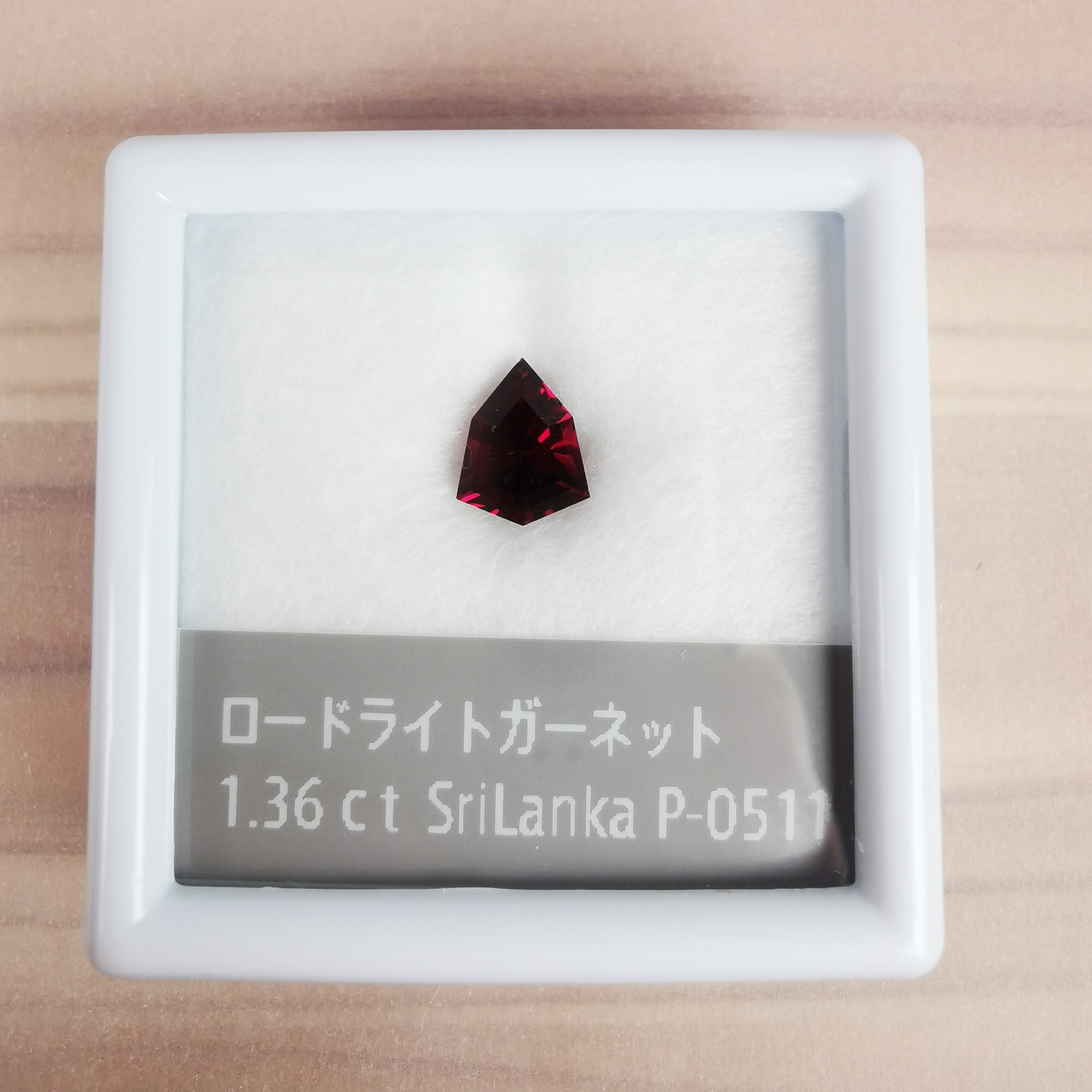 暗い石の中から、ローズレッドの華やかなきらめきが溢れるように輝く、ロードライトガーネットです。