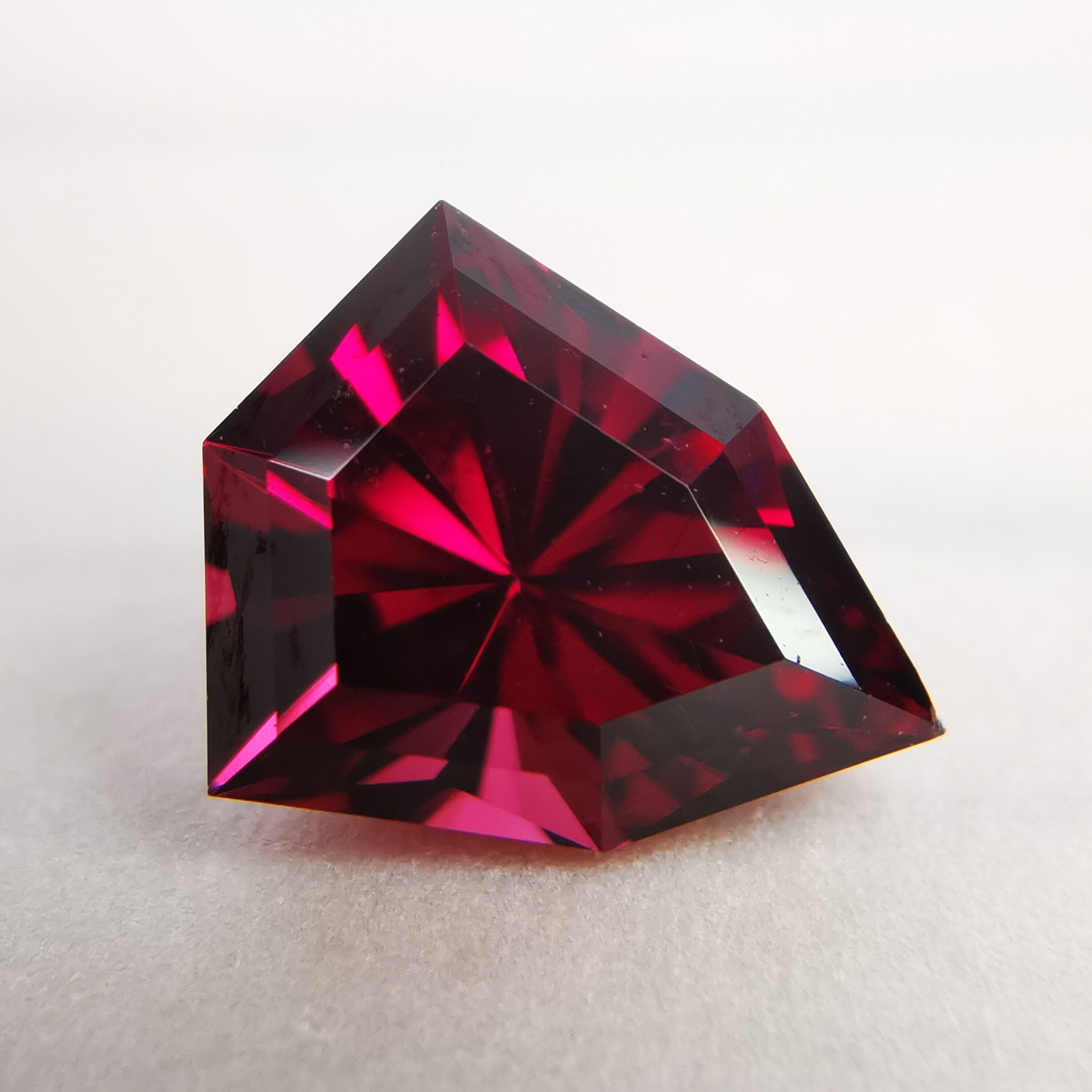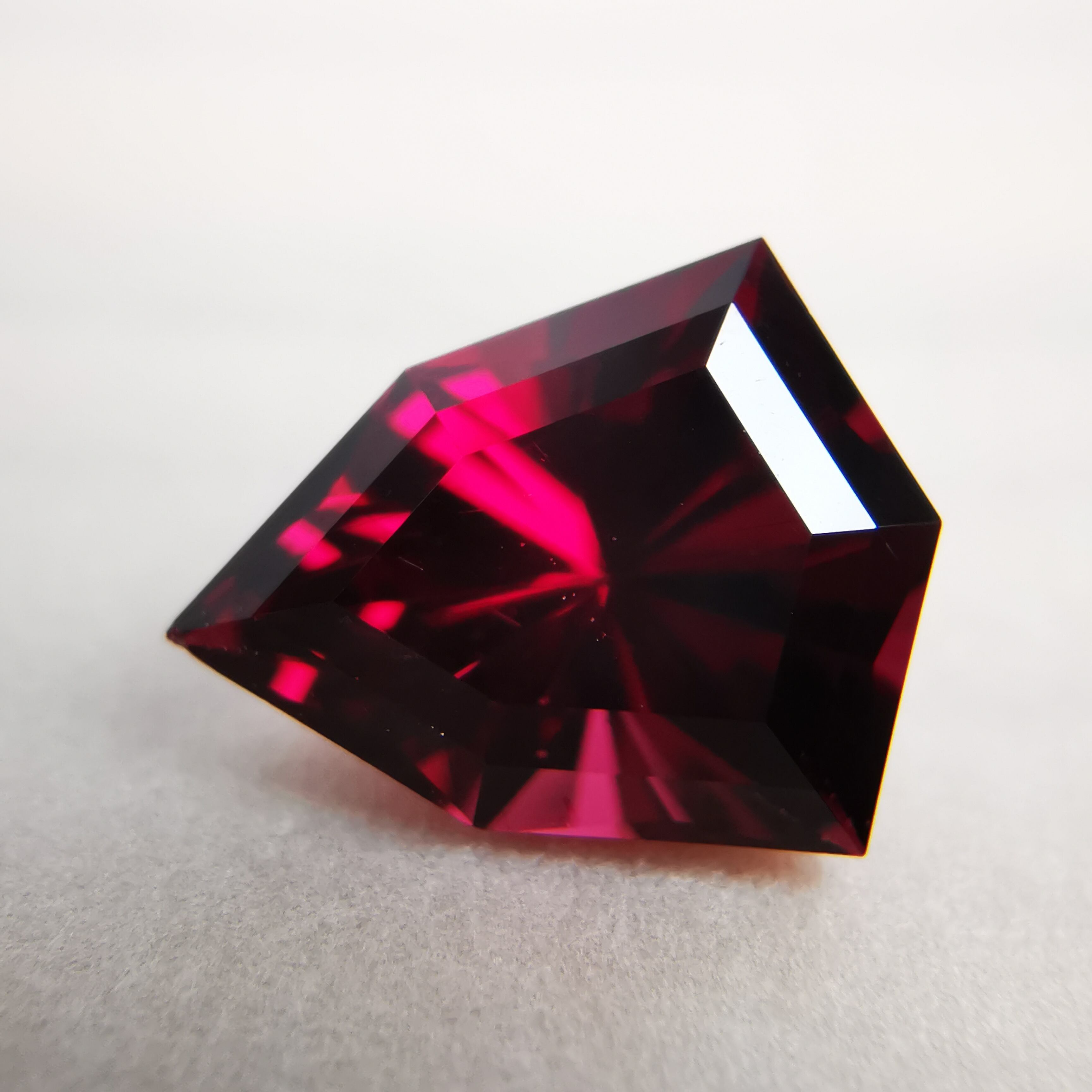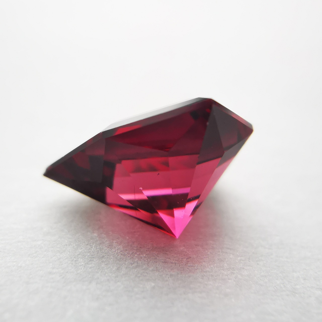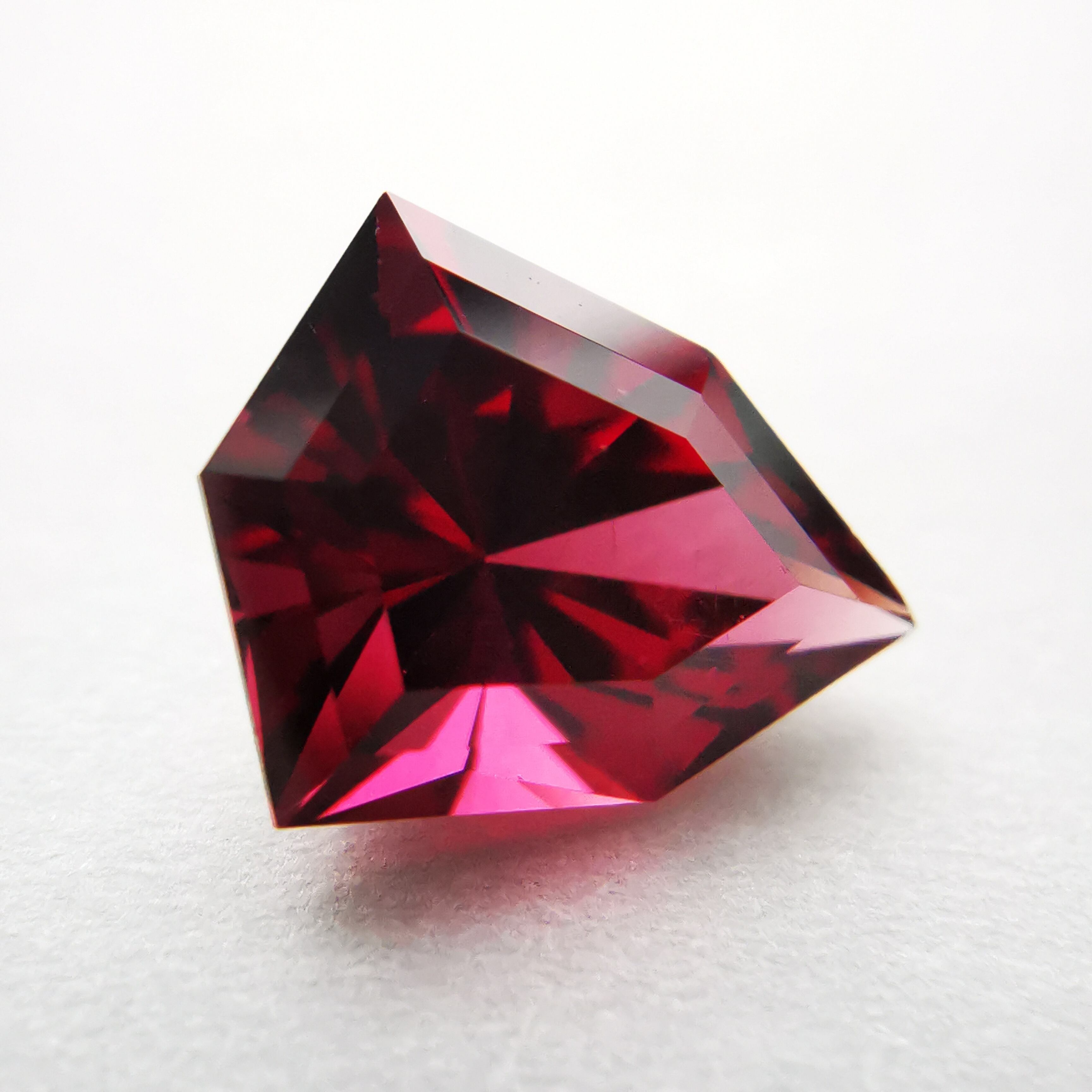 暗い石の中から、ローズレッドの華やかなきらめきが溢れるように輝く、ロードライトガーネットです。