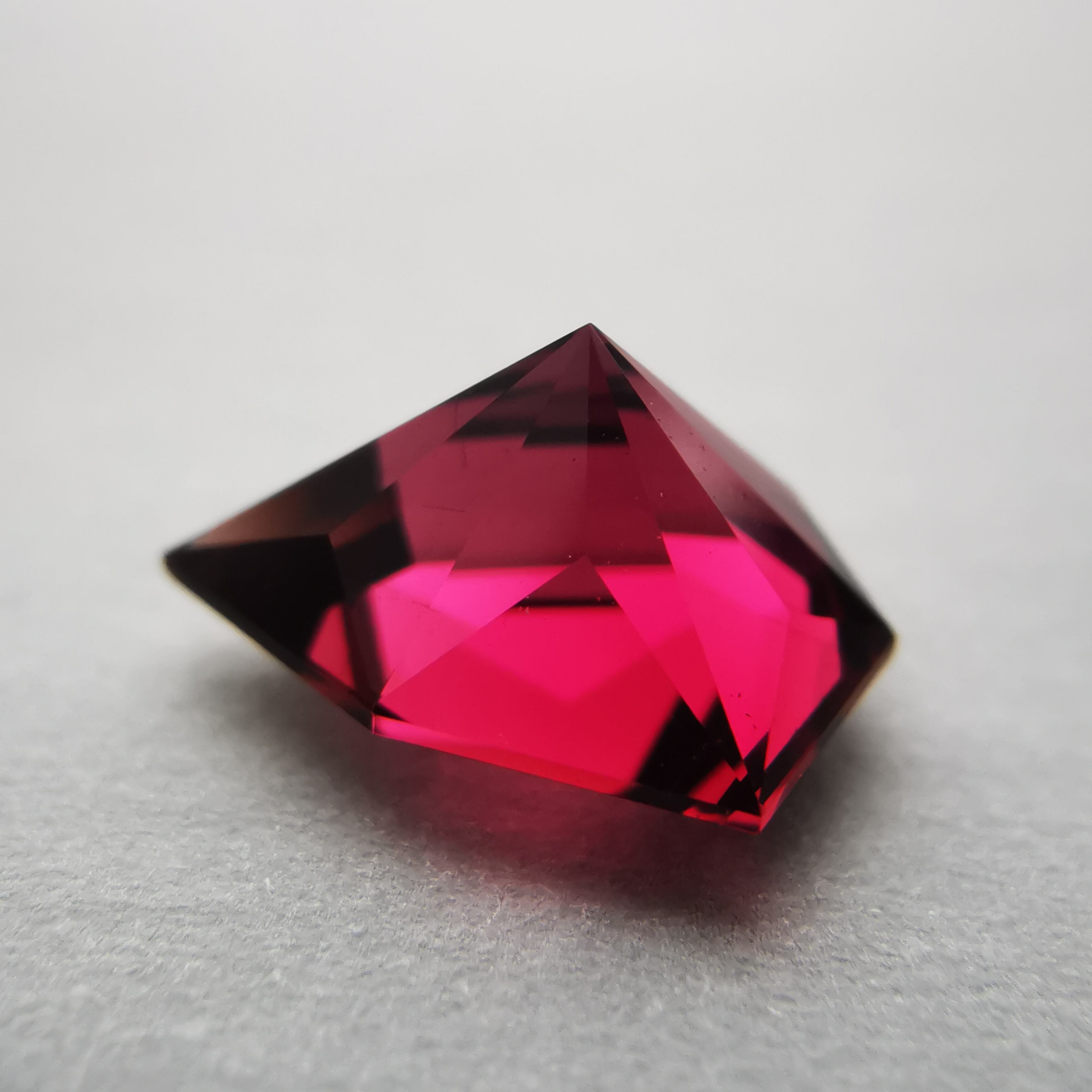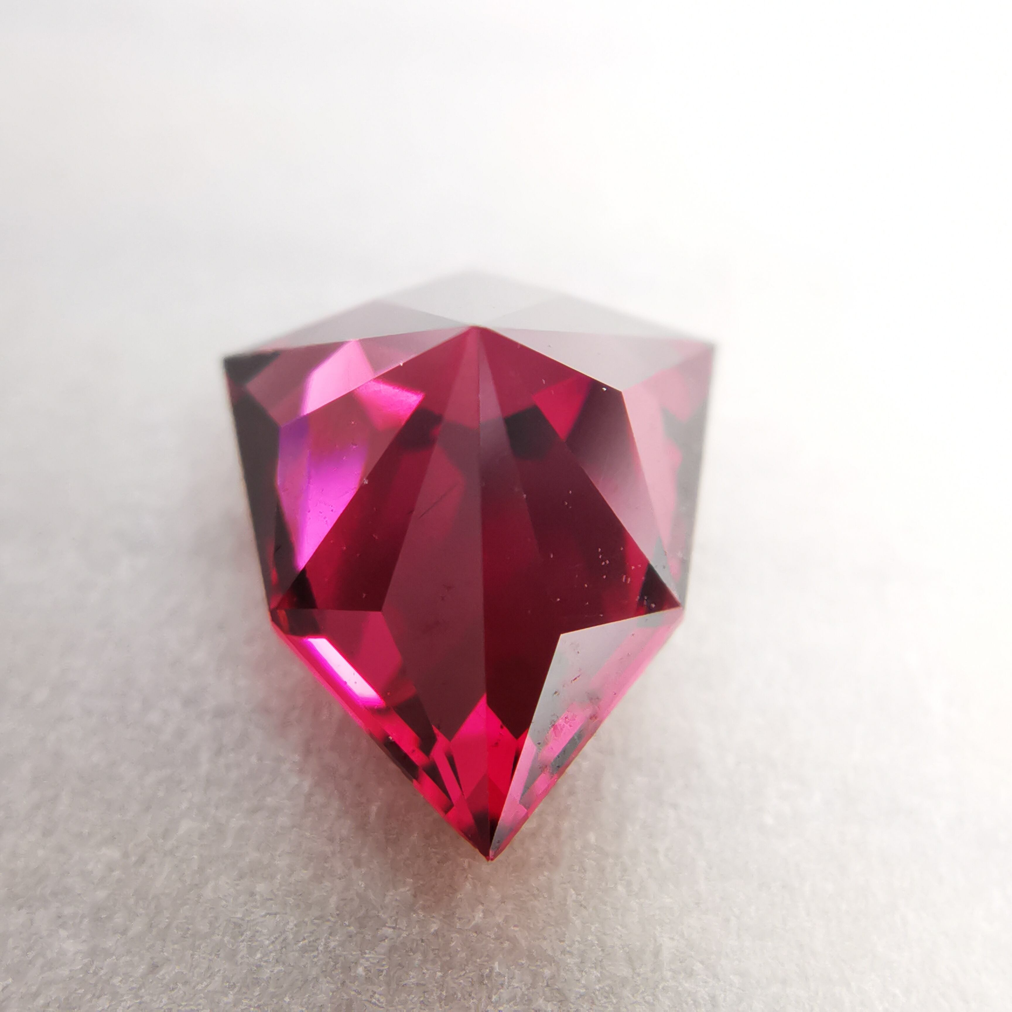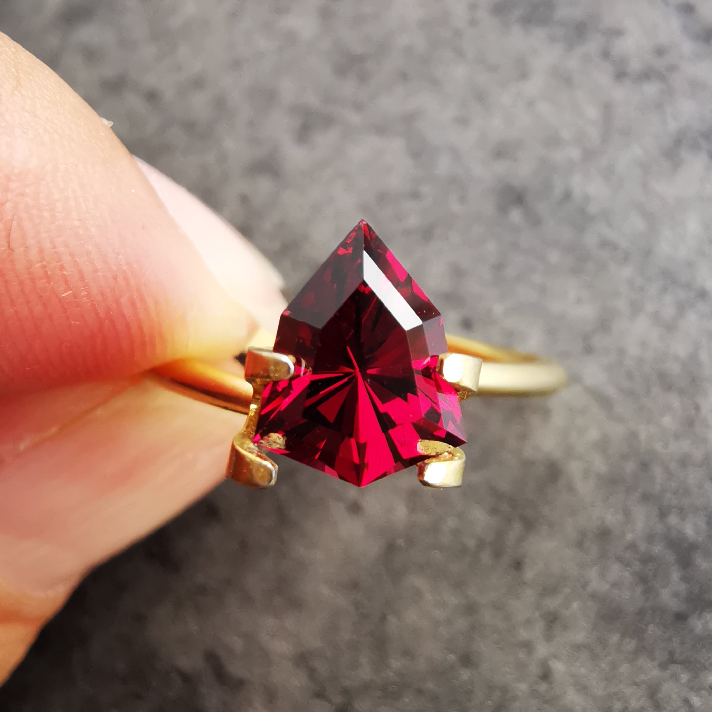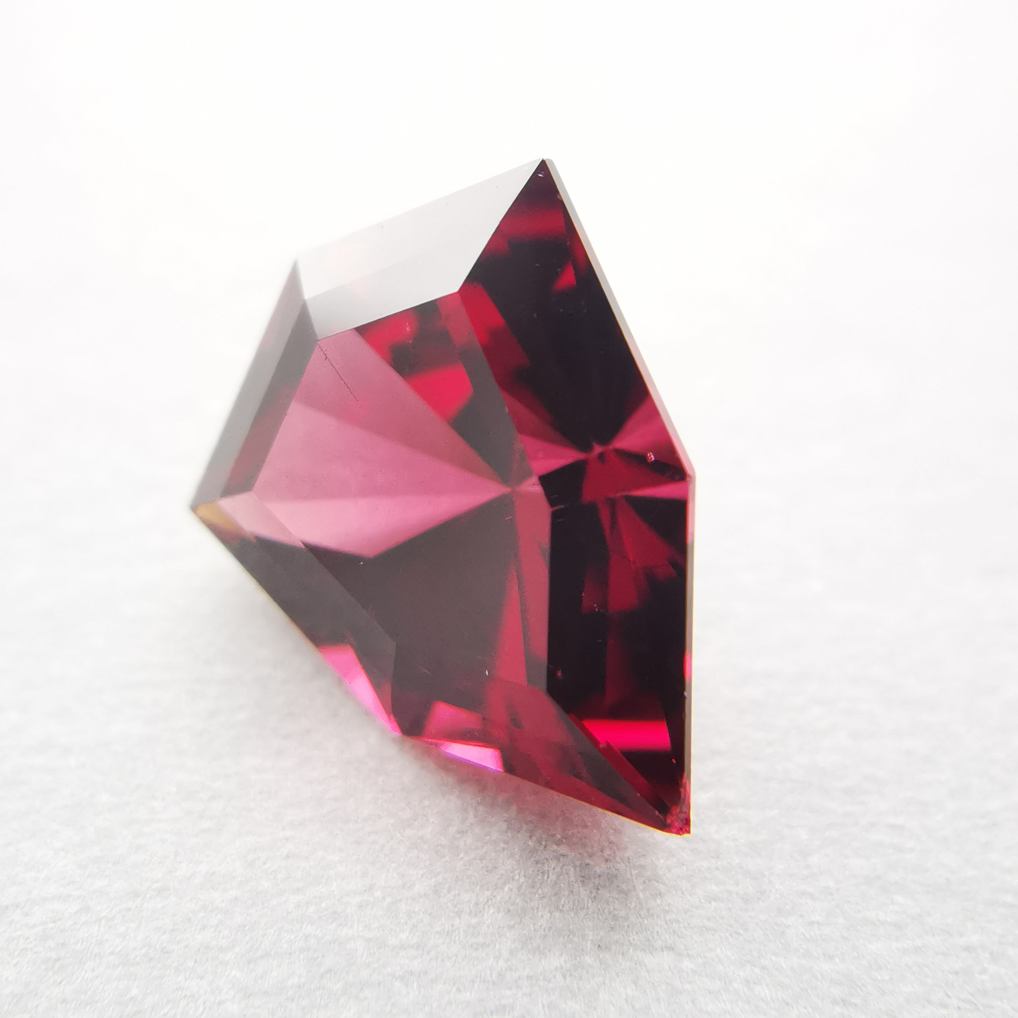 暗い石の中から、ローズレッドの華やかなきらめきが溢れるように輝く、ロードライトガーネットです。