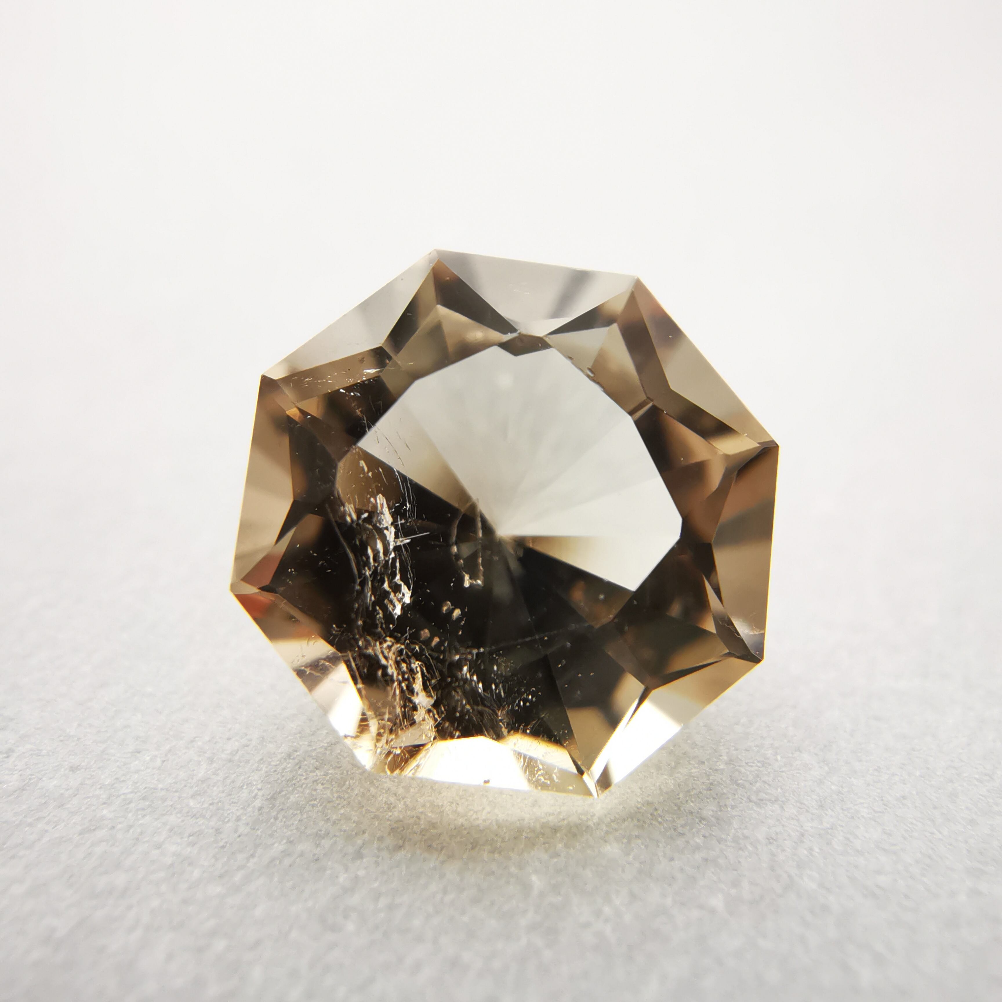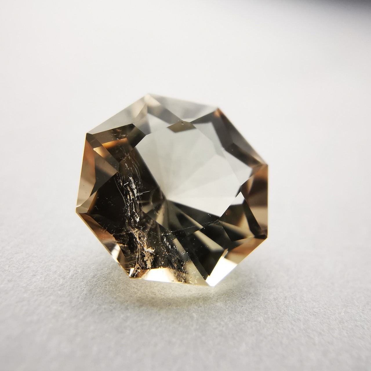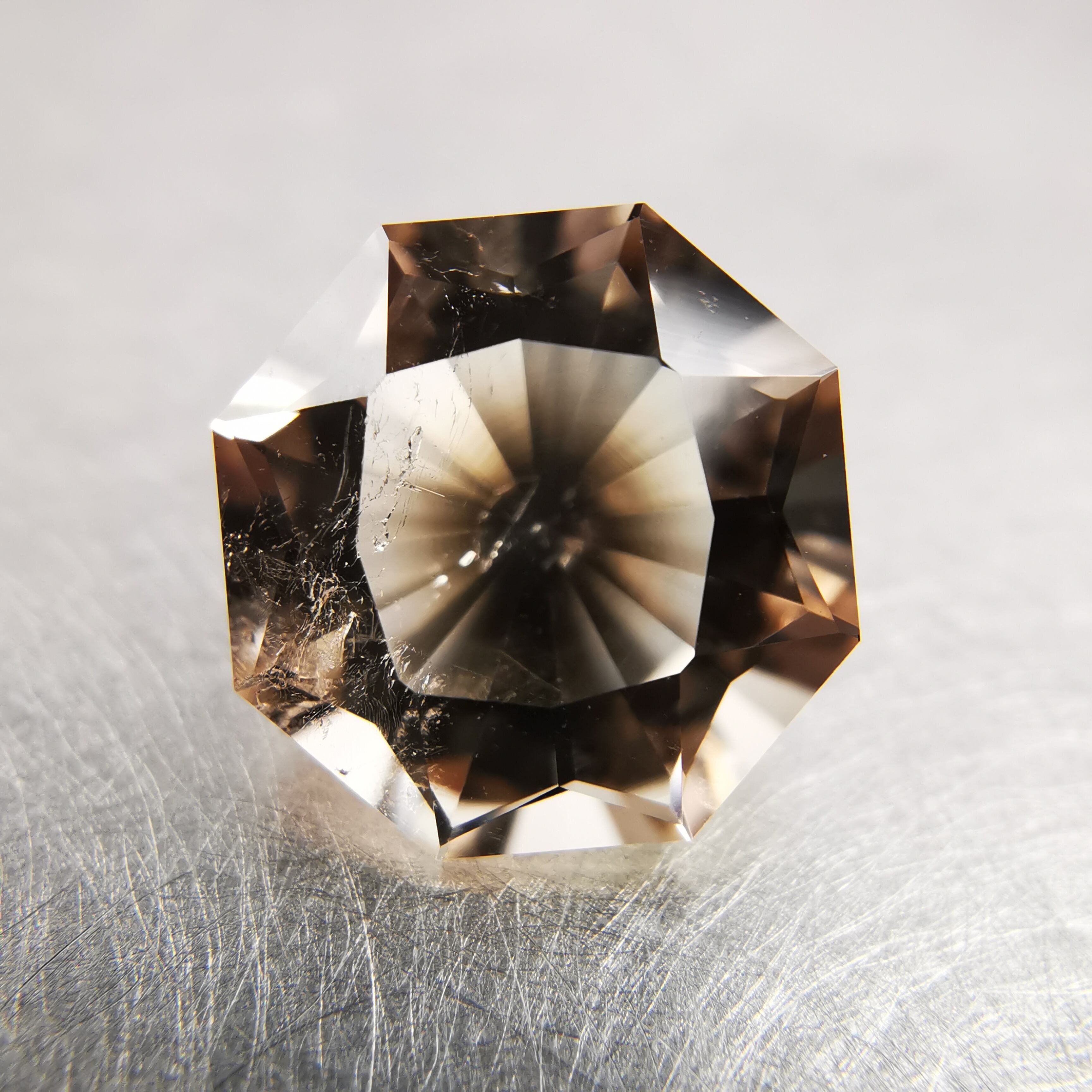 8角形のシェイプ、フェイスには8角の星が見え、テーブル面はクッションカットのような形、どこを上にするか迷うところです。