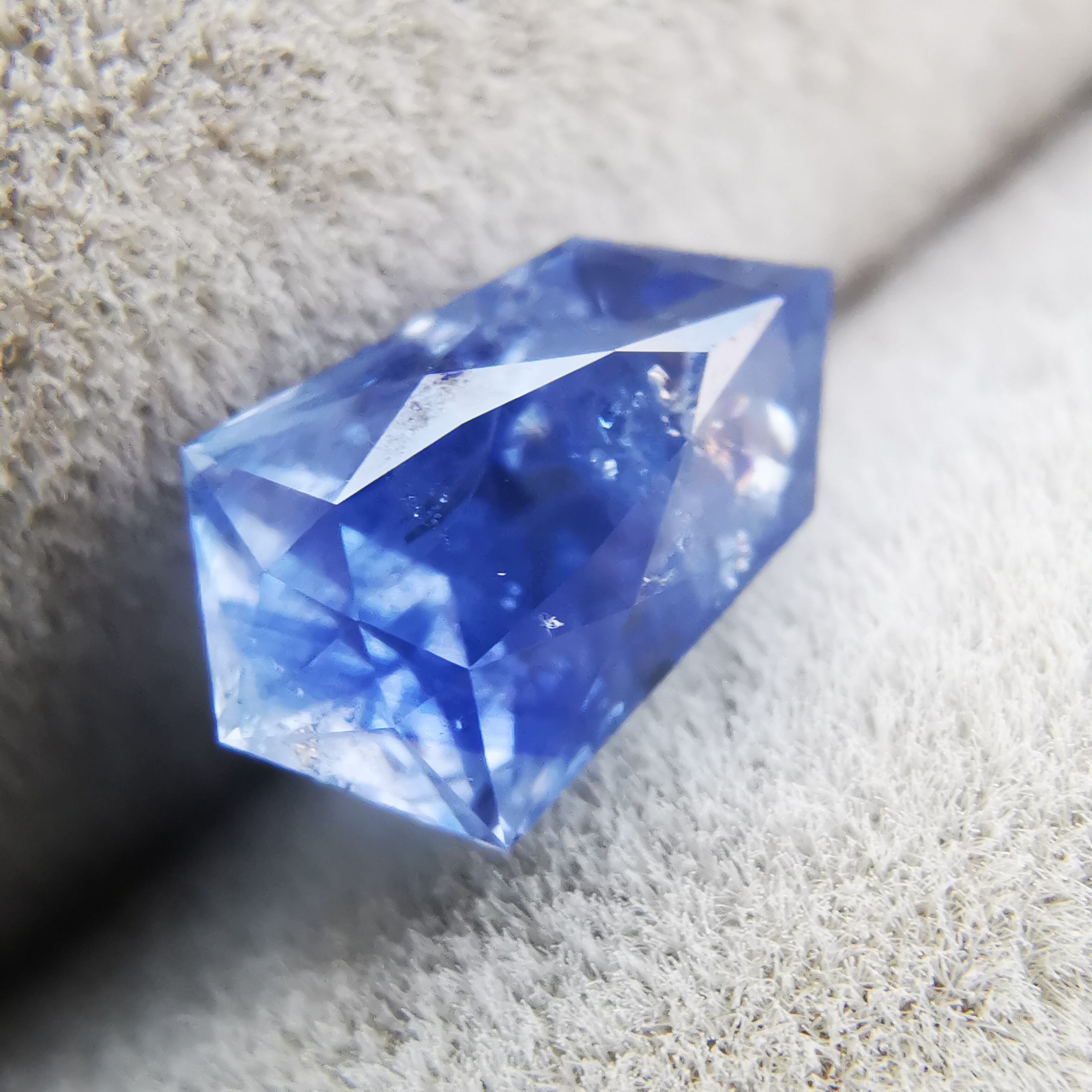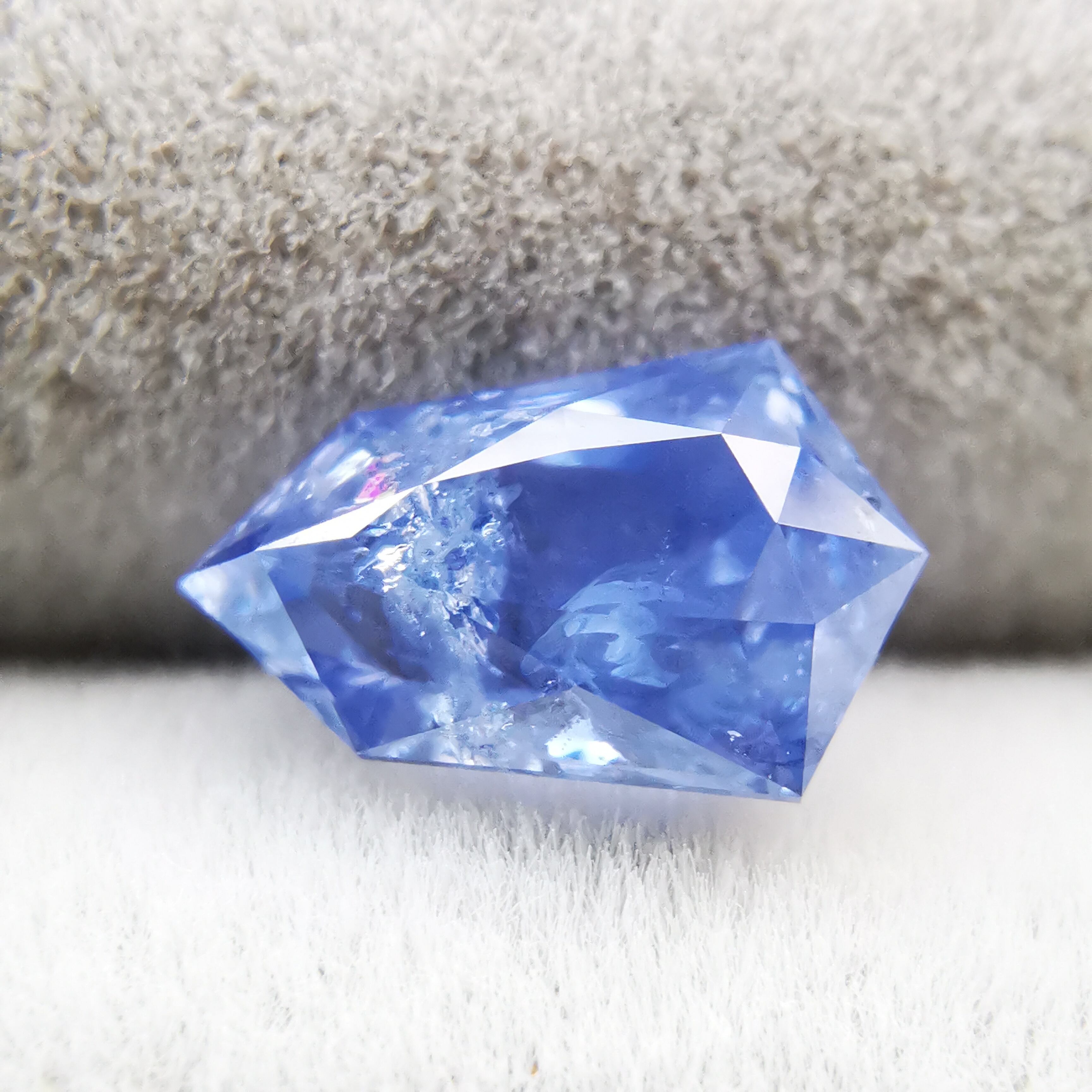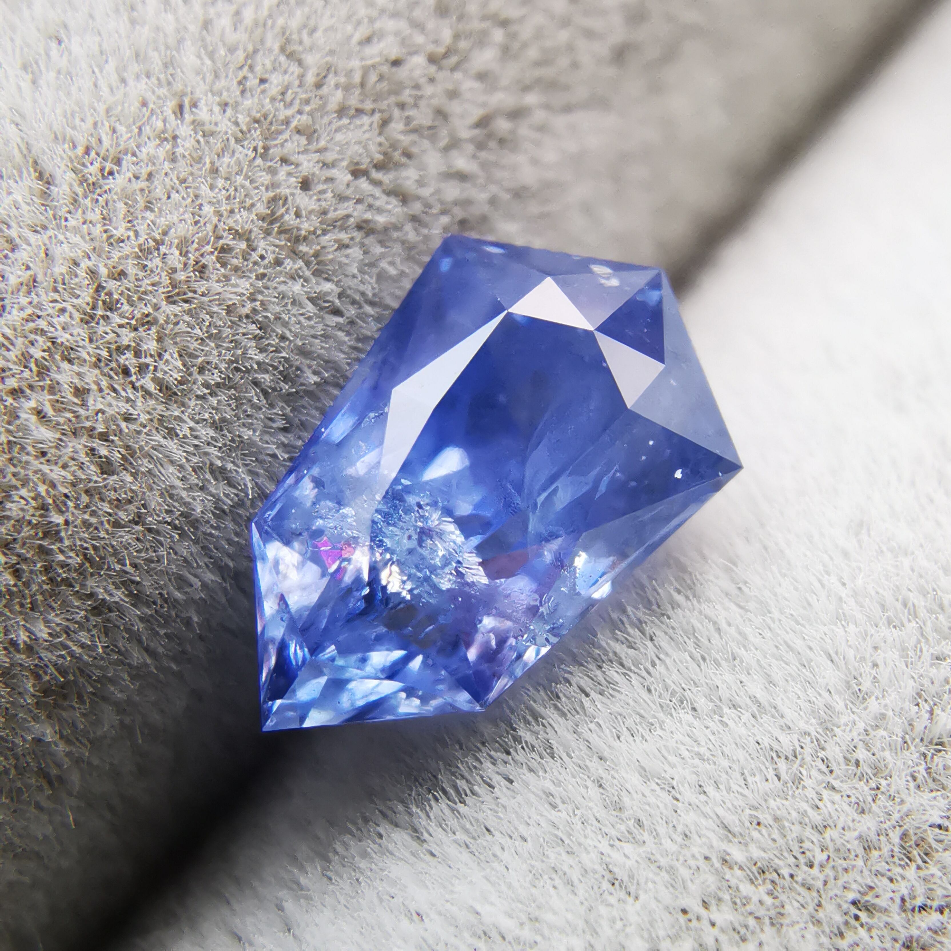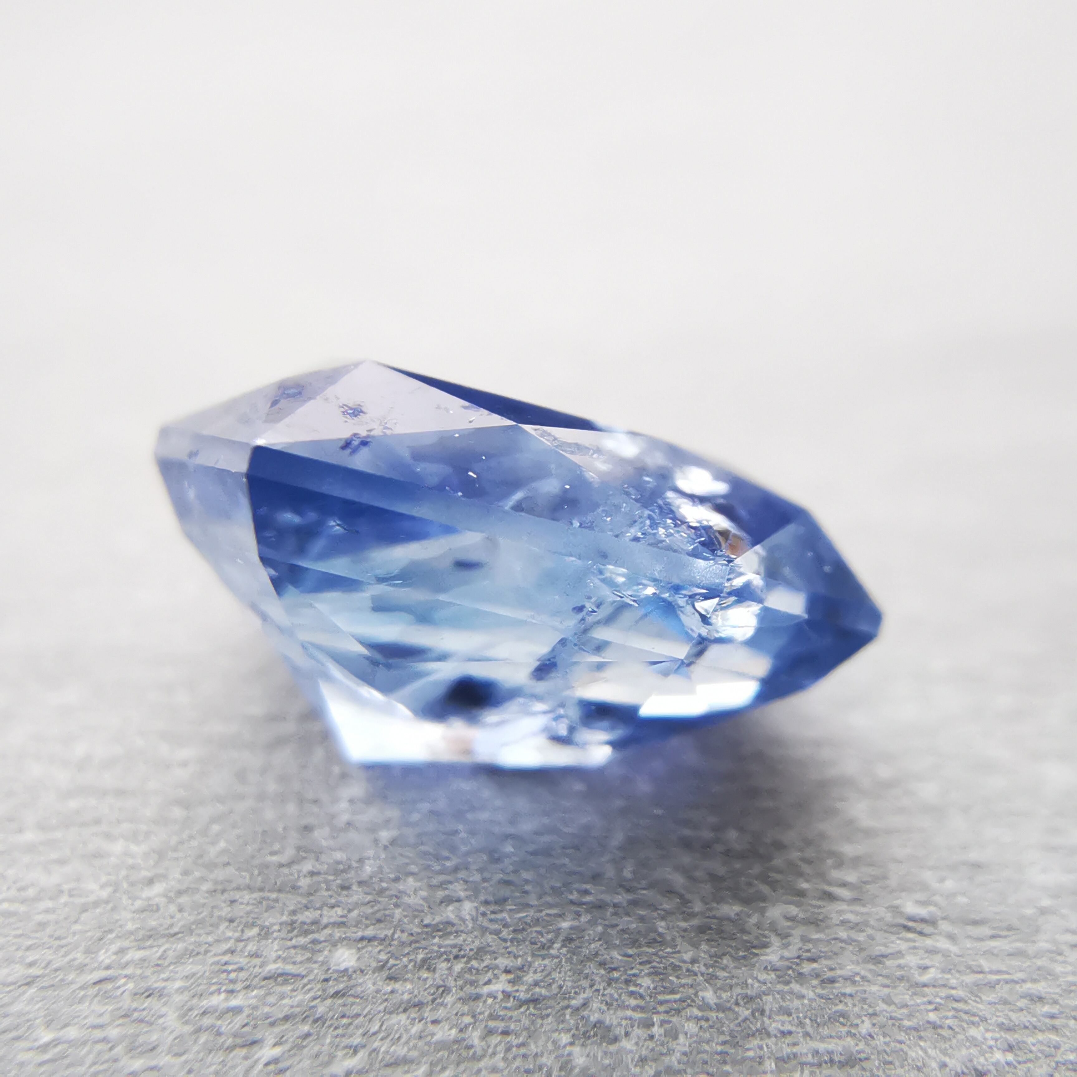 シルキーというよりも、ややミルキーな青、ヒヤシンスブルーのサファイアです。