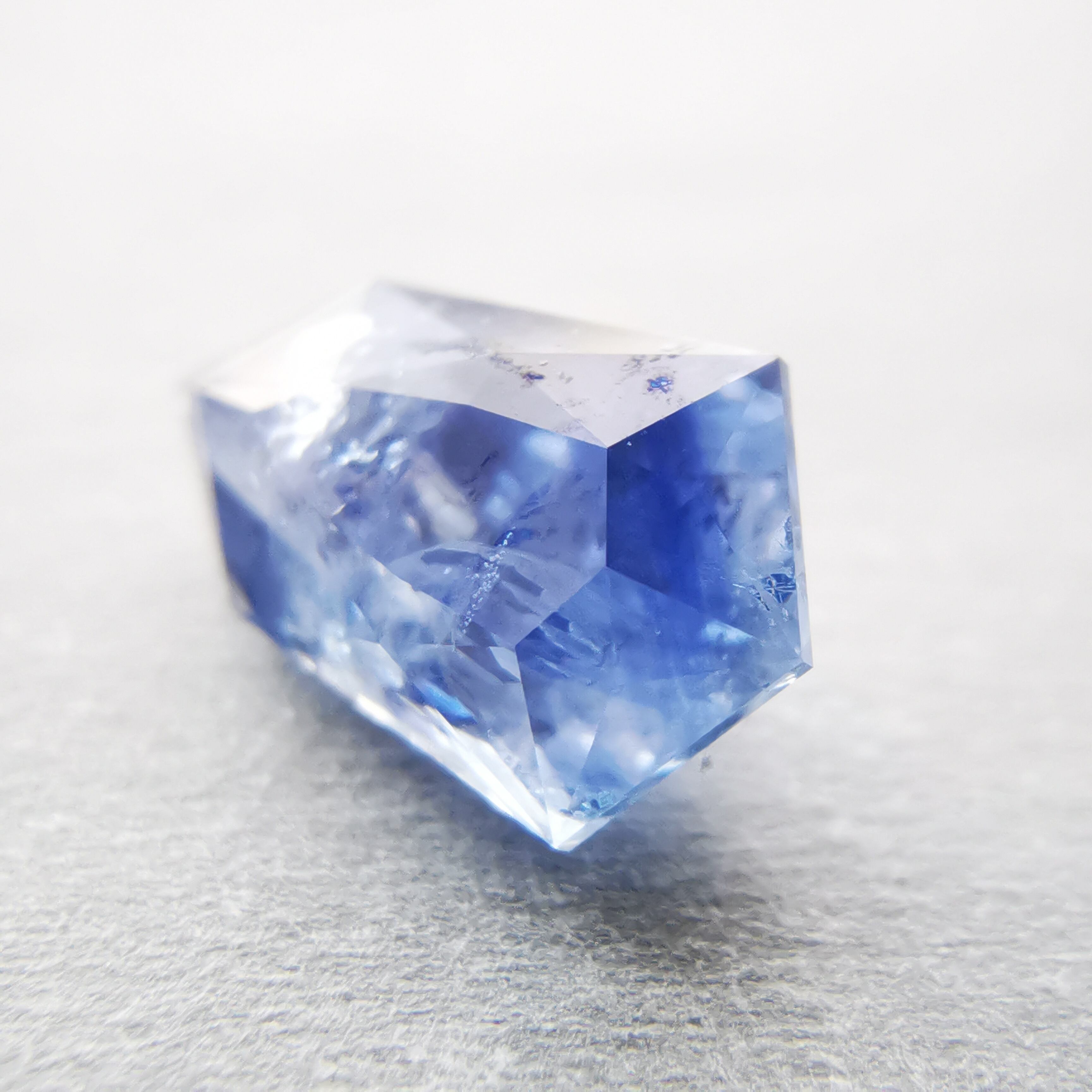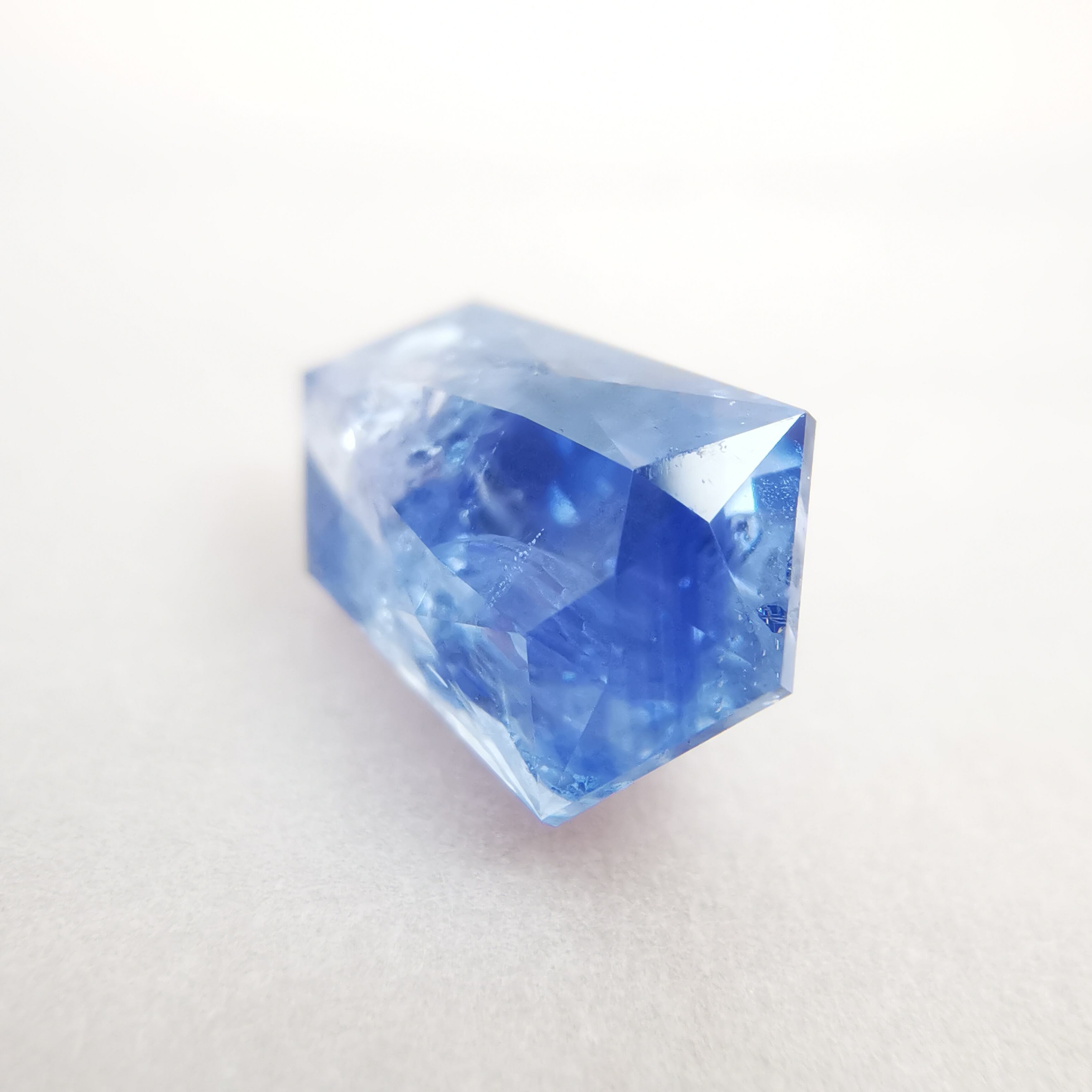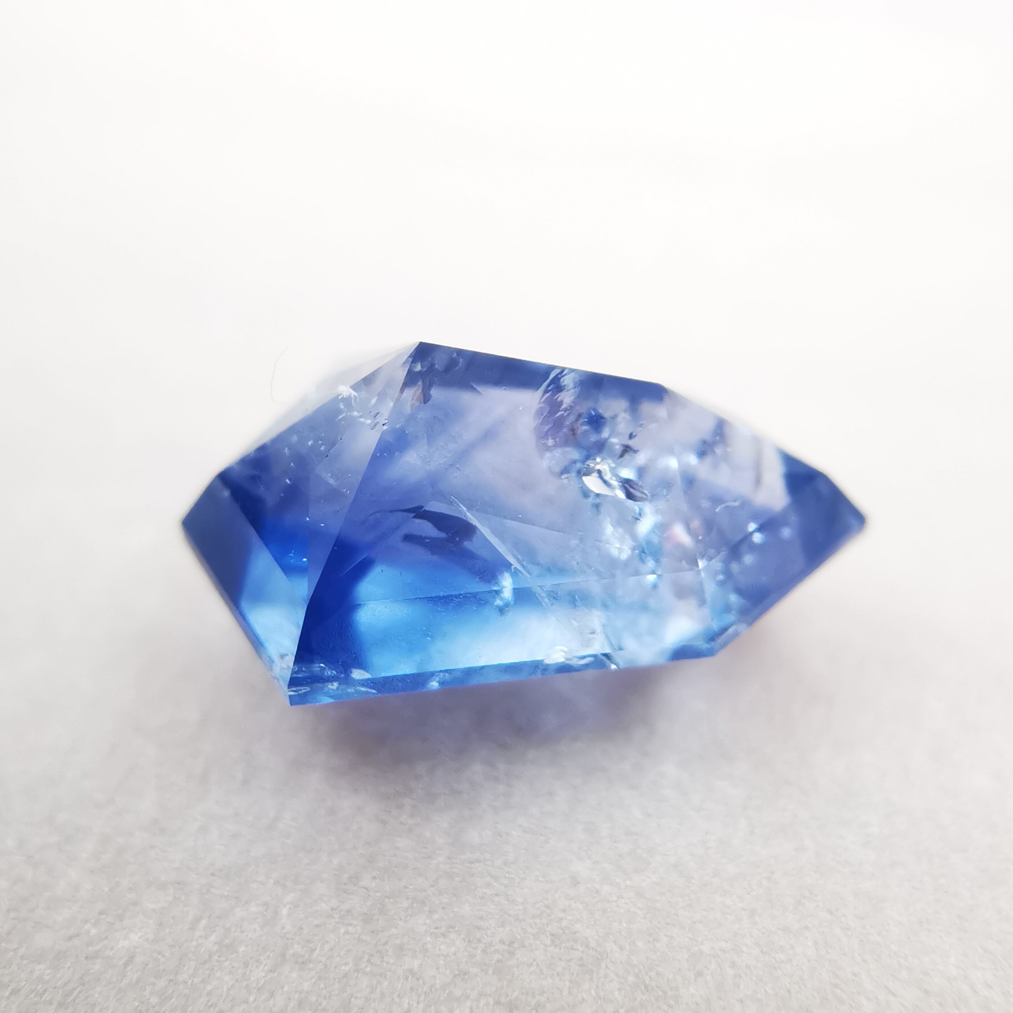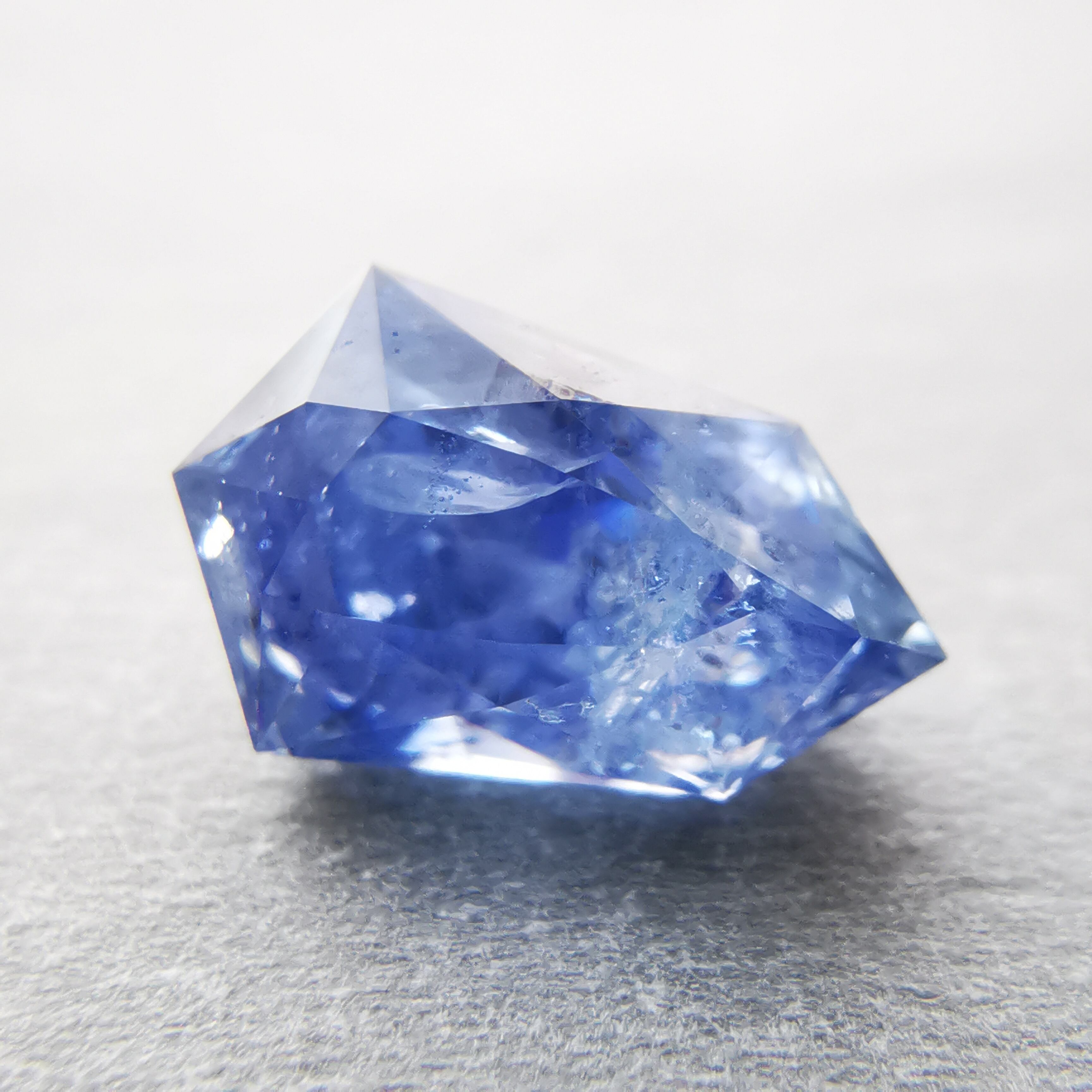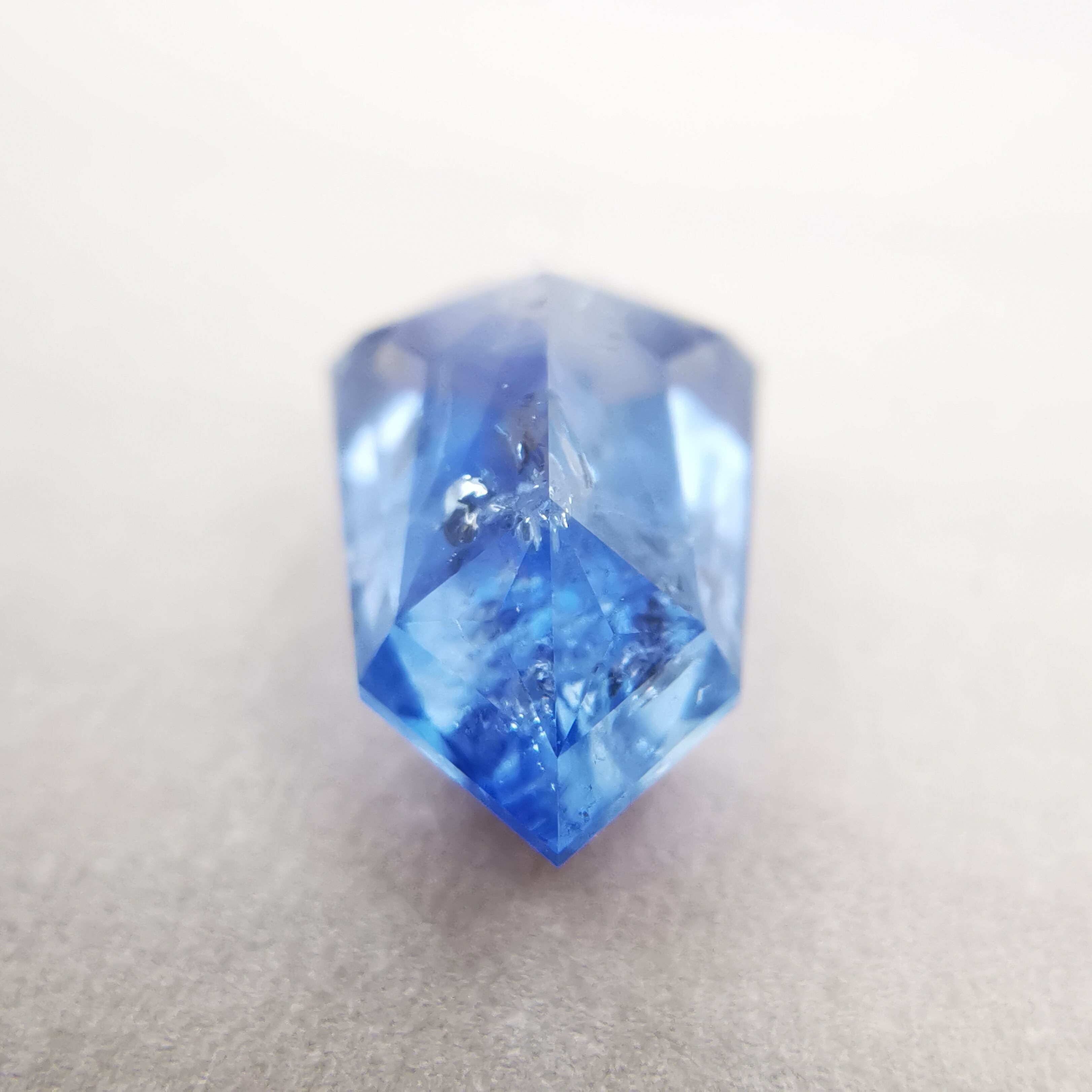 シルキーというよりも、ややミルキーな青、ヒヤシンスブルーのサファイアです。