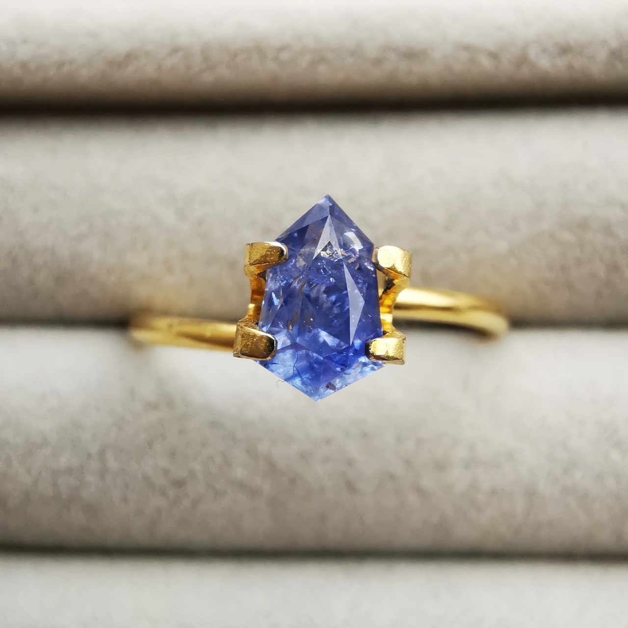 スリランカ産らしさを感じる、優し気な落ち着いたブルーです。