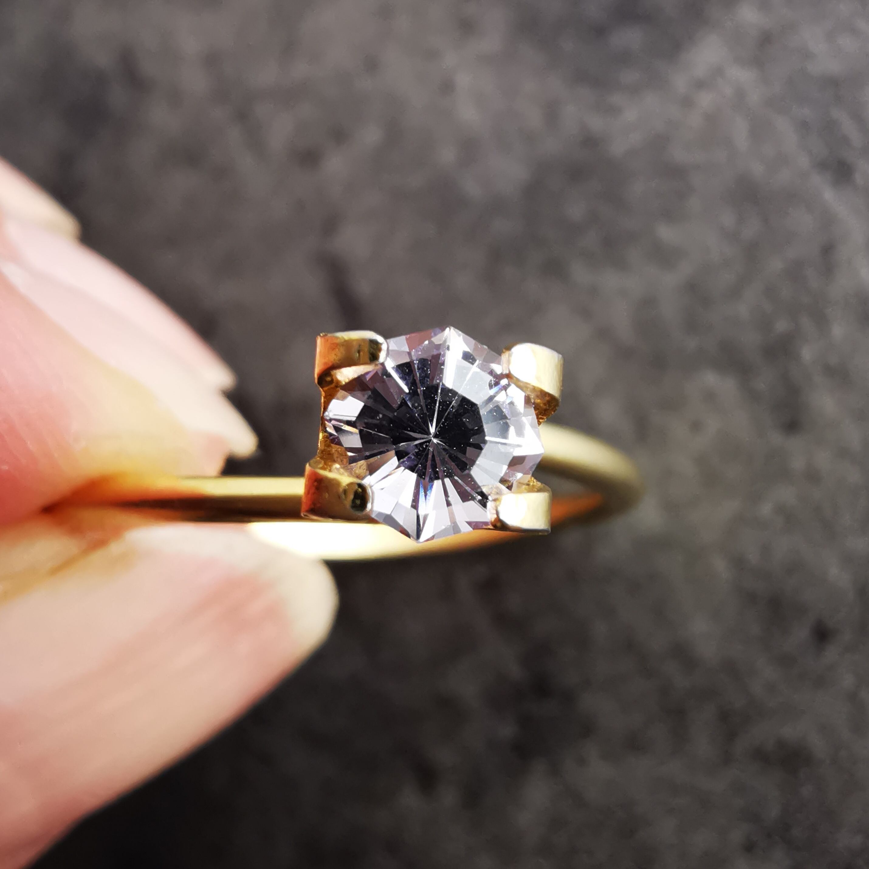 小粒ながらも明るく良く輝き、テーブル面を覗き込めば、キュレットから放射状に広がる美しいカットが楽しめます。