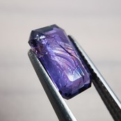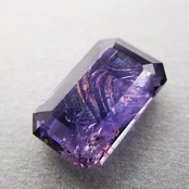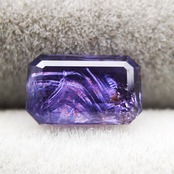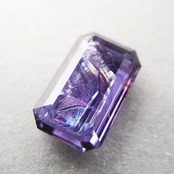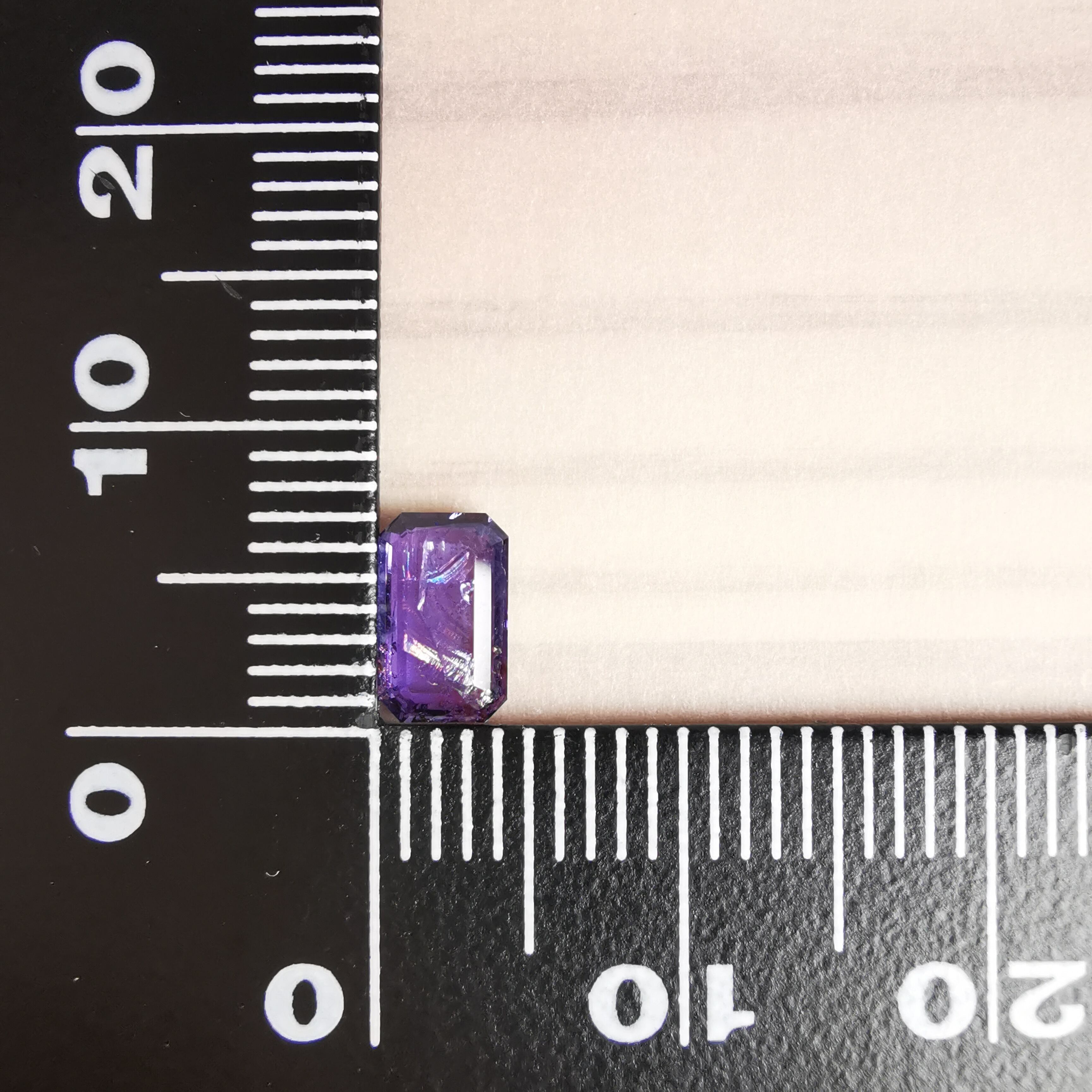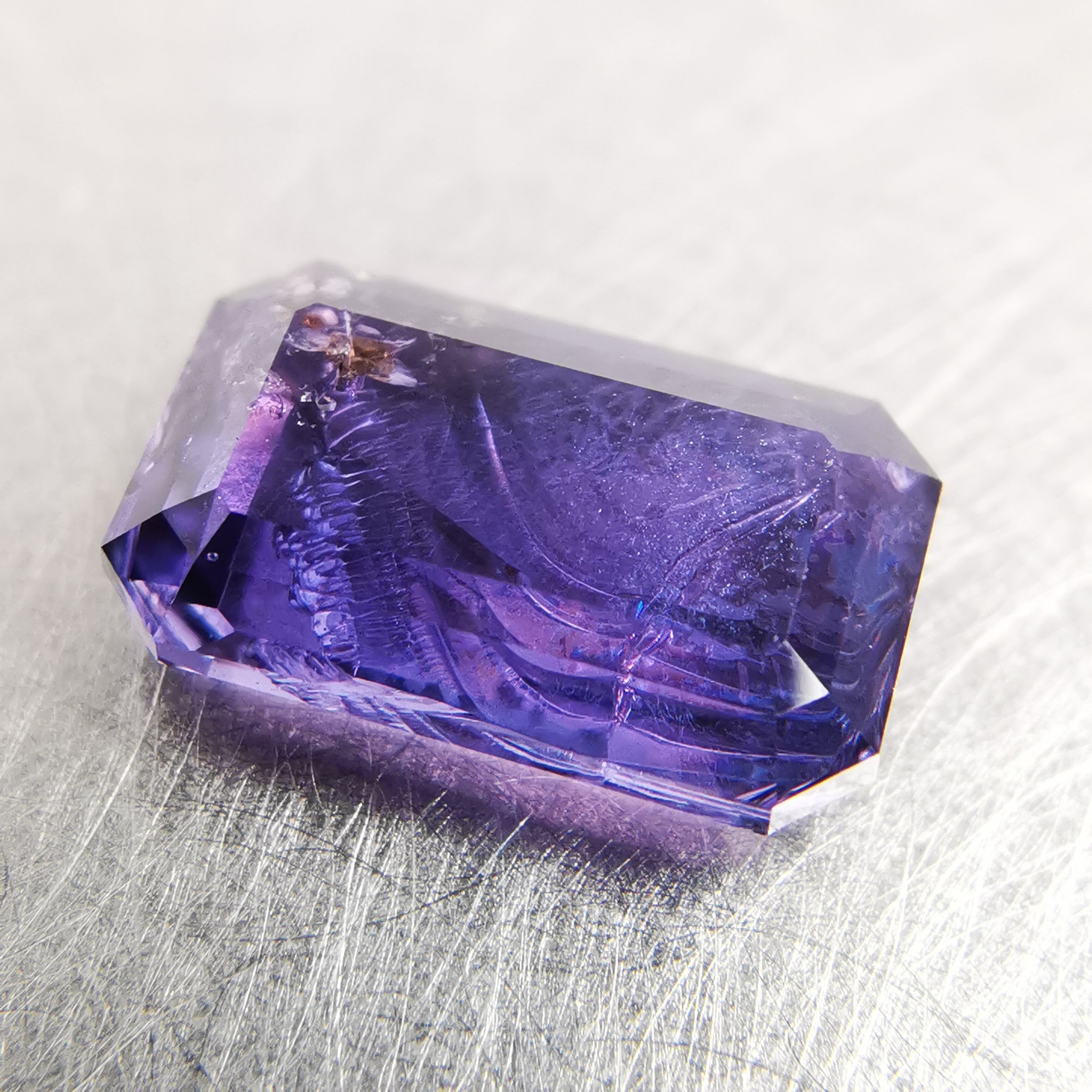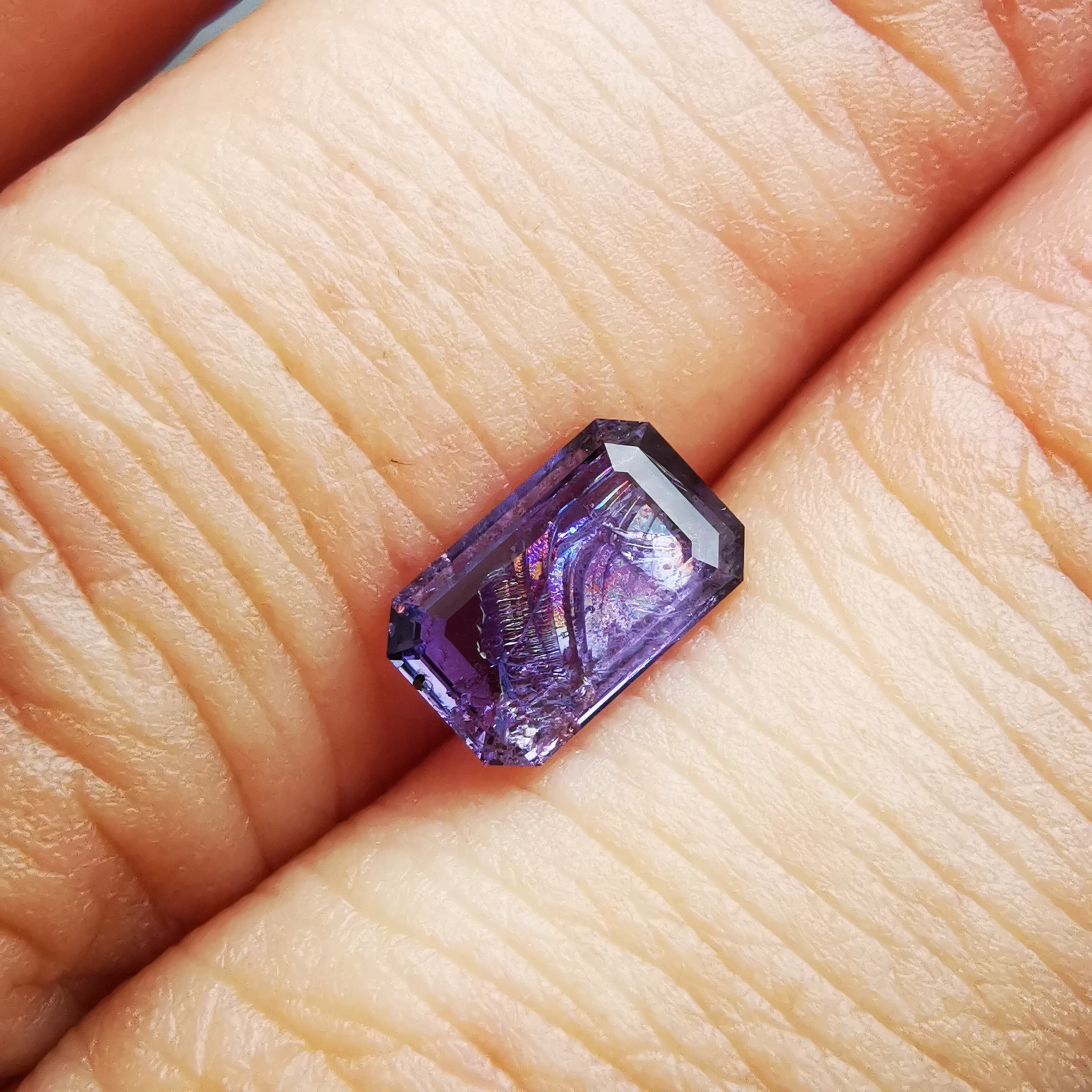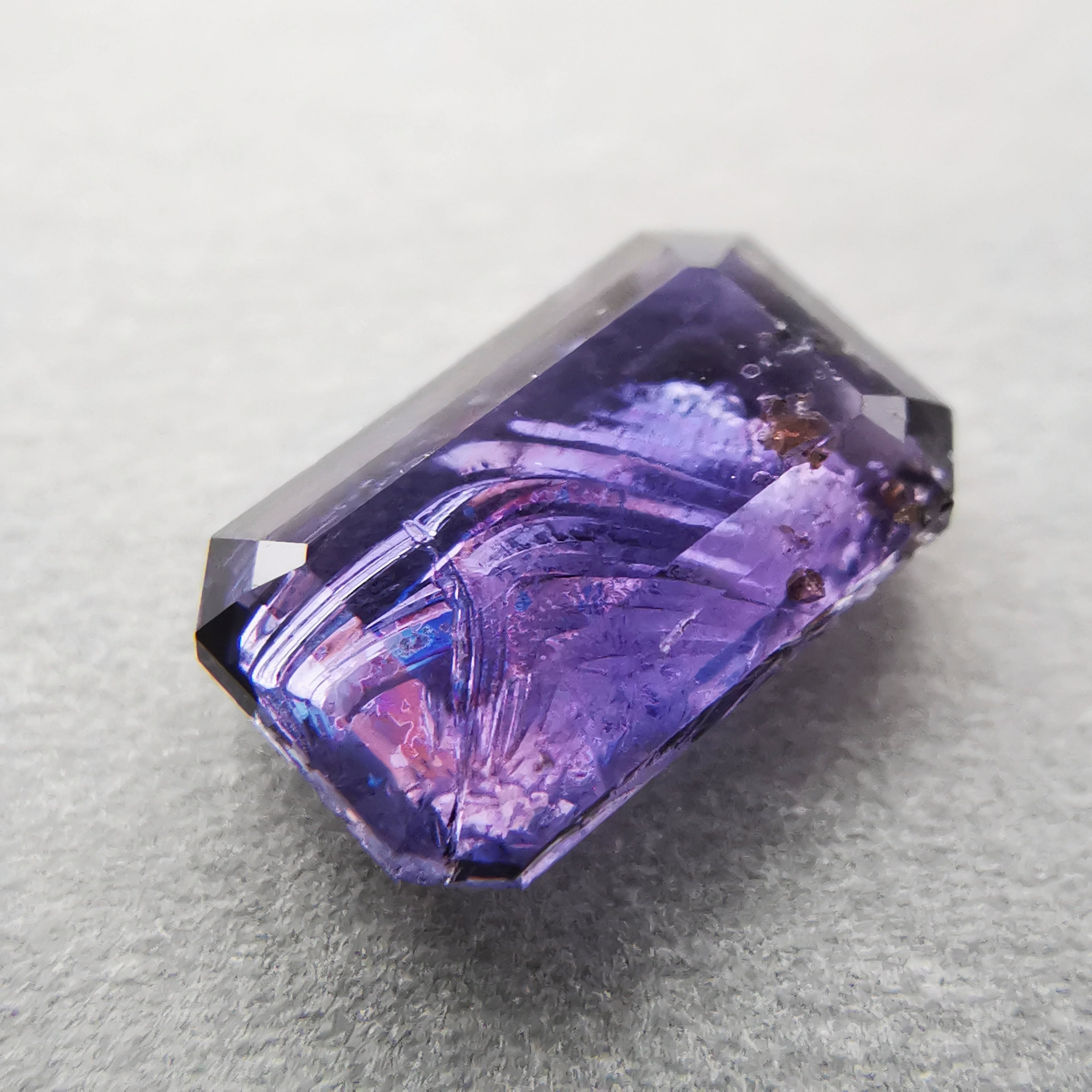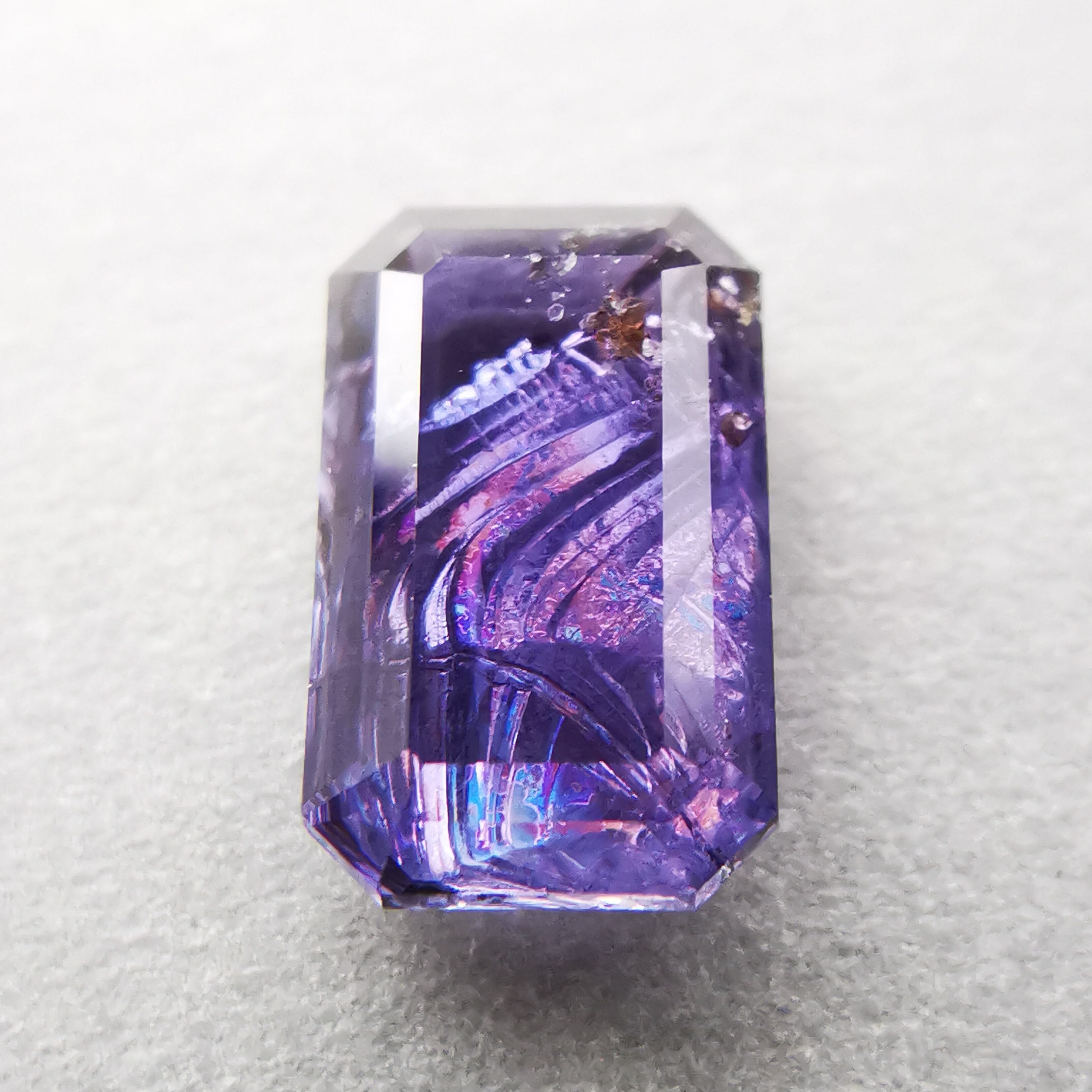 落ち着いたバイオレットカラーのサファイアが虹で満たされています。