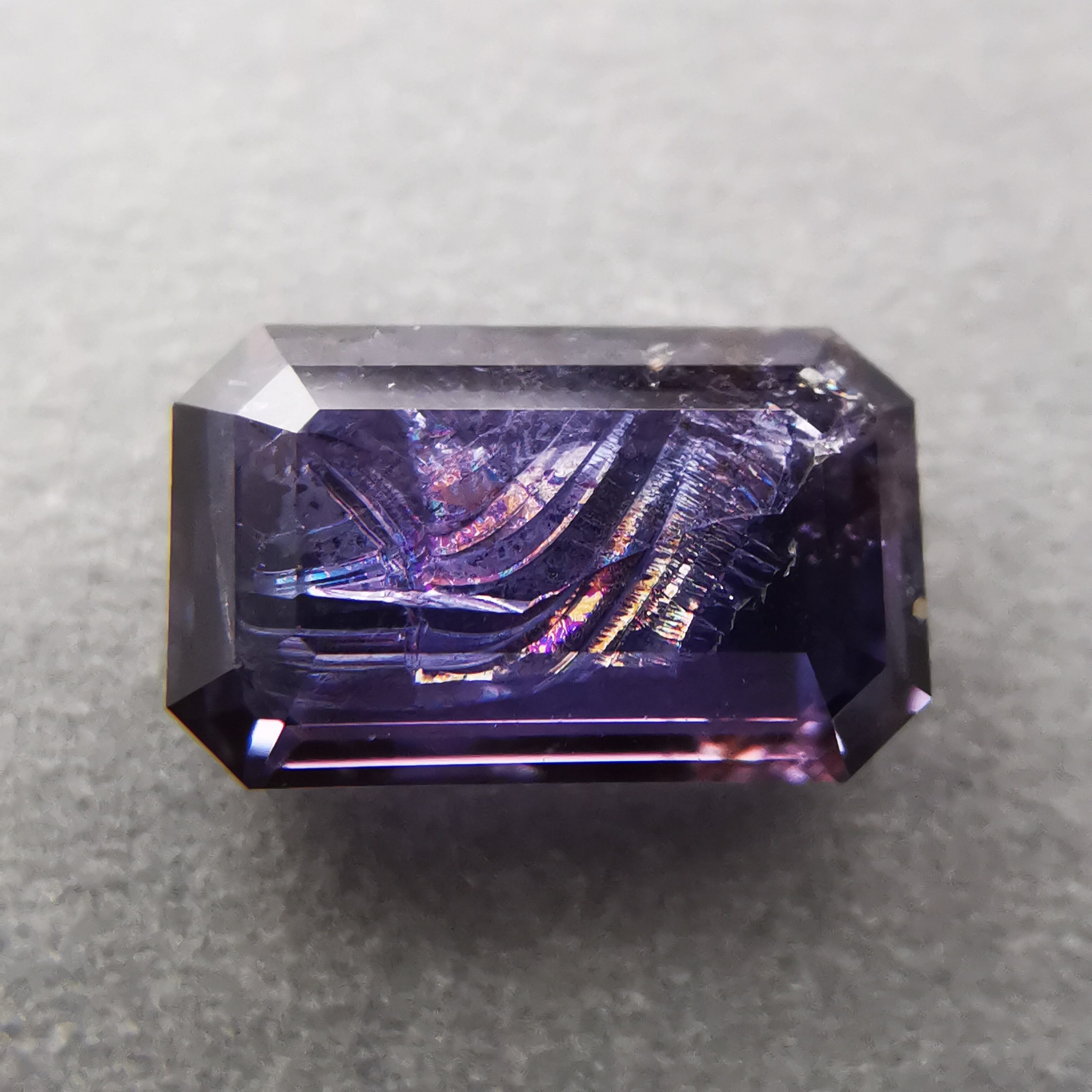 虹の起因となる大きなクラックがあり、リカットは難しいかと思いましたが、オランダ人カッターE氏がパビリオンのない、ポートレイトカットにリカットしました。