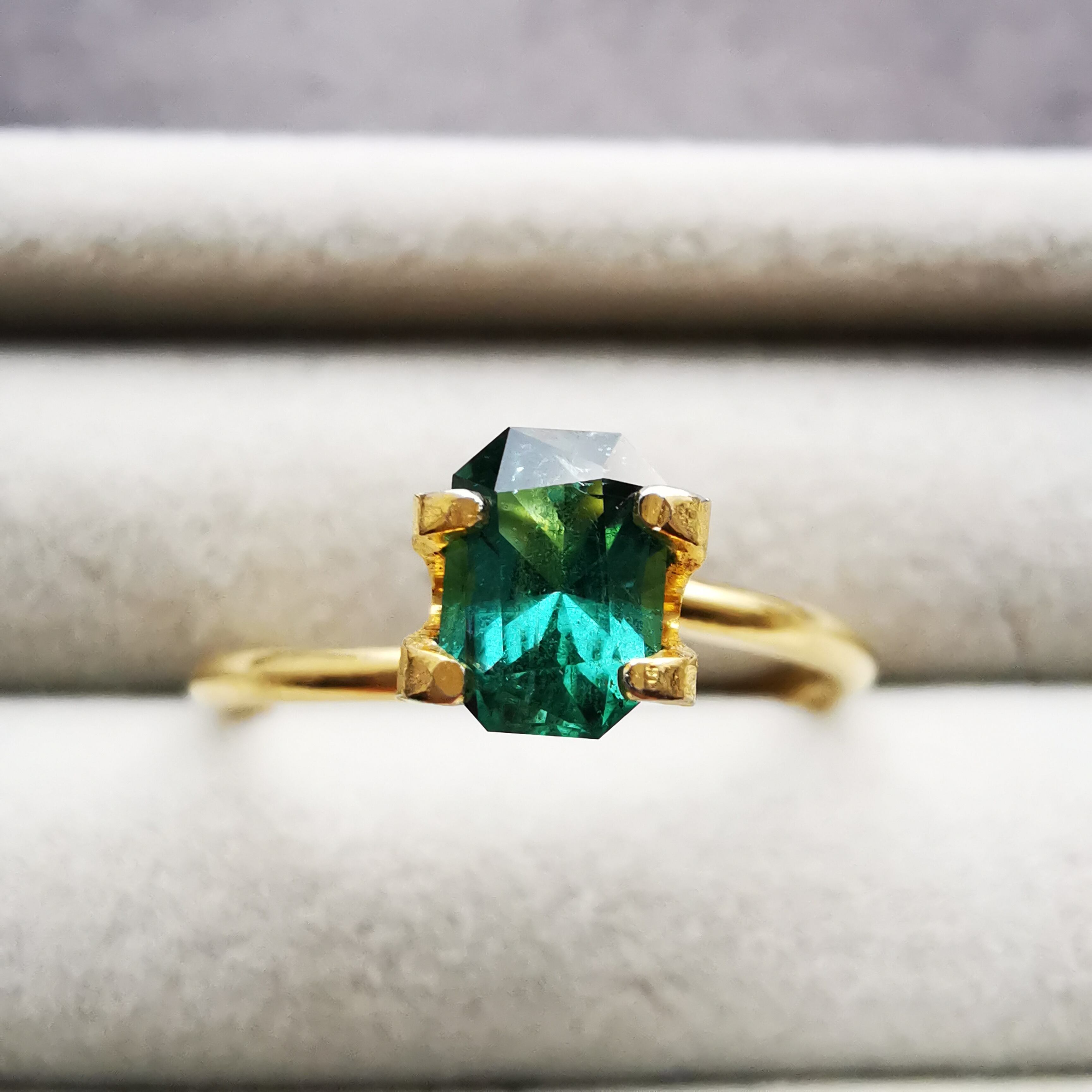 どこか、レトロな印象を受けるグリーンで、シルキーな内包物により、内側からふわりと発色します。