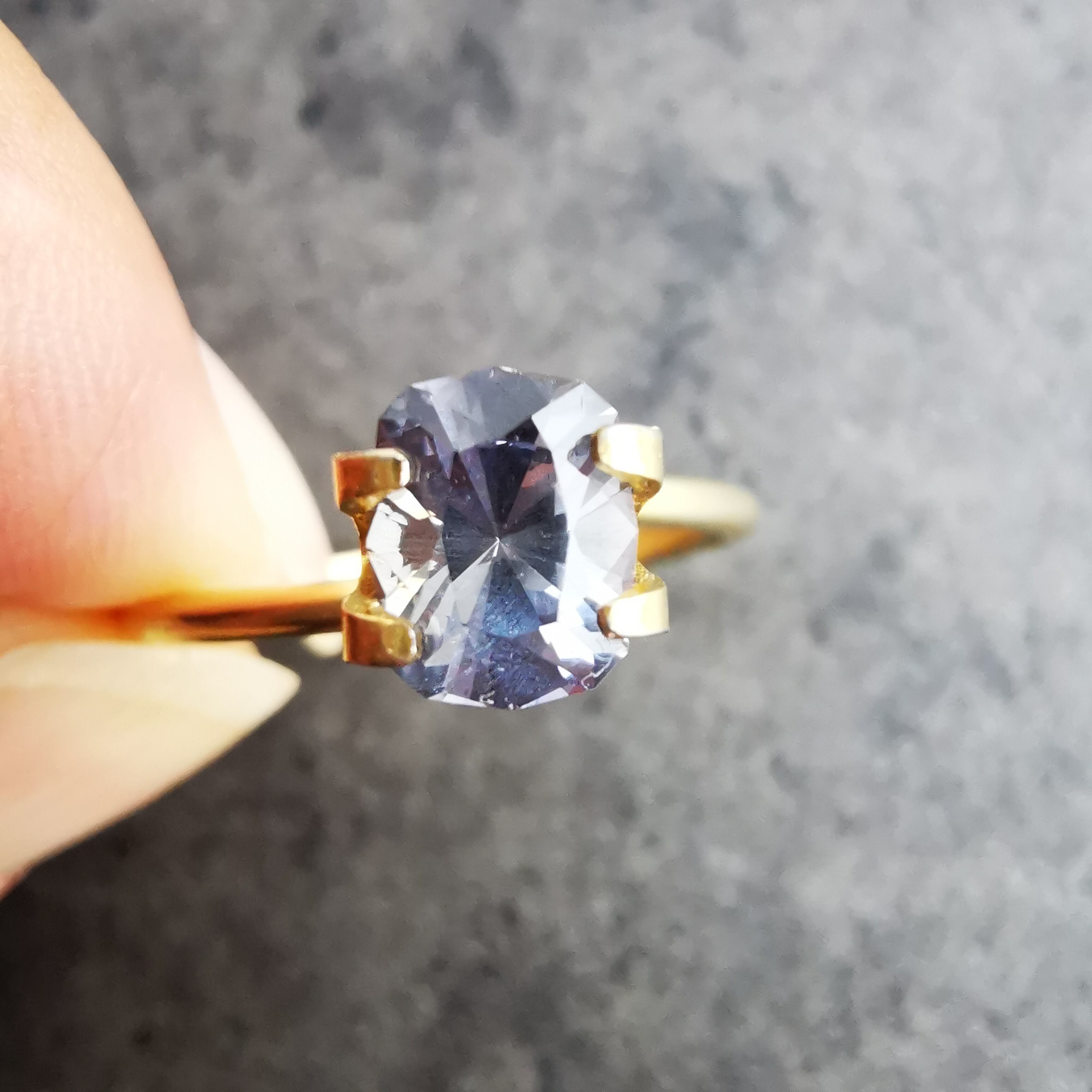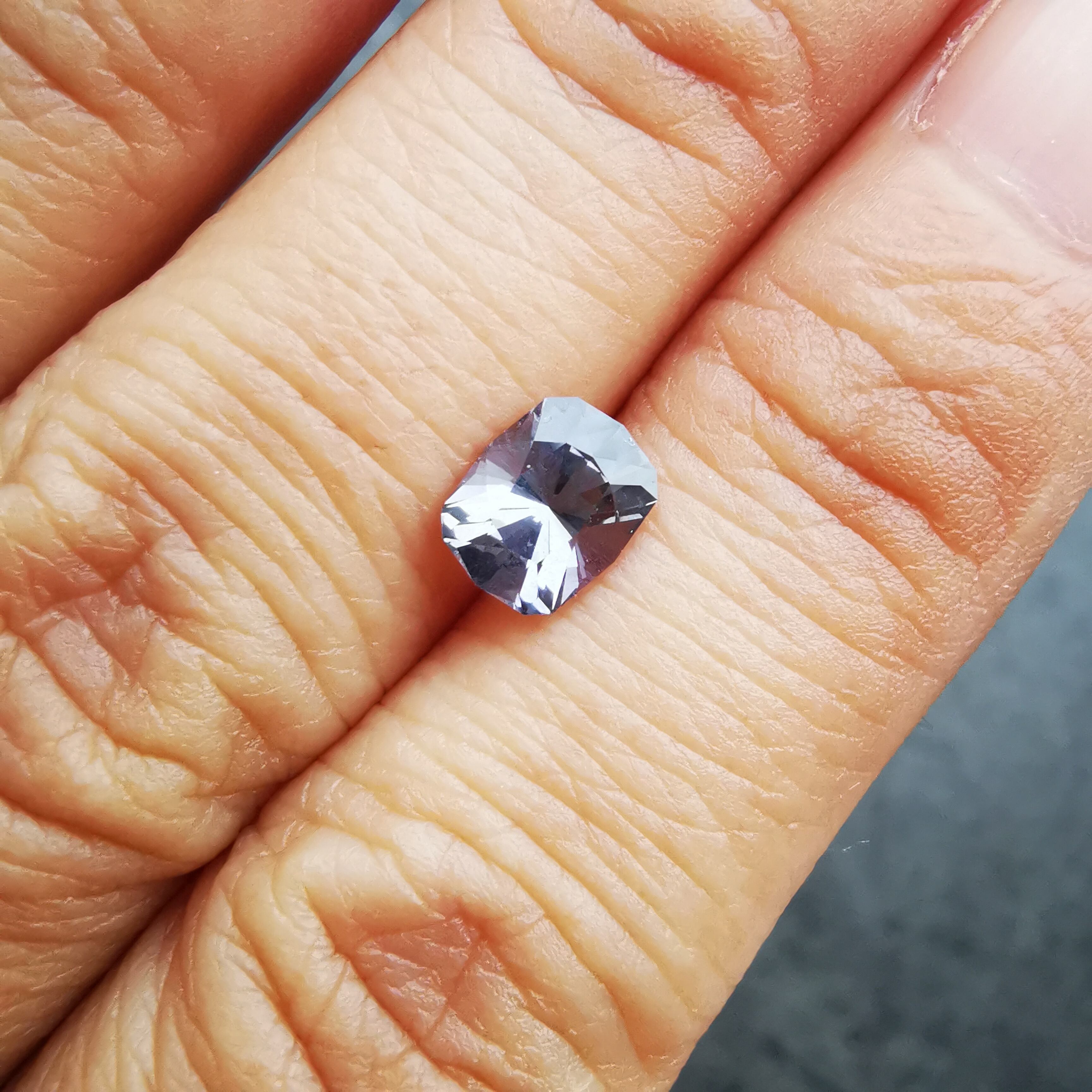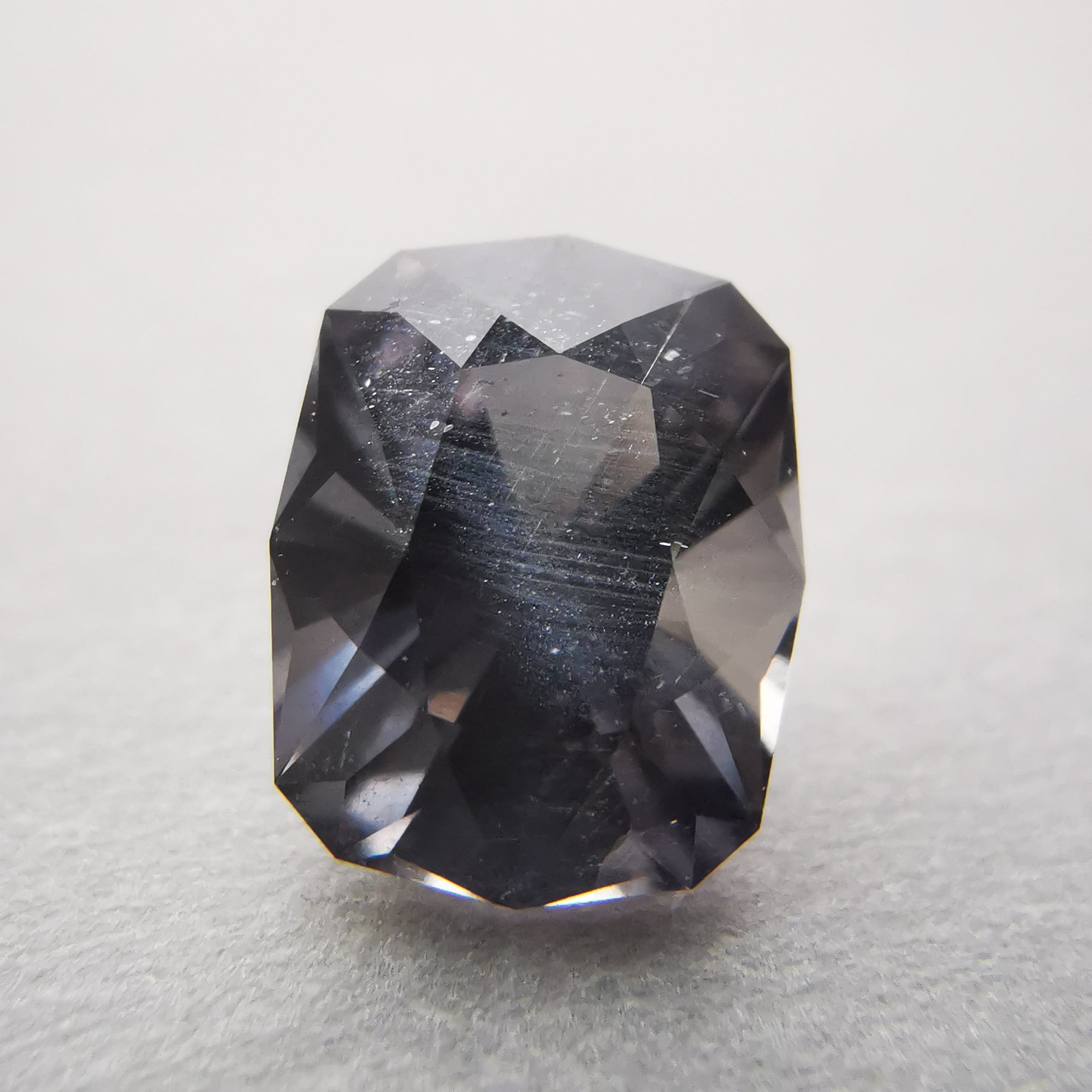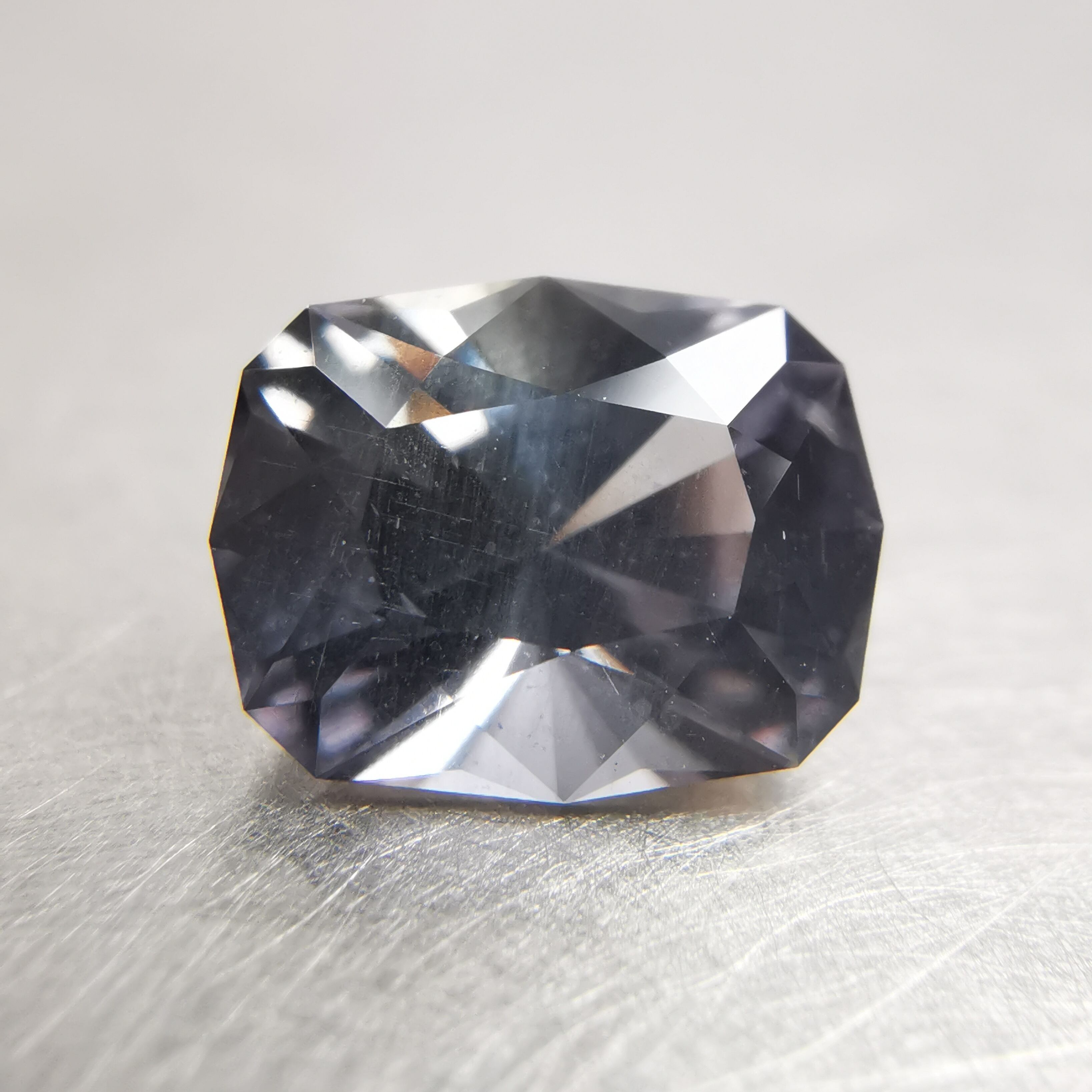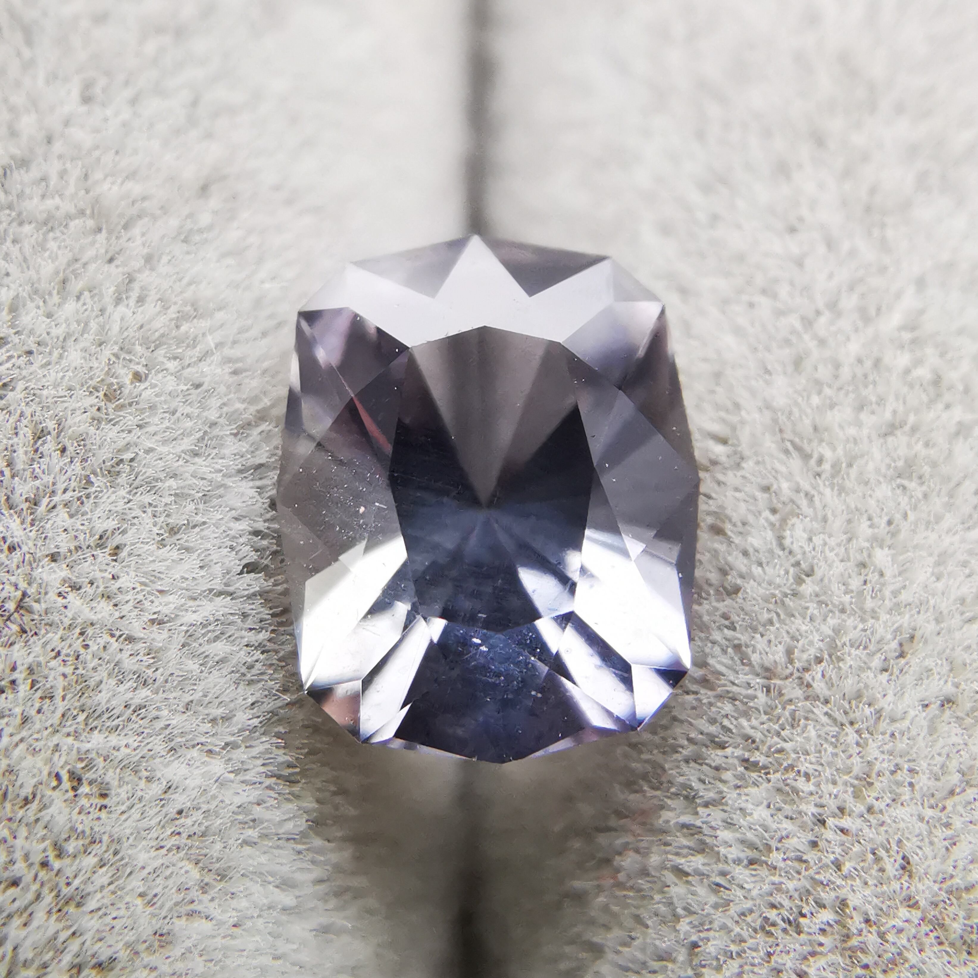 グレーのグラデーションの石の中から、きらめく白い輝きが美しいシルキーなサファイアです。