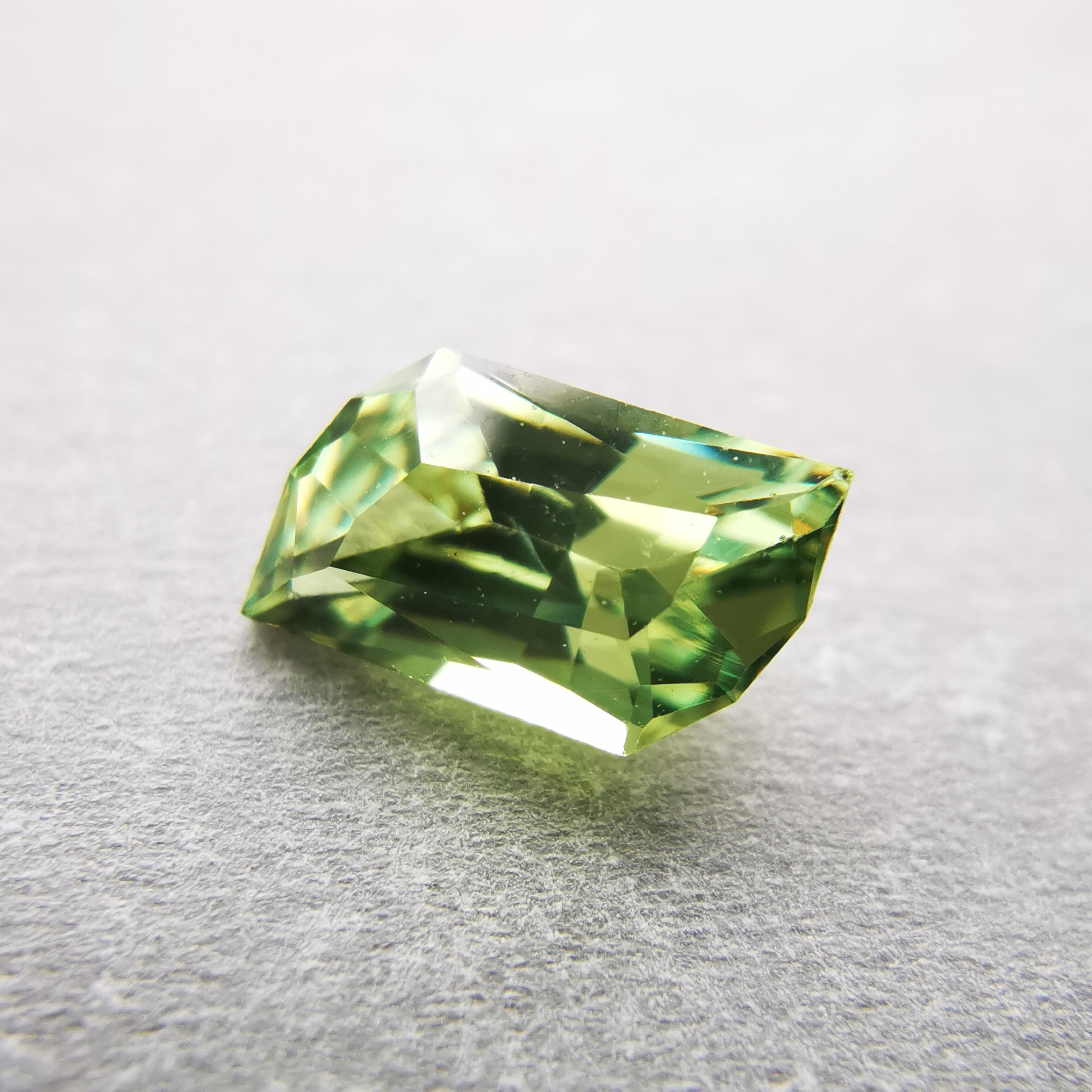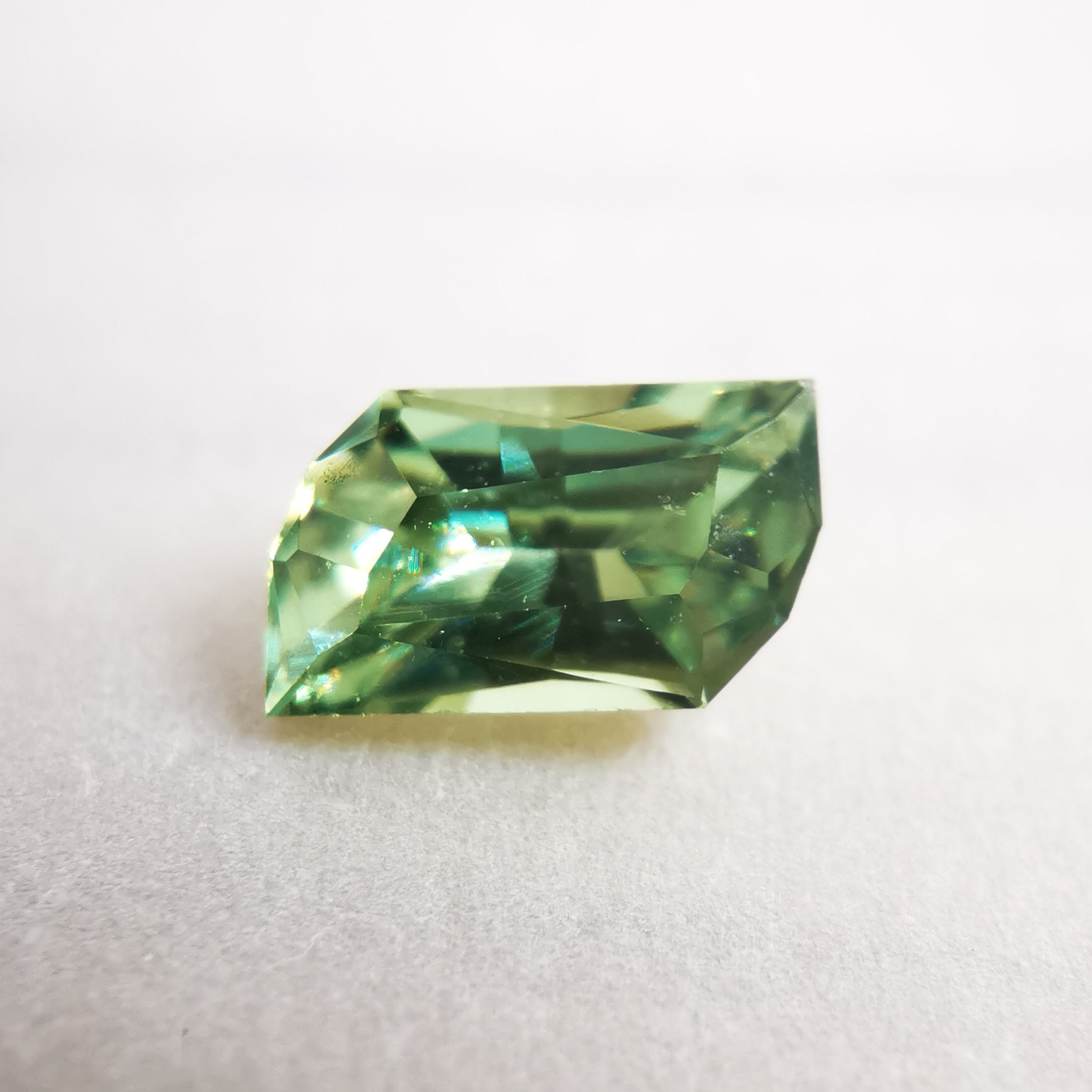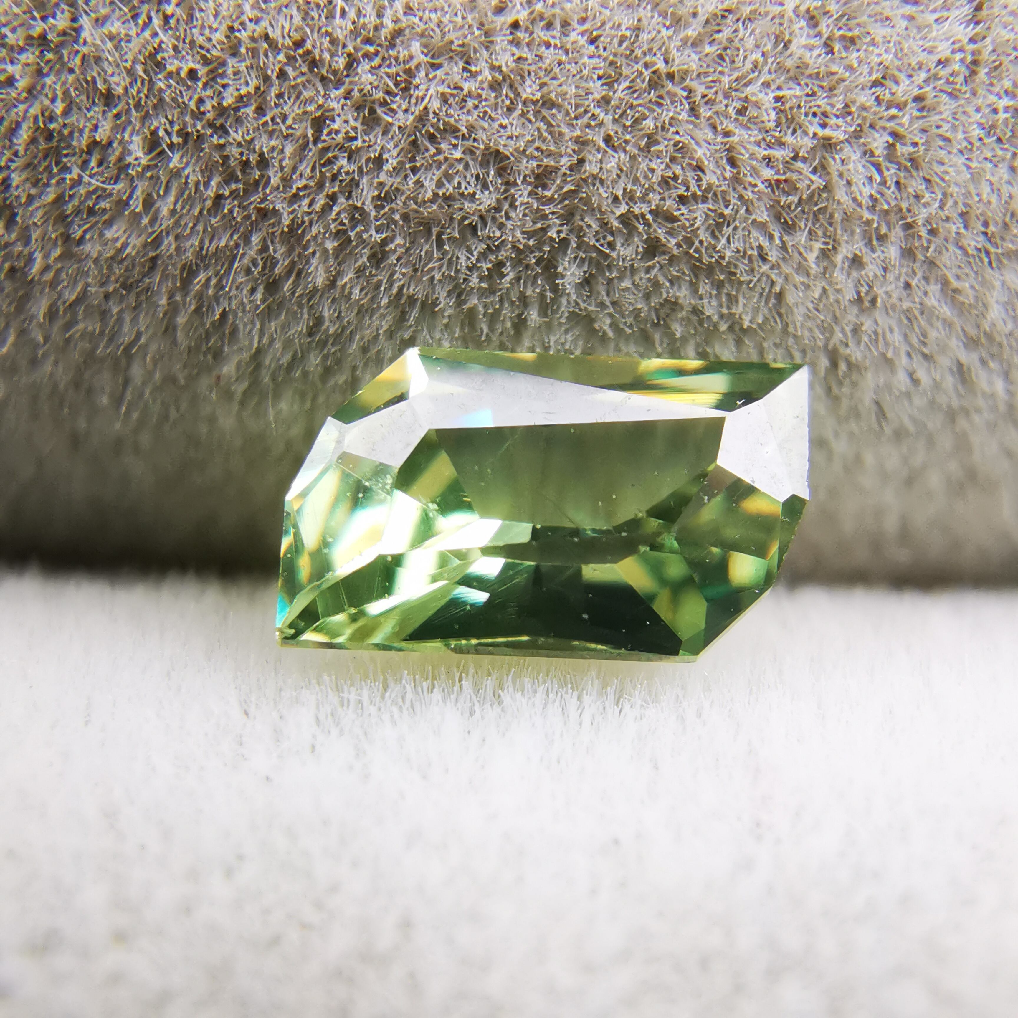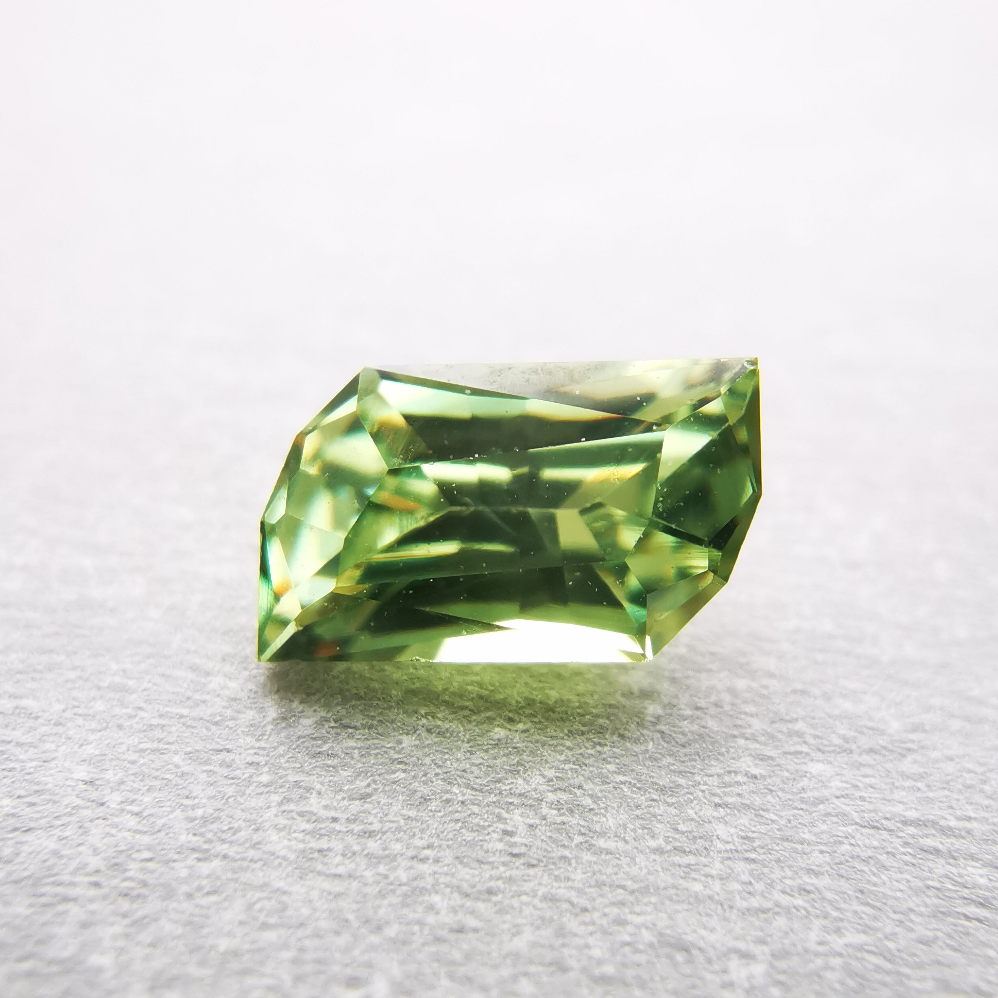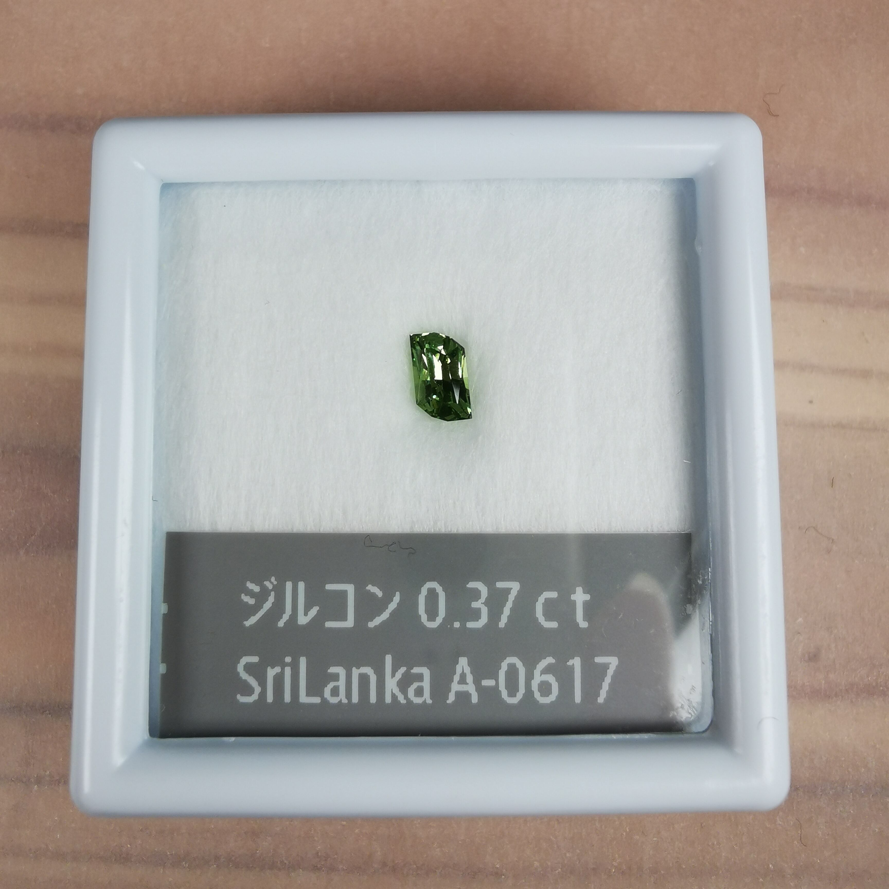 アップルグリーンの明るいカラー、ギラギラと強くきらめくジルコンです。