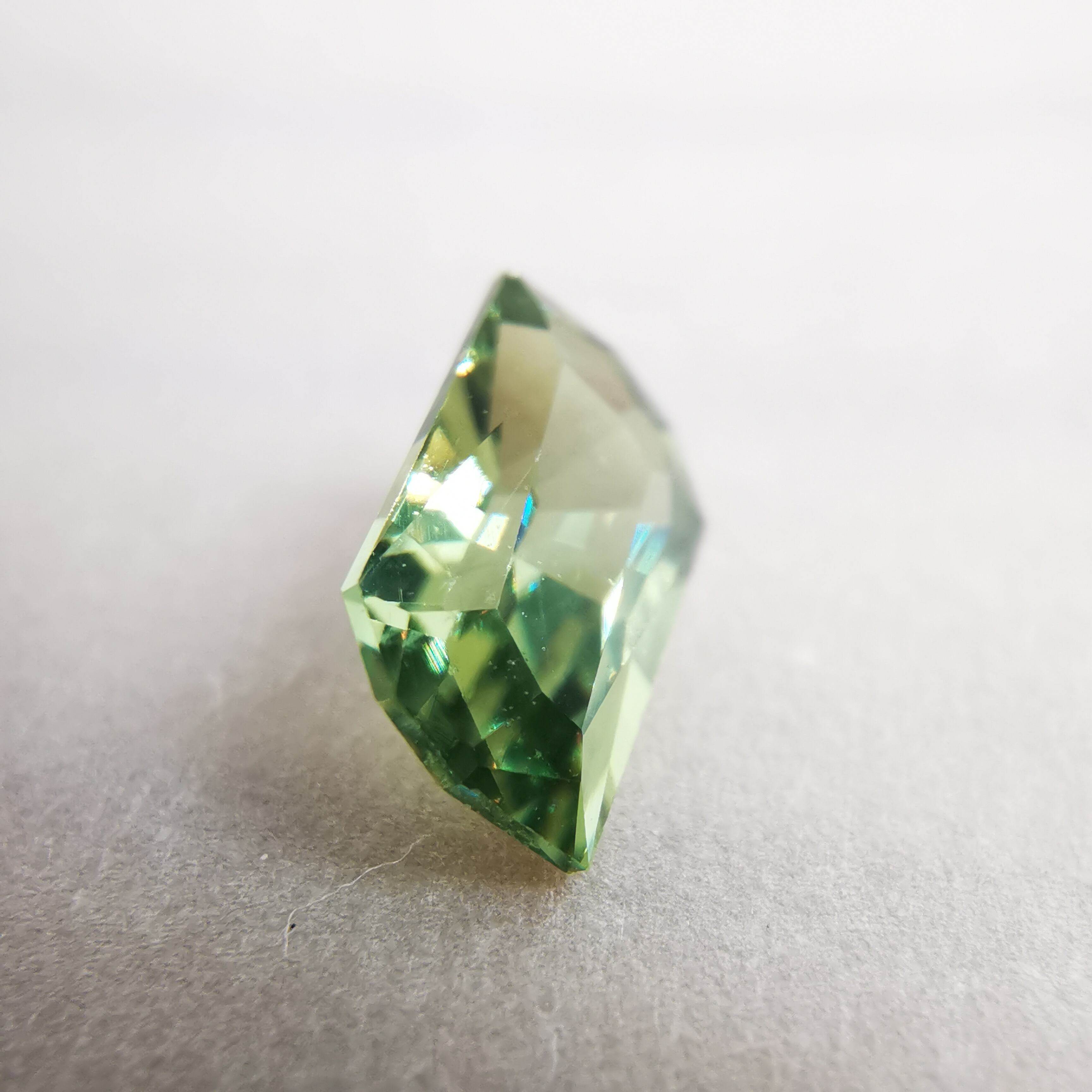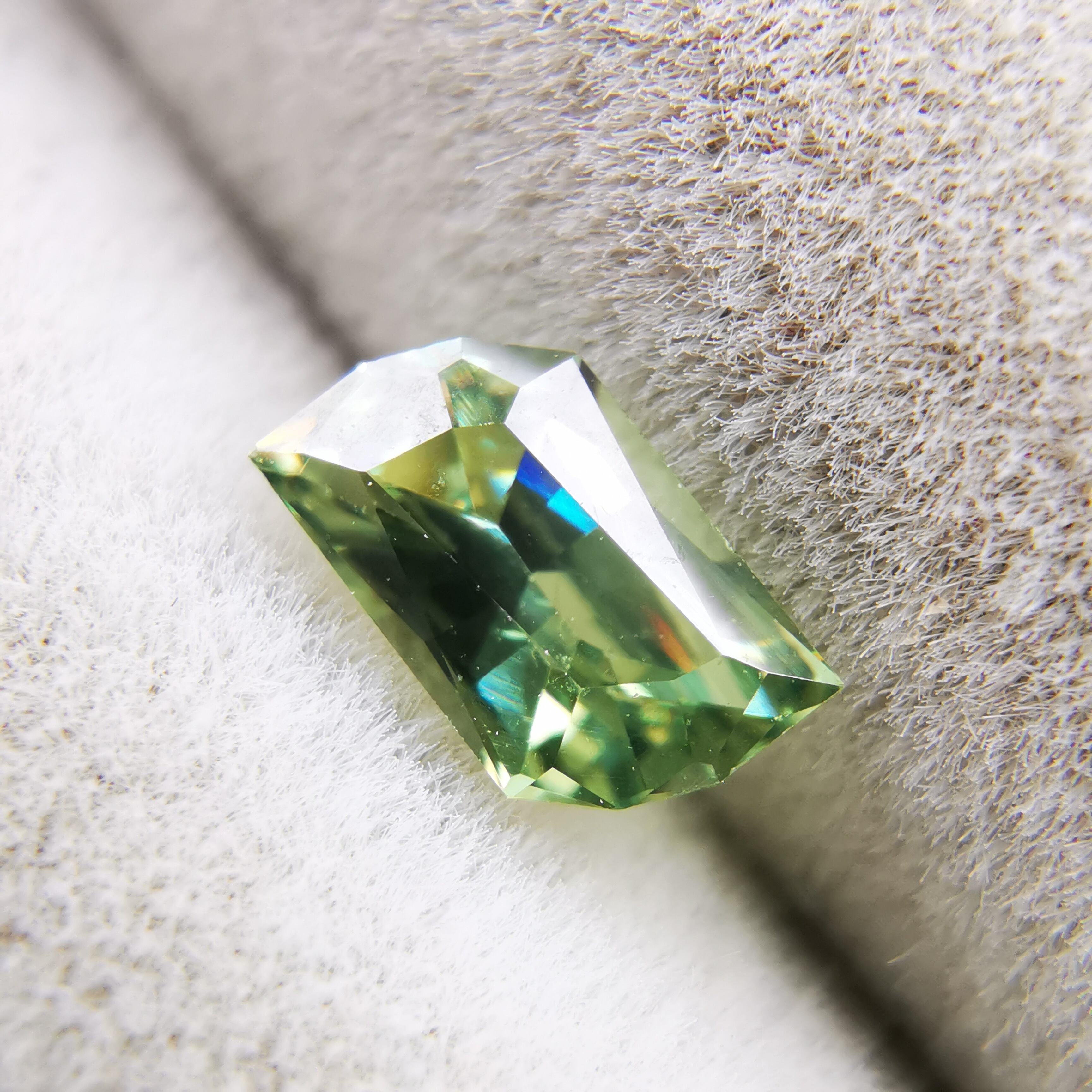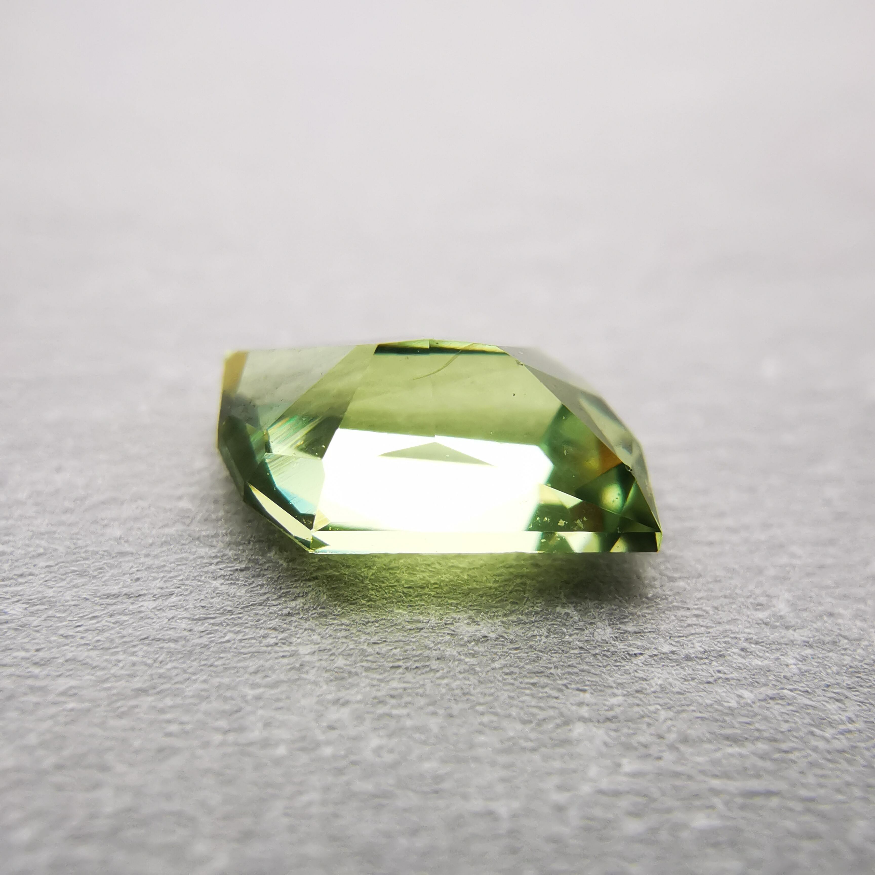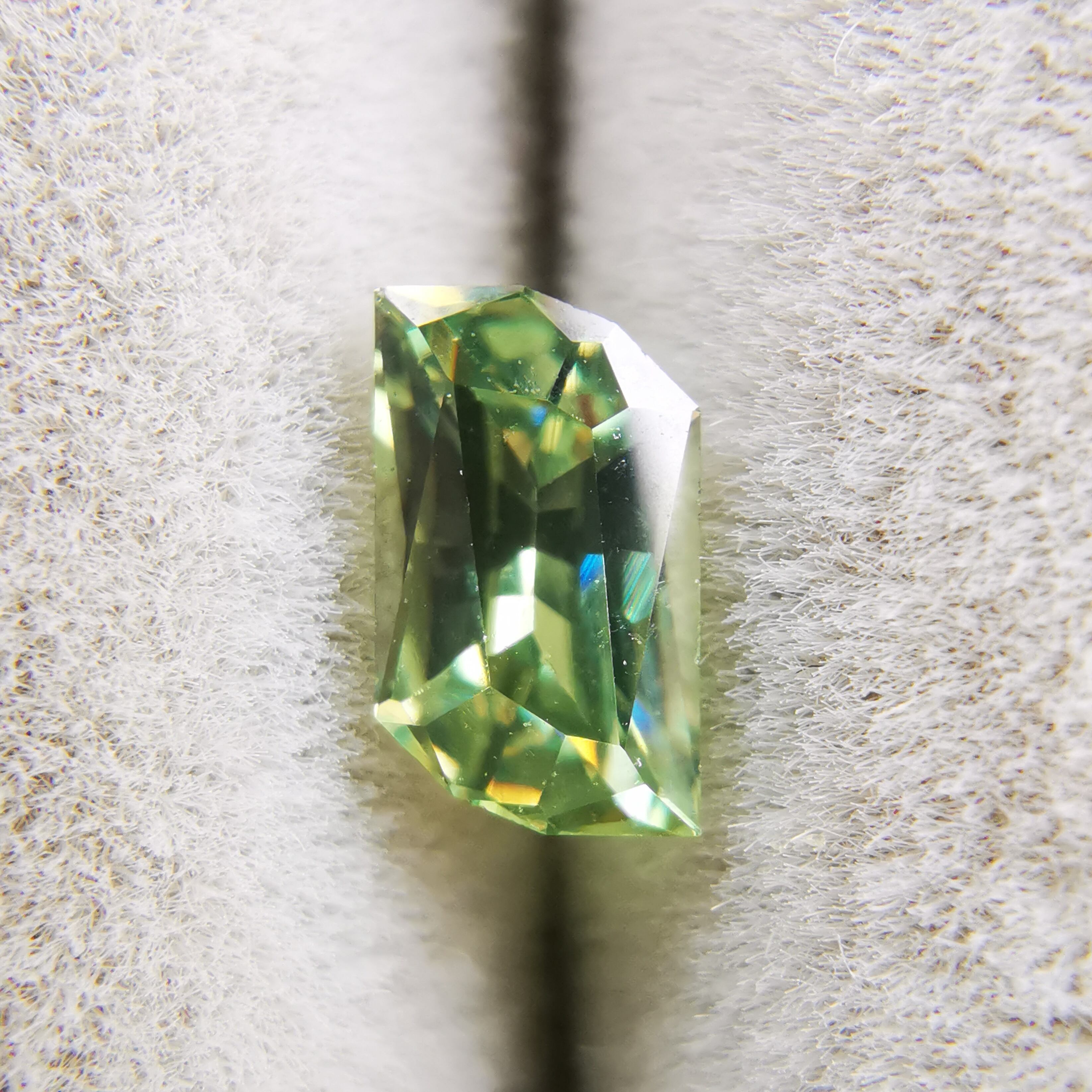 アップルグリーンの明るいカラー、ギラギラと強くきらめくジルコンです。