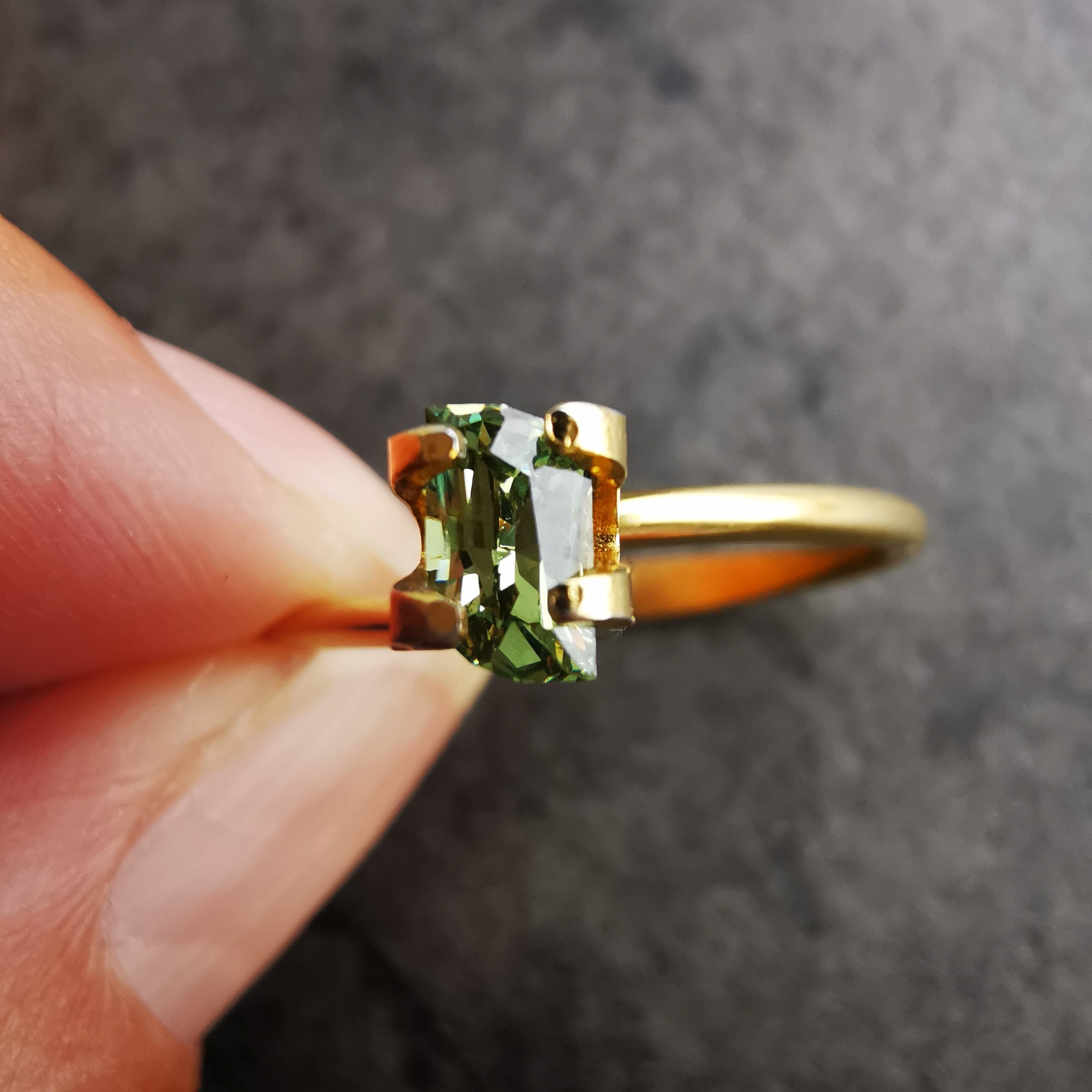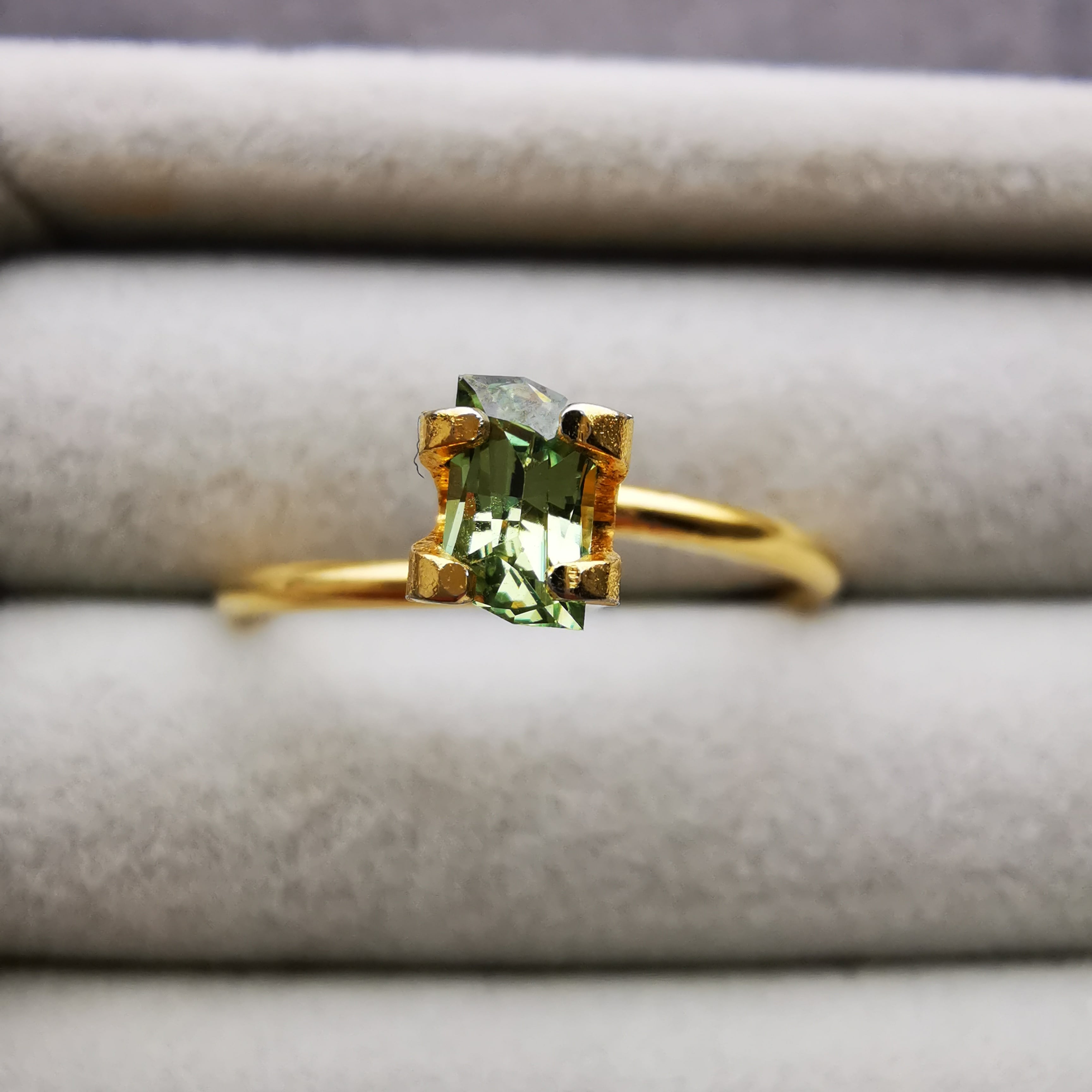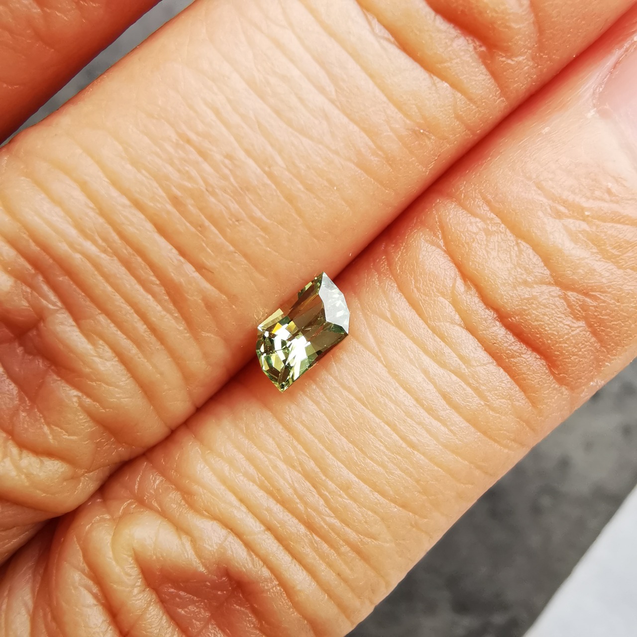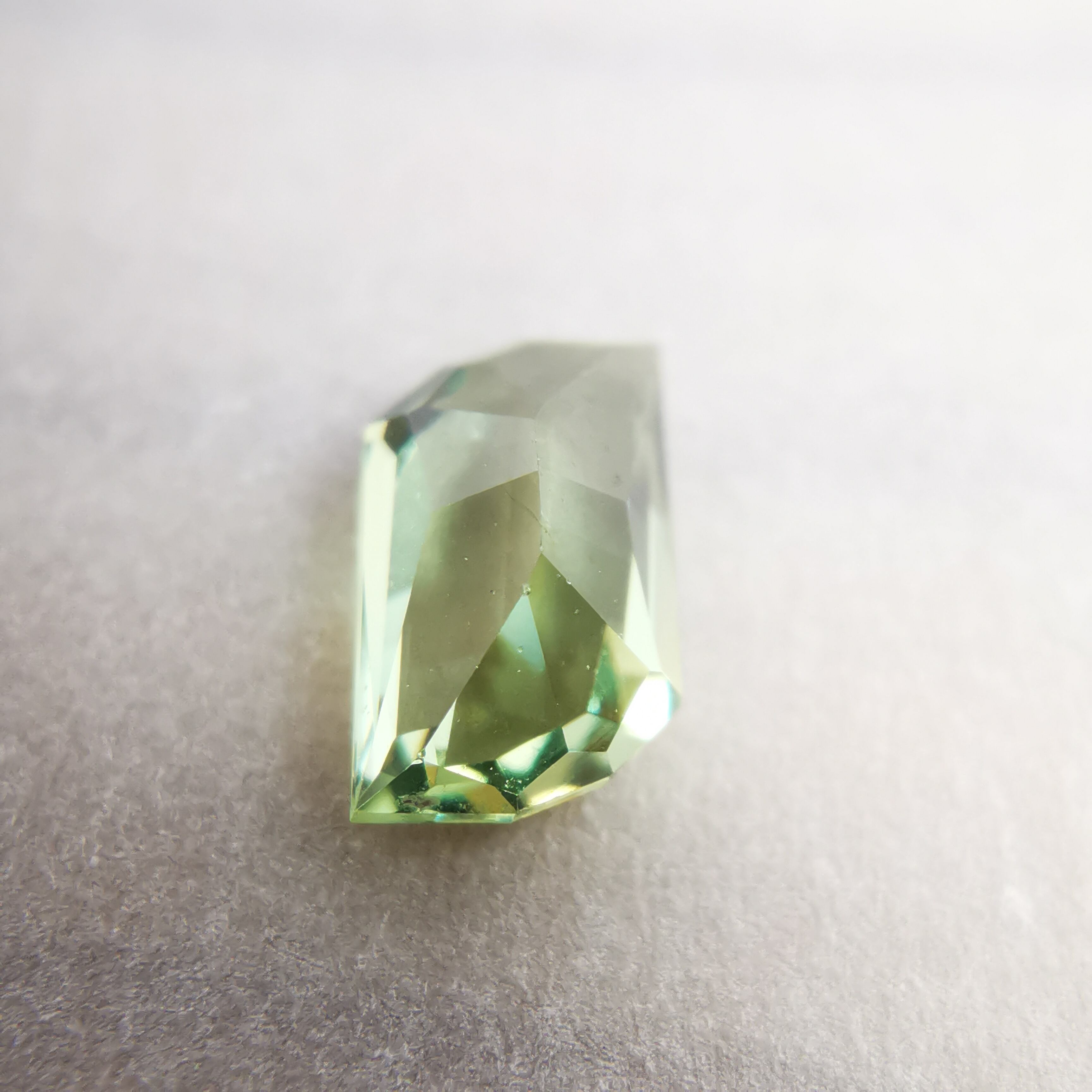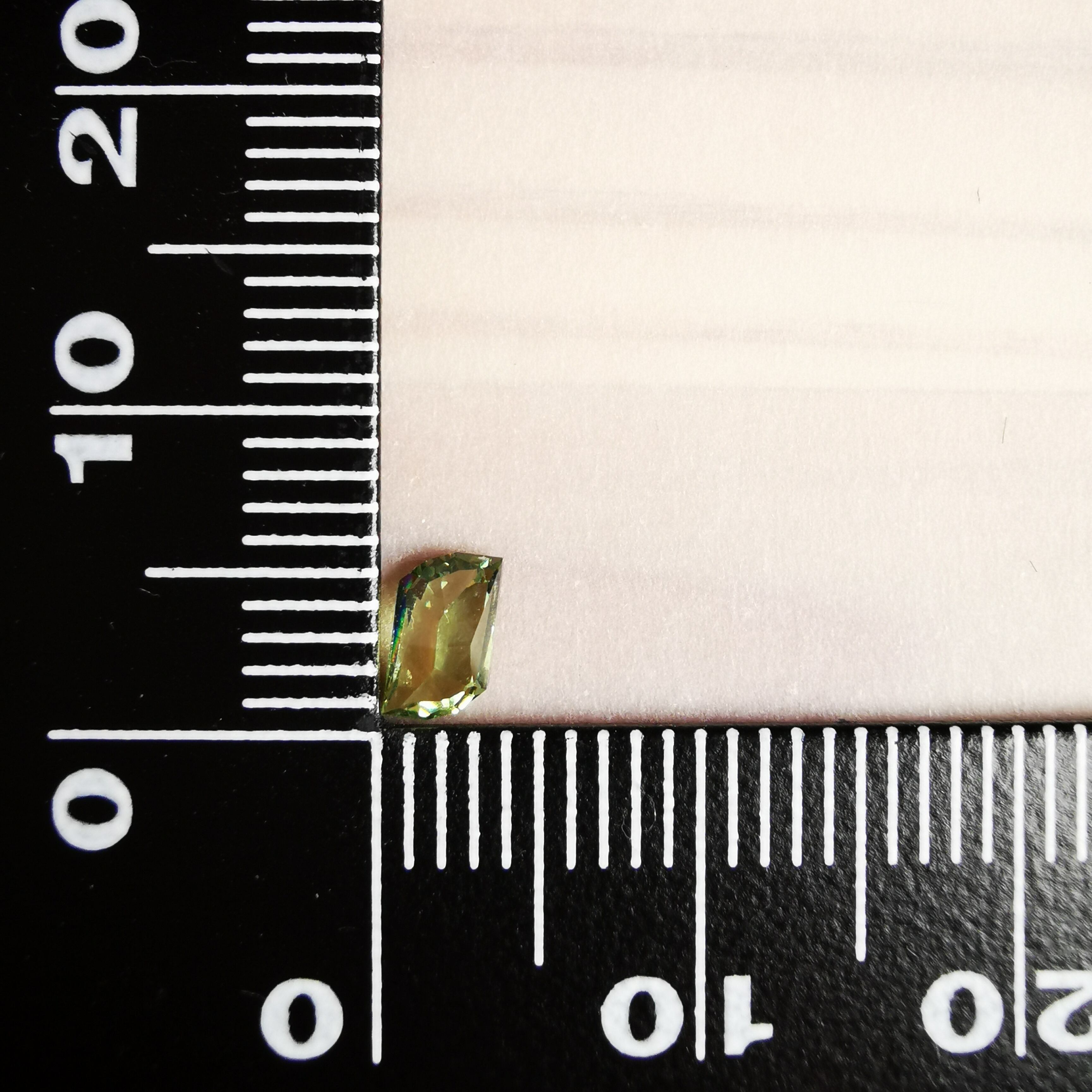 アップルグリーンの明るいカラー、ギラギラと強くきらめくジルコンです。