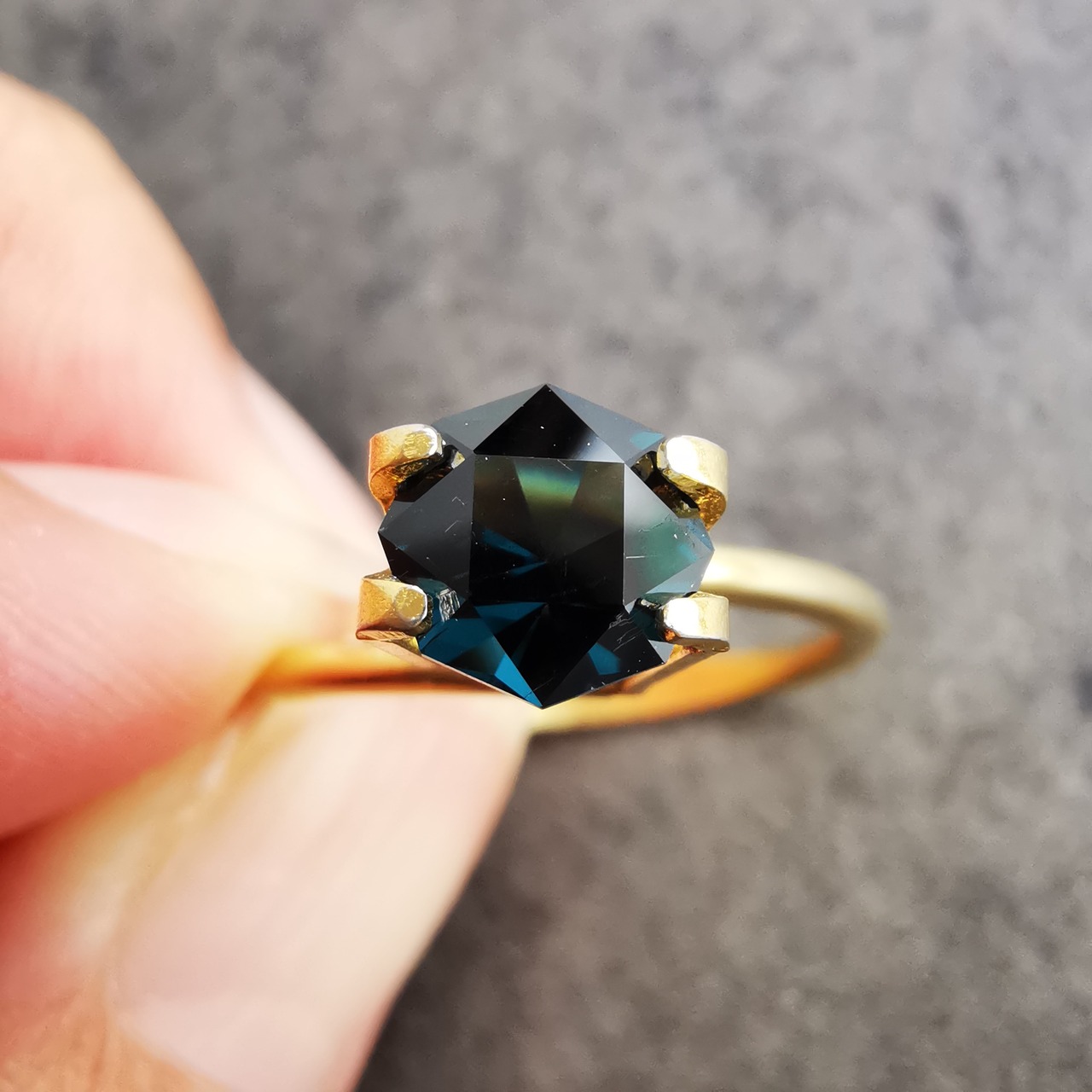 ブルーと言うか、グリーンと言うか、とても迷うところですが、スピネルでここまでグリーンを感じる石は多くはありません。