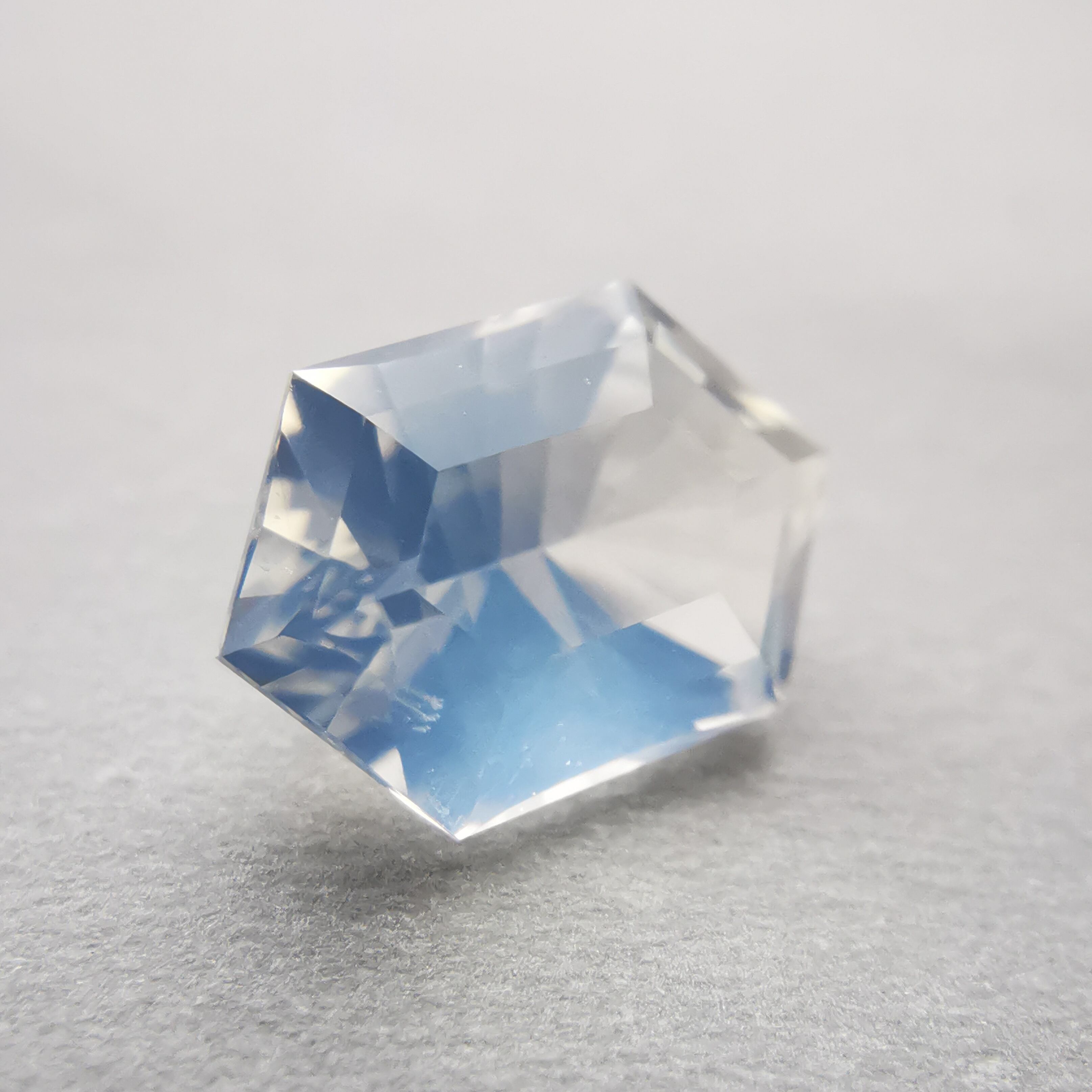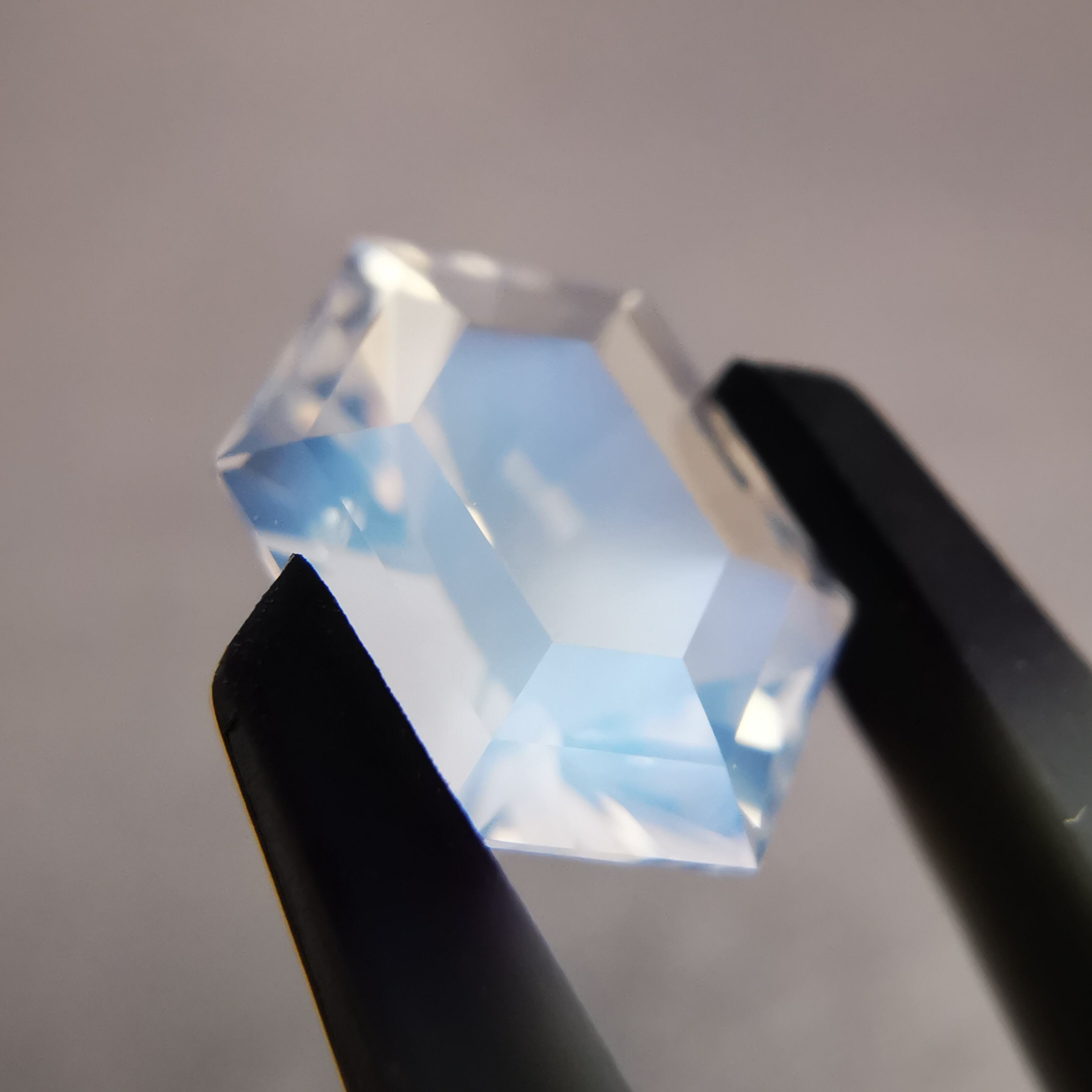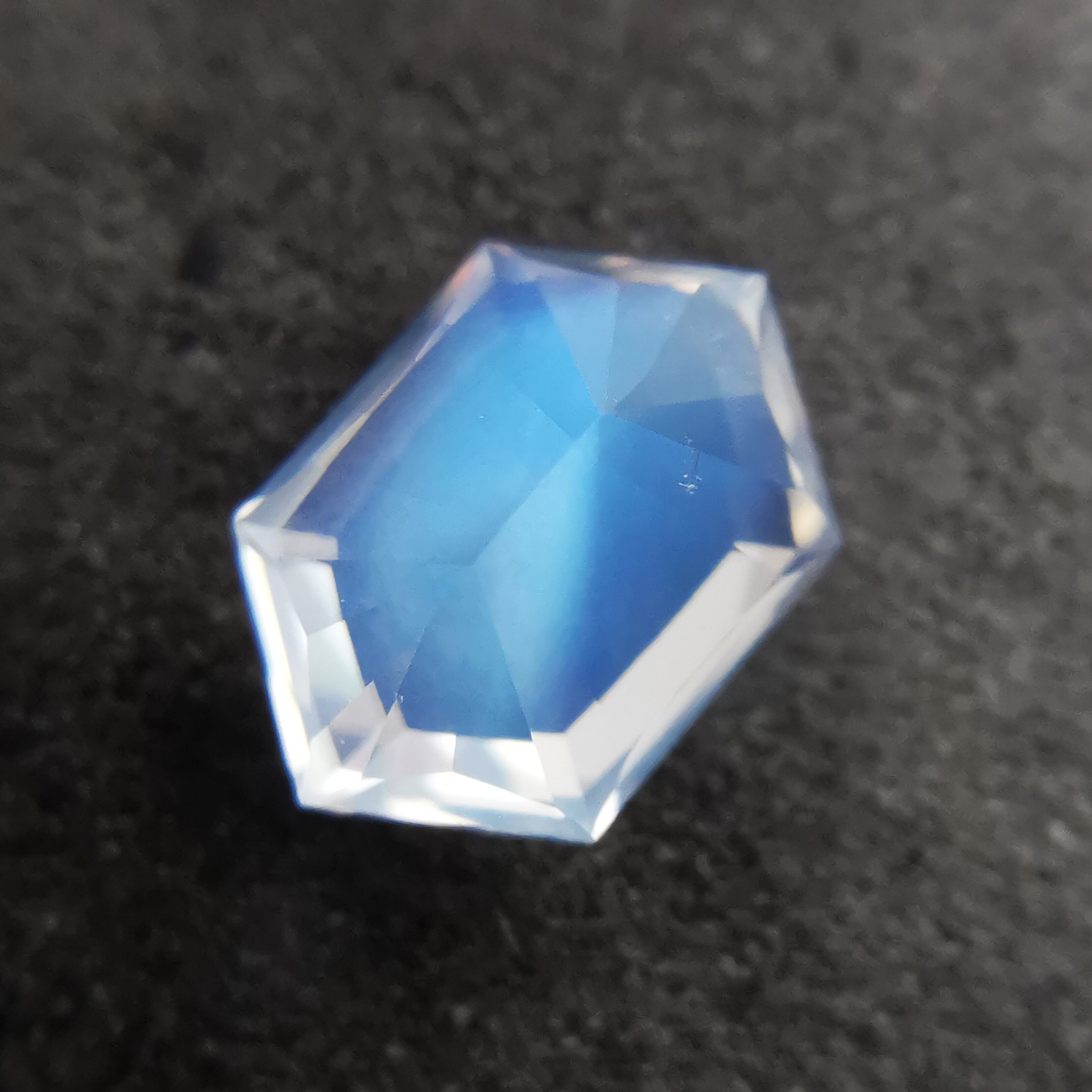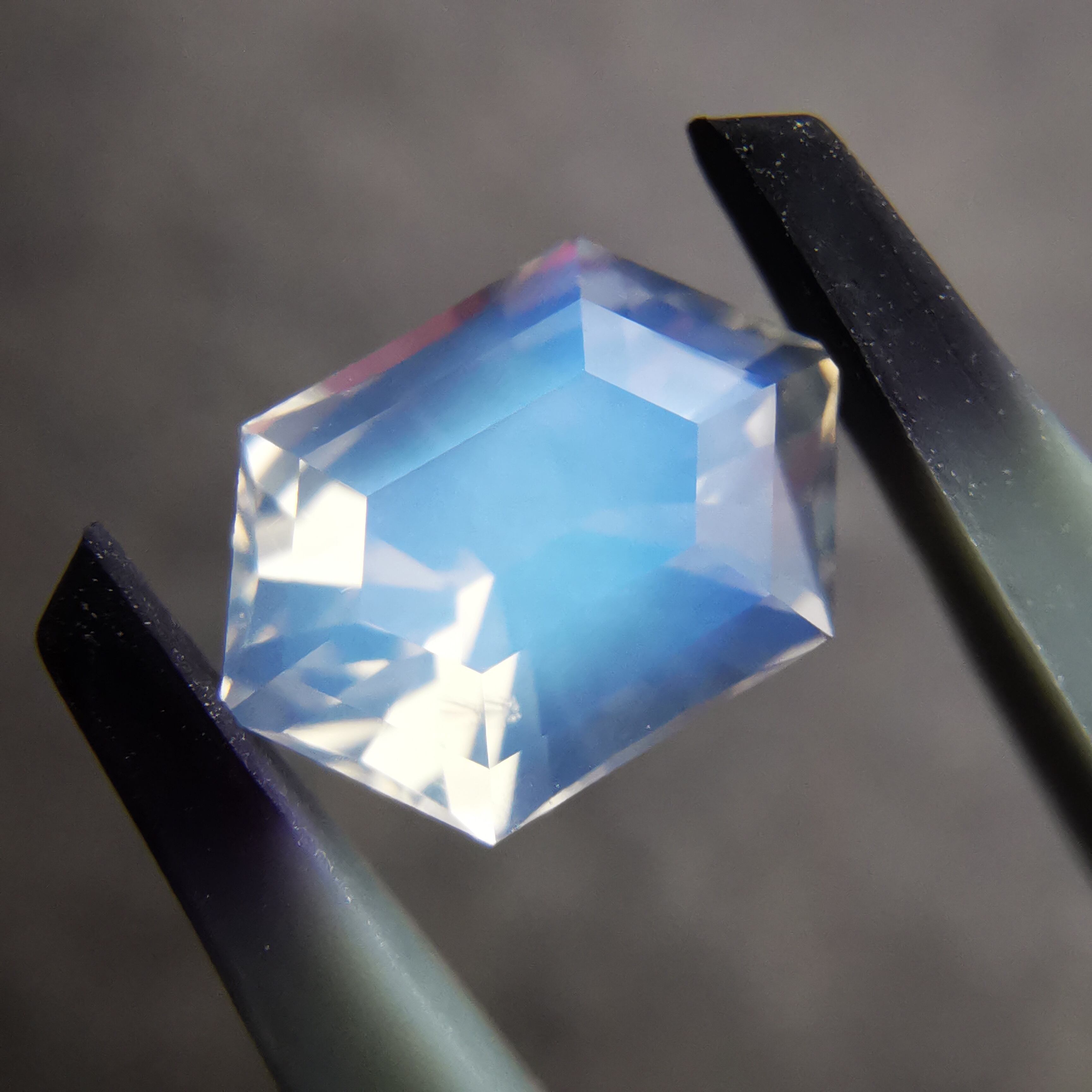 カボションカットにされることが多いムーンストーンですが、儚く幻想的なブルームーンストーンにはカスタムカットが映えるはずと、カッターにリクエストしました。