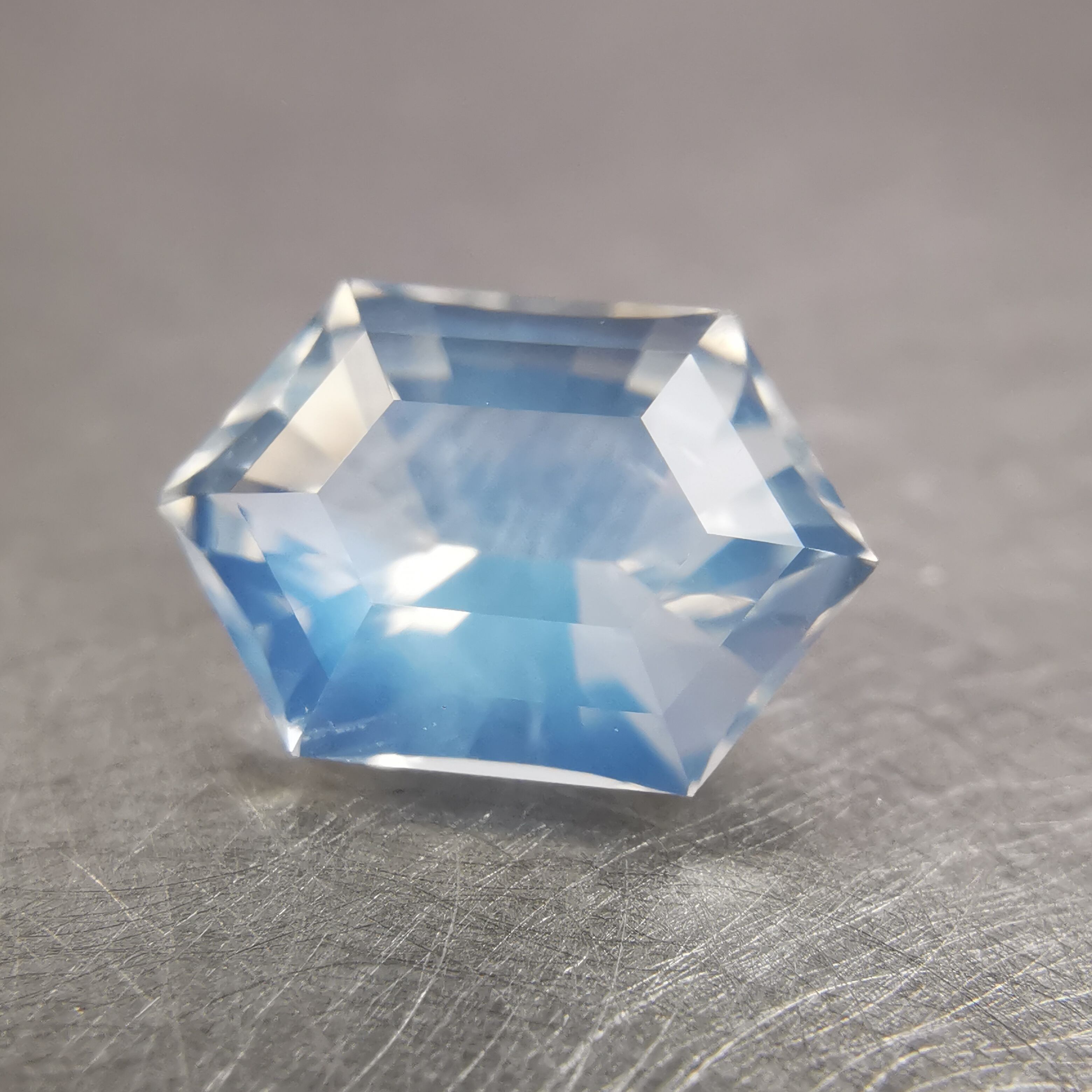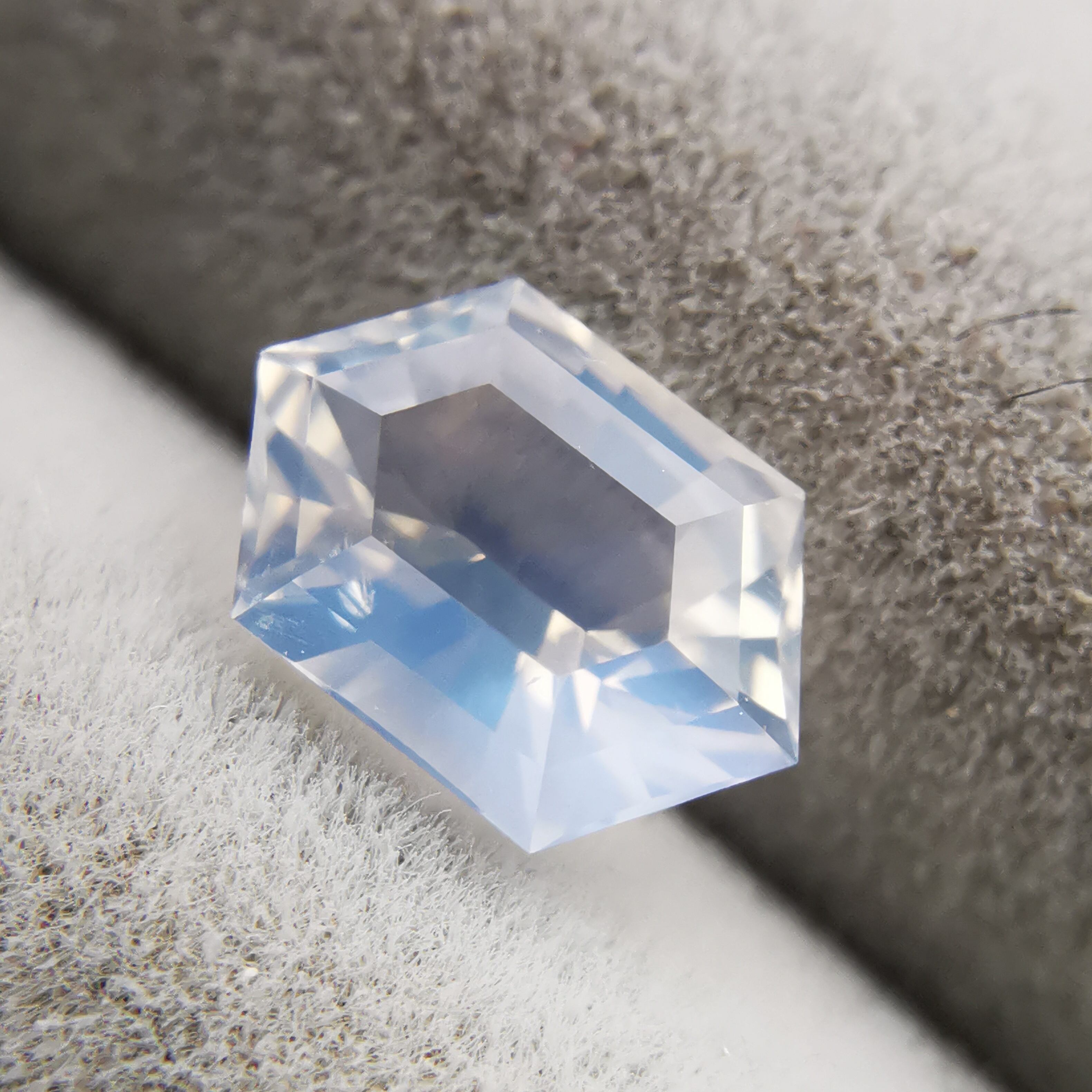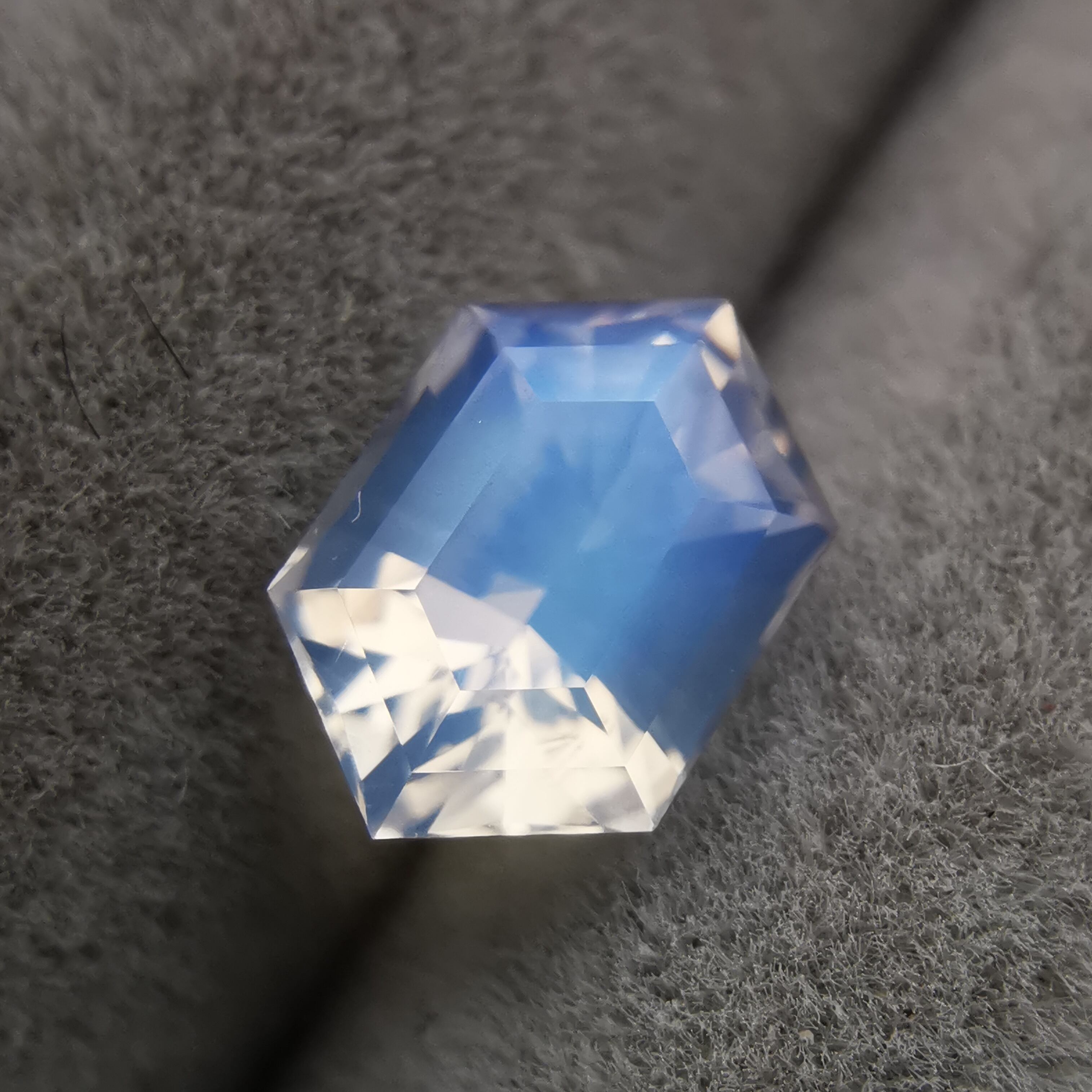 カボションカットにされることが多いムーンストーンですが、儚く幻想的なブルームーンストーンにはカスタムカットが映えるはずと、カッターにリクエストしました。