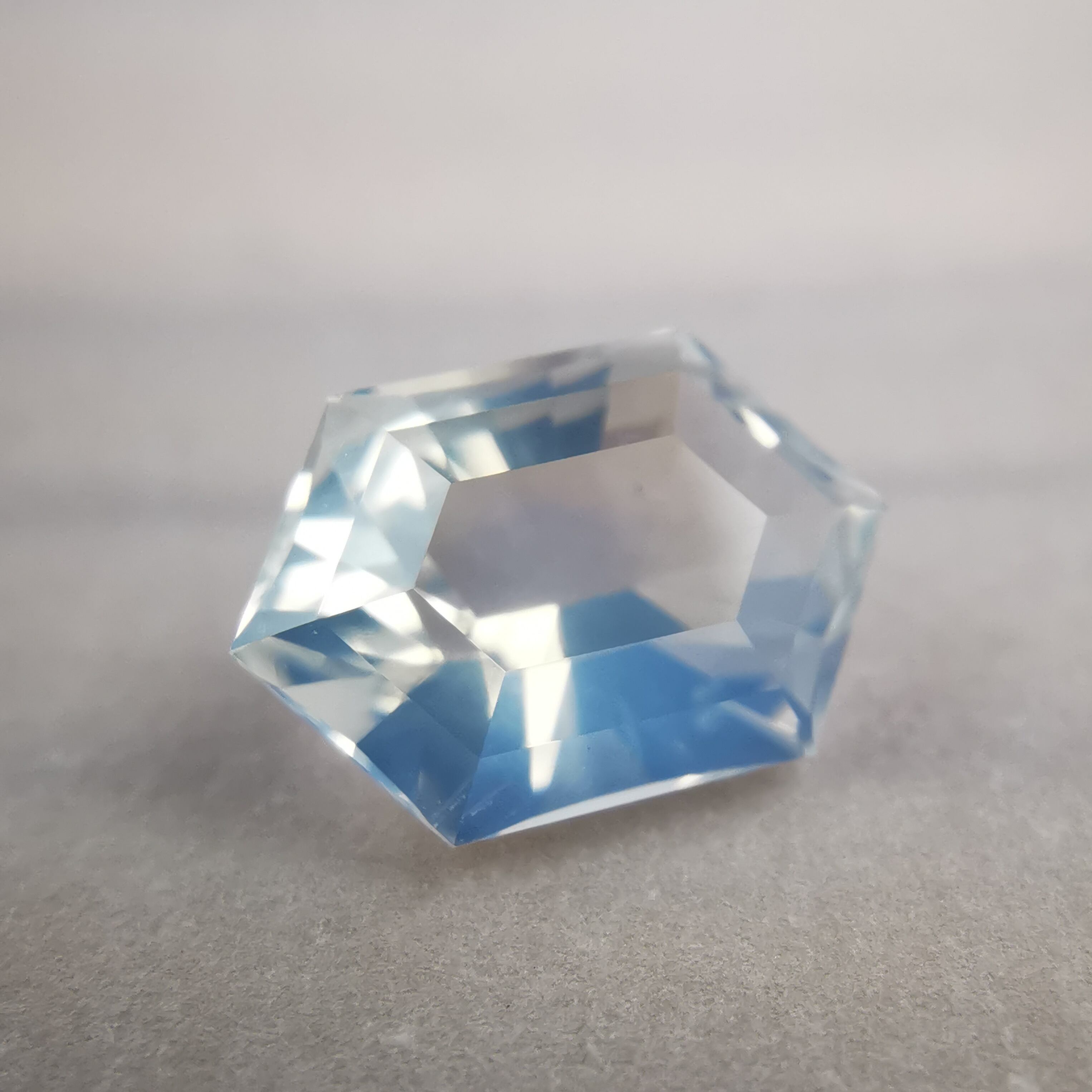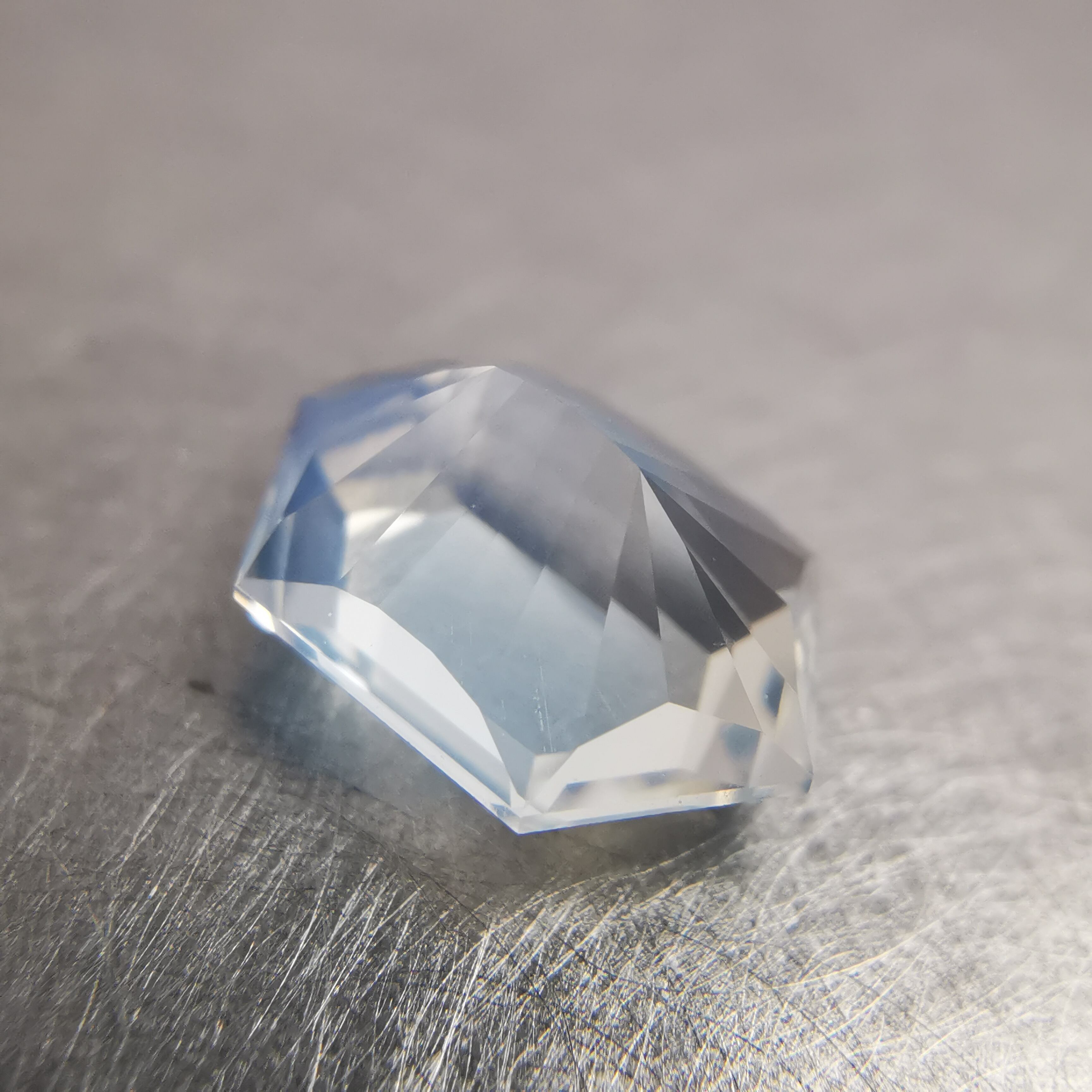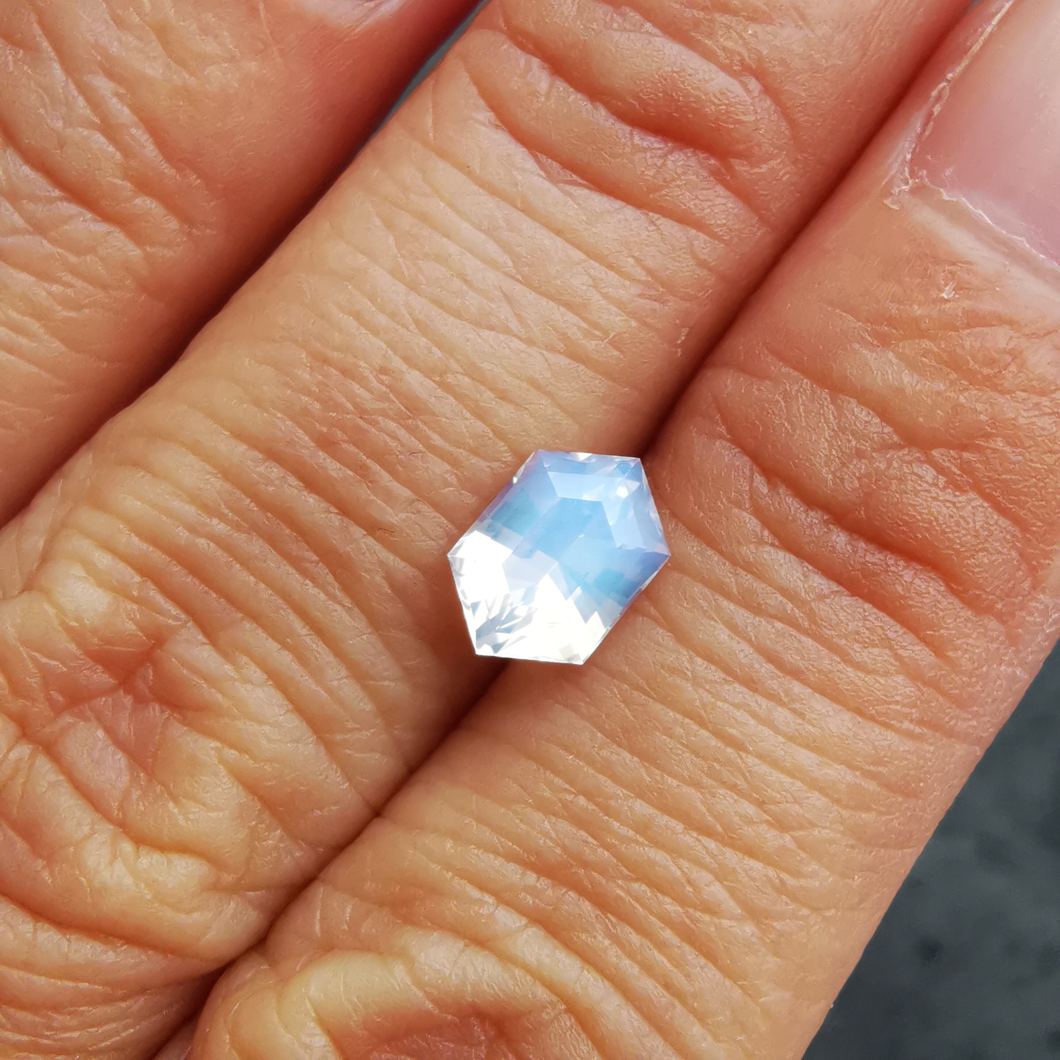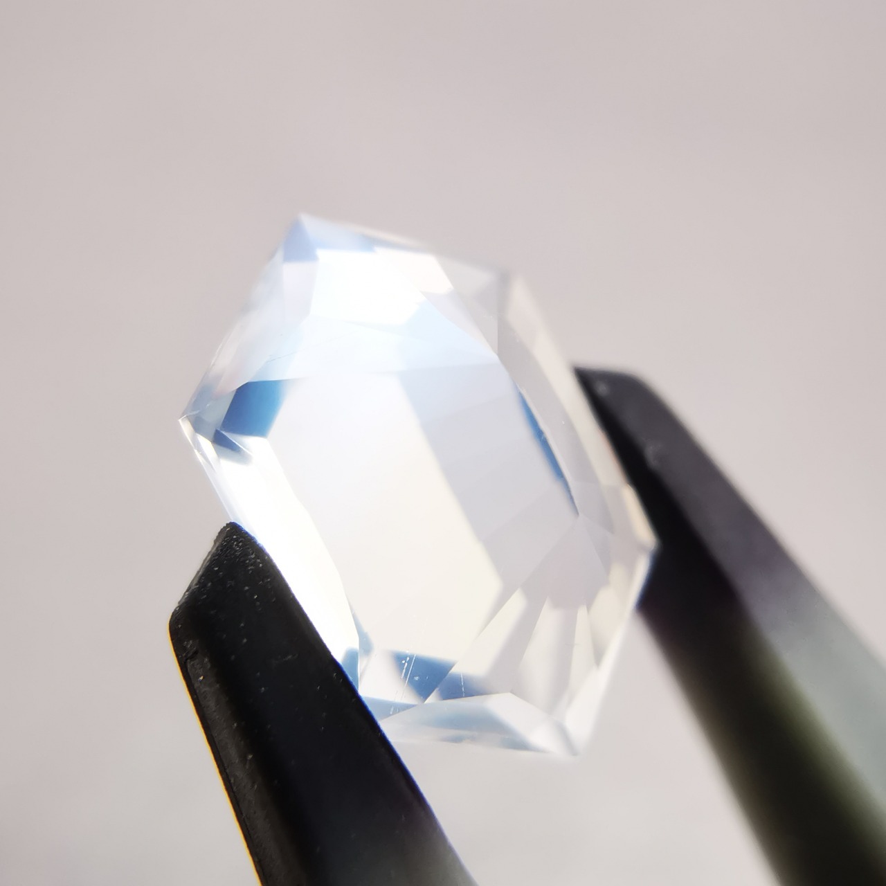 カボションカットにされることが多いムーンストーンですが、儚く幻想的なブルームーンストーンにはカスタムカットが映えるはずと、カッターにリクエストしました。
