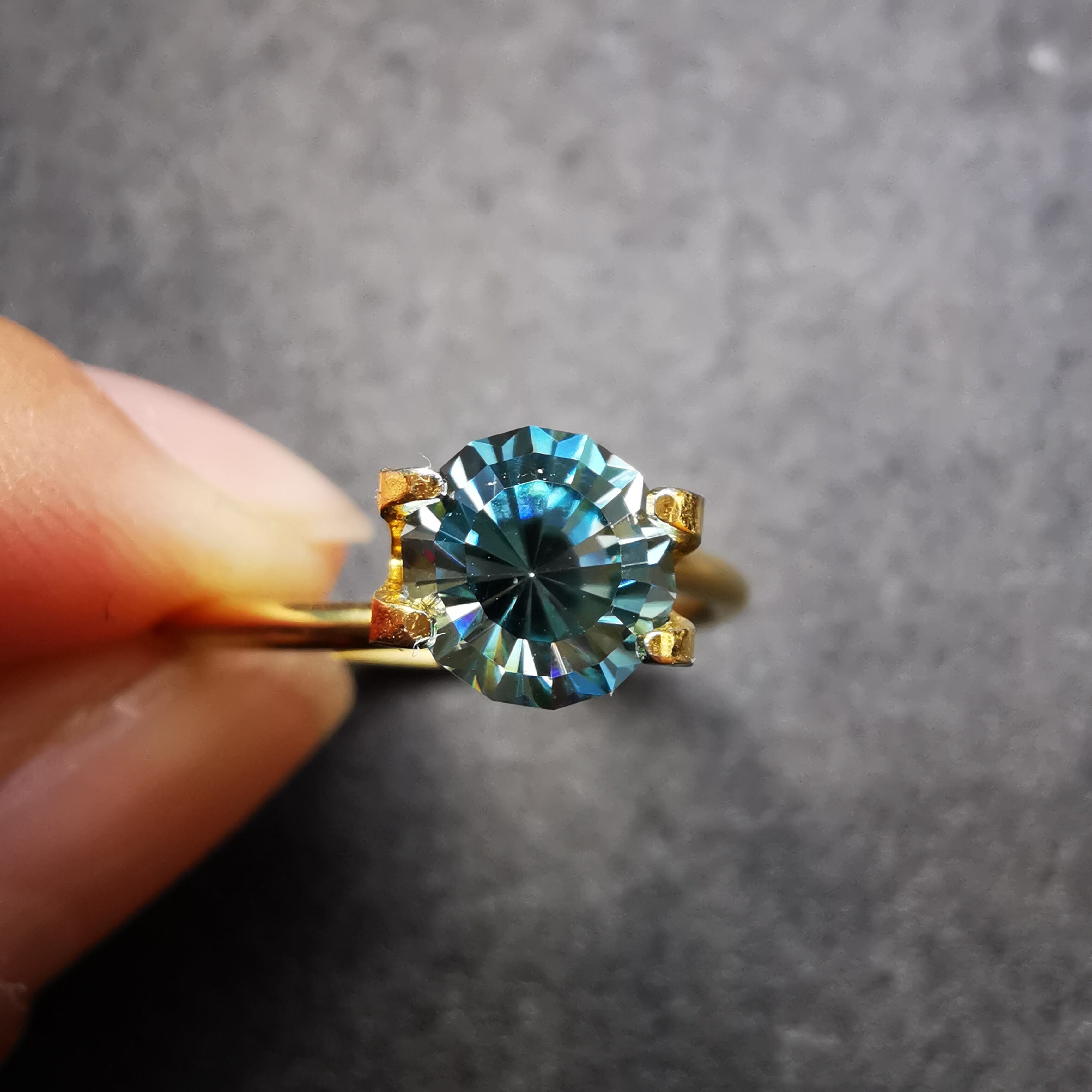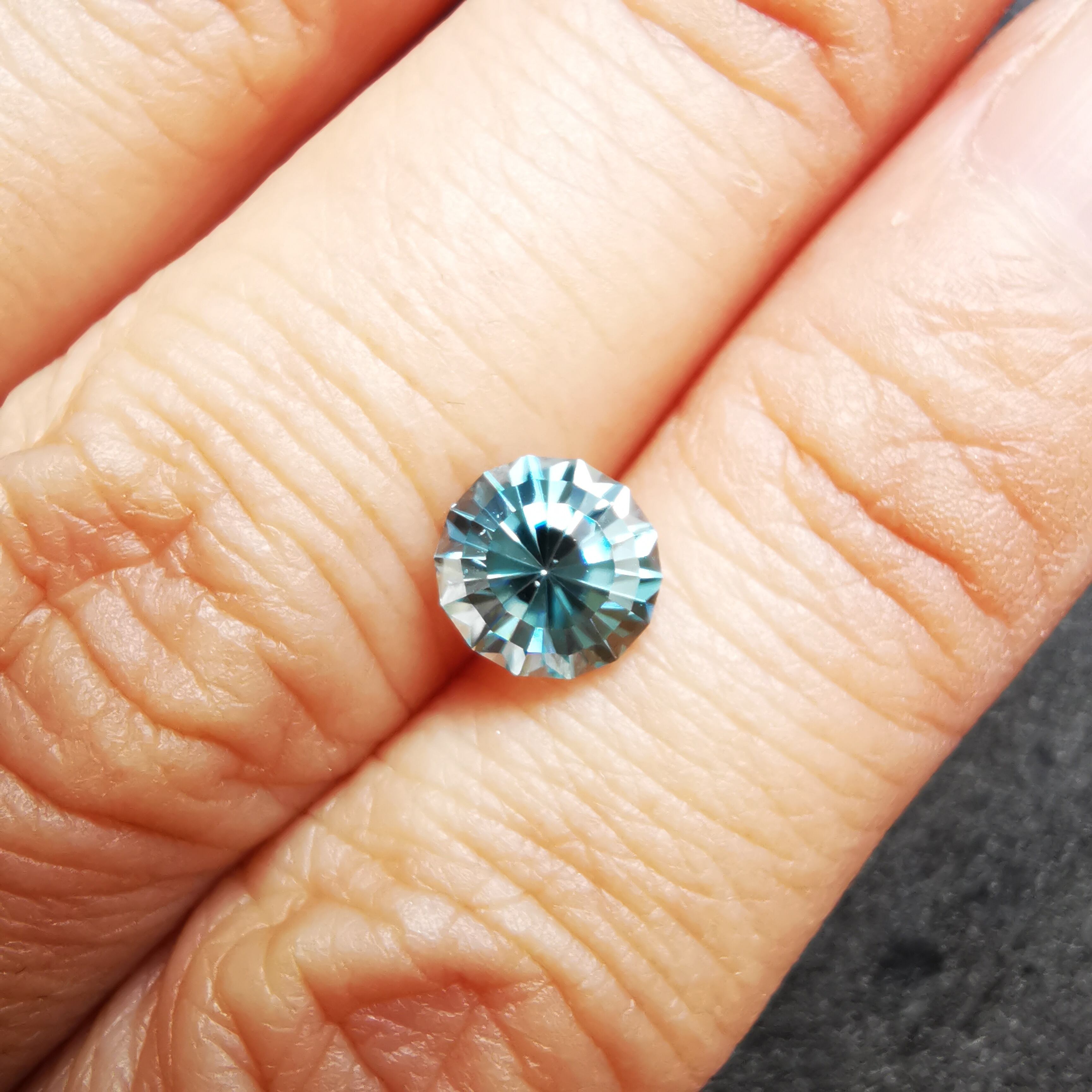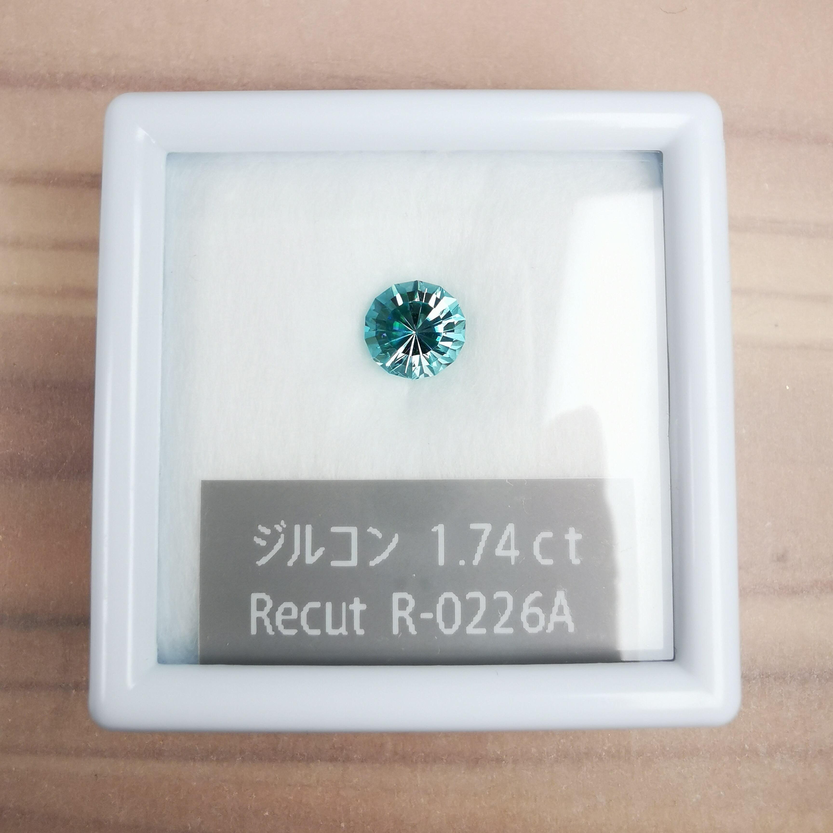 写真では暗めに写ってしまいますが、テーブル面から覗くとキュレットから放射状に広がるカットの様子がよく見える、明るい一石です。
