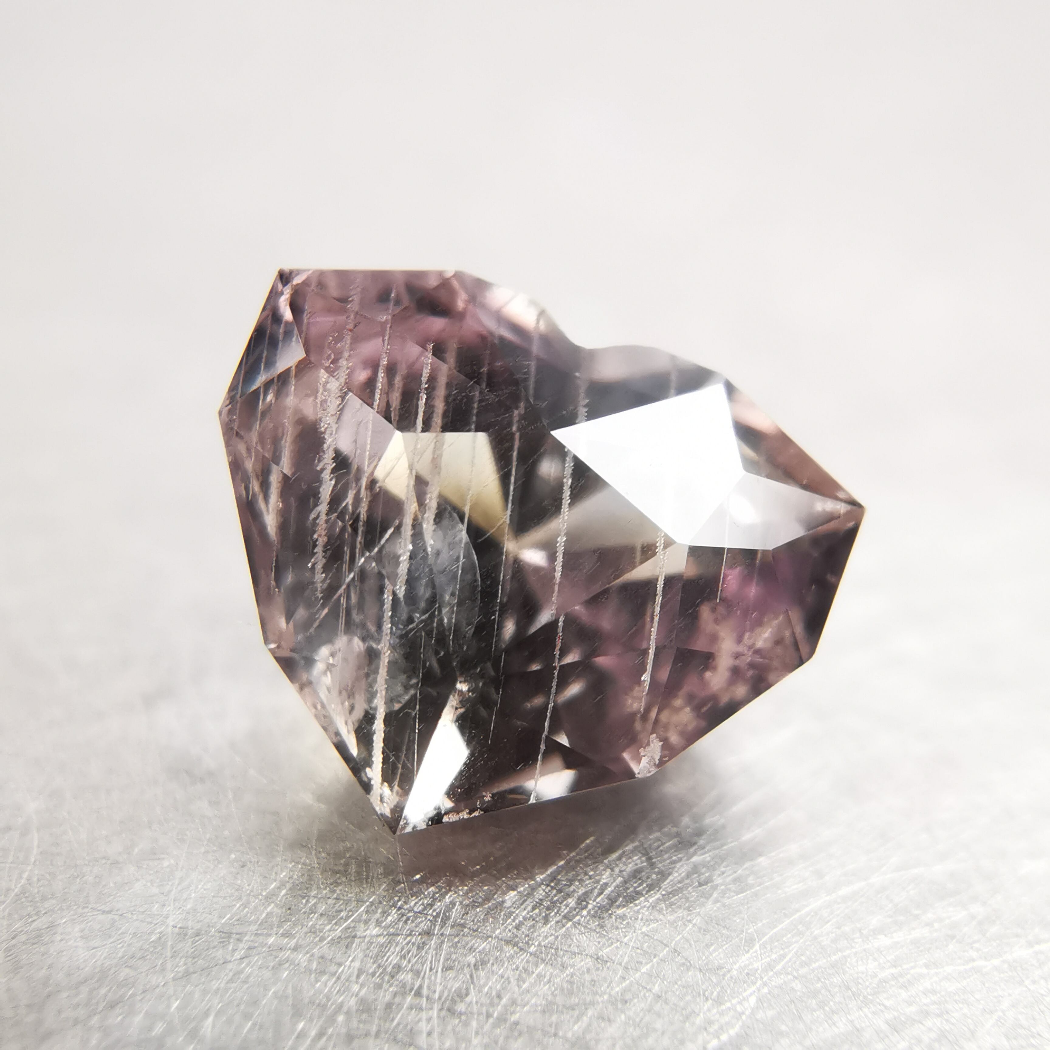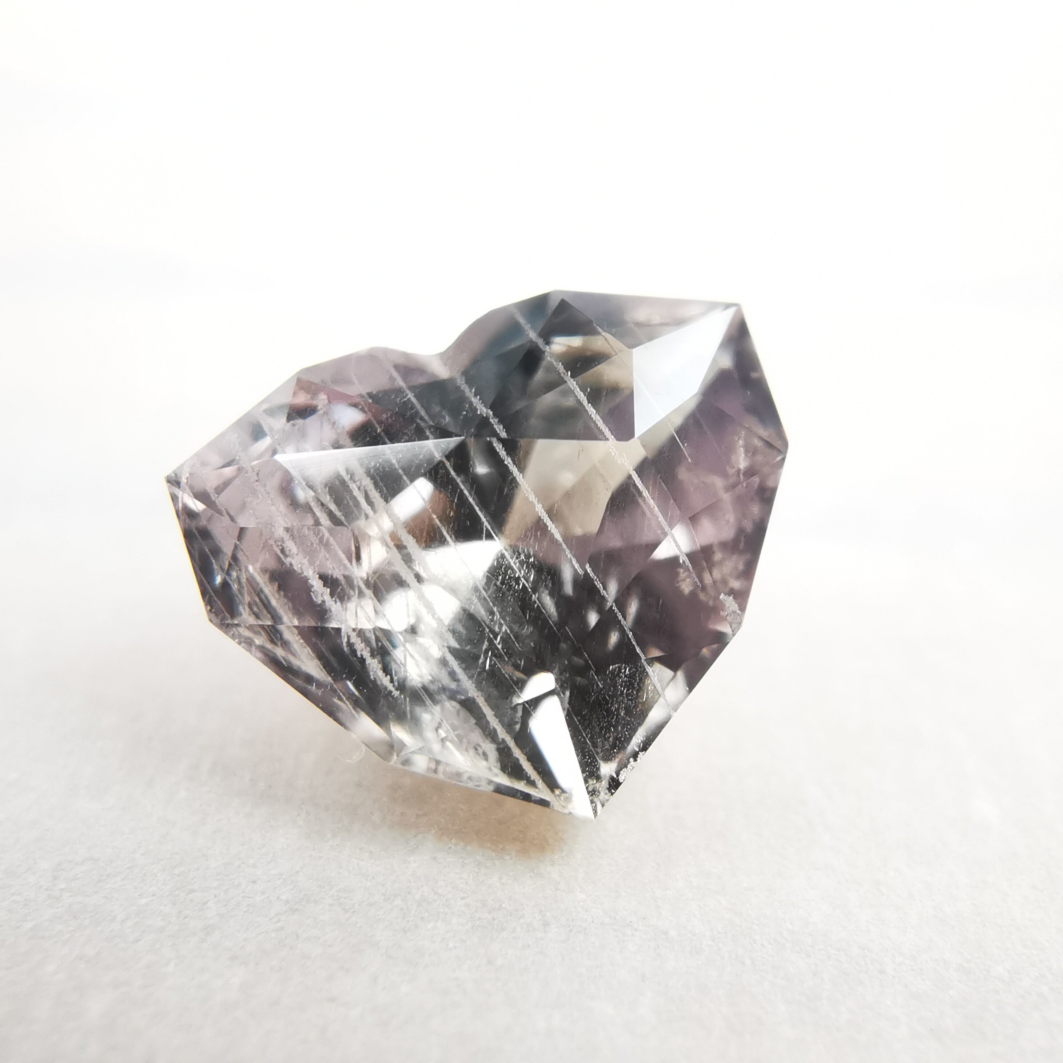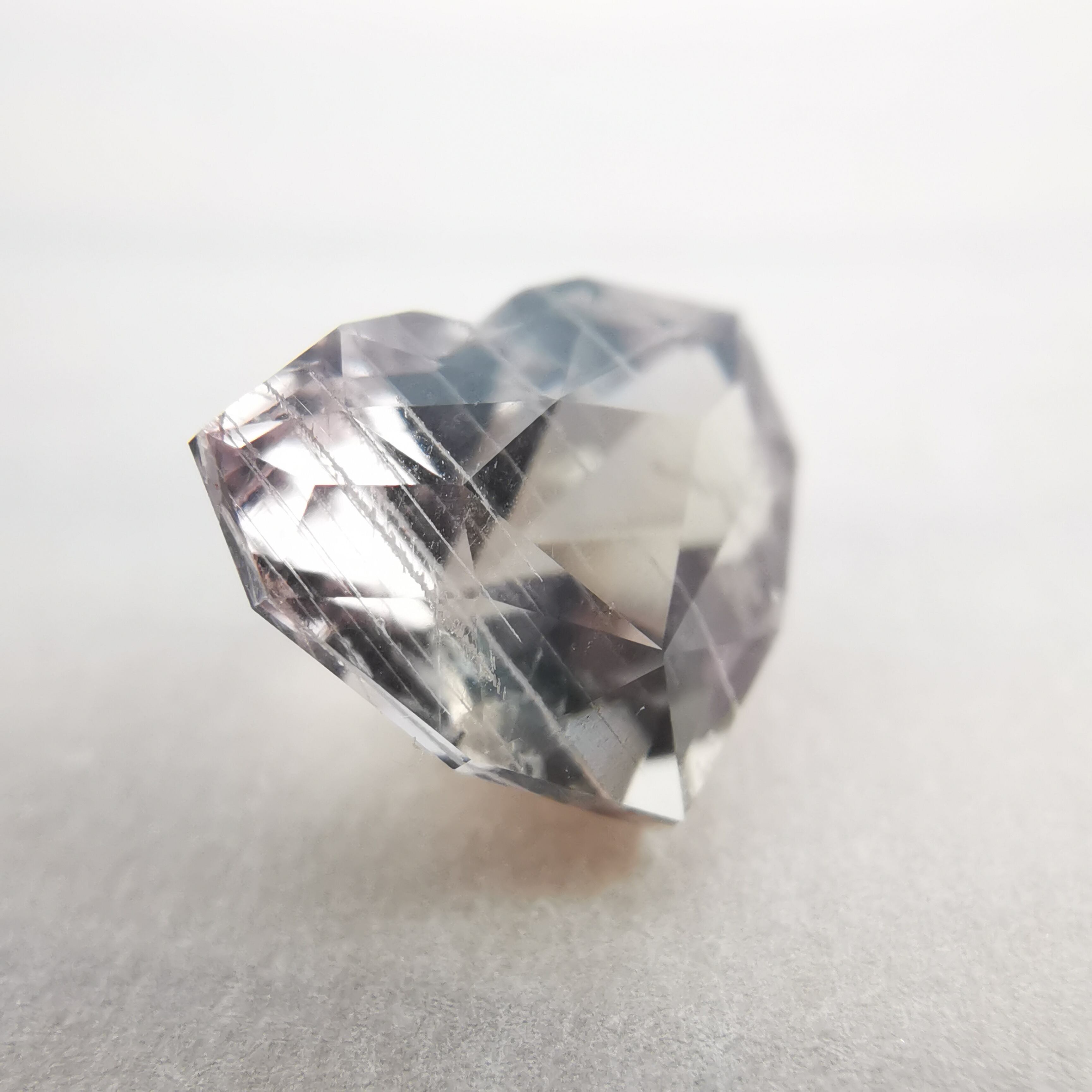 降りしきる雨のような印象的な内包物と、尖ったハートカットで、甘さのない個性的な一石になりました。
