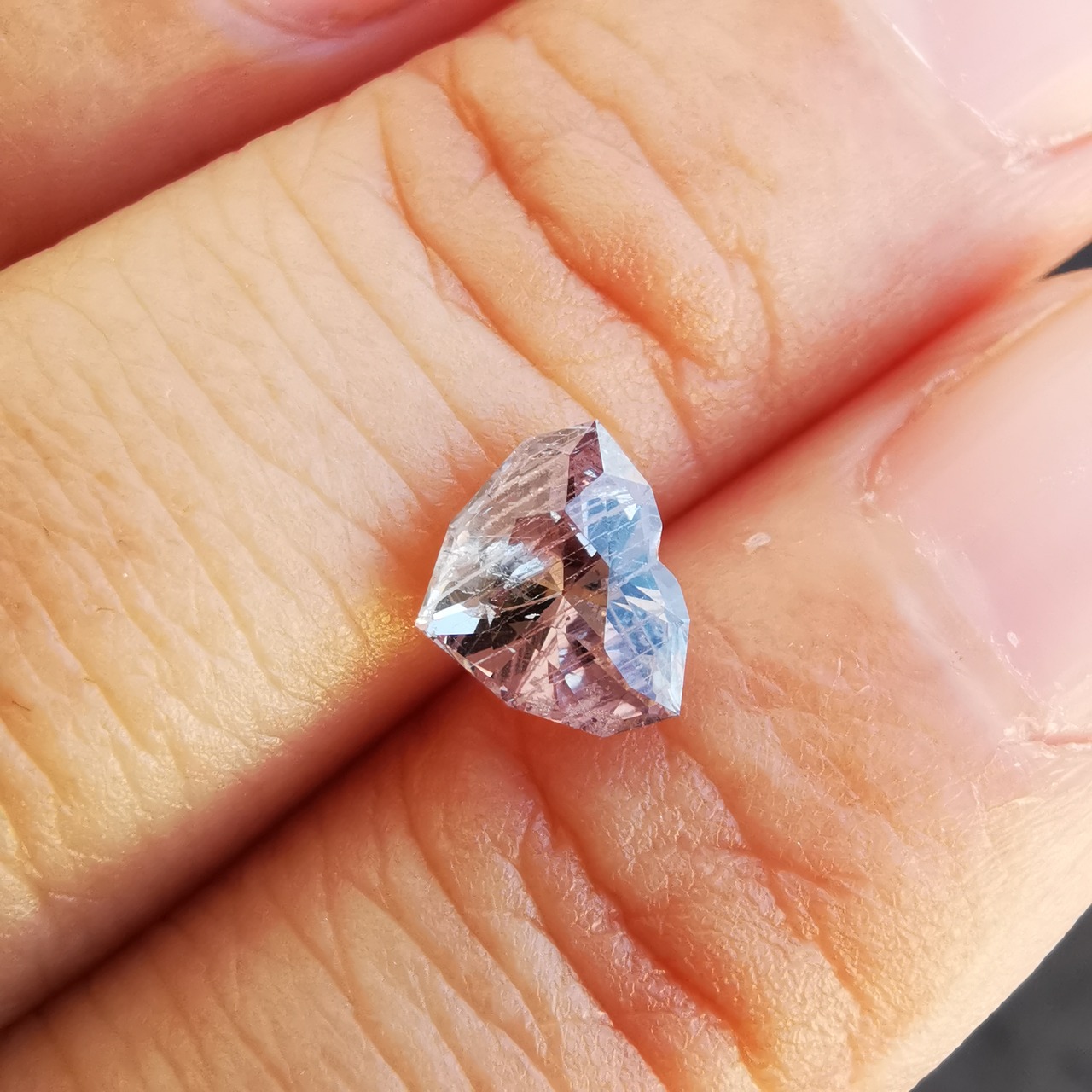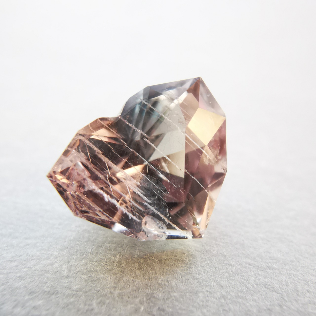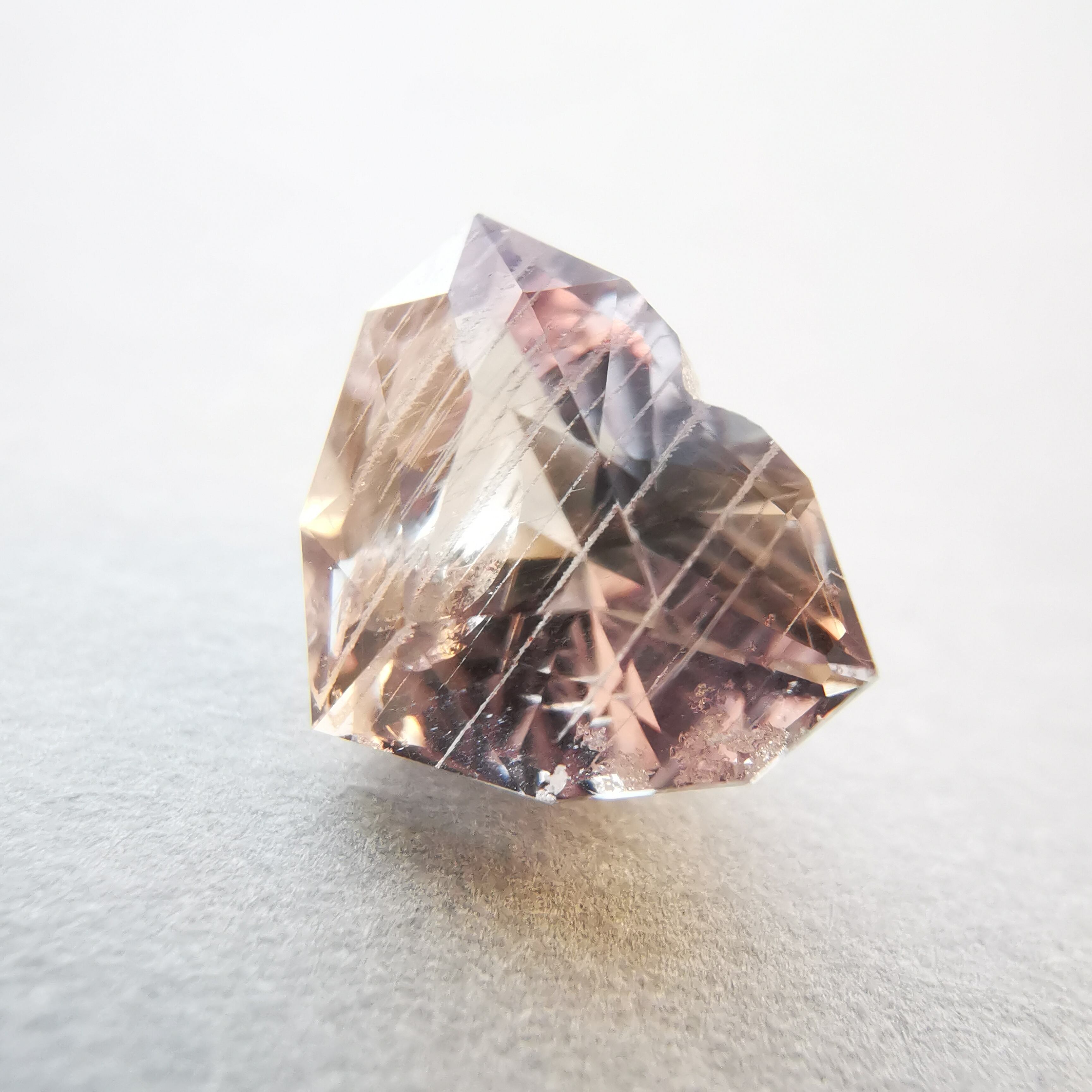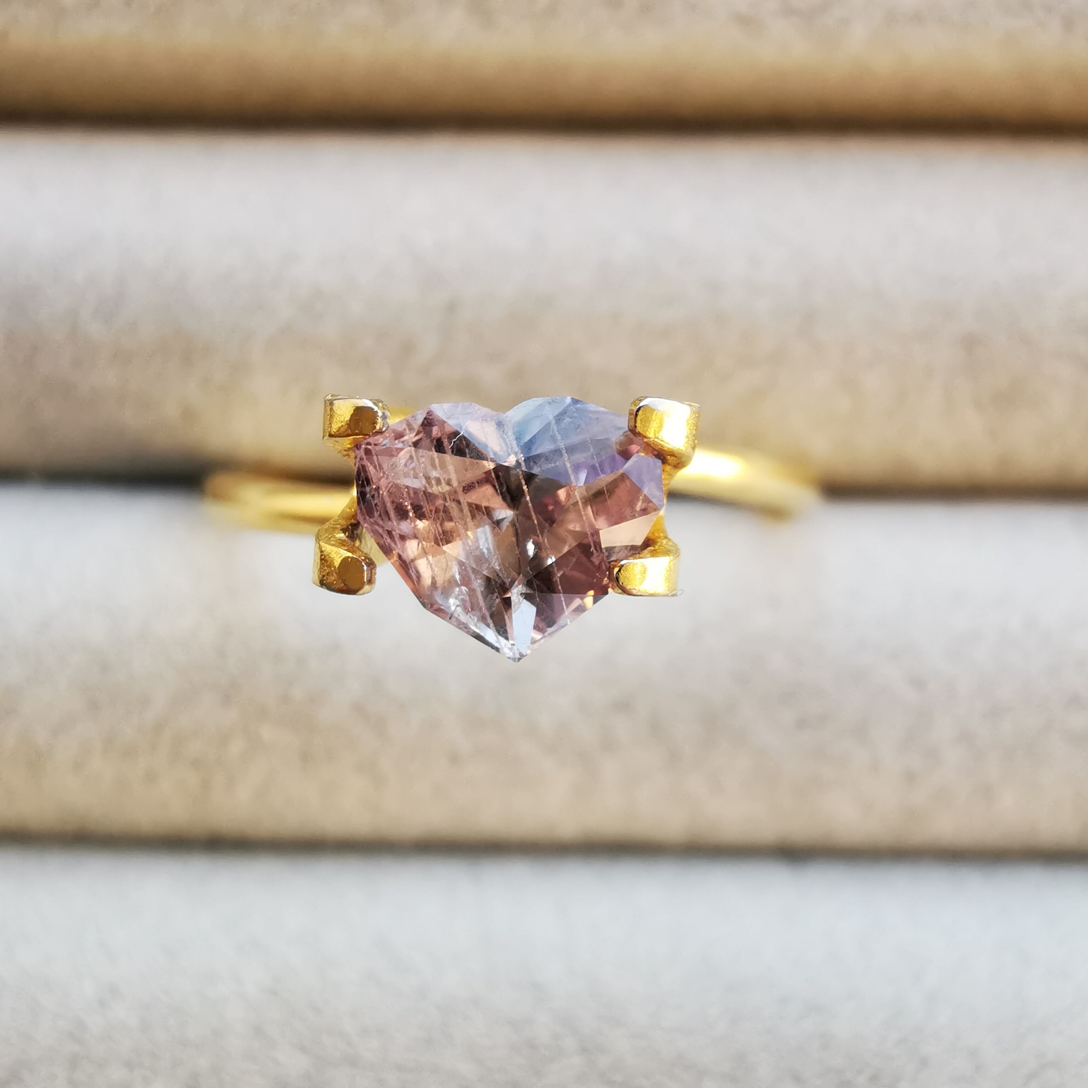 降りしきる雨のような印象的な内包物と、尖ったハートカットで、甘さのない個性的な一石になりました。