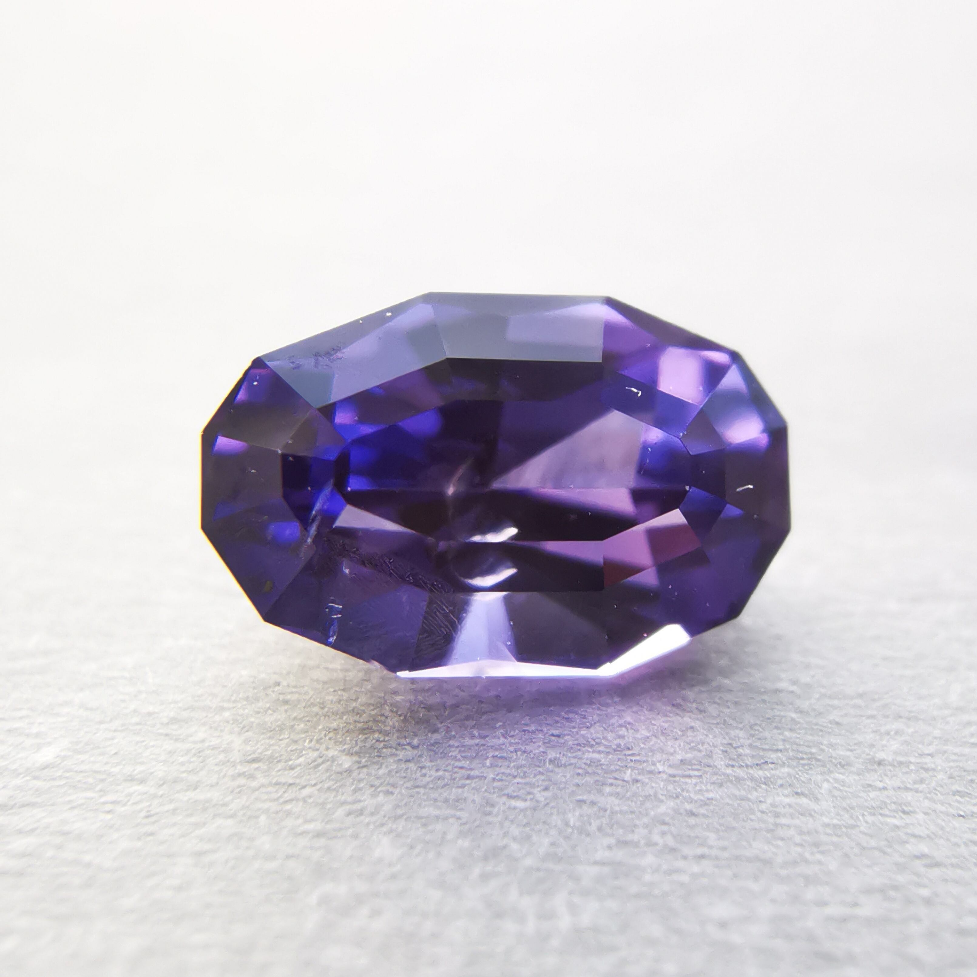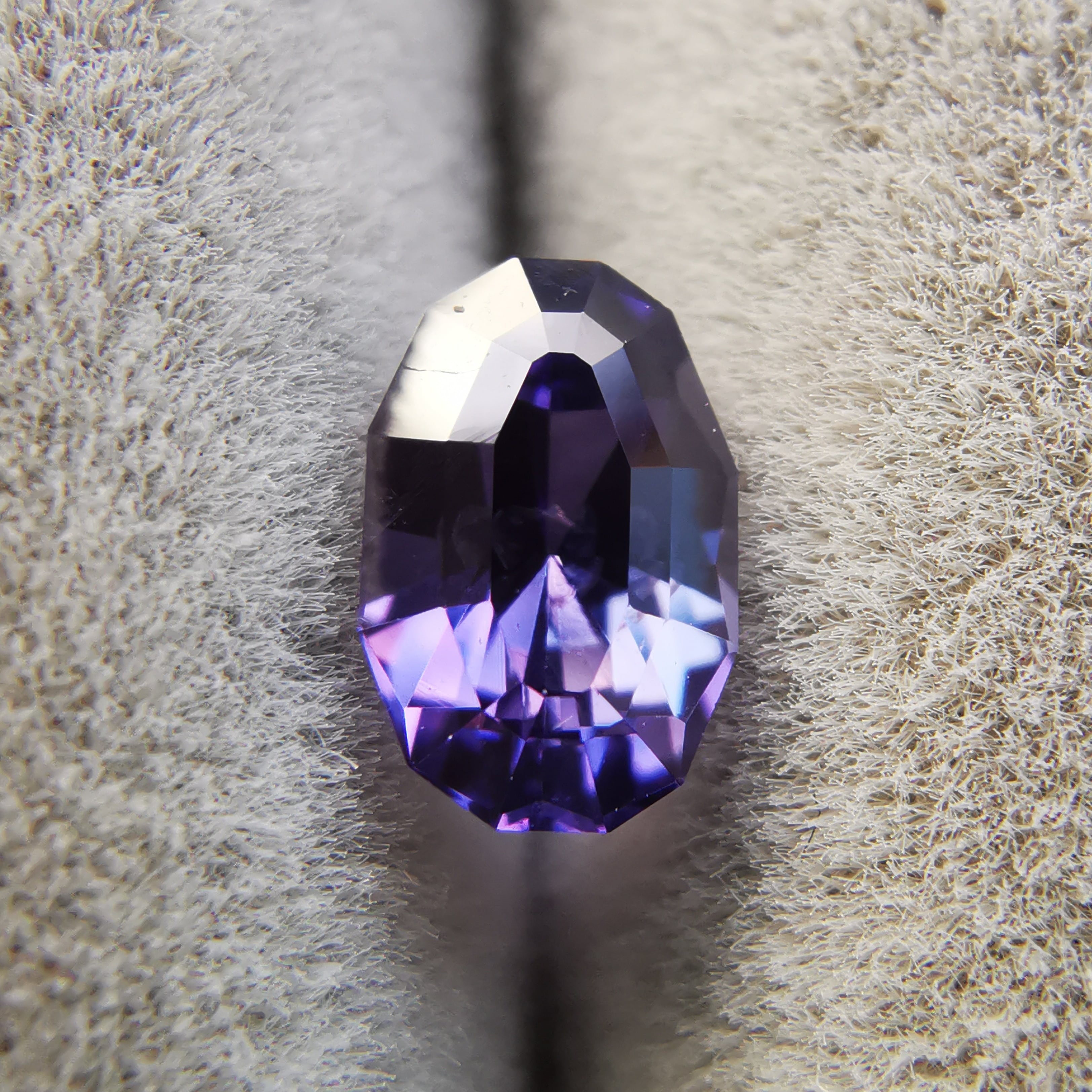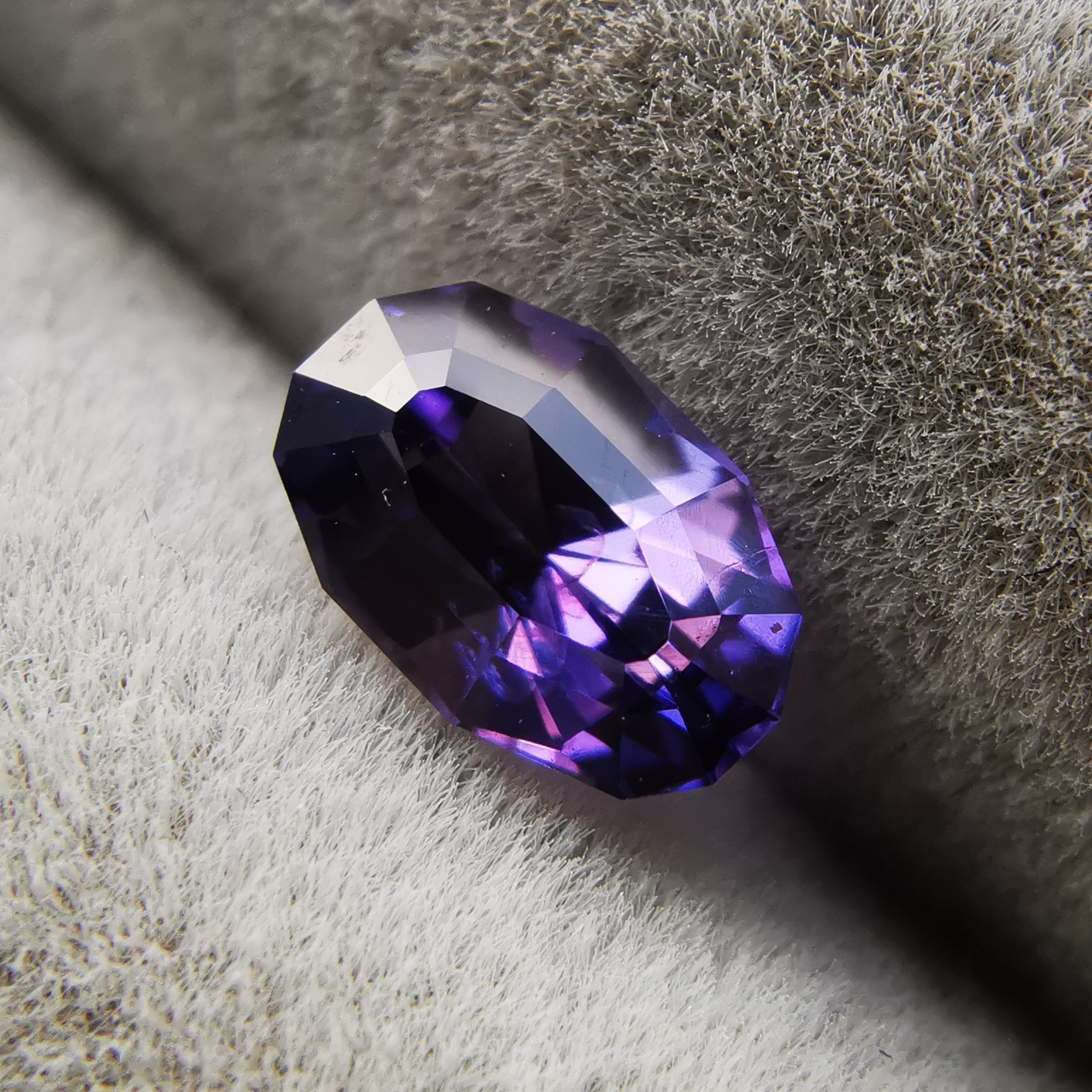 青みのパープルから赤みのパープルに、カラーシフトするサファイアです。
