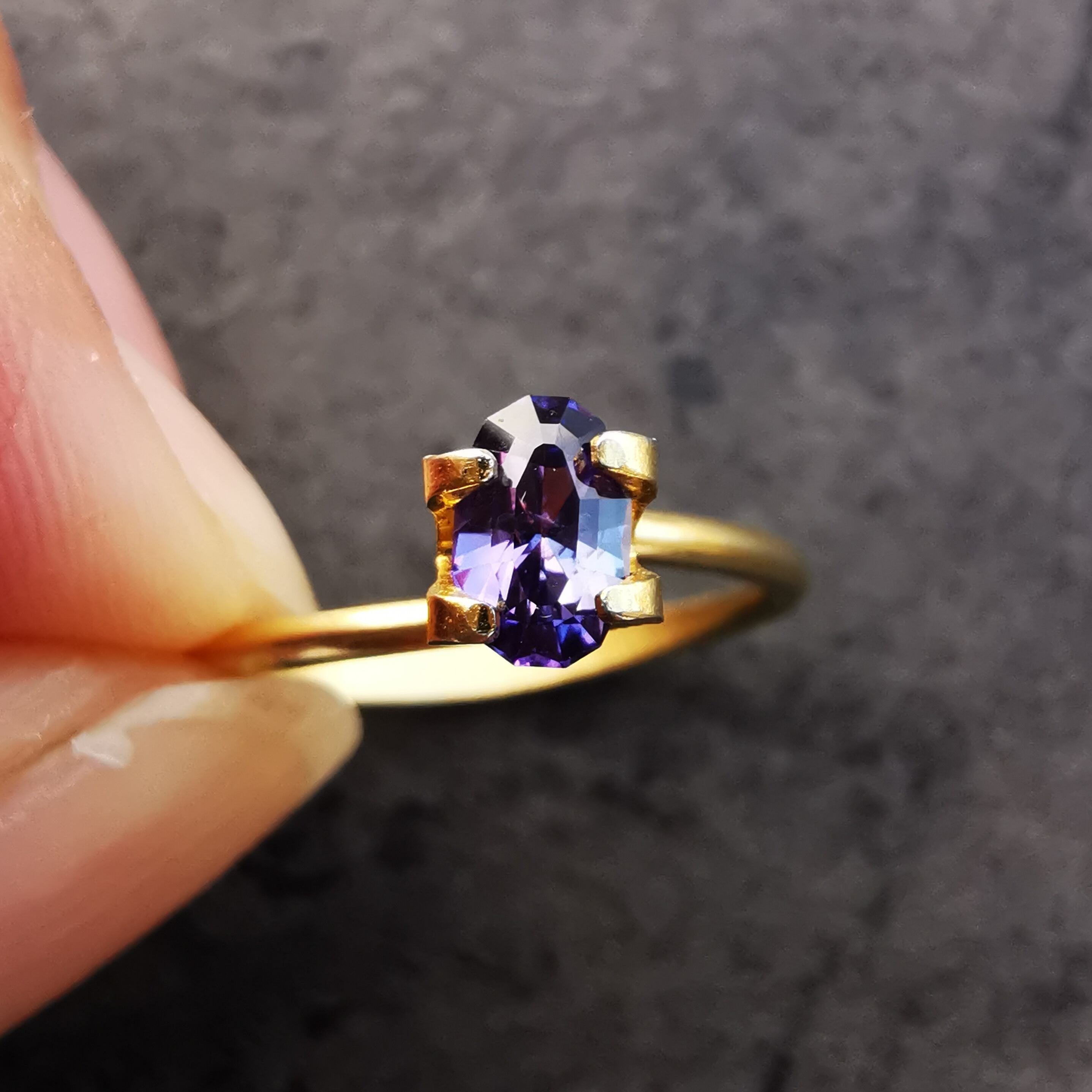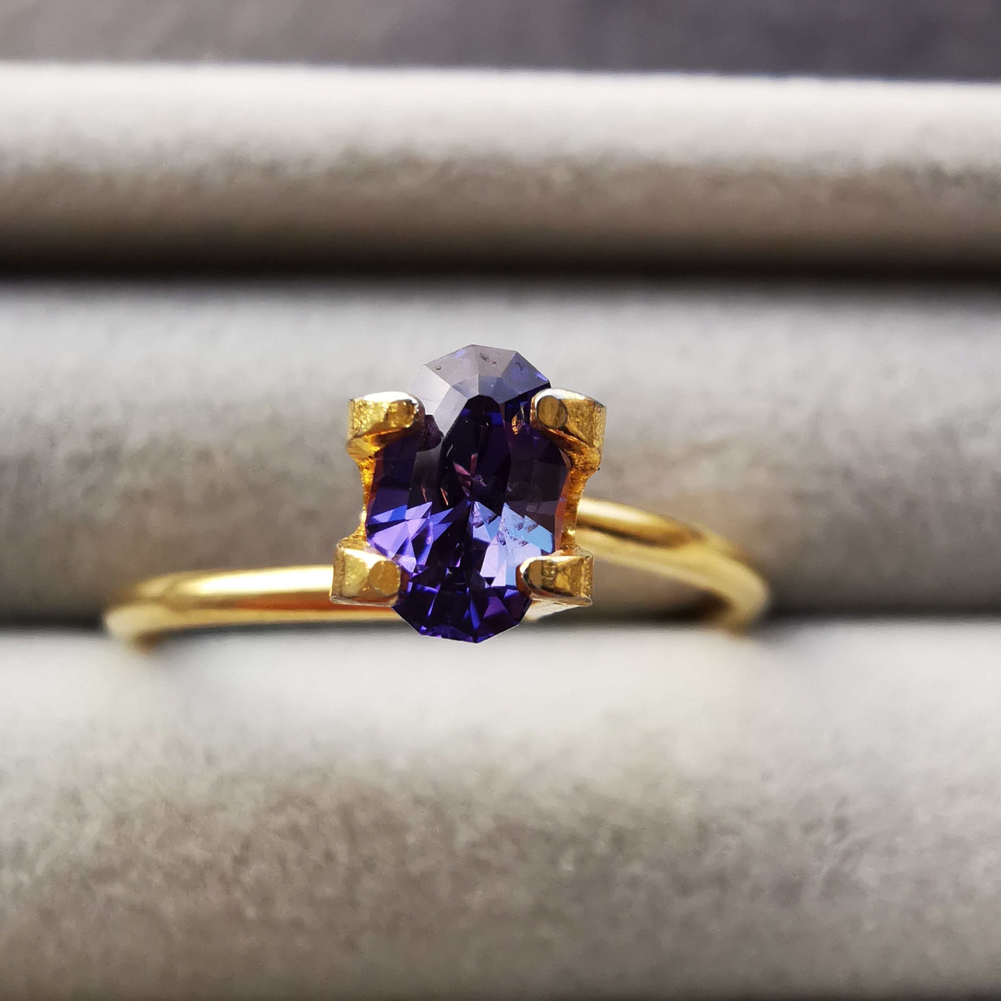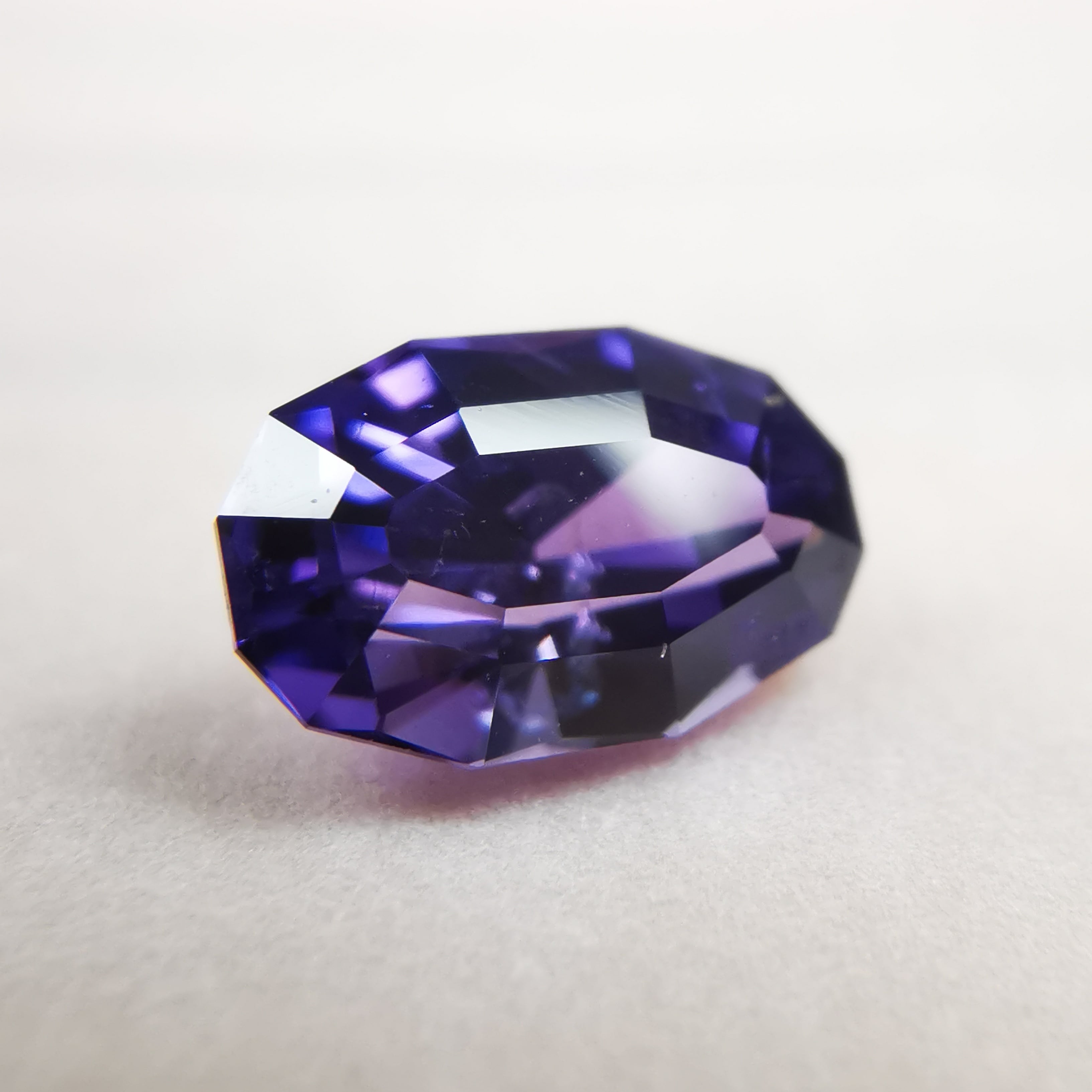 青みのパープルから赤みのパープルに、カラーシフトするサファイアです。