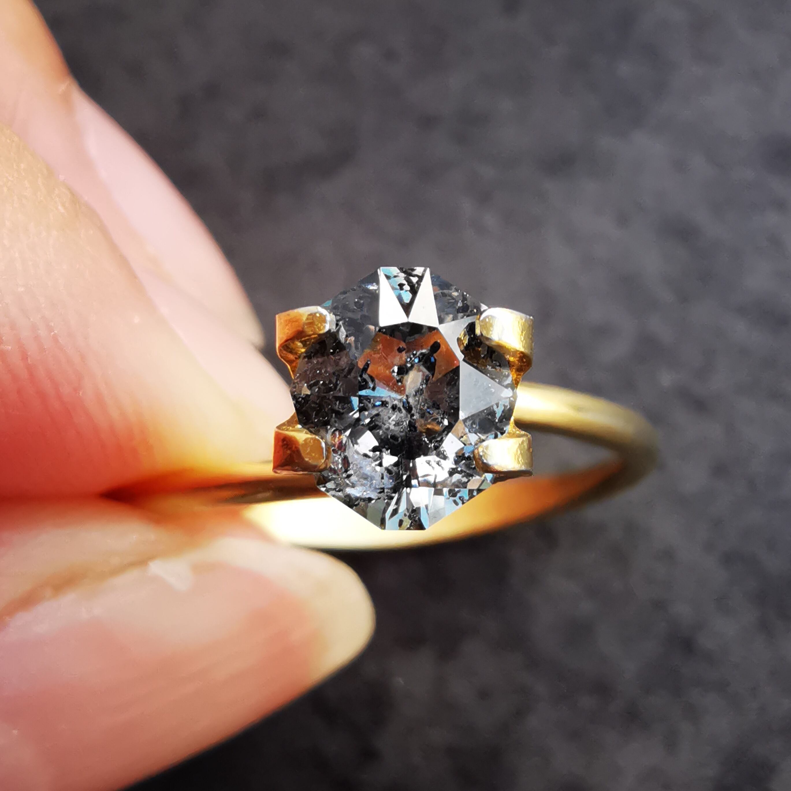 肉眼で見えるインクルージョンあり
