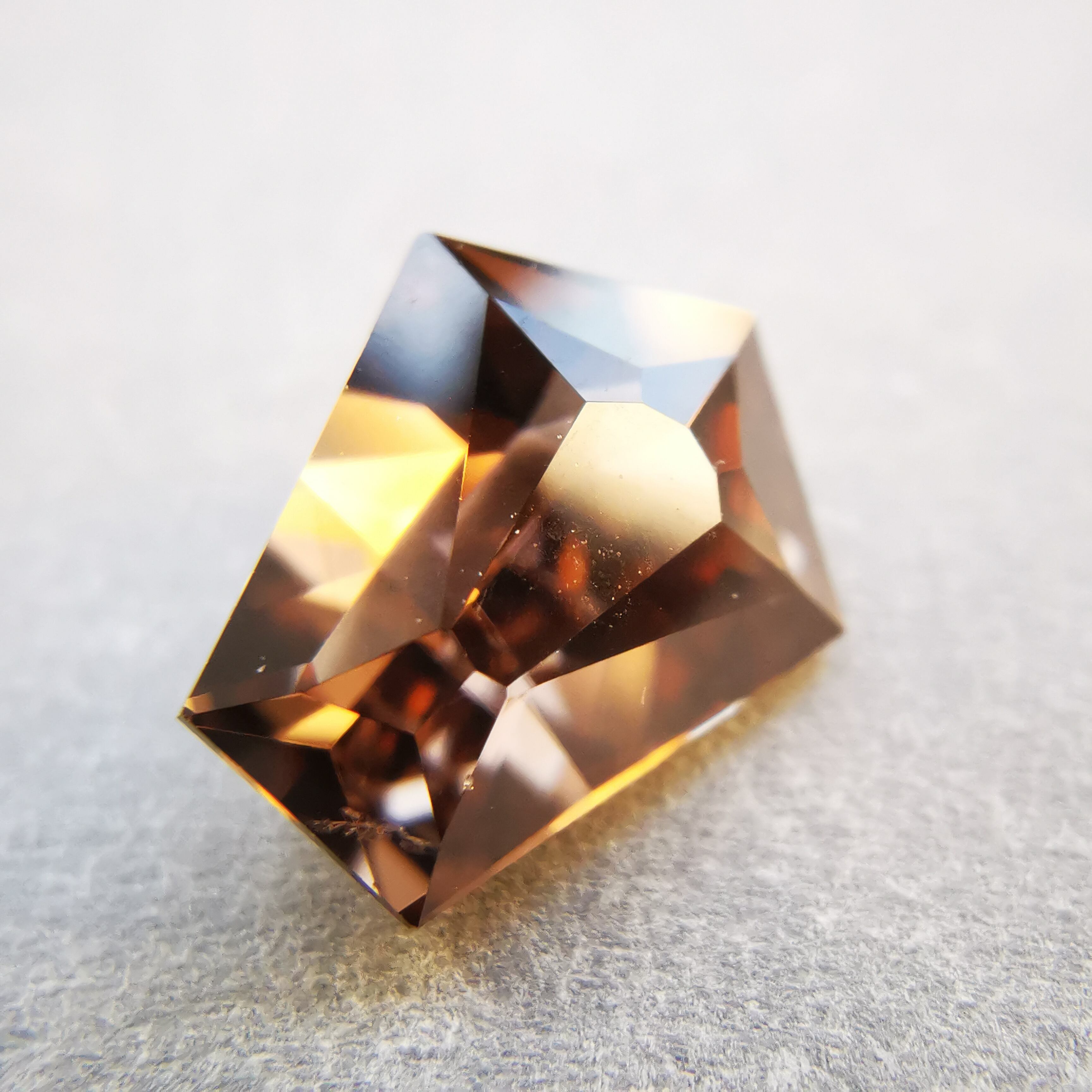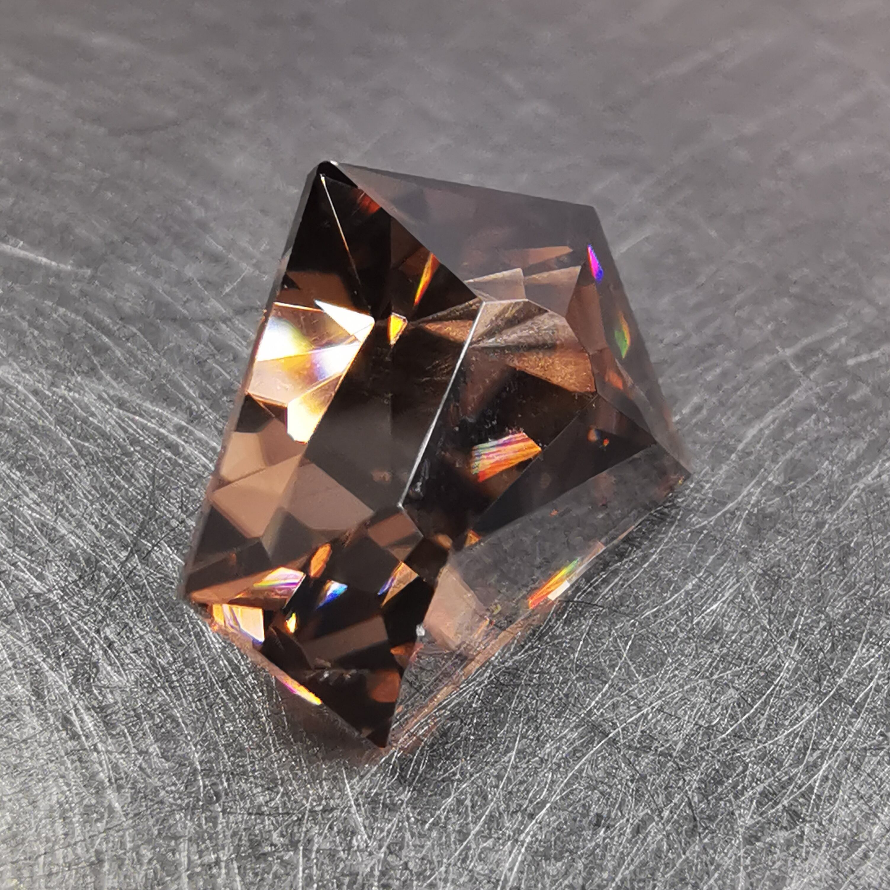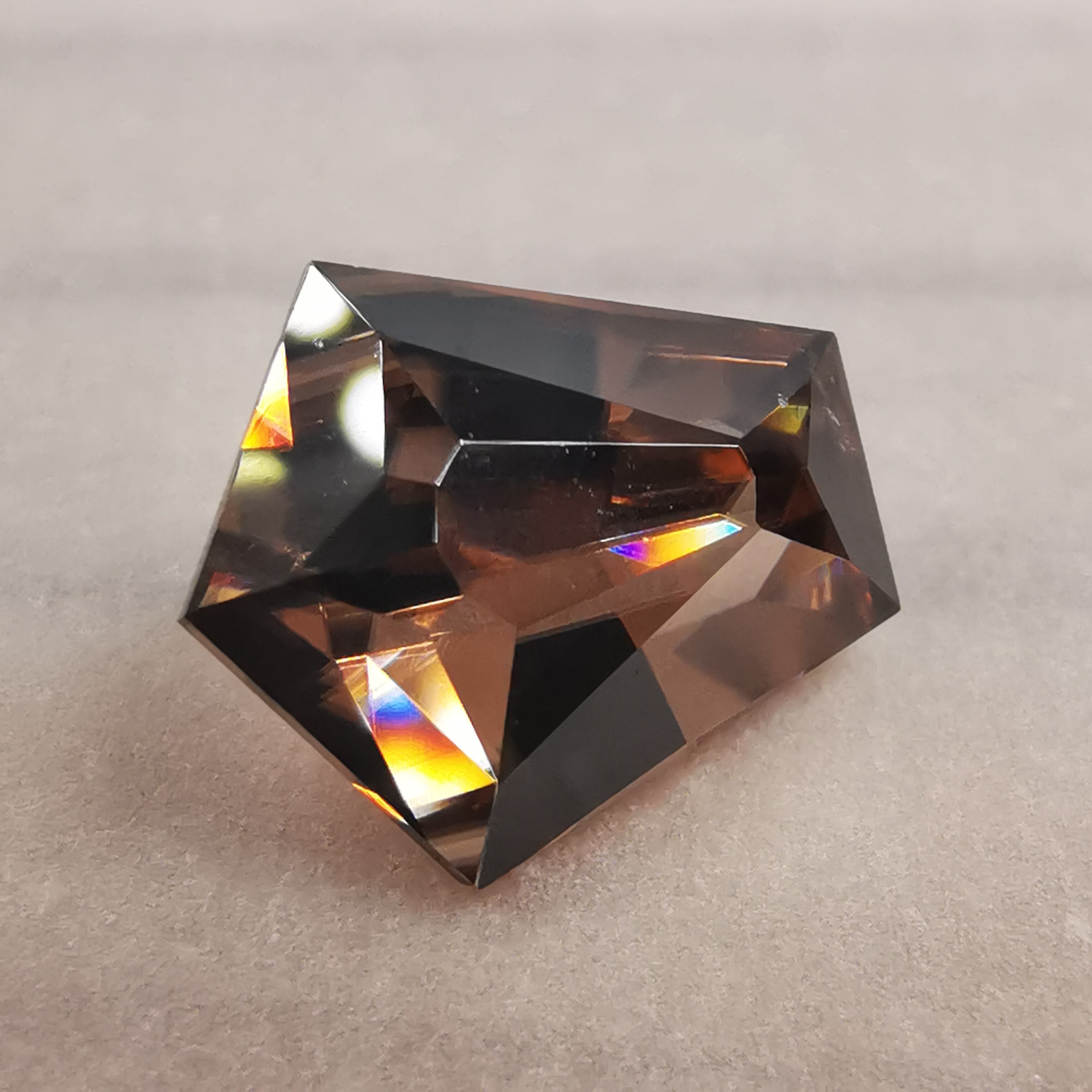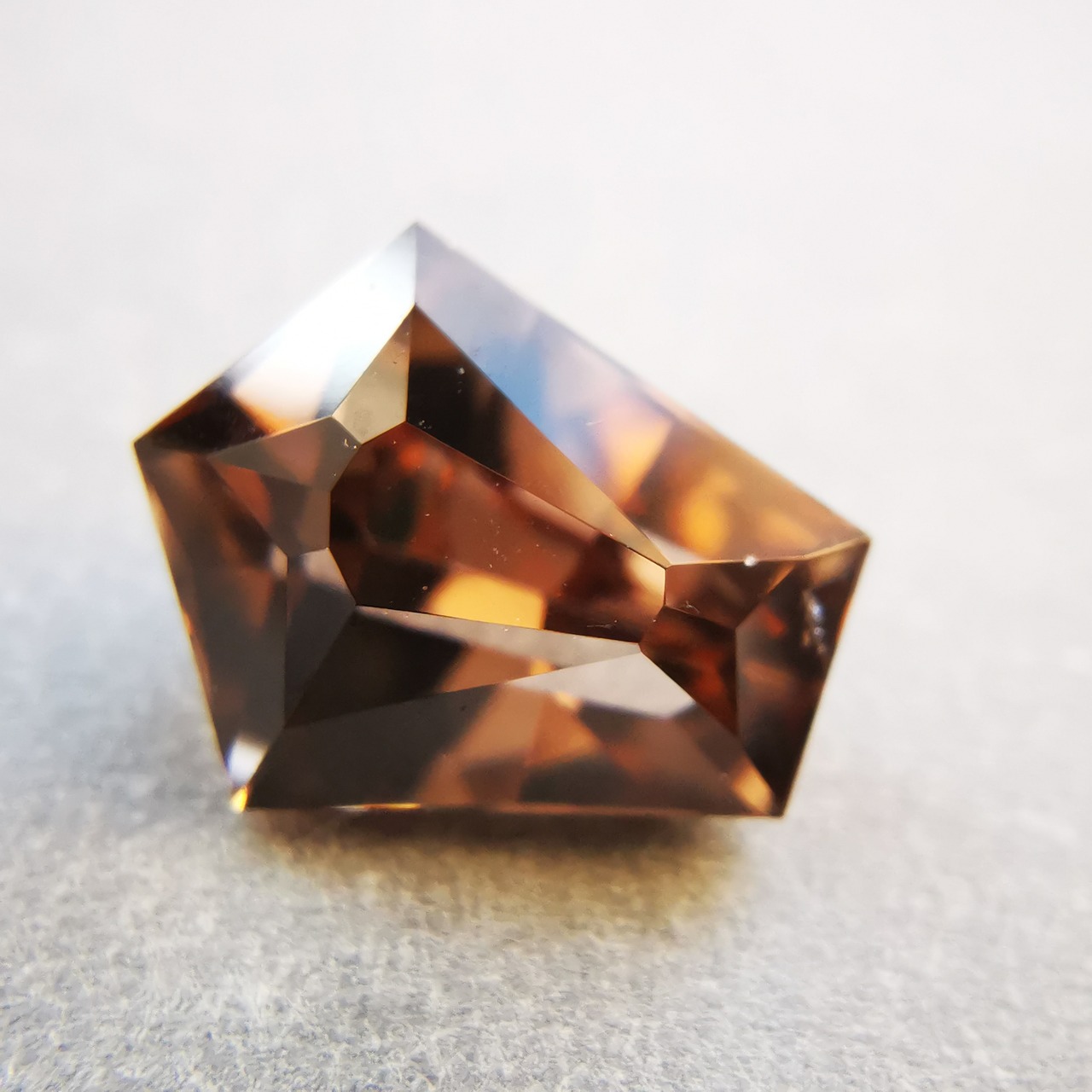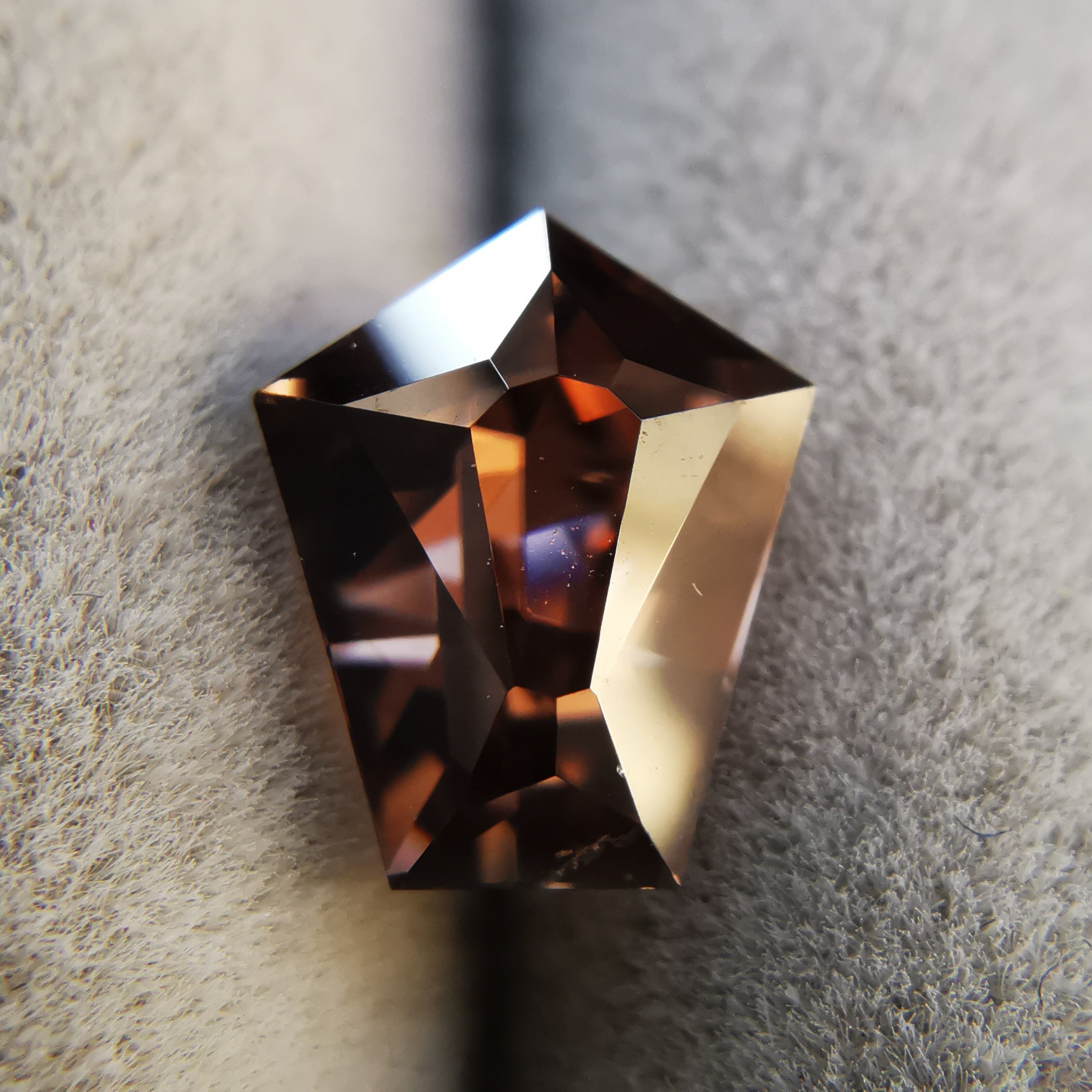 ウォルナットカラーから虹色のファイアがきらめくジルコンです。
