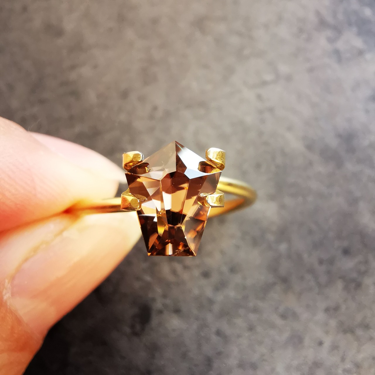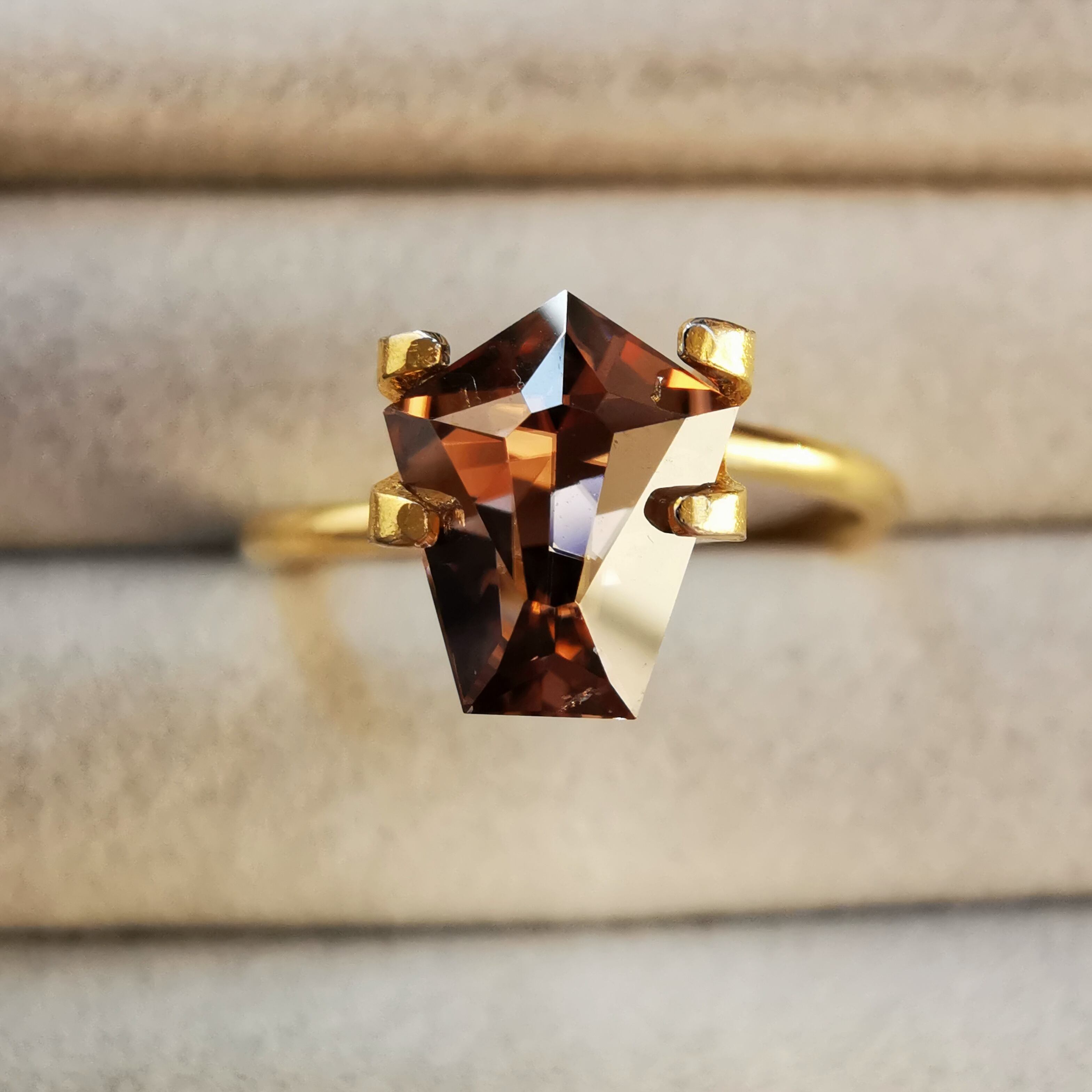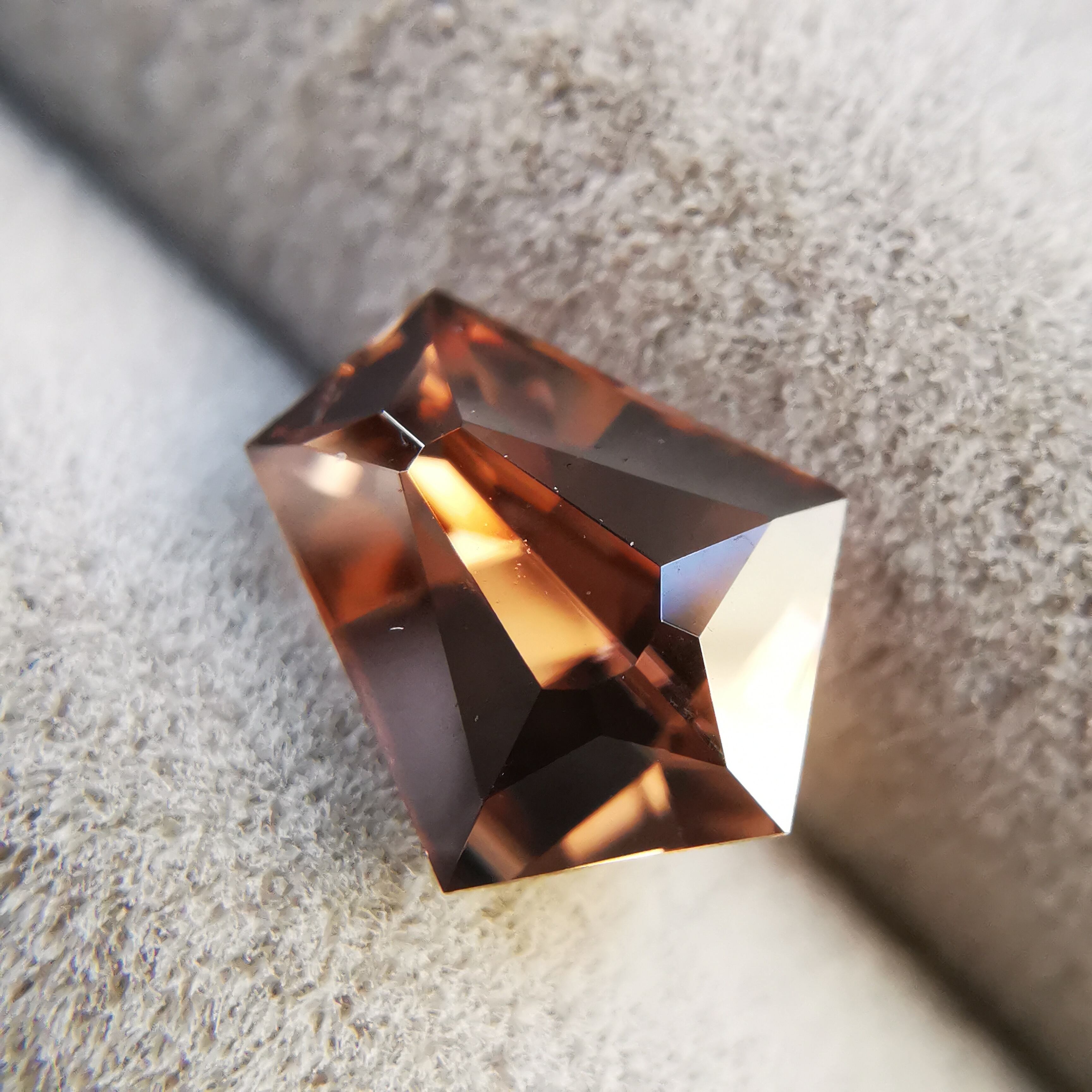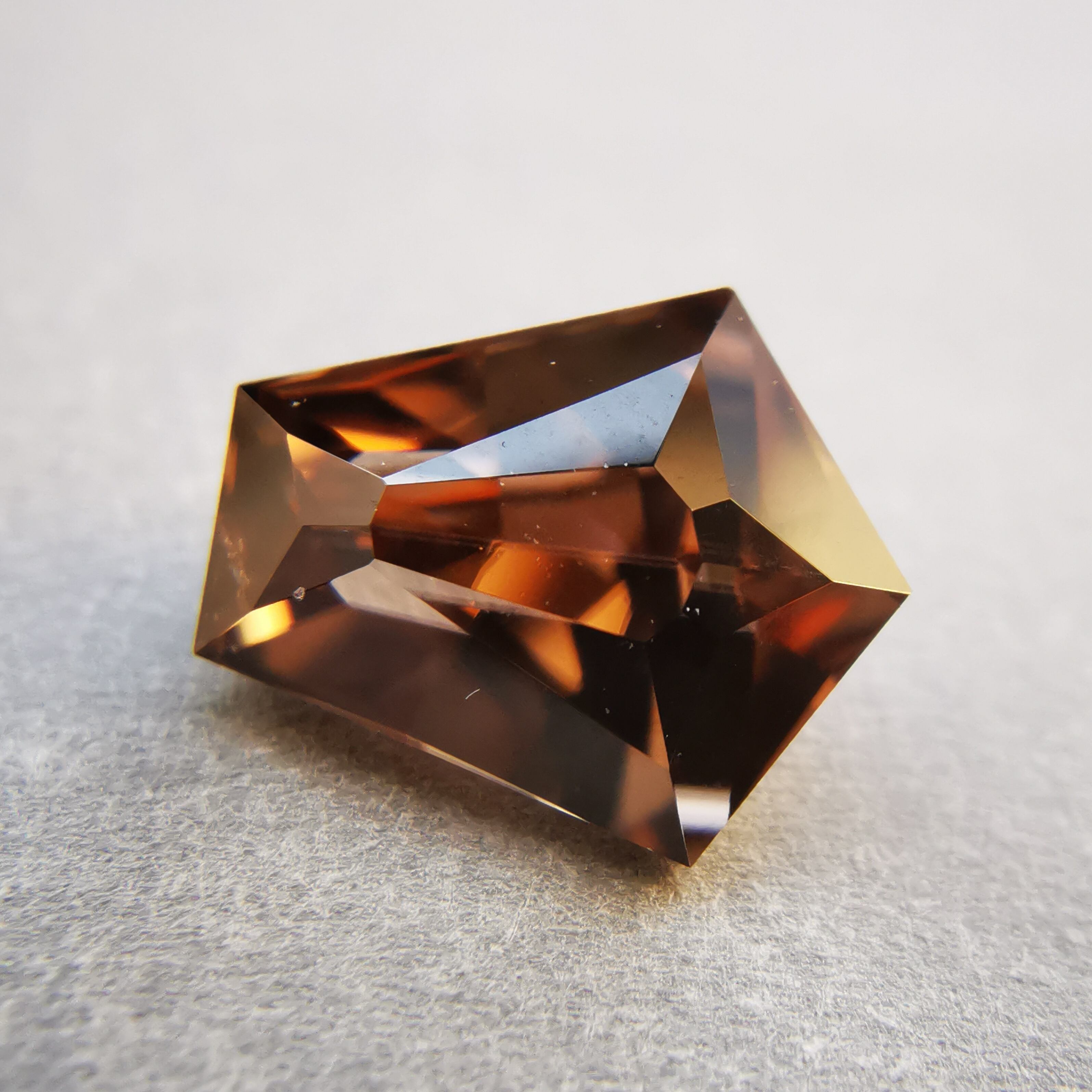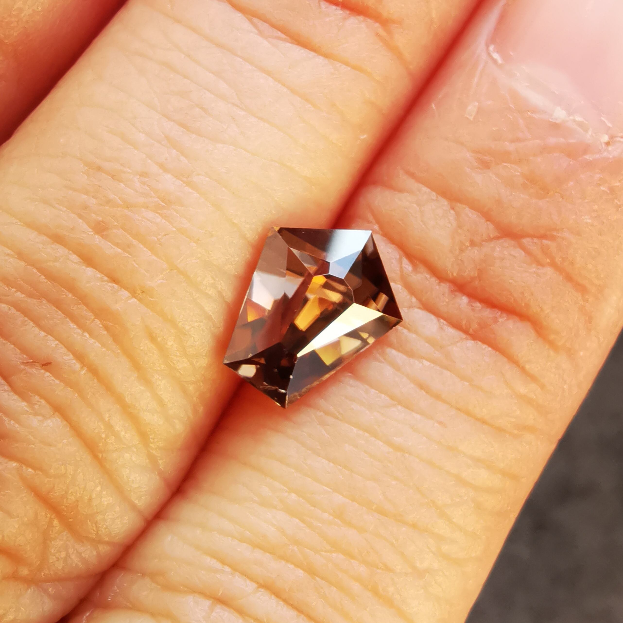 ウォルナットカラーから虹色のファイアがきらめくジルコンです。