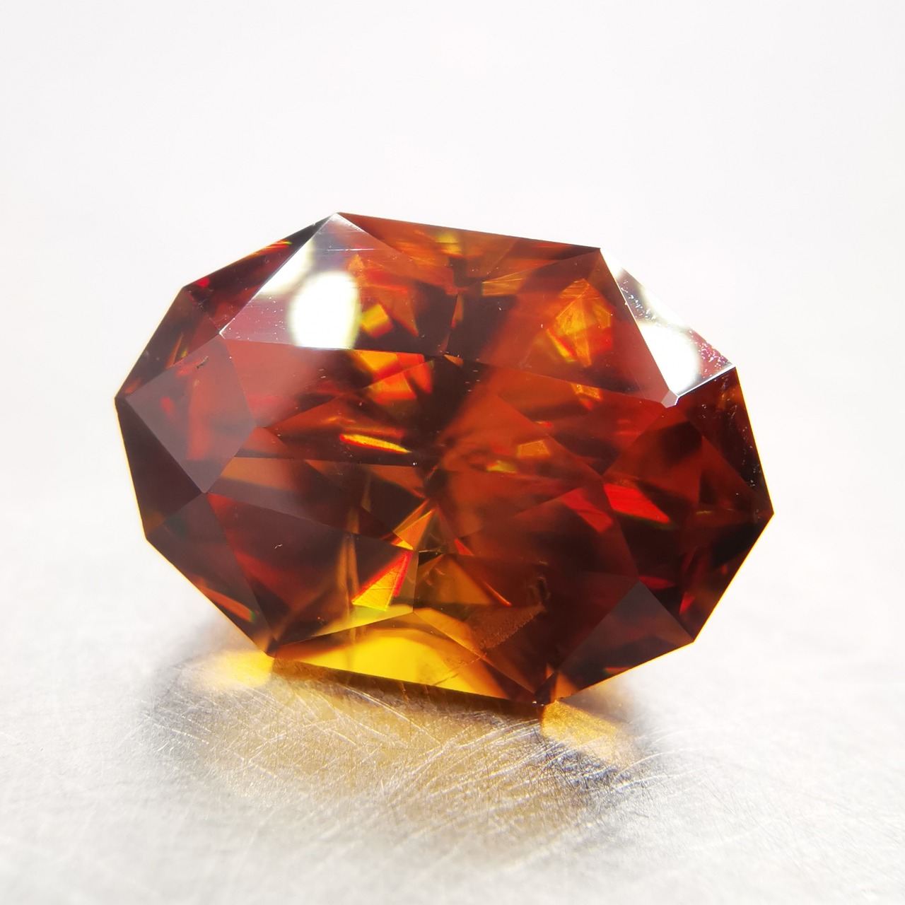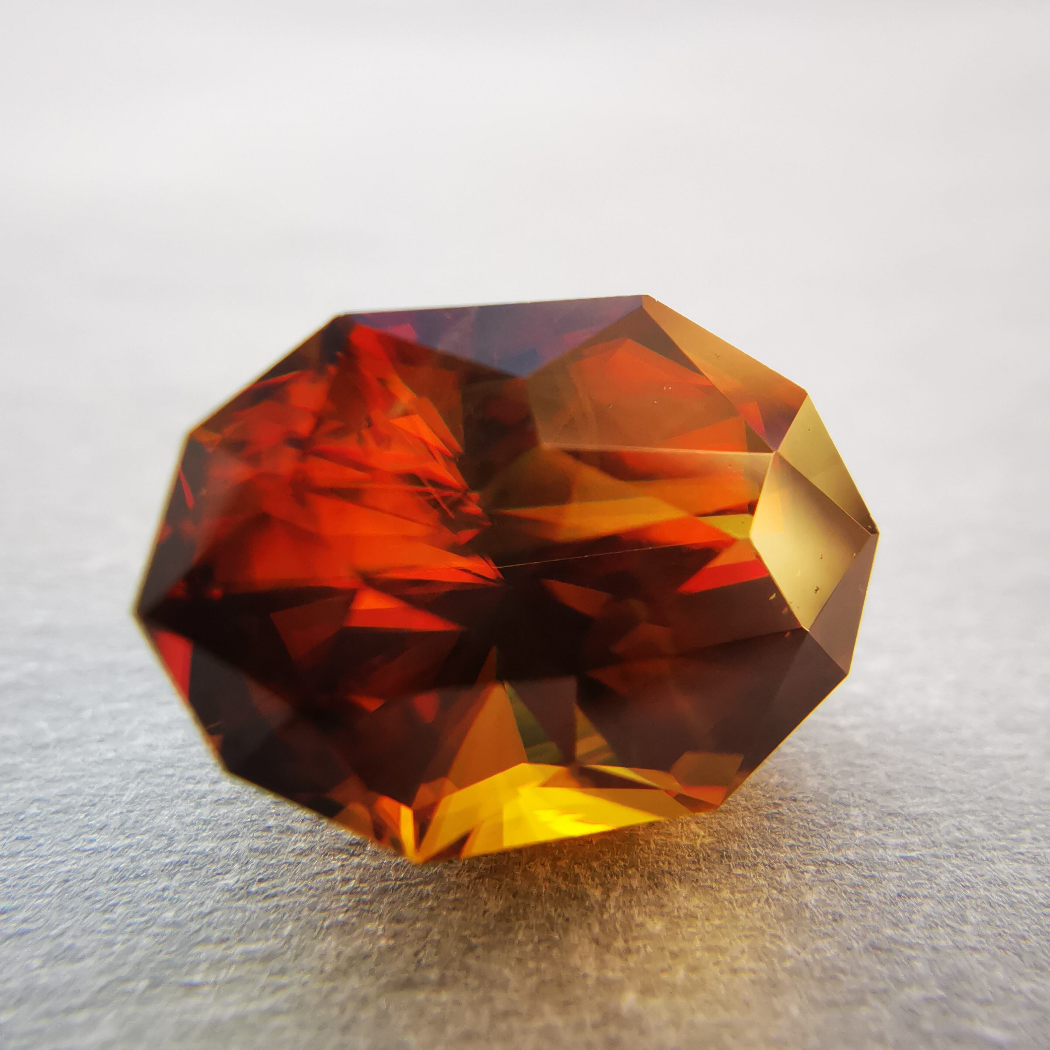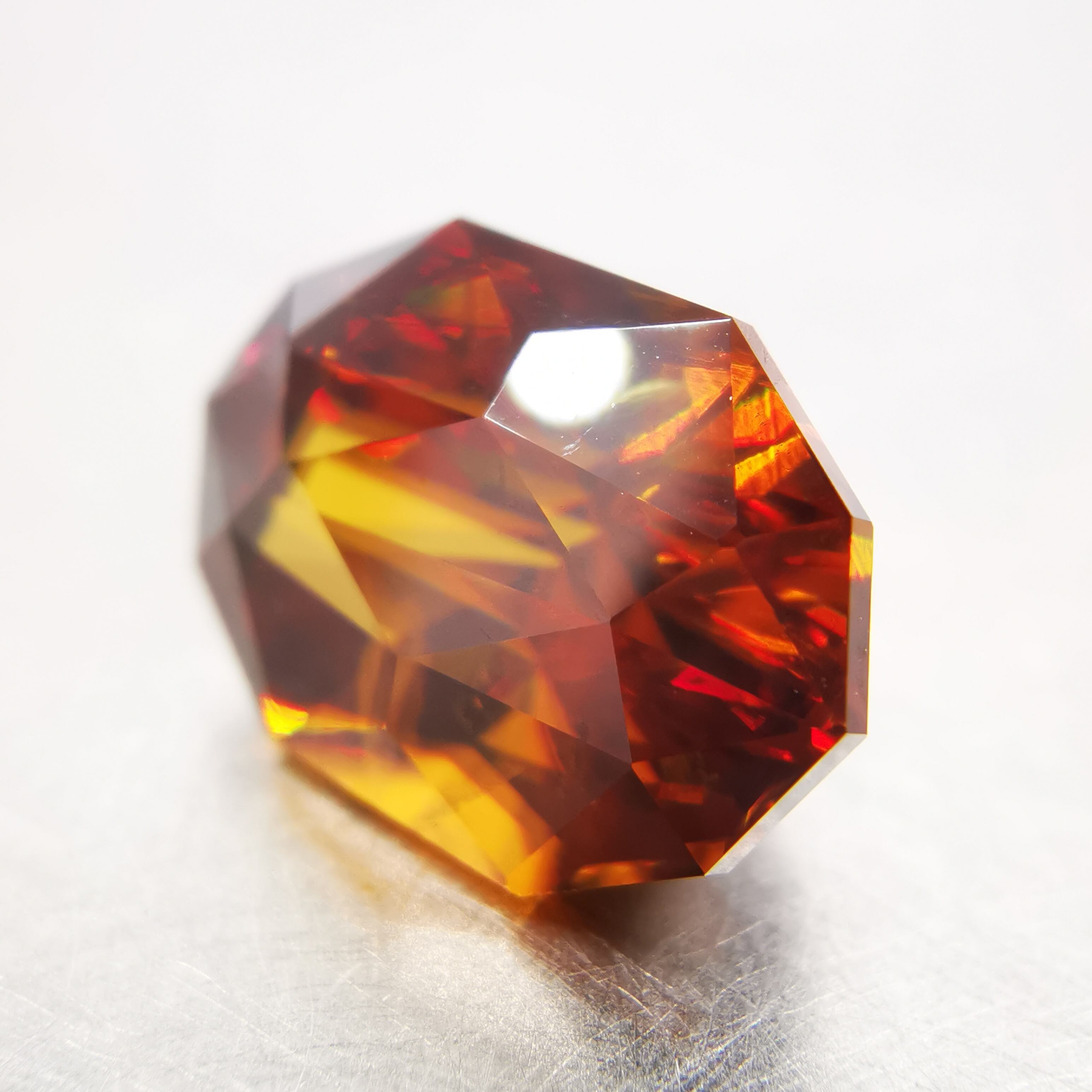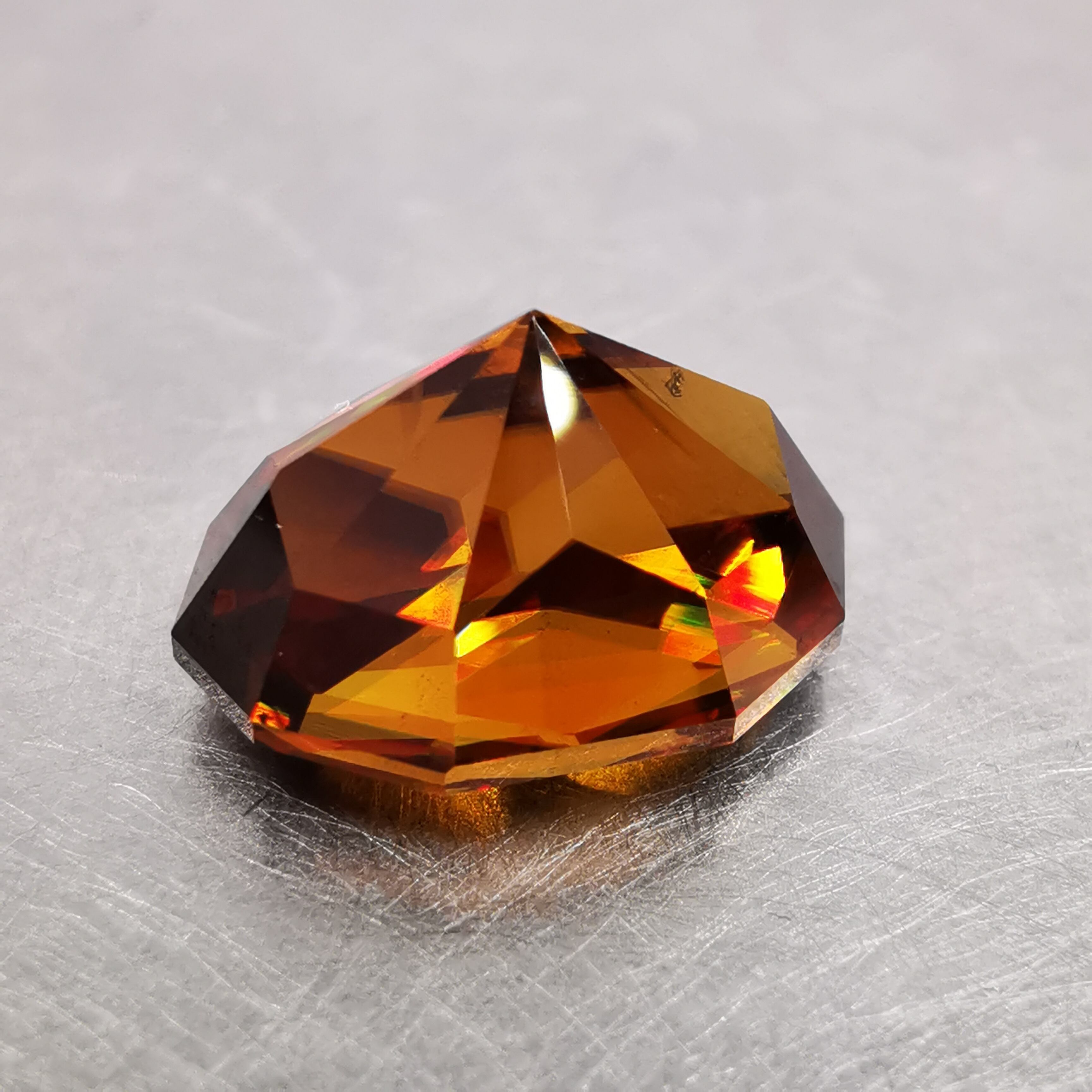 照明の下では、細かく虹色のファイアが輝き、太陽光の下では赤く力強く輝きます。