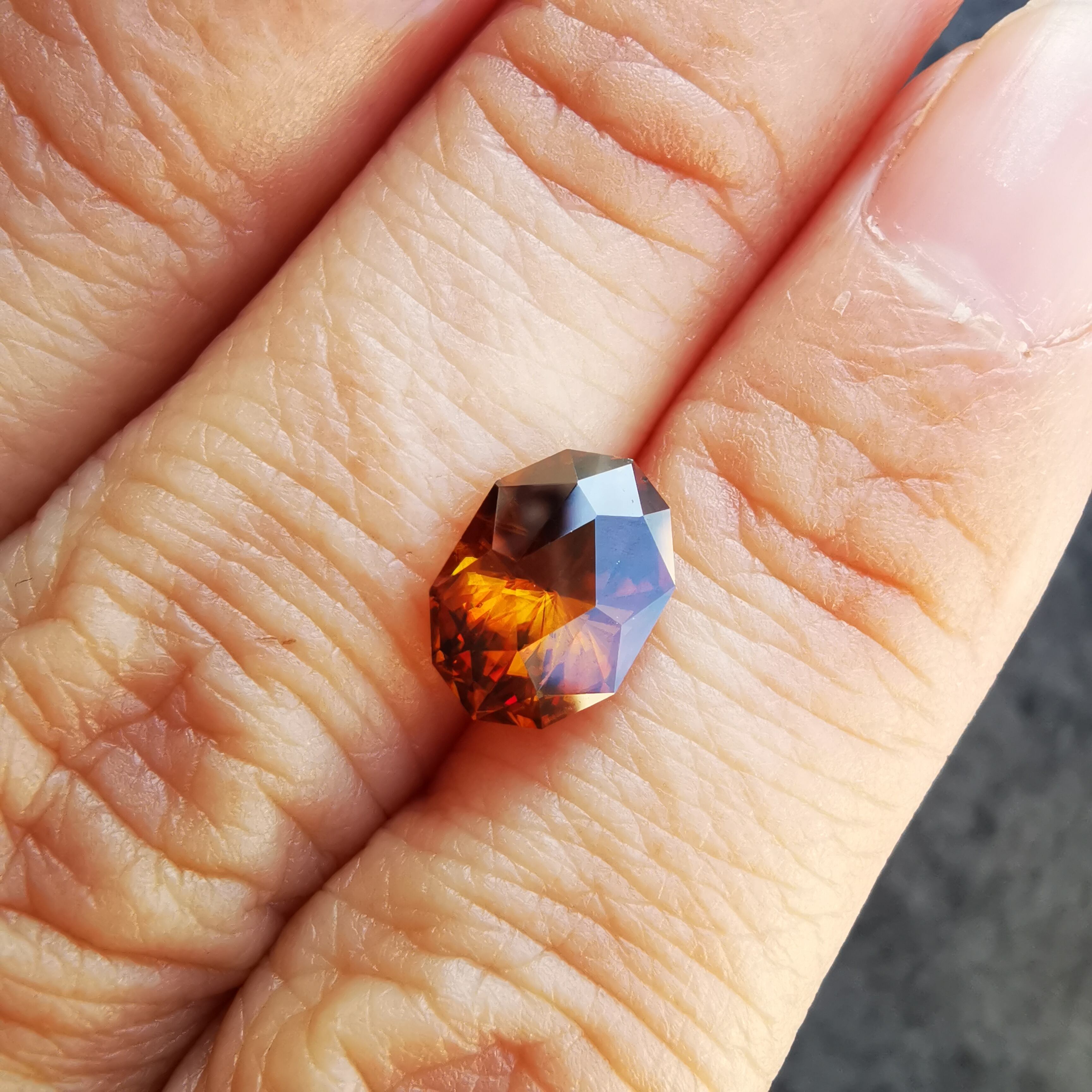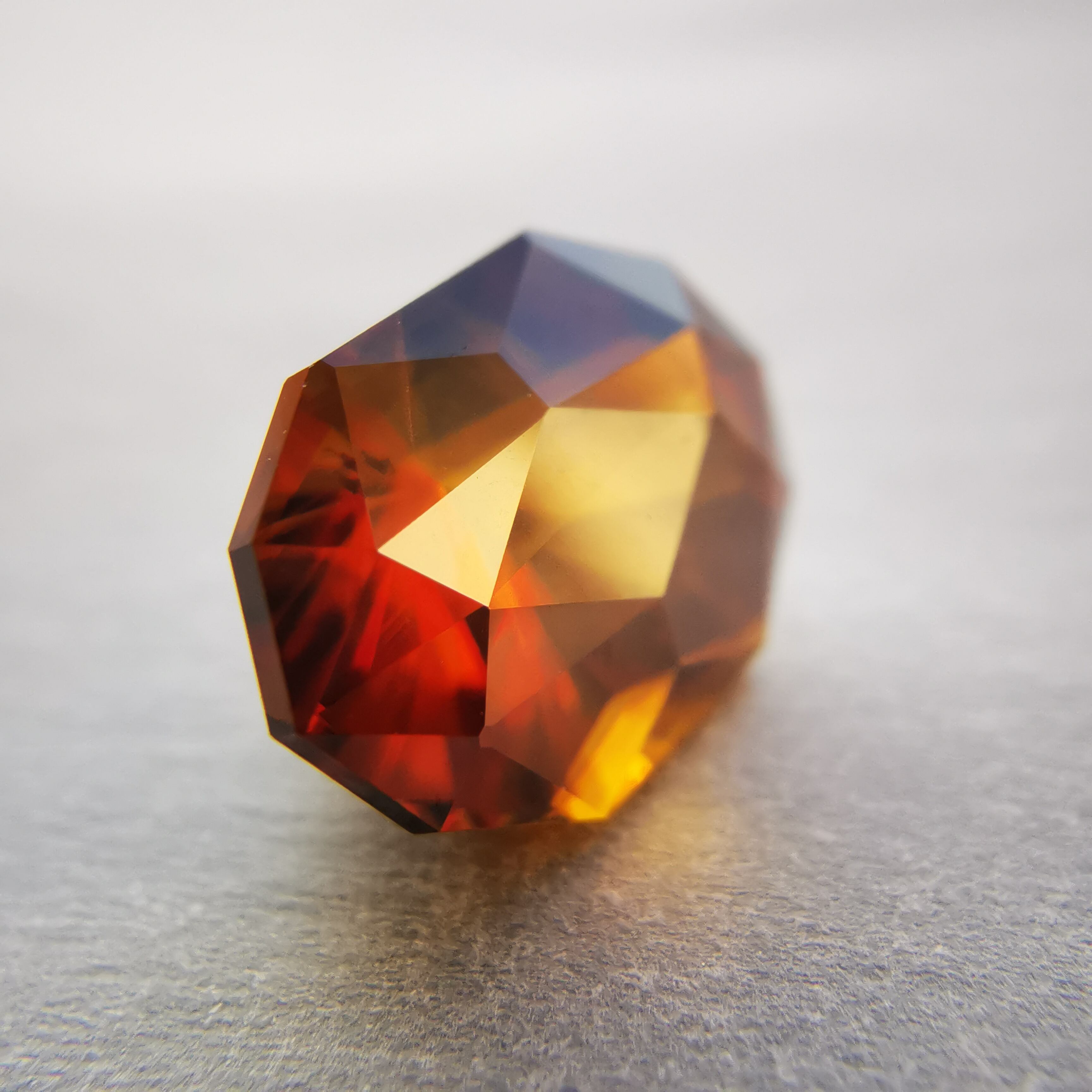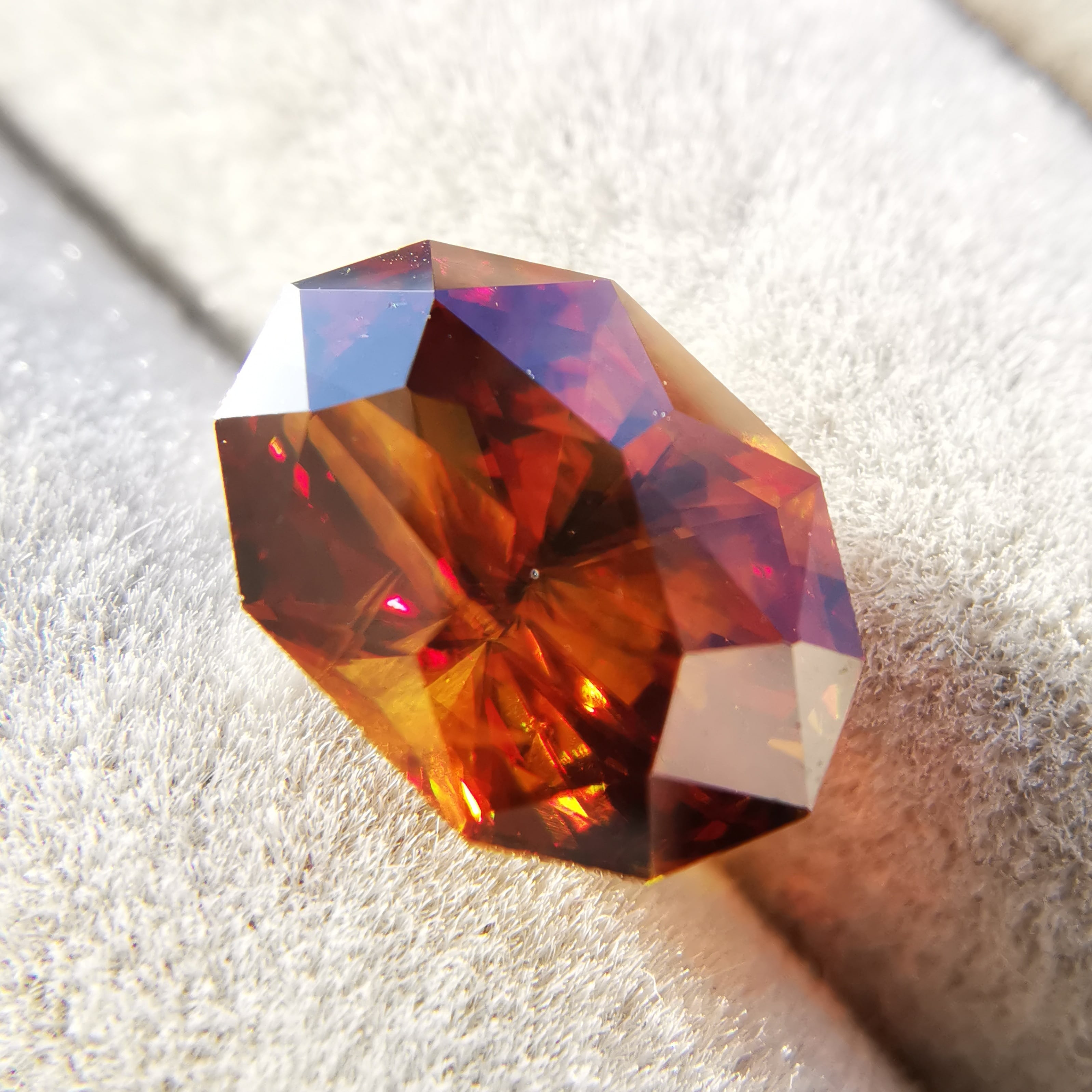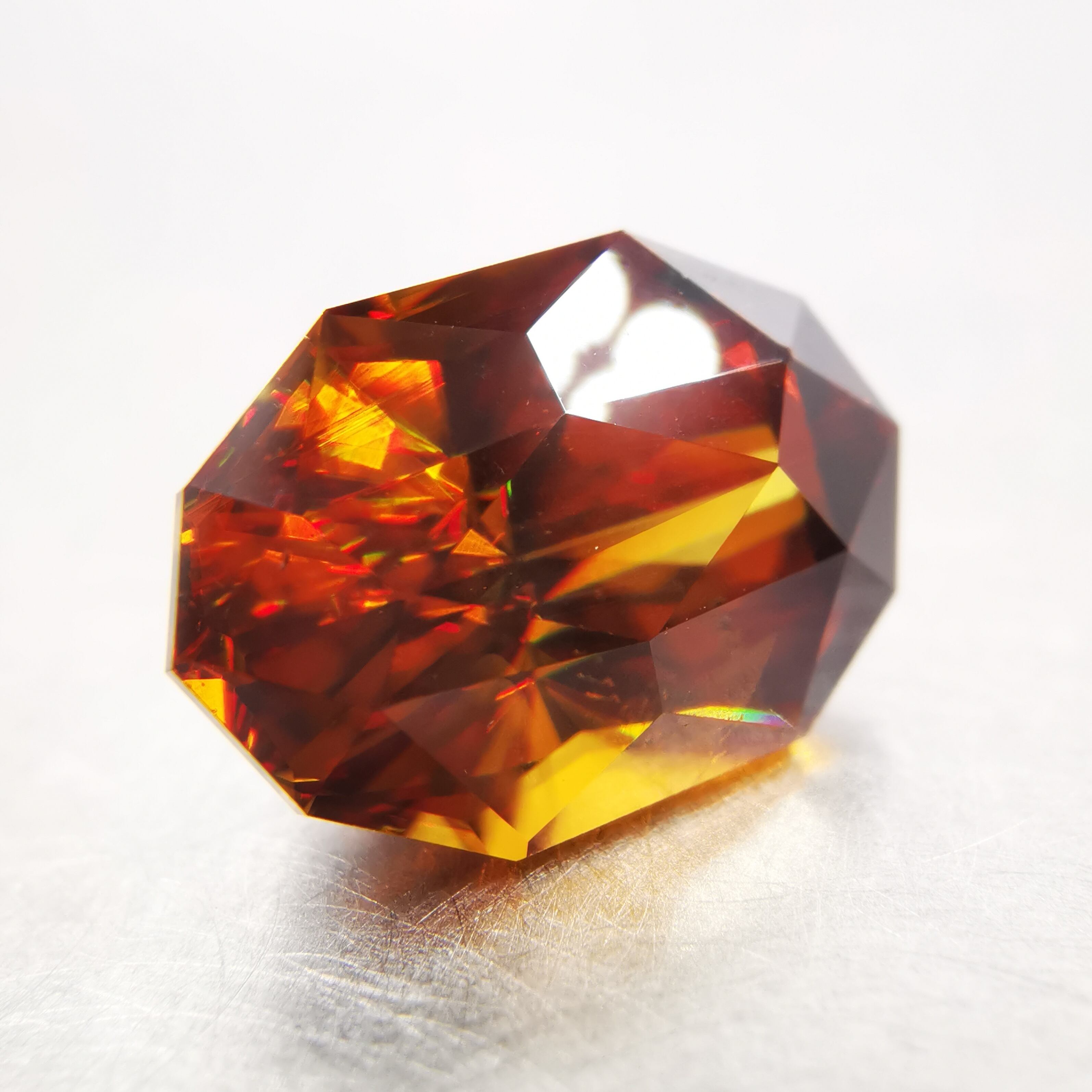 照明の下では、細かく虹色のファイアが輝き、太陽光の下では赤く力強く輝きます。