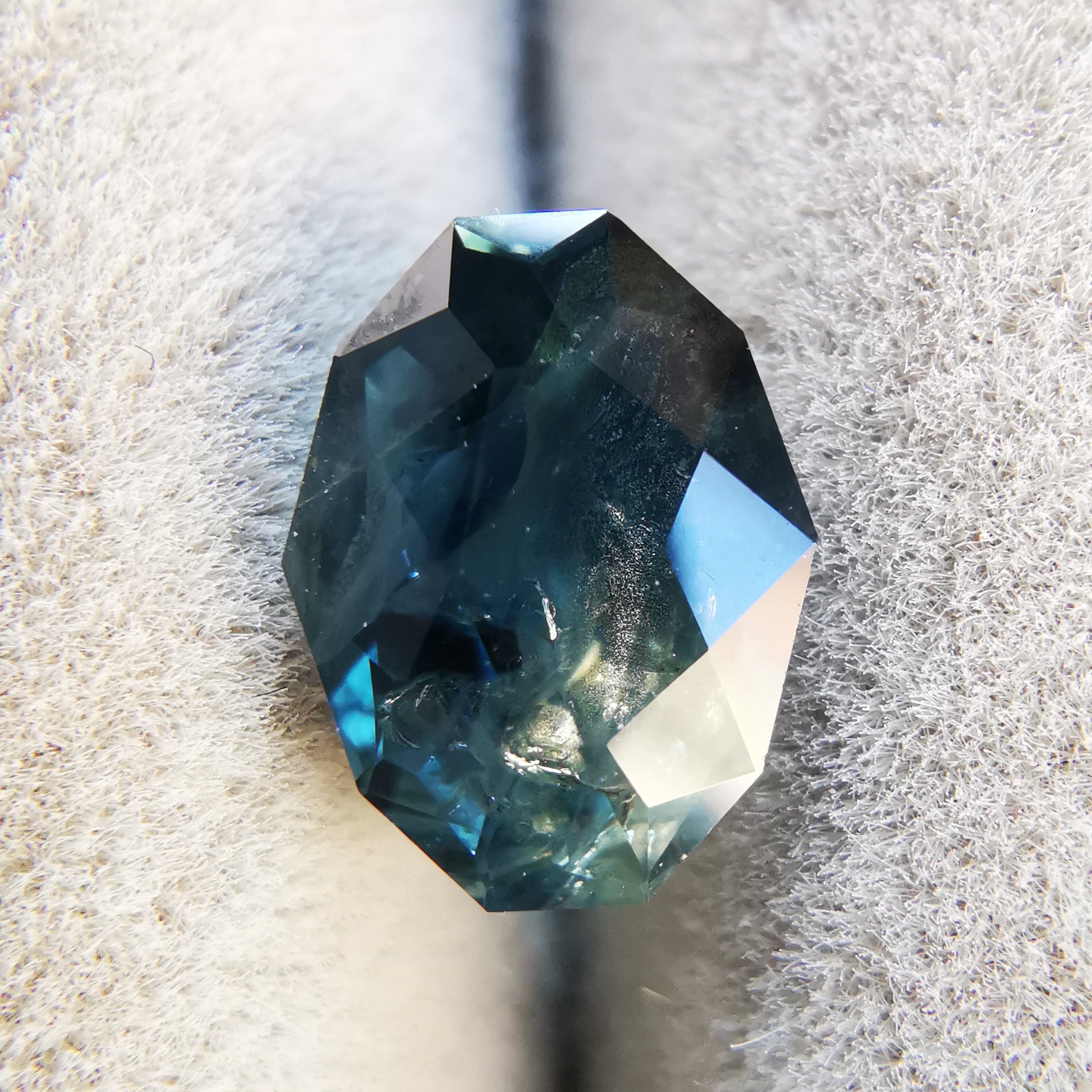 たっぷり入ったインクルージョンやクラックが、うねる波のように、渦巻く潮のように、光の届かぬ深海のように見えて、海を連想させる一石です。