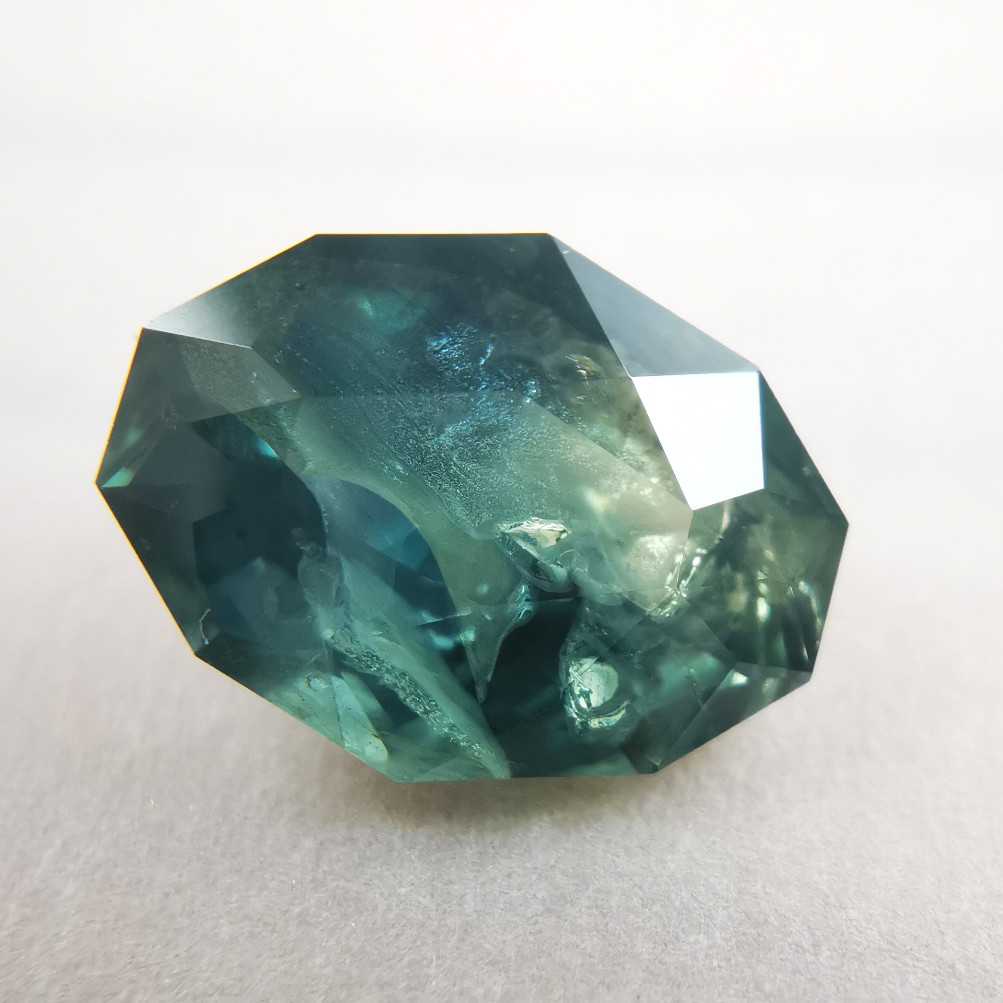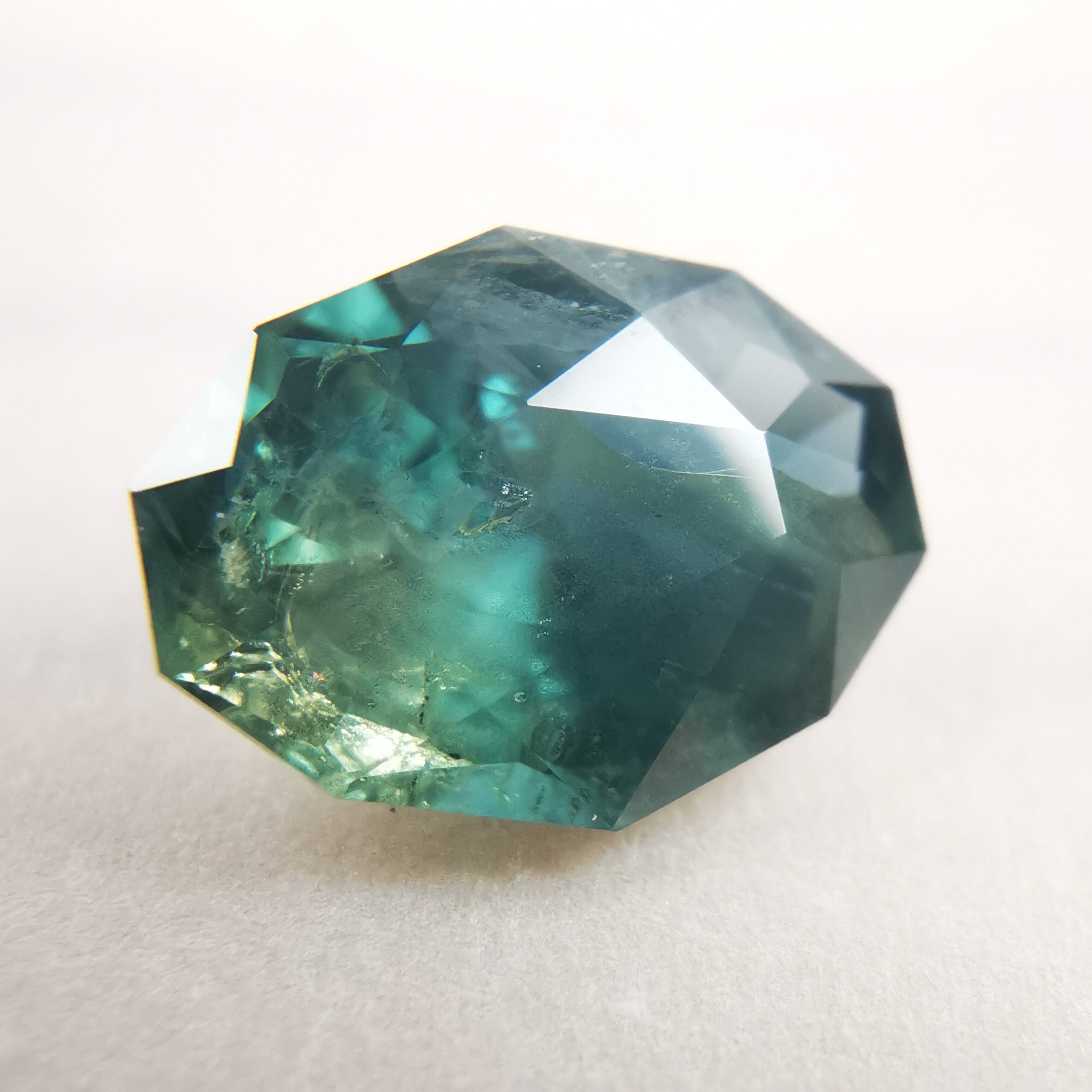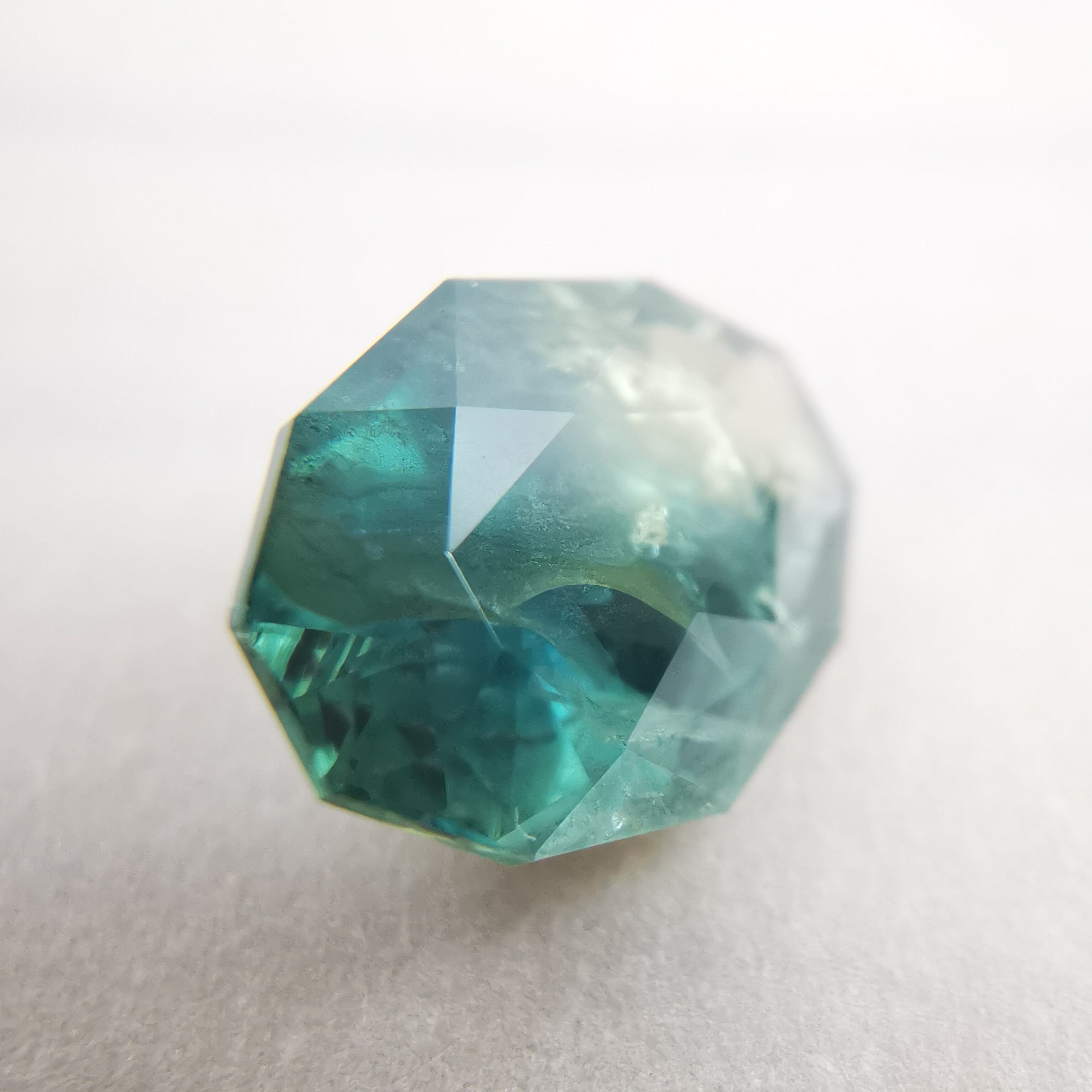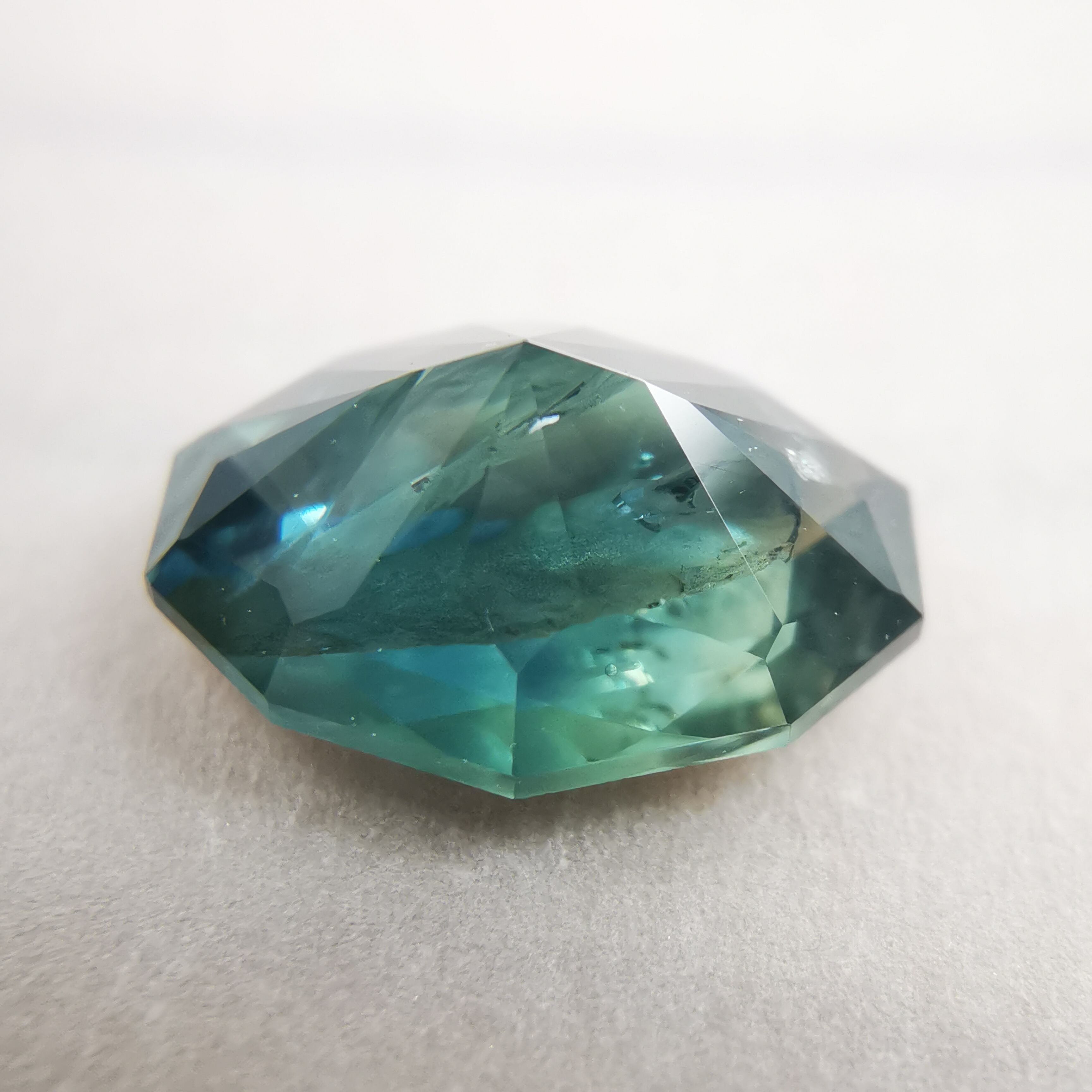 ブルーグリーンの石の一部がイエローに分かれたバイカラーのサファイアです。