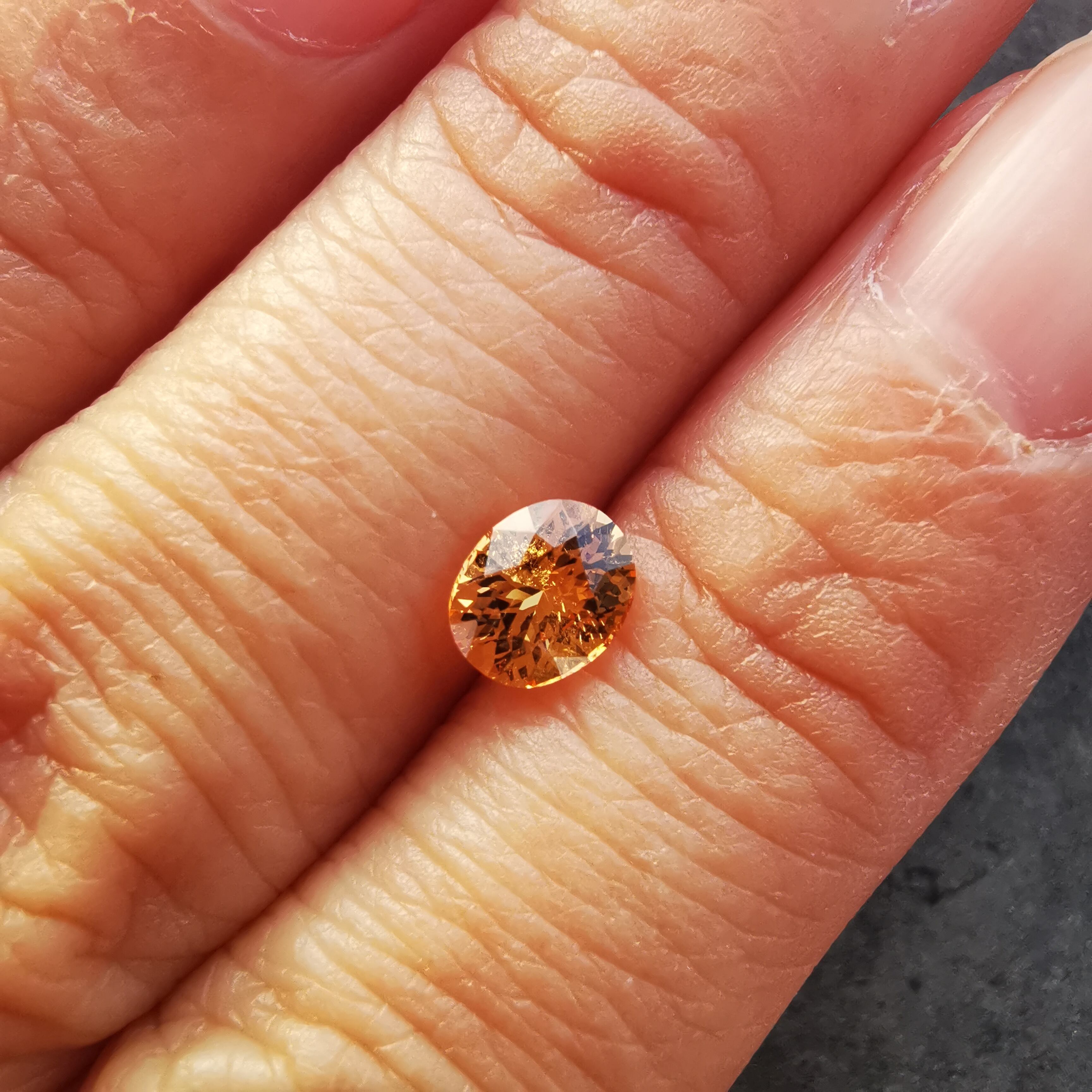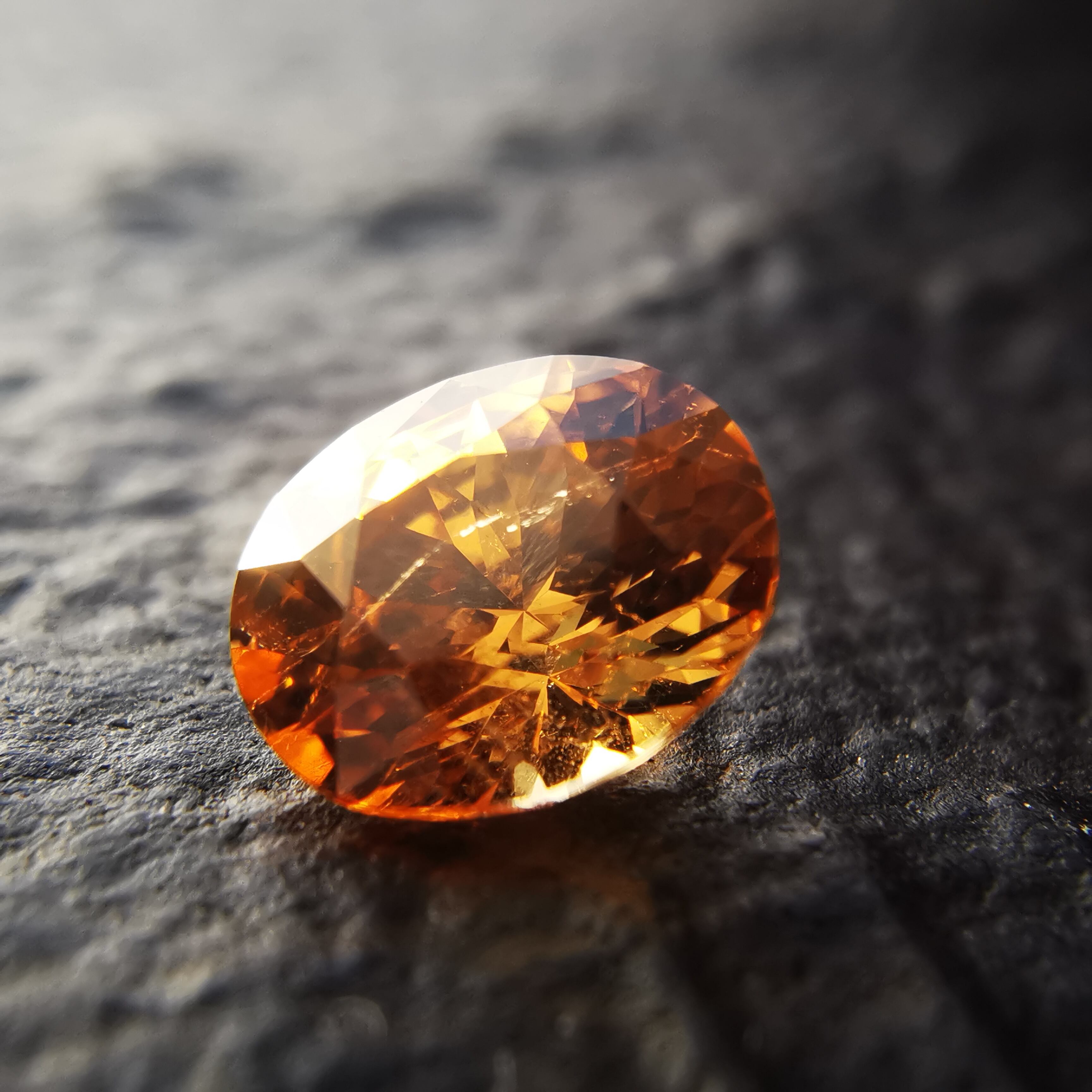 マンダリンガーネットと呼ばれる、ネオン感の強い明るいオレンジ色のガーネットです。