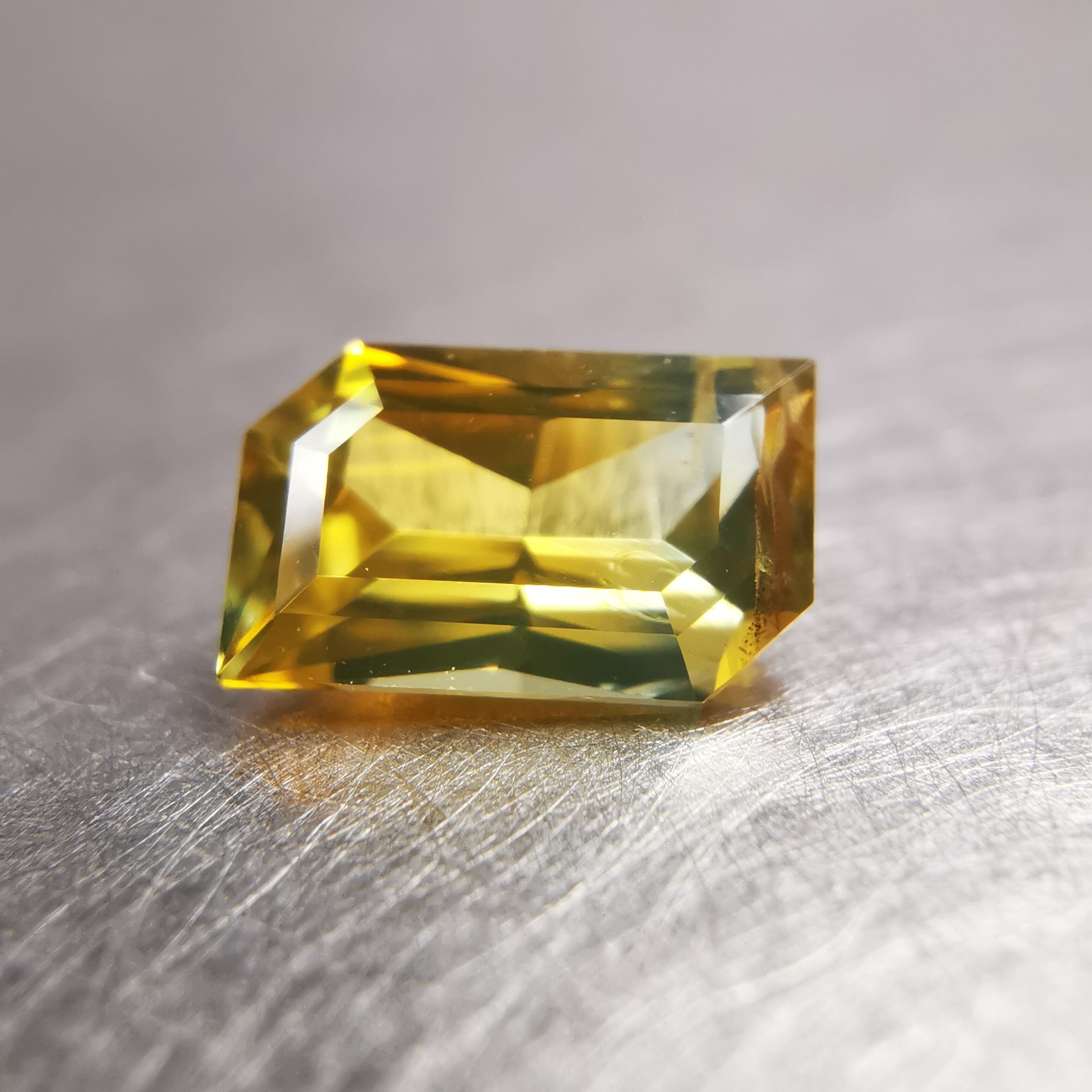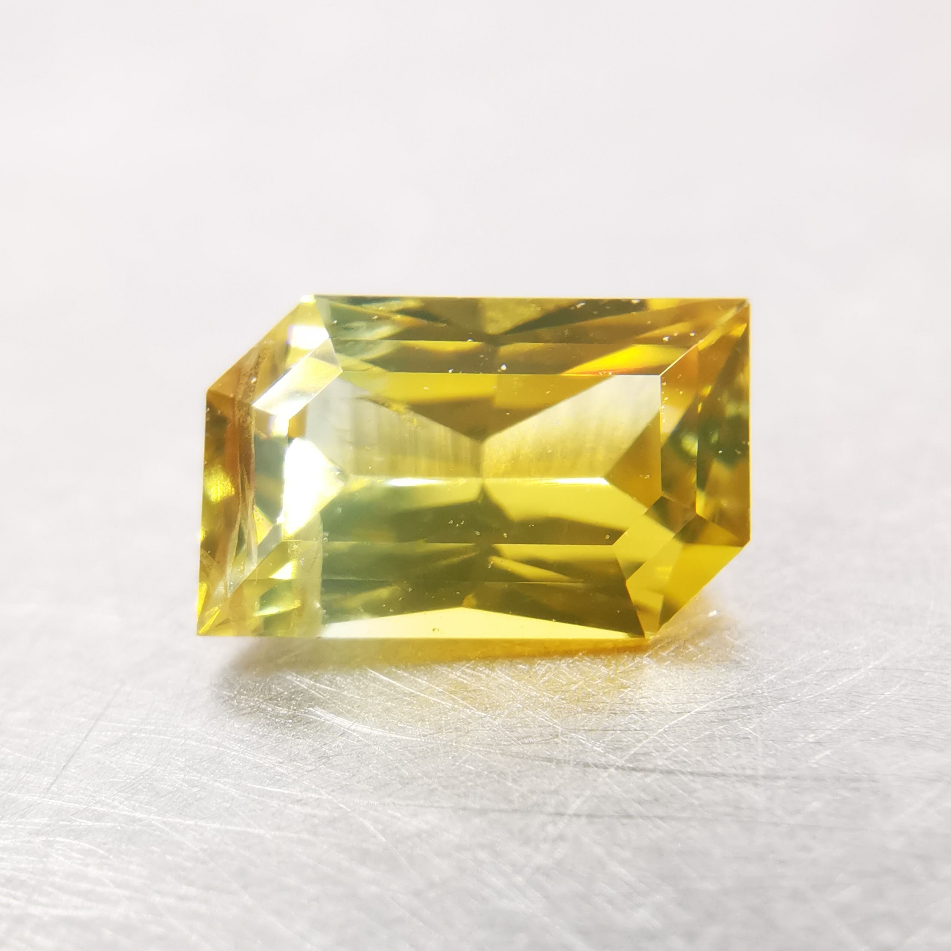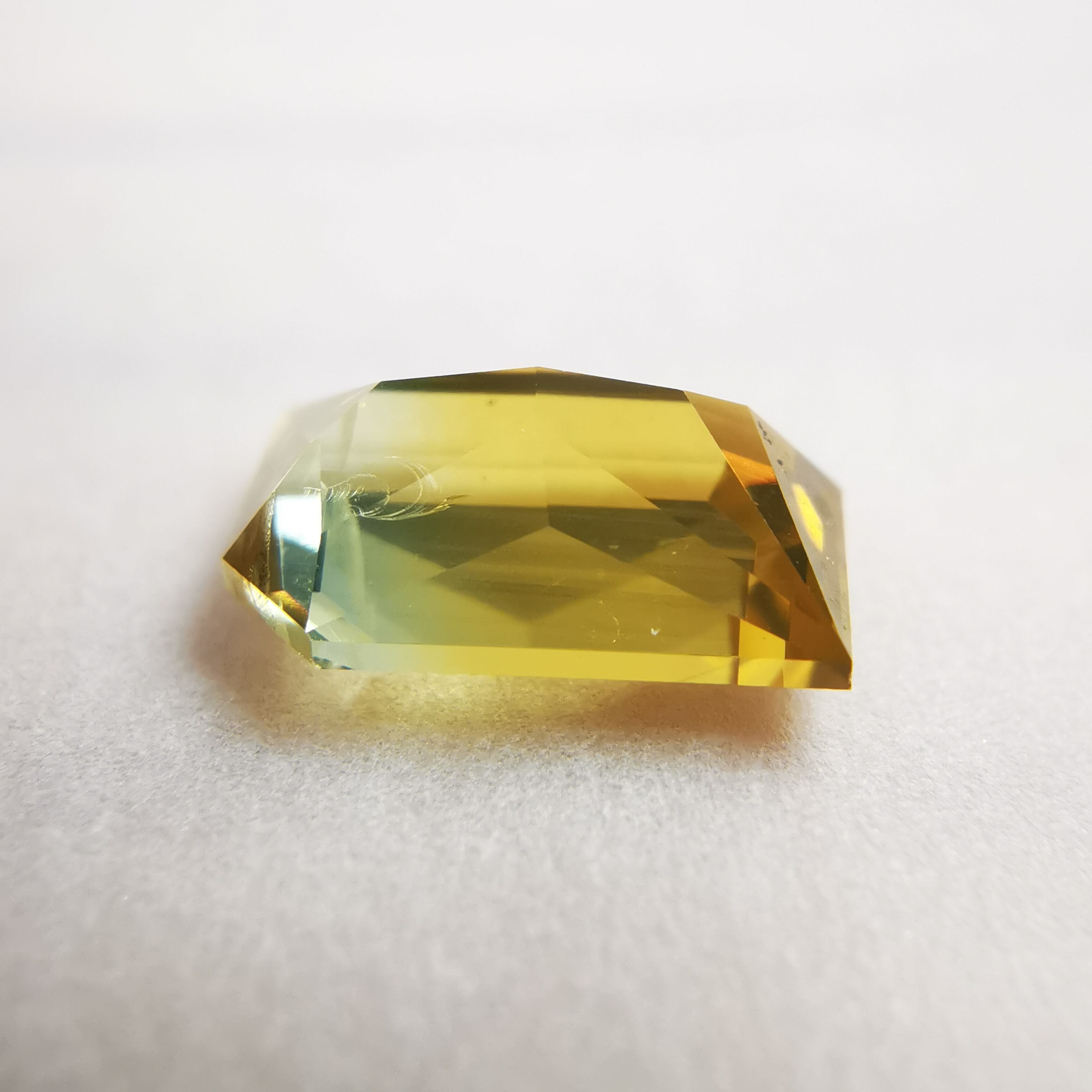 ビビットなイエローから、片側にかけてイエローが薄くなり、ごくわずかにグリーンみが見える、バイカラーっぽさのある一石です。