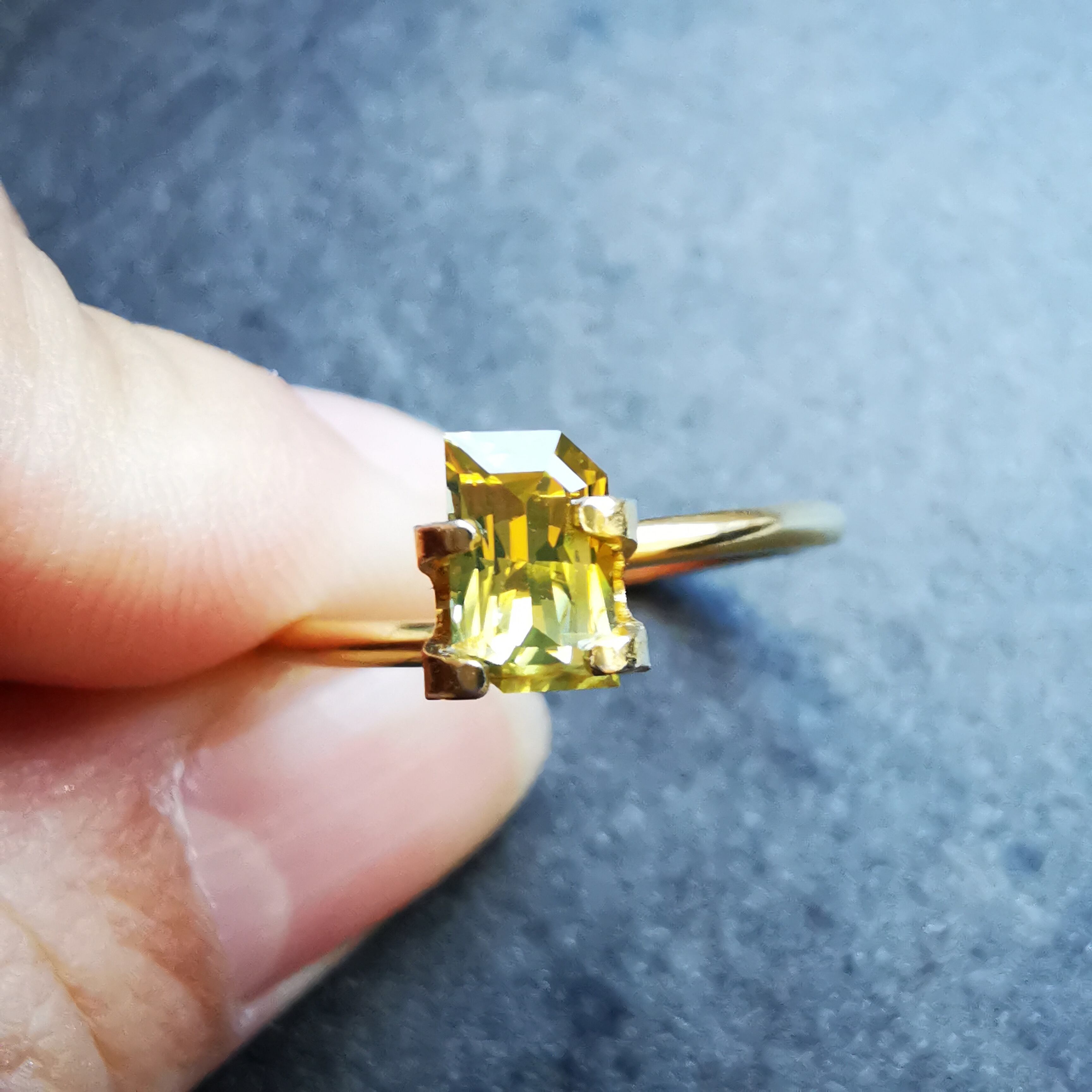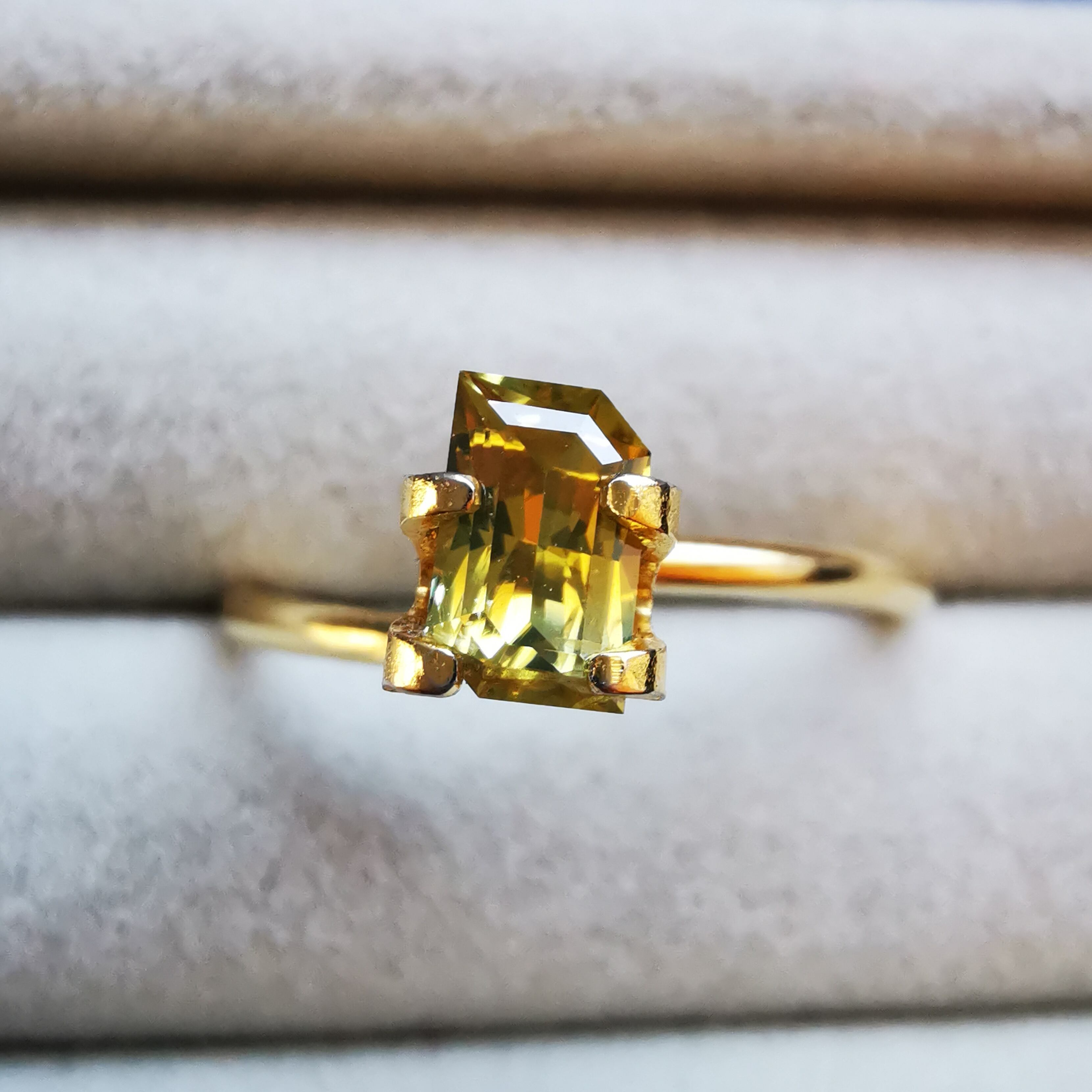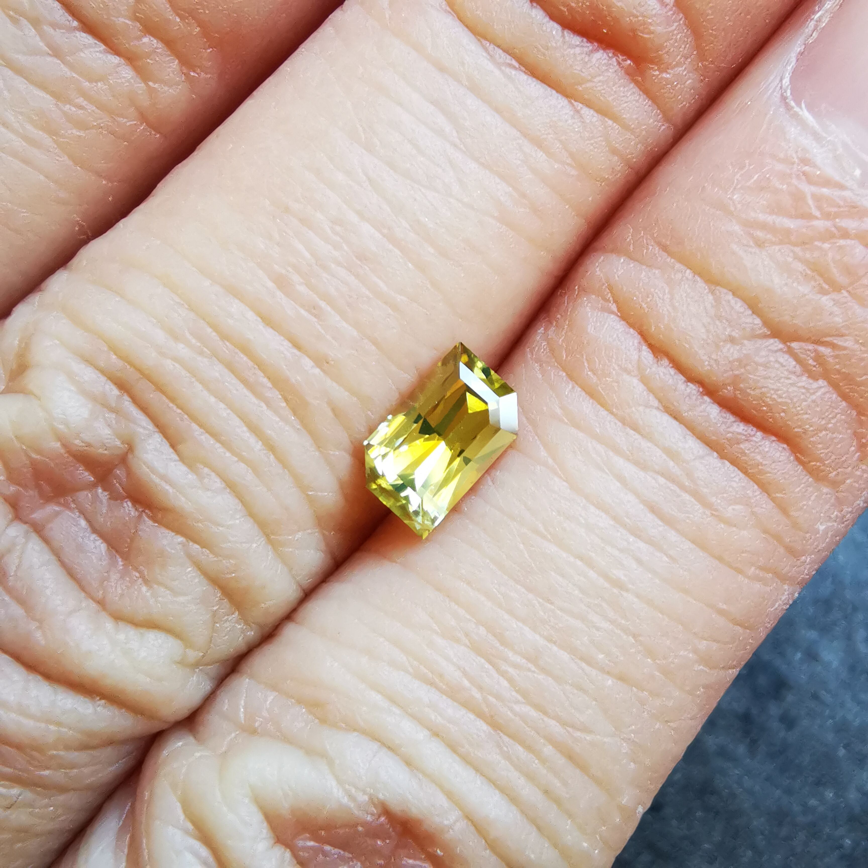 ビビットなイエローから、片側にかけてイエローが薄くなり、ごくわずかにグリーンみが見える、バイカラーっぽさのある一石です。