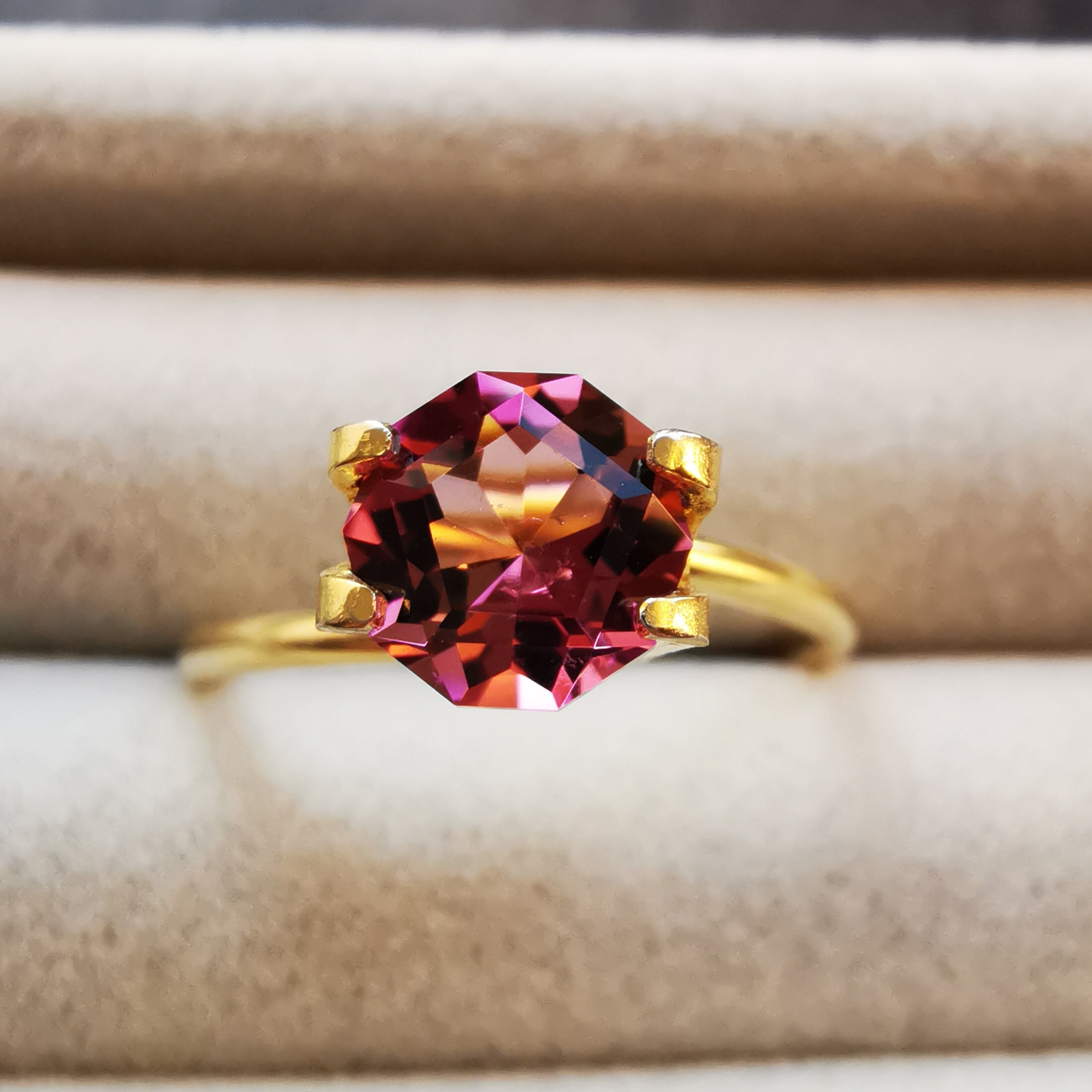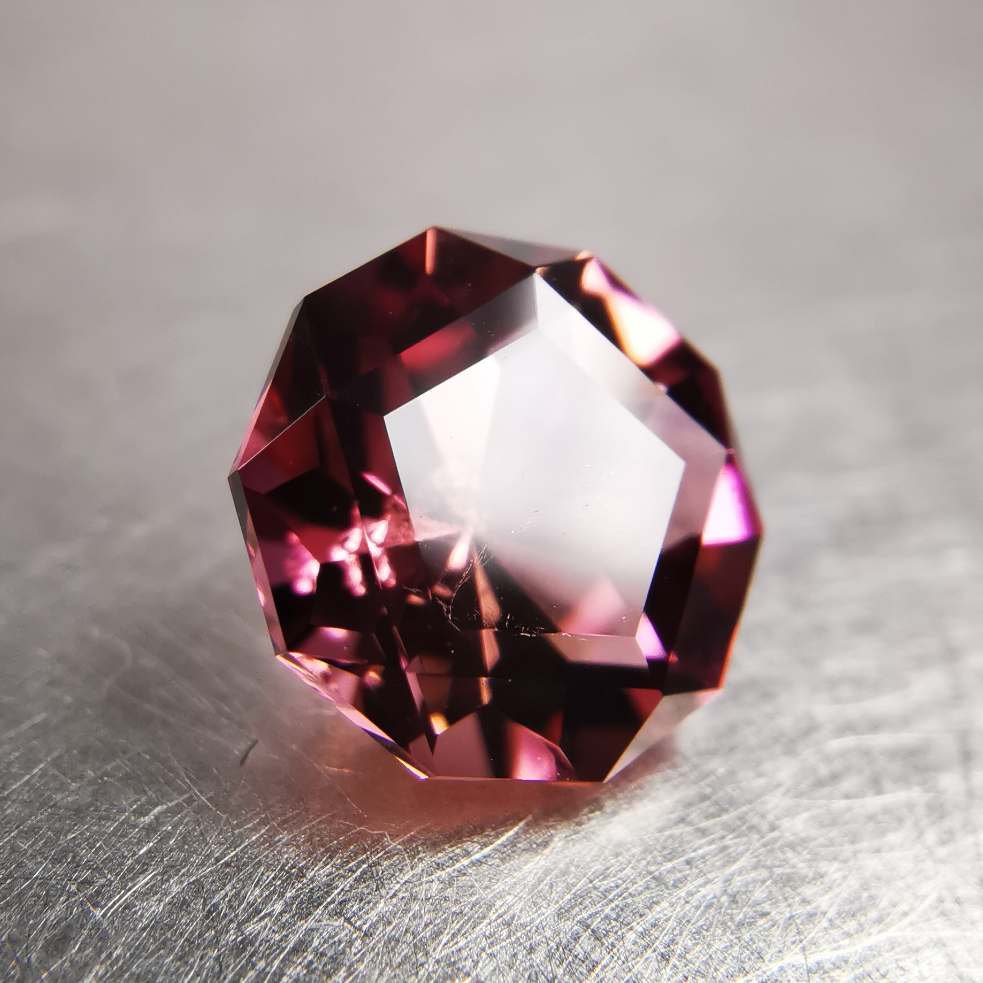 スリランカ人カッターA氏による新しいカット、変則的な10角形に、テーブル面は5角形です。