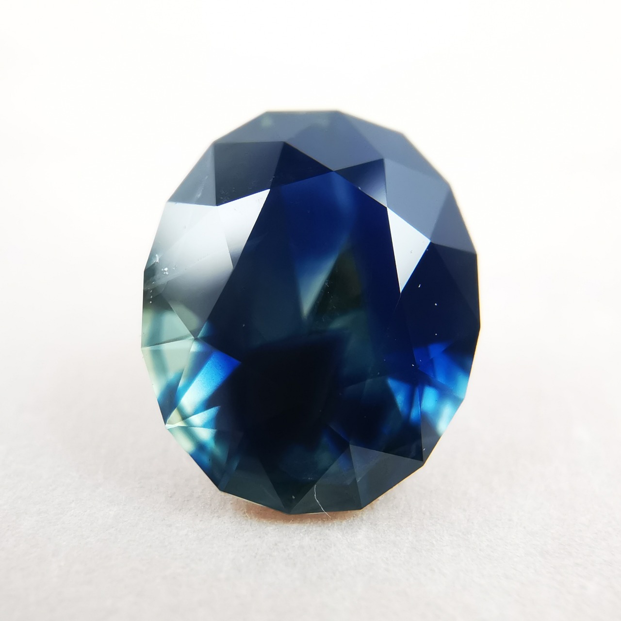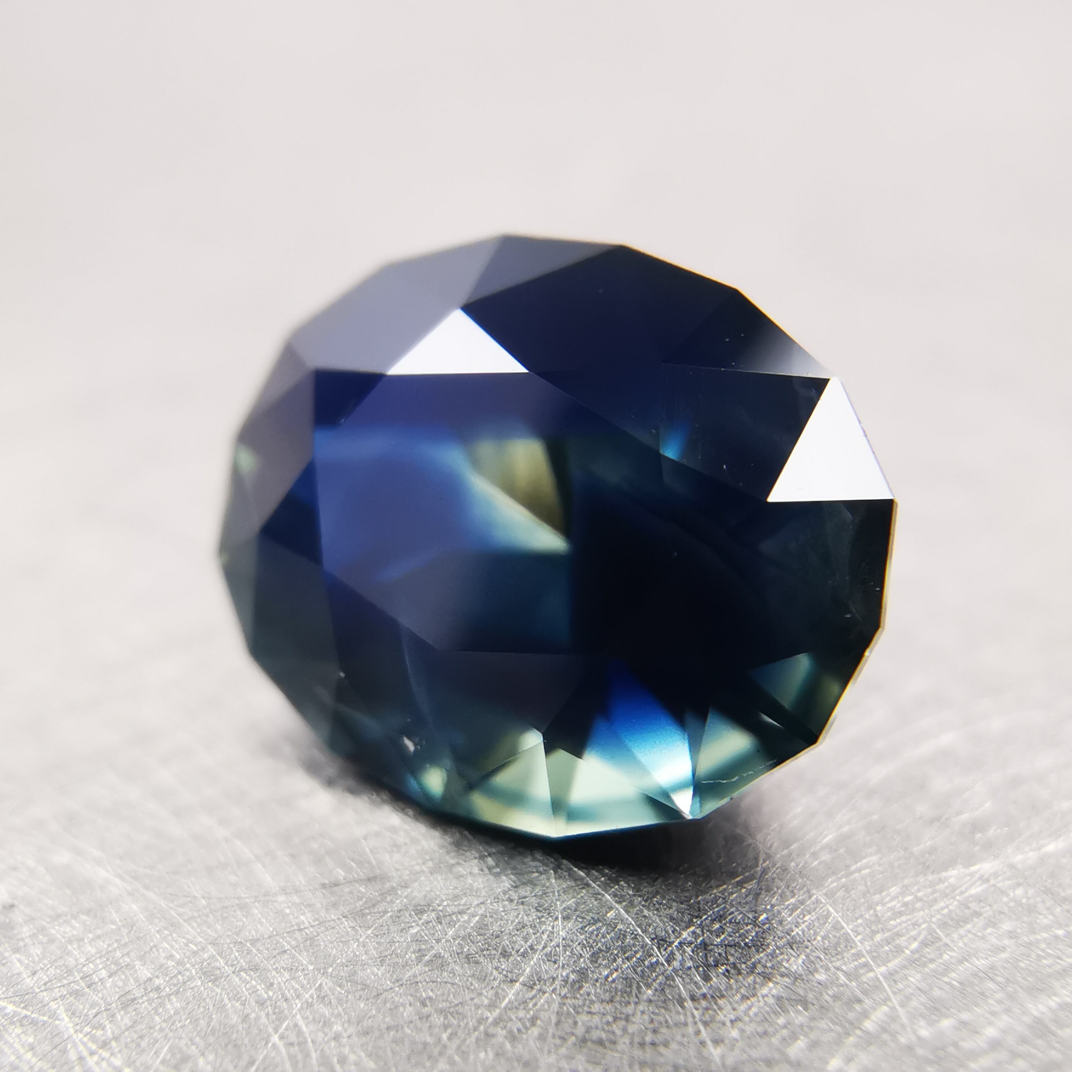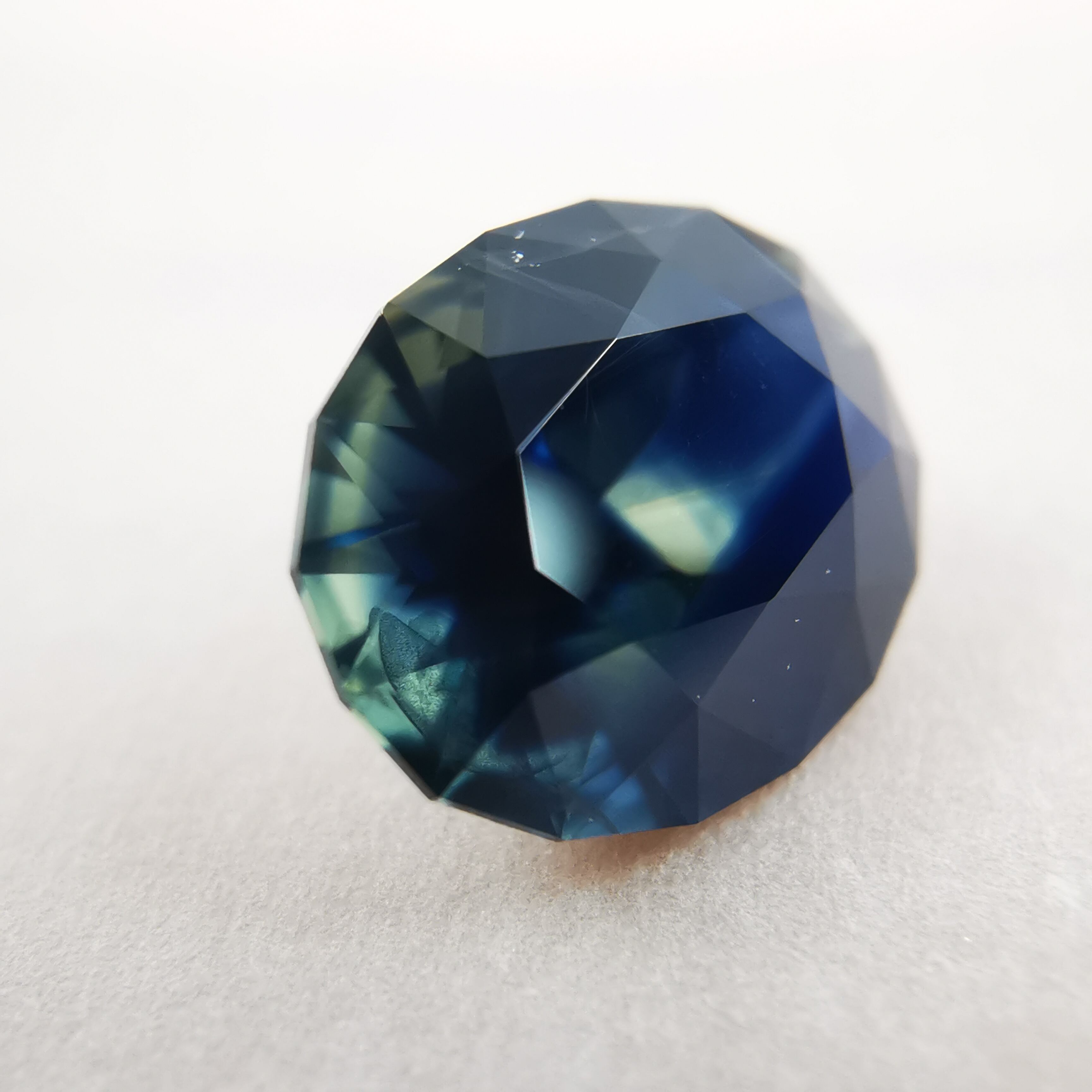 一見、全体が濃厚なティールカラーのようですが、よく見ると、淡いイエローを埋めるように濃いブルーの色の塊が入っています。